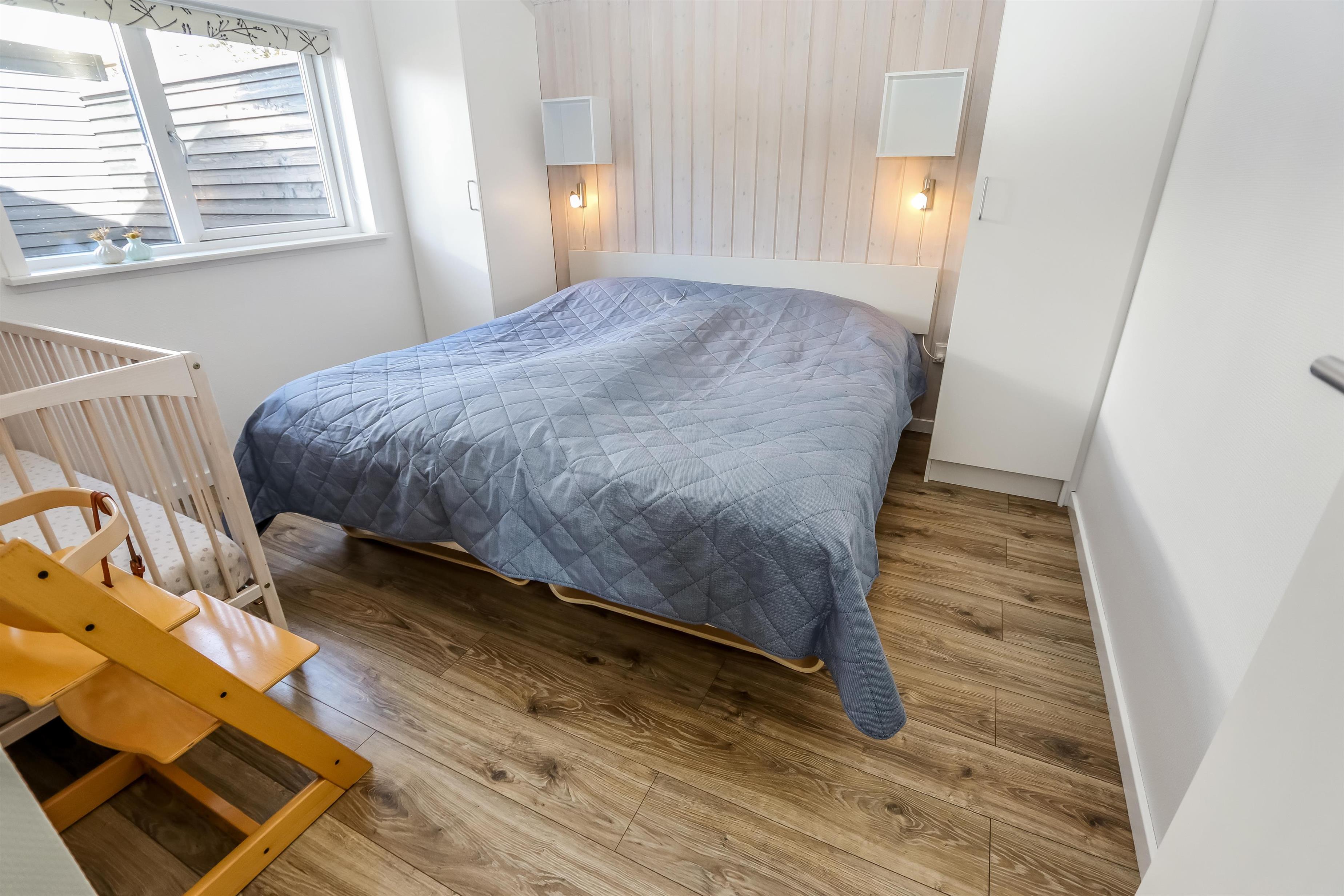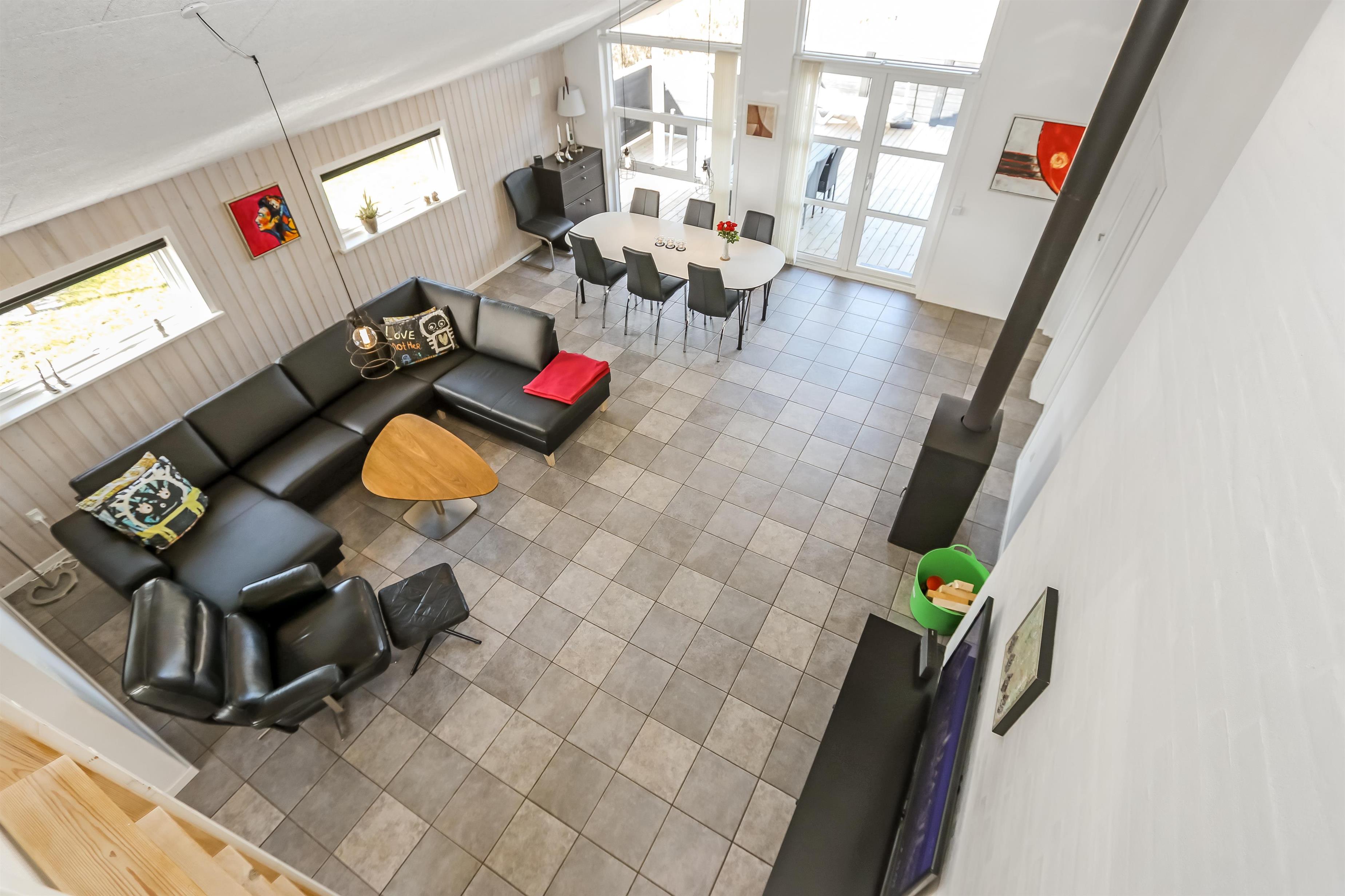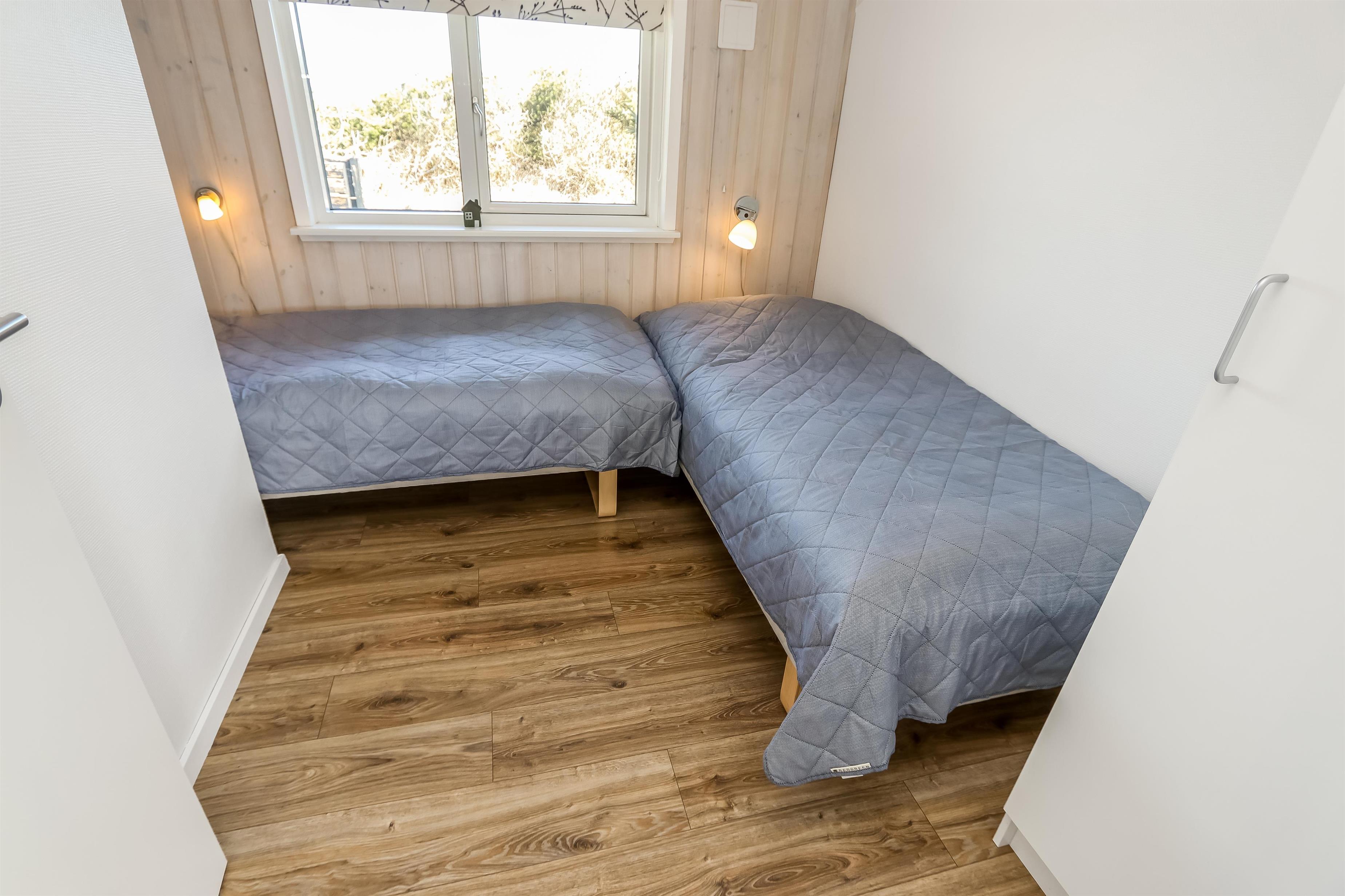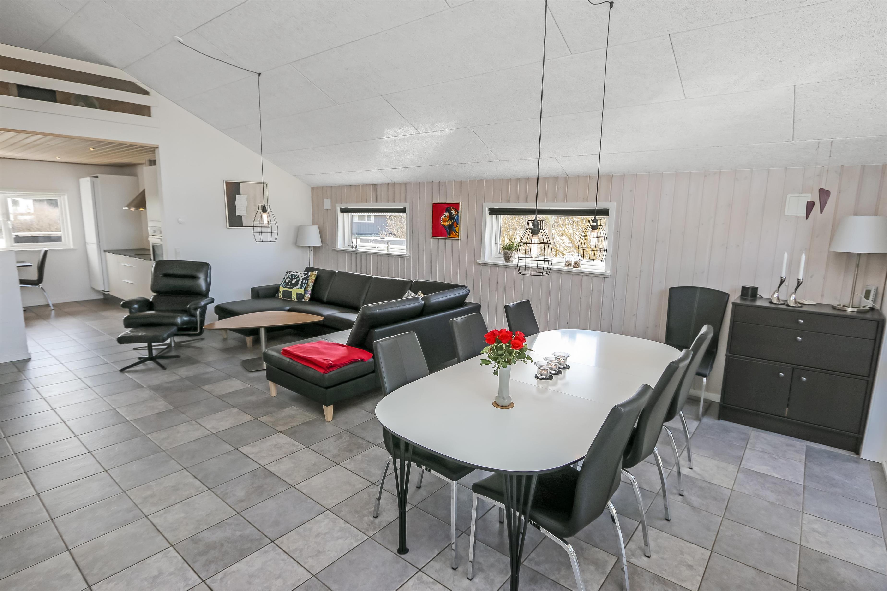 Huset er bygget i 2011, lavet i træ og lever op til hvad man forventer af et moderne sommerhus. Her er 2 store soveværelser med skabsplads, et værelse med 2 enkeltsenge, samt en stor hems, hvor der er 2 sove muligheder. Herudover er der også en barneseng og en barnestol i huset, samt mulighed for at sætte sikkerheds gitter op omkring brændeovnen. Der er behagelig gulvvarme i hele huset. Der er 1 badeværelse og 1 gæstetoilet. På det store badeværelse, er der spabad, sauna, bruseniche, håndvask og toilet. Lige ved siden af, er det lille gæstetoilet med håndvask, toilet samt vaskemaskine og tørretumbler. Opholdsrummet er med køkken, spisestue og stue, som er indrettet i et stort rum, med pænt møblement. Her er også husets brændeovn, som giver god varme og hygge når det er lidt køligere. Køkkenet er veludstyret med køkkengrej og service og har en moderne ø, som gør det til en nemt samtale køkken. Der er blandt andet også glaskeramisk/induktions kogeplader, mikroovn, indbygnings ovn, opvaskemaskine, køleskab og separat fryser på 107 liter. Spisestue afdelingen er med spisebord og stole. Stuen har en dejlig stor sofagruppe og Tv. Se tv på dansk og tysk eller stream din ynglings serie via husets Cromecast. Derudover er der en bluetooth-højtaler, CD og DVD afspiller. På værelserne er der box madrasser med topmadrasser, samt sengetæpper. På alle værelserne er der skabe til tøj. Huset opvarmes med en elvarmepumpe. Dette gør at huset er meget energivenligt og halverer varmeudgiften i forhold til et konventionelt sommerhus. Har man el-bil eller en Plug-In hybrid, så er der Ladeboks ved huset til Type 2 ladestik, der kan lade op til 11 kWh.