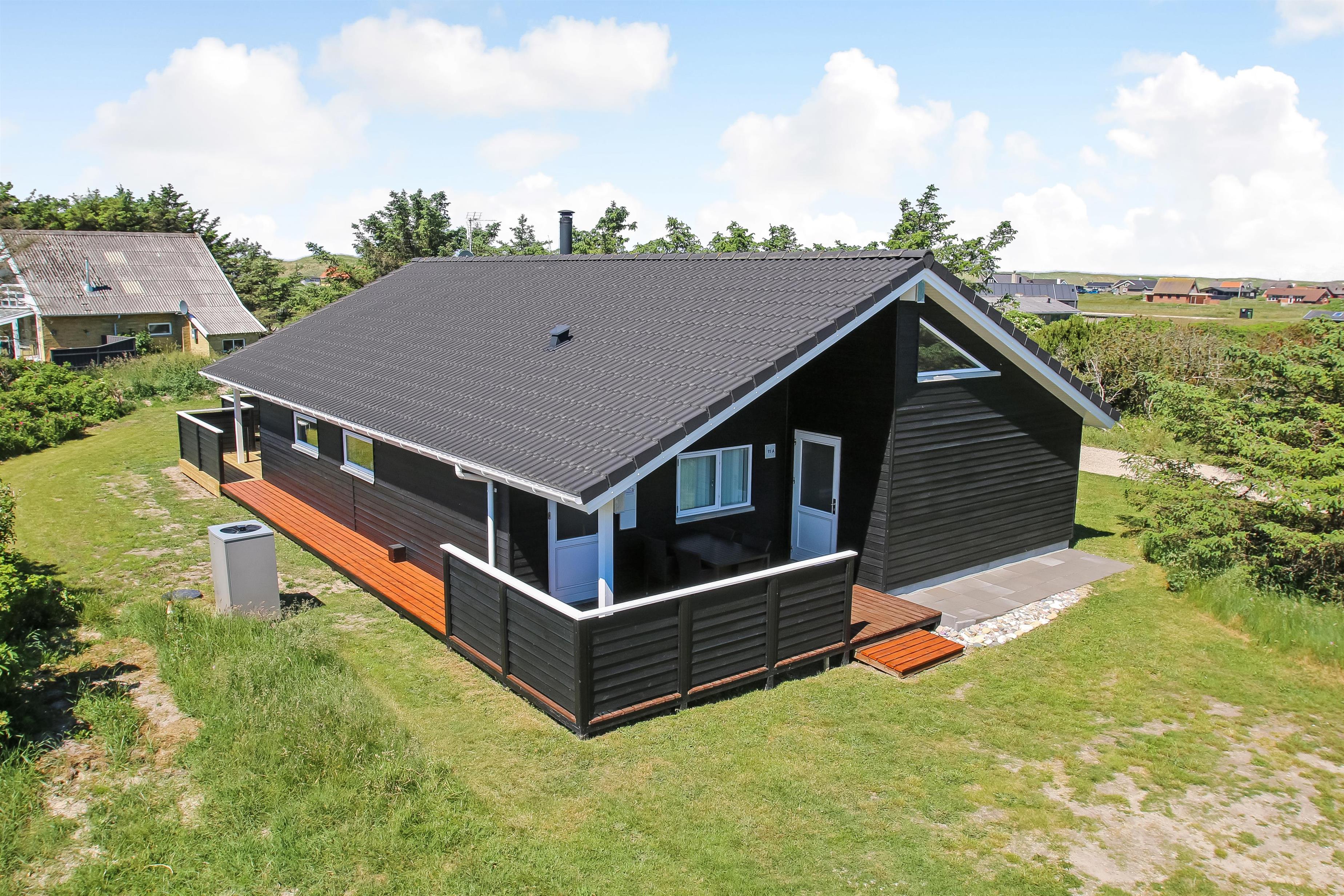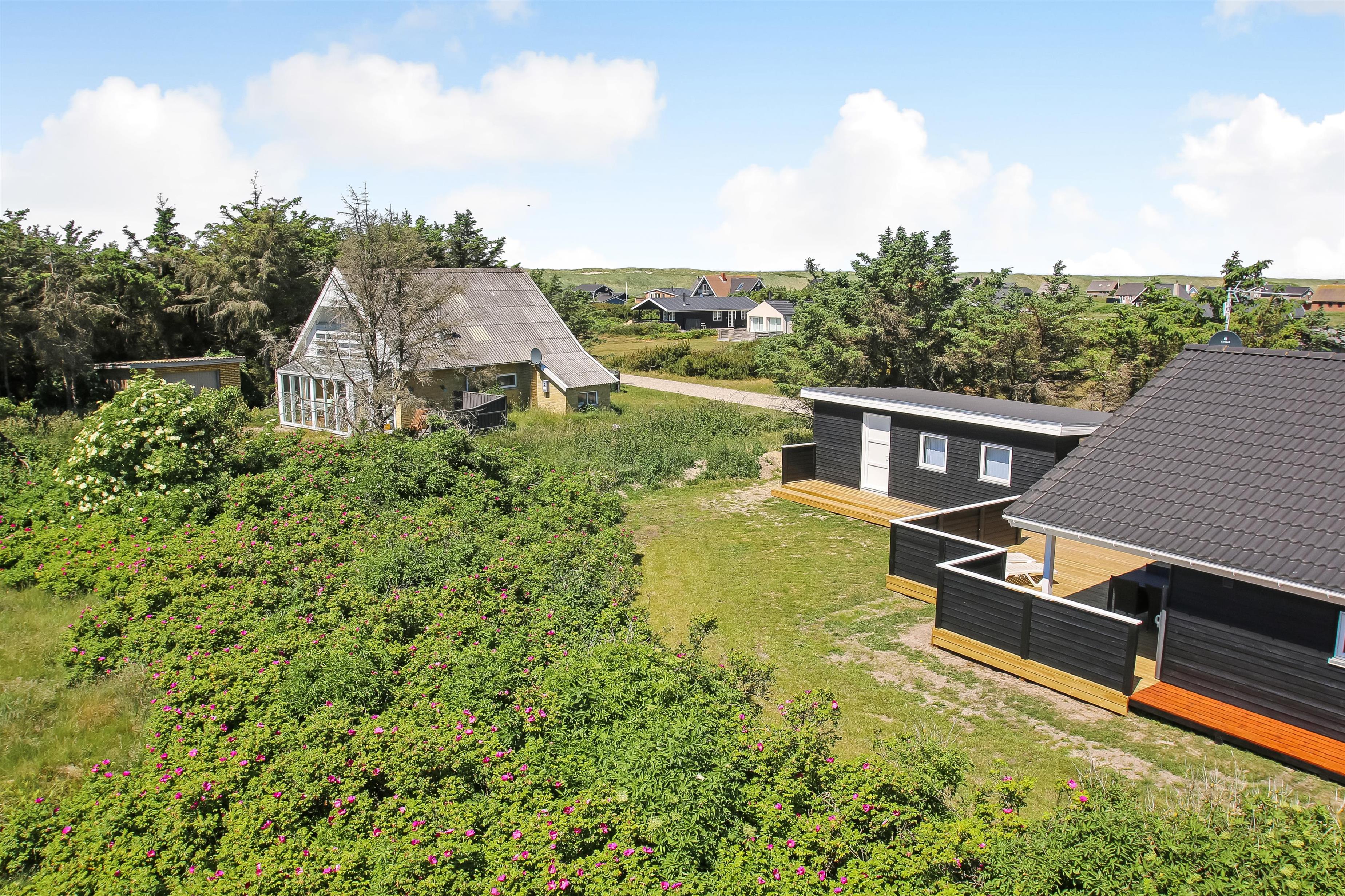 Dette dejlige store rummelige sommerhus ligger kun 250 meter fra Vesterhavet, med en stor ugenert sydvestvendt terrasse. Usædvanligt for området, så er der højere bevoksning omkring huset. Dette giver læ og gør beliggenheden idyllisk. Huset har 2 badeværelser og 3 soveværelser og en sovehems. Her er gratis trådløst internet. Husdyr og rygning er IKKE tilladt.