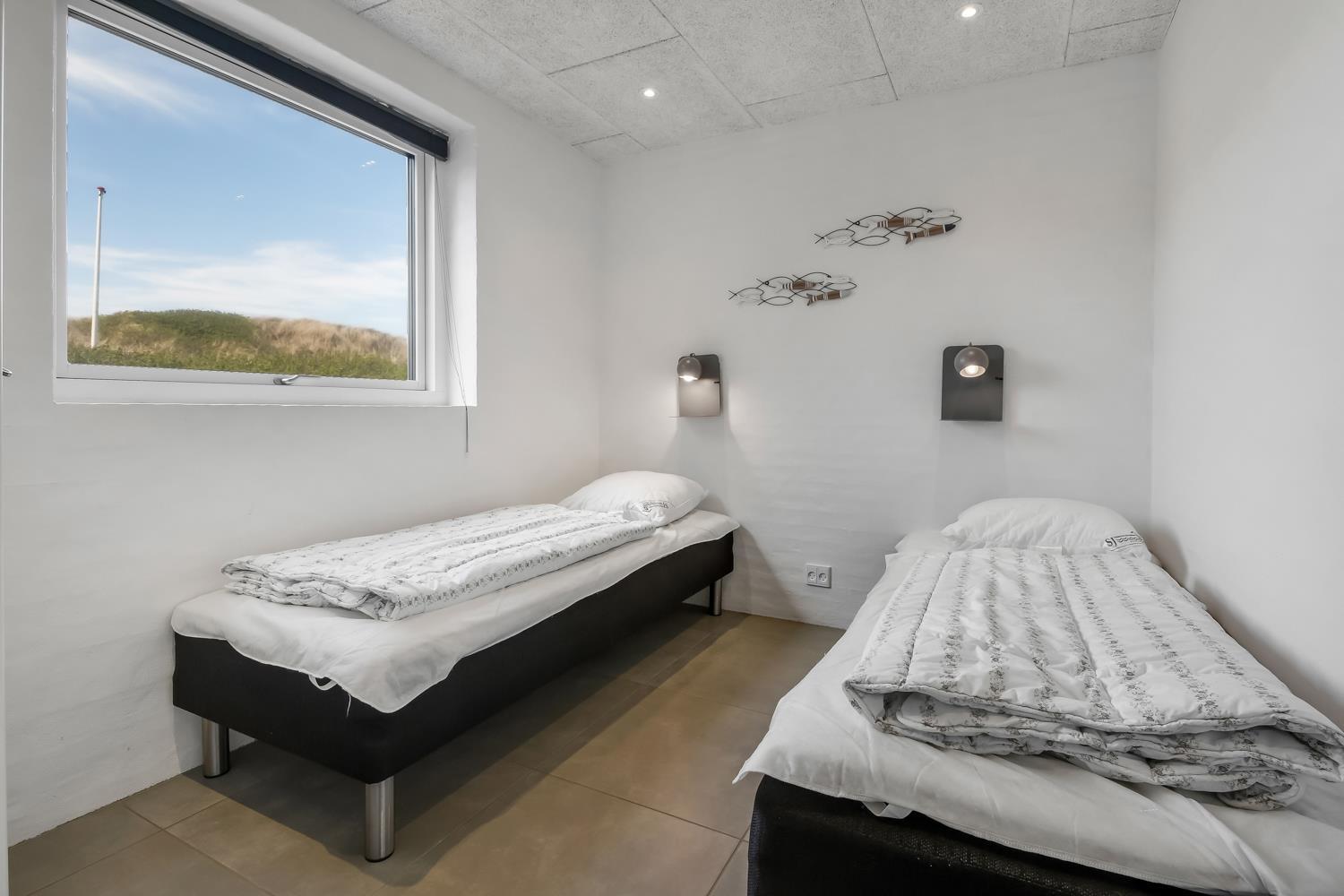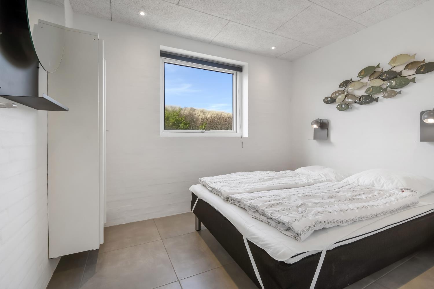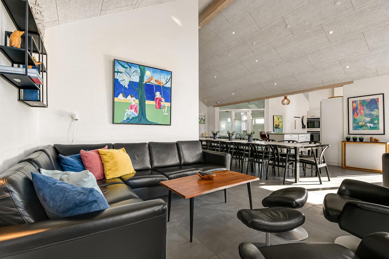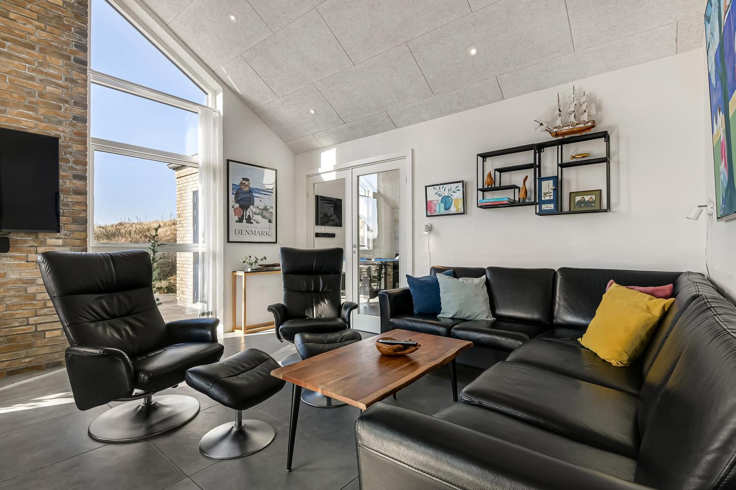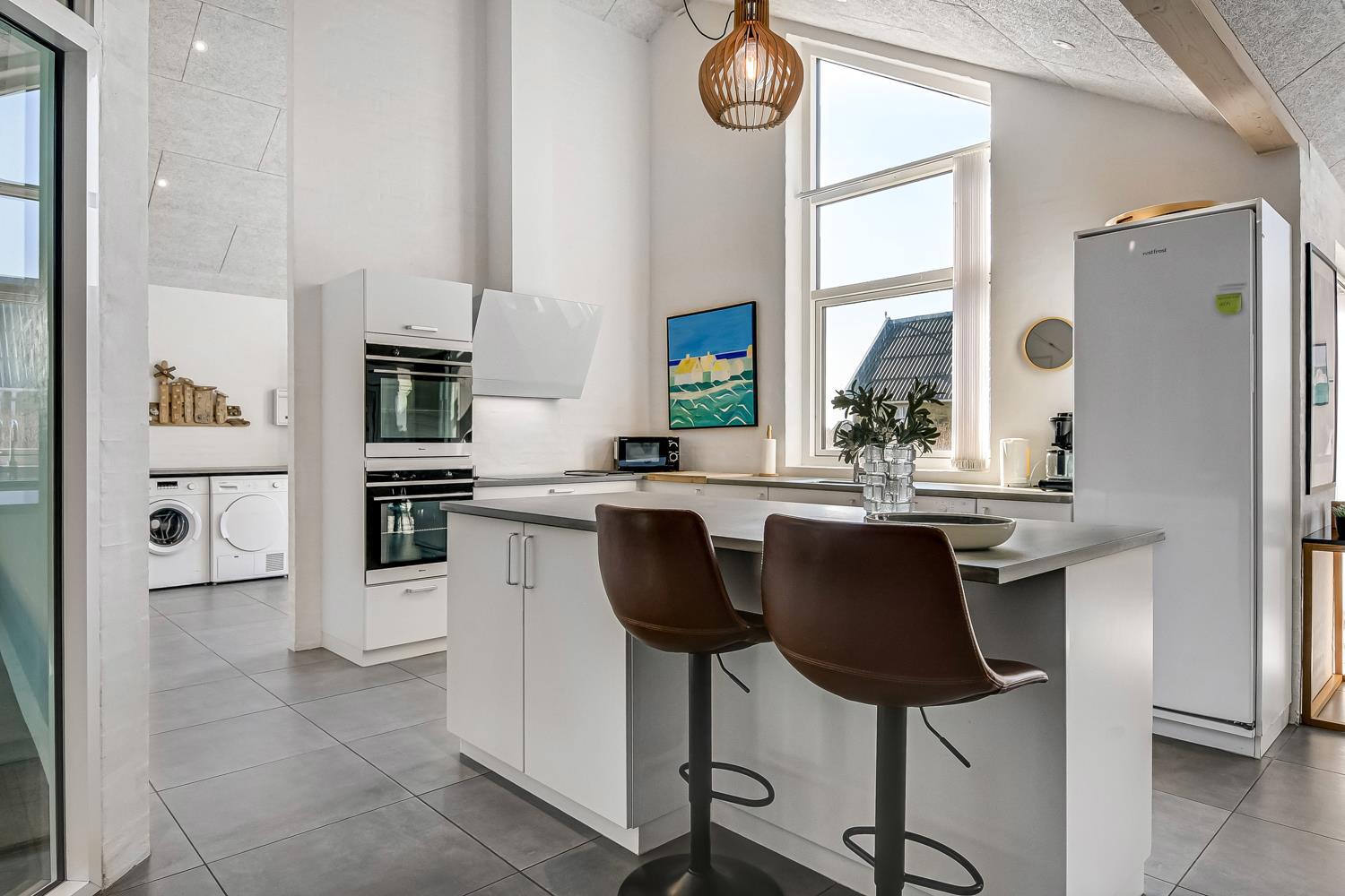 Allerede undervejs ud til dette pragtfulde feriehus, fornemmer man husets fantastiske beliggenhed tæt op ad Vesterhavets store klitter. Huset er 241 m2 stort og har 6 dejlige soverum (1DS, 1DS, 1DS, 1DS, 2ES, 2ES). Derudover forefindes 8 sovemuligheder fordelt på 2 hemse. I hjertet af huset findes et stort, veludstyret køkken / alrum med alt i service / køkkengrej og alt i hårde hvidevarer. Køkkenhjørnet har bl.a. keramiske kogeplader, indbygnings ovn, emhætte, opvaskemaskine og stort køleskab. Nyd maden ved det store spisebord, kig ud af vinduet og se de store høje klitter direkte ved Vesterhavet eller slap af i de bløde kvalitetsmøbler. Se TV på dansk og tysk eller stream din ynglings serie på et af husets smart-TV. Der er flotte, praktiske klinker med gulvvarme i alle husets rum og huset er særdeles rengøringsvenligt.