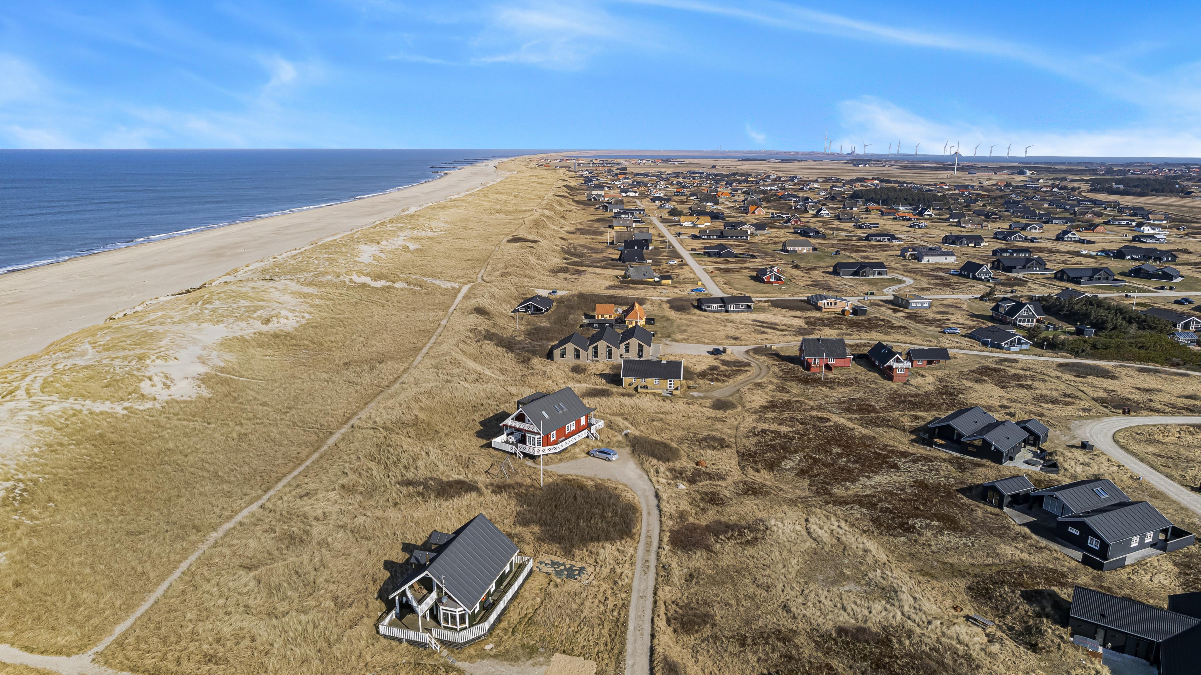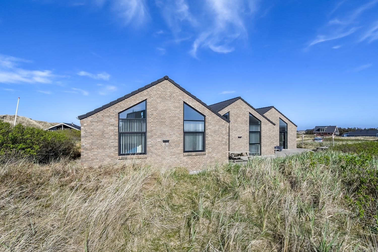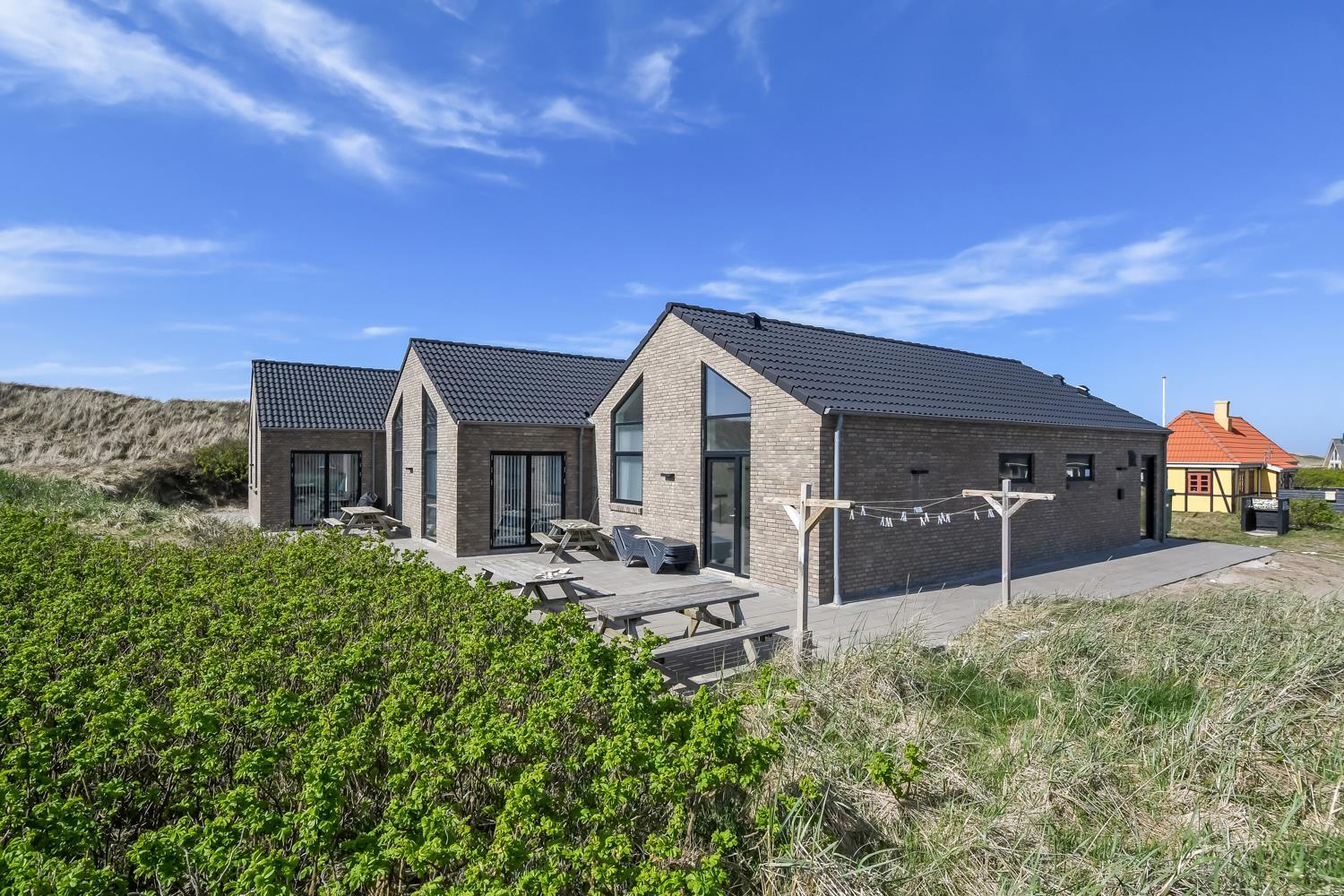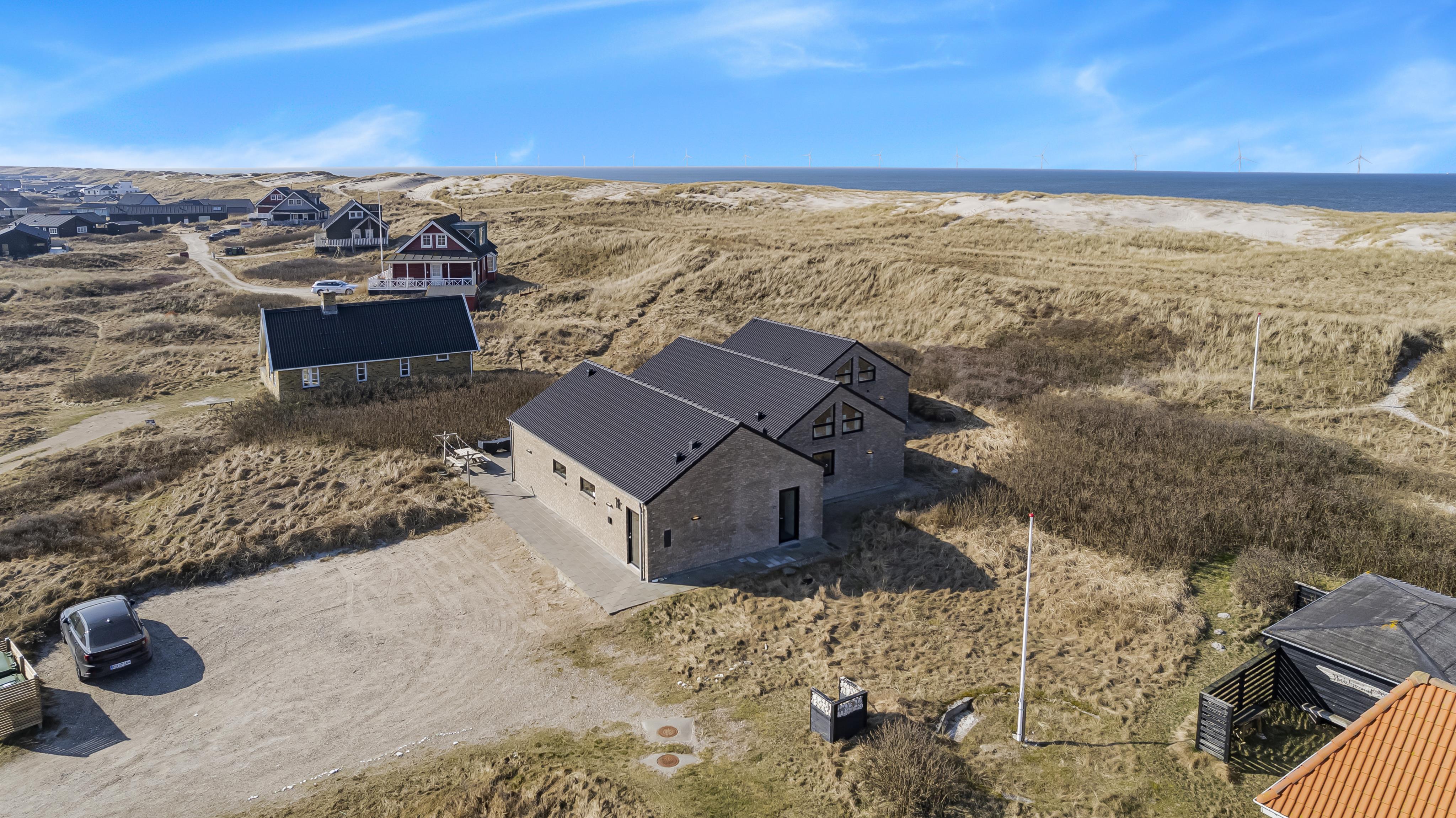 Nybygget luksus hus i første række til Vesterhavet med klitudsigt. Aktivitets- og wellnessferiehus med pool, spa, sauna, gratis W-lan og aktivitetsrum med kombineret poolbord og bordtennis. Et moderne og meget æstetisk feriehus med alle tænkelige faciliteter. Et hus med god plads til hele familien og kun 75 m til Vesterhavet. Nyd husets mange muligheder eller gå en tur ved Vesterhavet.