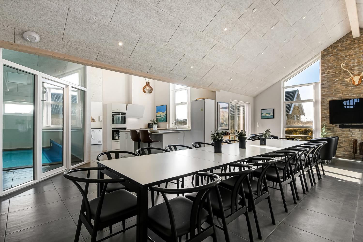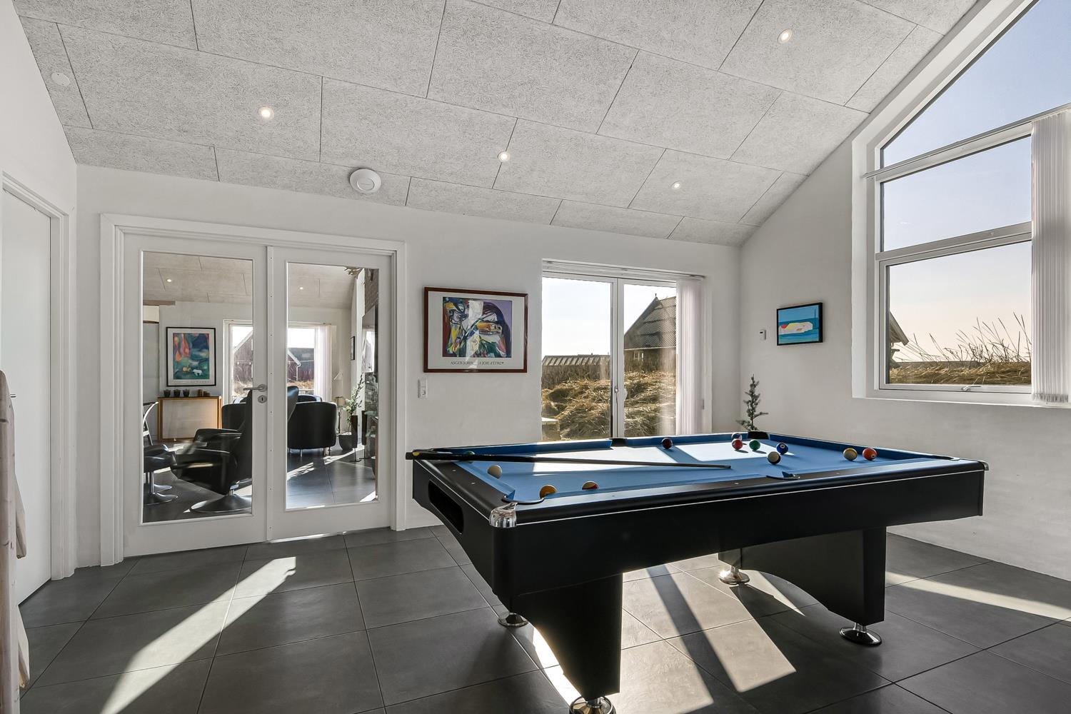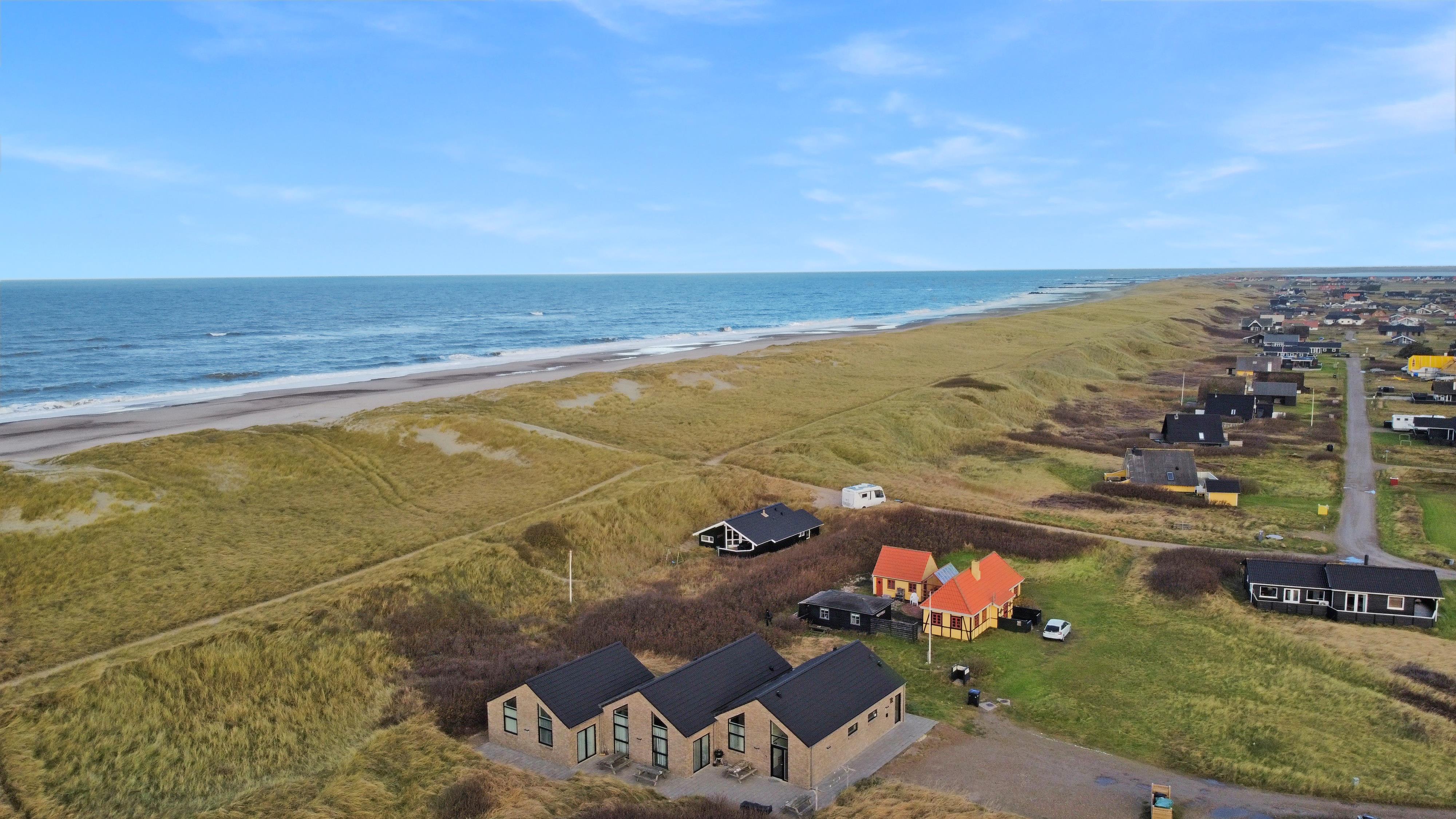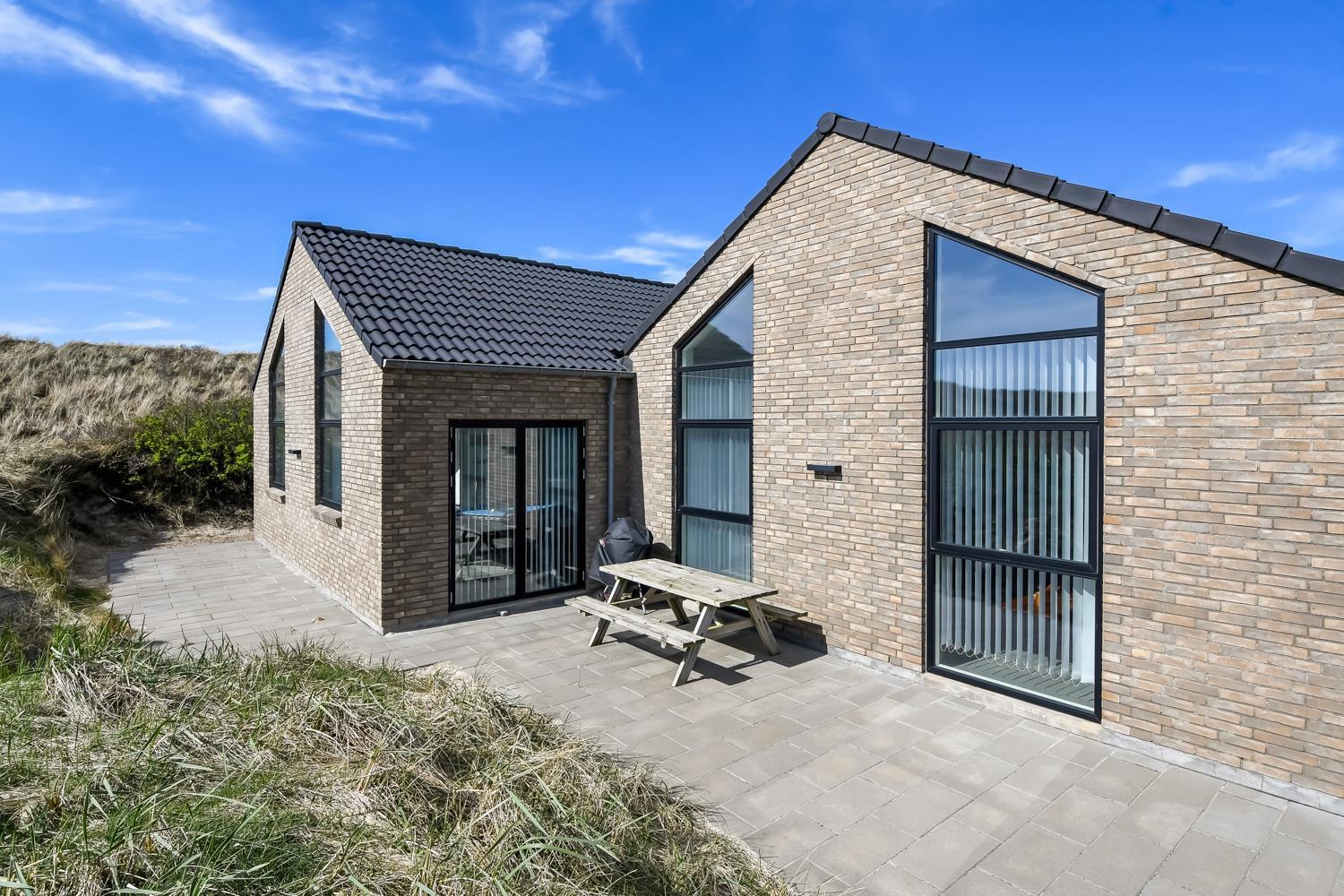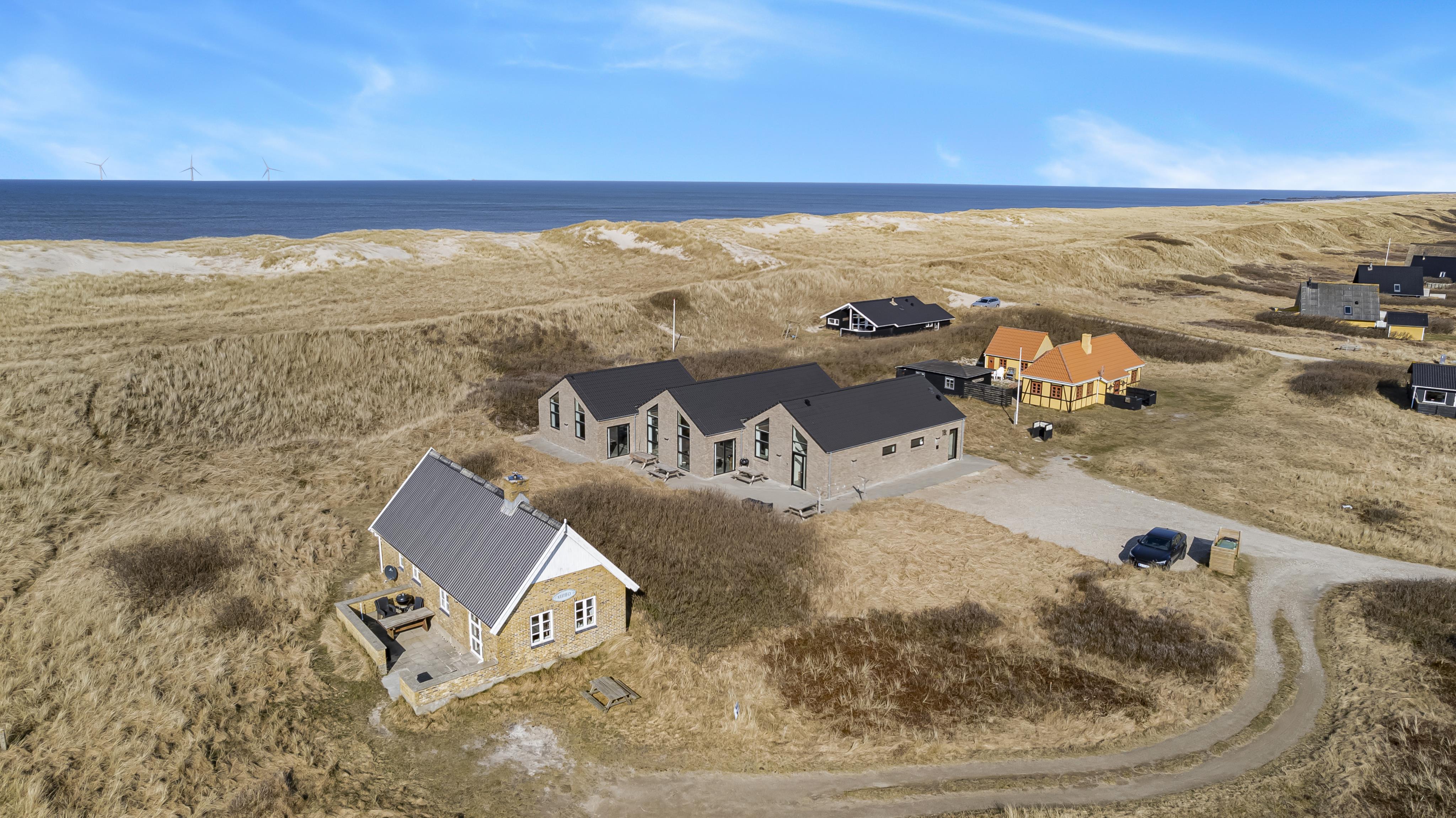 Nybygget luksus hus i første række til Vesterhavet med klitudsigt. Aktivitets- og wellnessferiehus med pool, spa, sauna, gratis W-lan og aktivitetsrum med kombineret poolbord og bordtennis. Et moderne og meget æstetisk feriehus med alle tænkelige faciliteter. Et hus med god plads til hele familien og kun 75 m til Vesterhavet. Nyd husets mange muligheder eller gå en tur ved Vesterhavet.
