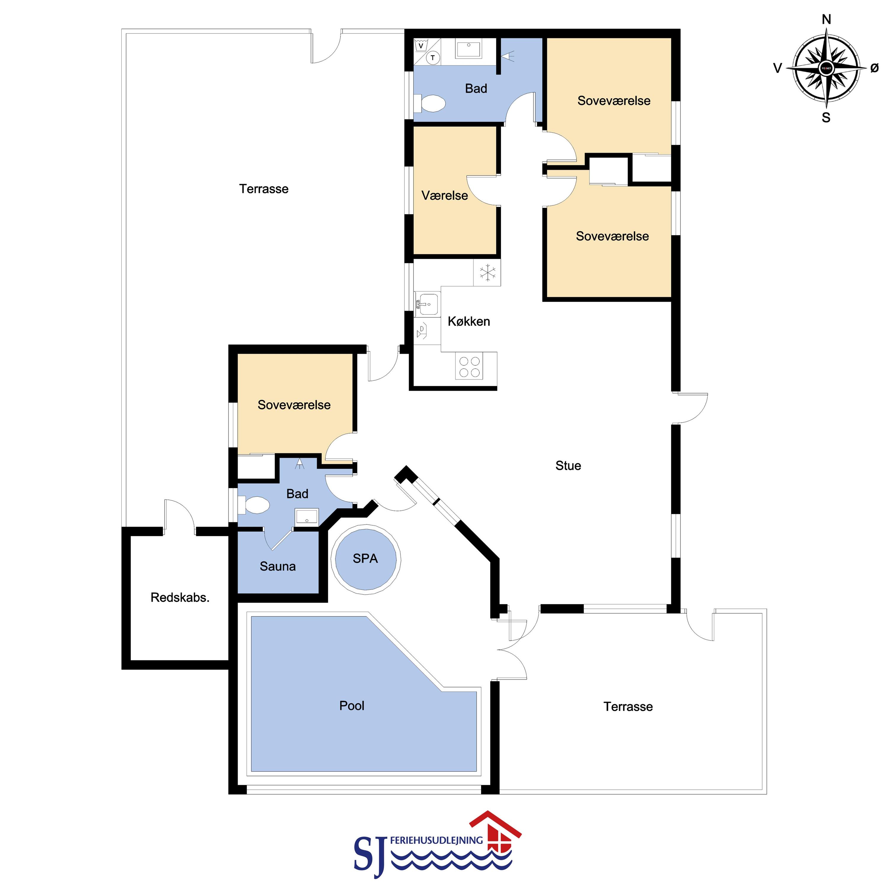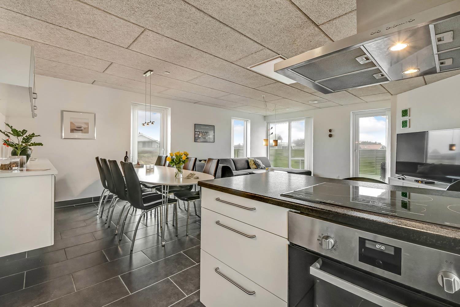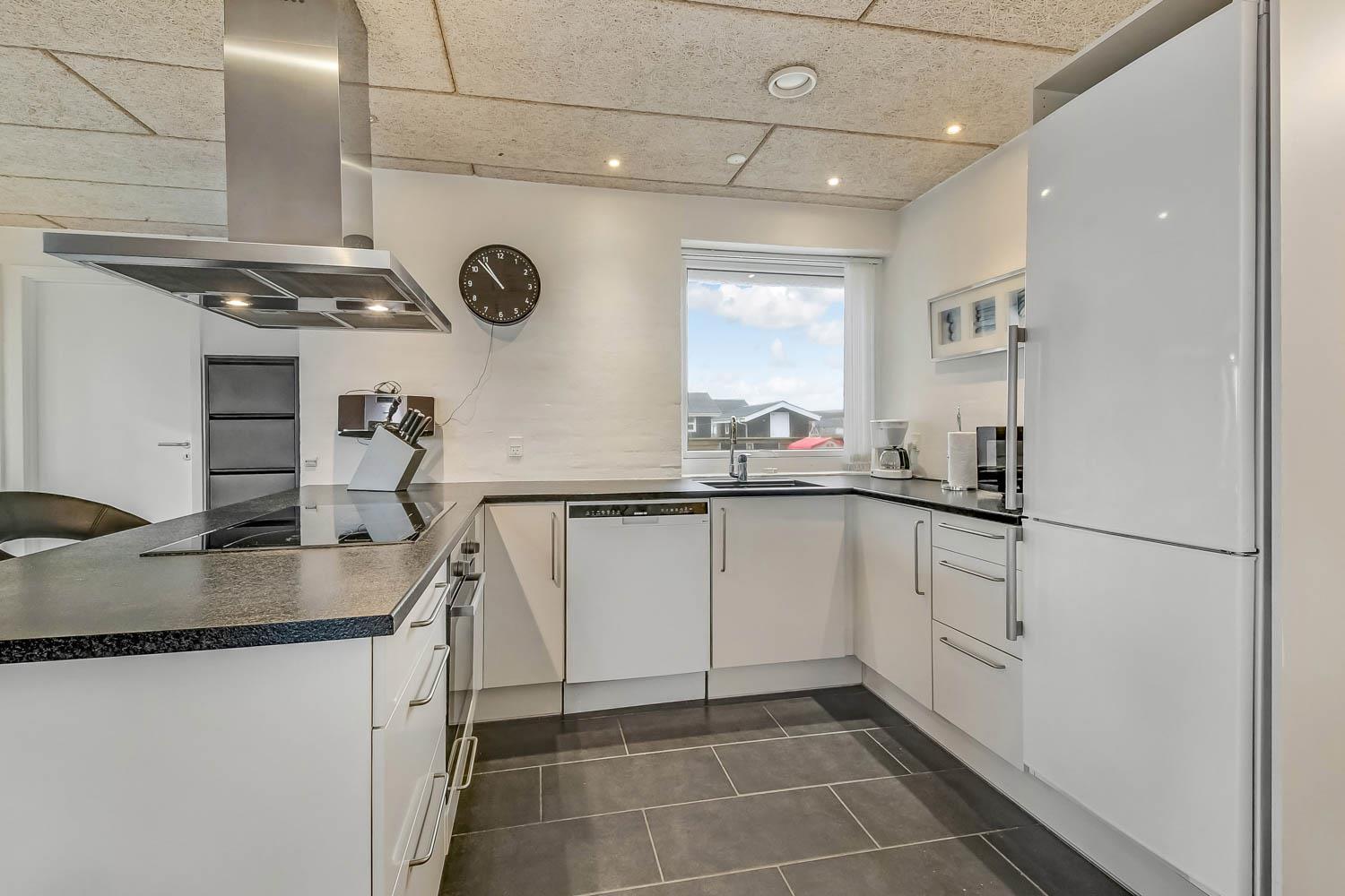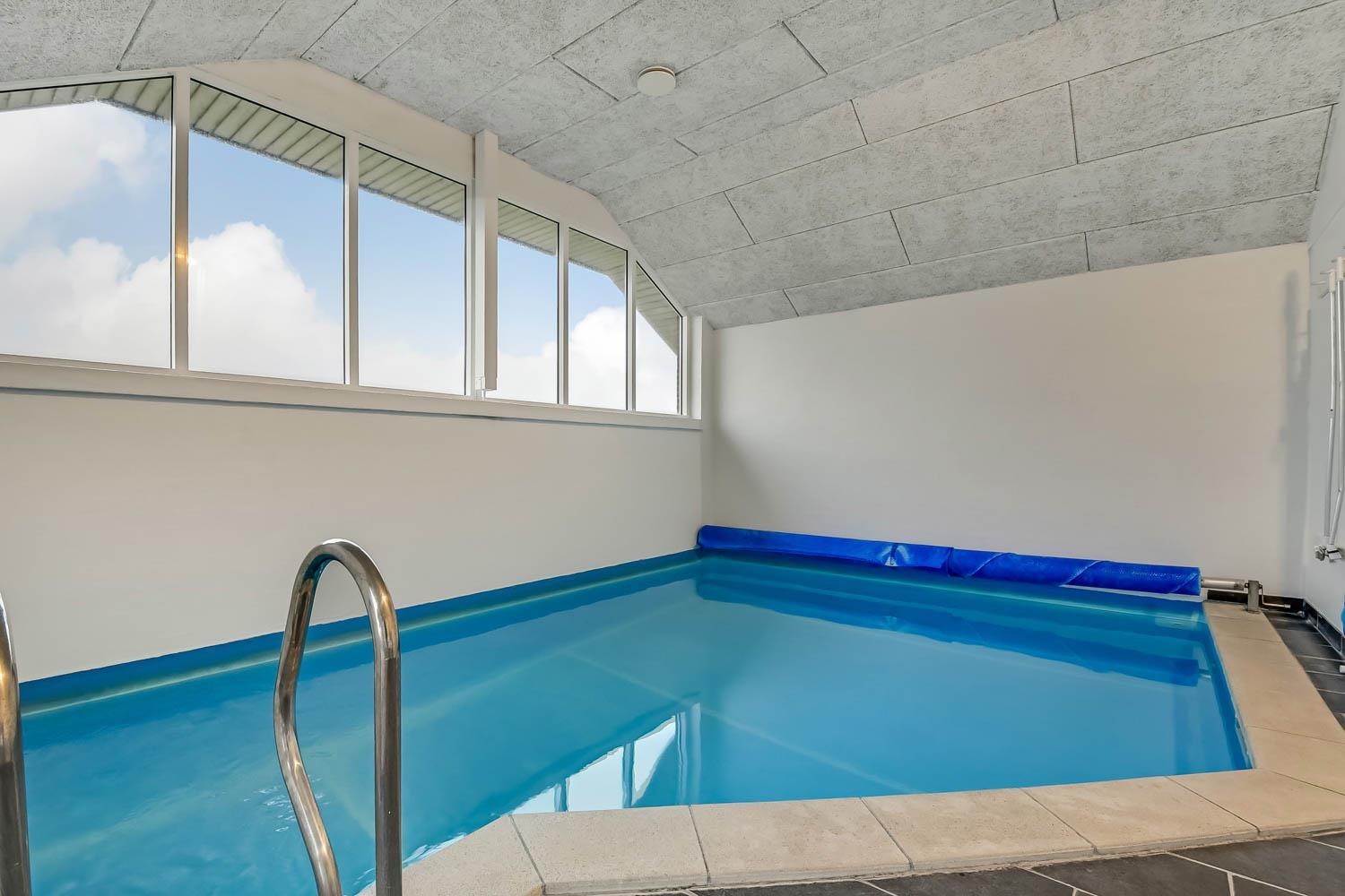 Totalrenoveret feriehus som er indrettet med et dejligt og meget funktionelt køkken, som er kombineret med stuen. Køkkenet er selvfølgelig med elkeramisk kogeplade og indbygningsovn, opvaskemaskine og mikroovn samt et køle-fryseskab (70 l fryser). Stuen er med komfortabel møblering og her finder du fladskærms-TV med DR1 og TV2 samt en parabol, hvorfra man kan tage de tyske programmer, DVD og stereoanlæg. 4 gode soverum med 1DS + 1DS + 1DS + 4K. Til de mindste er der barnestol og barneseng til rådighed. Huset er med 2 badeværelser, hvor det ene er med håndvask, bruser og toilet samt vaskemaskine og gulvvarme. Det andet er med direkte adgang fra poolrummet og med bruser, toilet, håndvask samt adgang til saunaen, dette badeværelse er selvfølgelig også med gulvvarme. Der er samme klinkegulv med gulvvarme, som går gennem hele huset. Poolrummet består selvfølgelig af selve poolen og har desuden et spabad til 4 personer. Har man el-bil eller en Plug-In hybrid, så er der ved Ladeboks til Type 2 ladestik, der kan lade op til 11 kWh. 2 hunde er tilladt. Dette hus er et ikke rygerhus. Depositum vintersæson kr. 4500 og sommersæson kr. 2200.