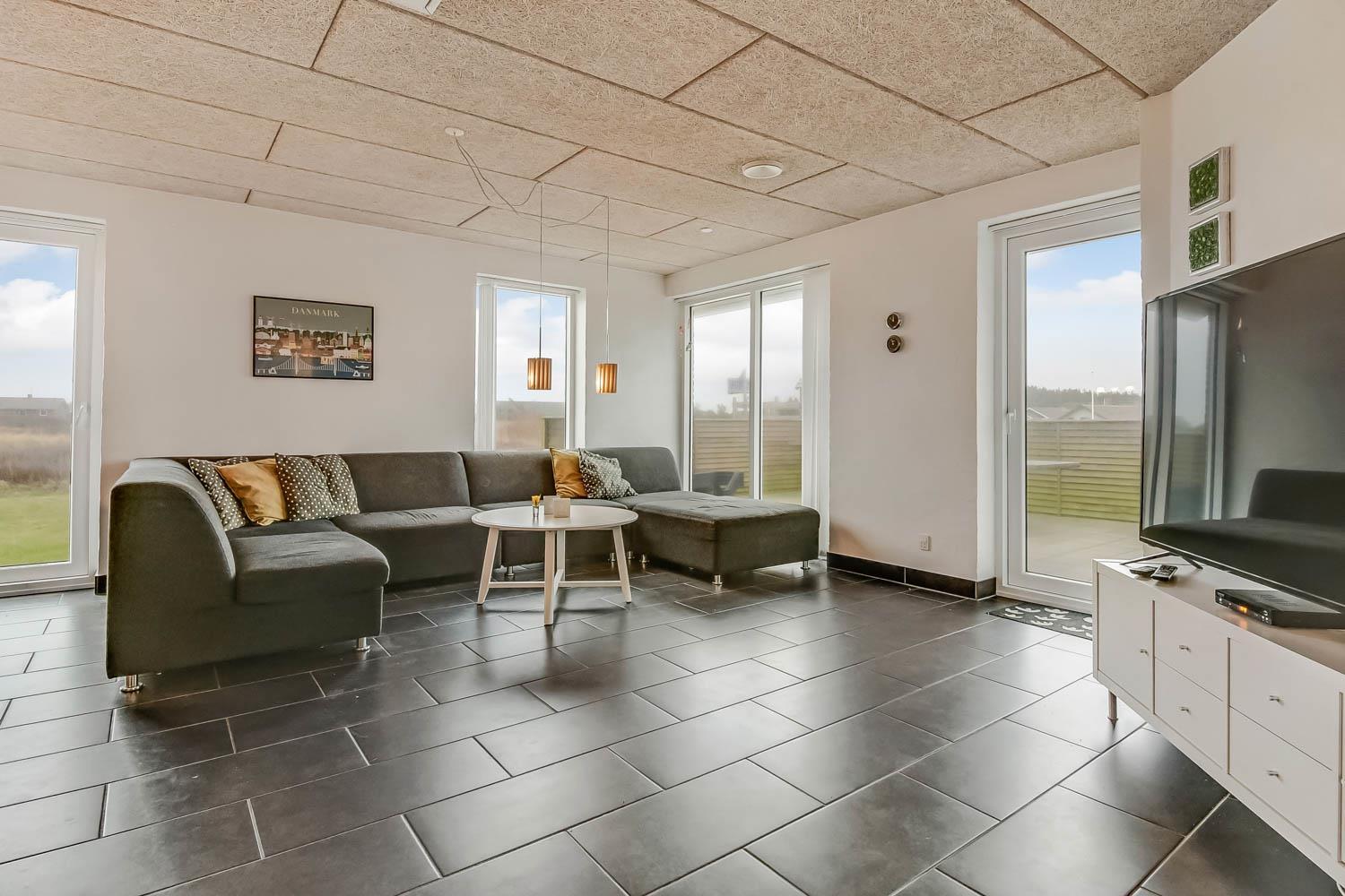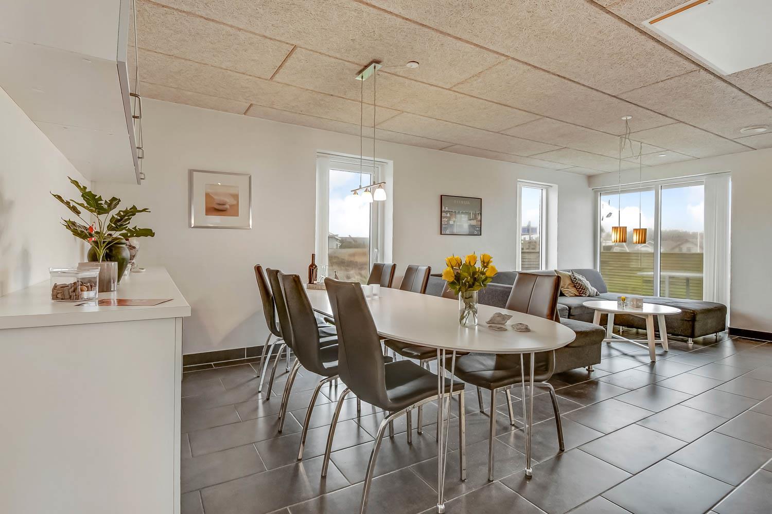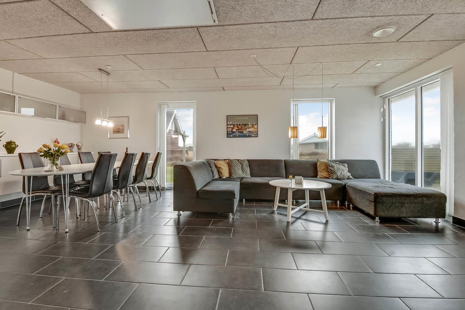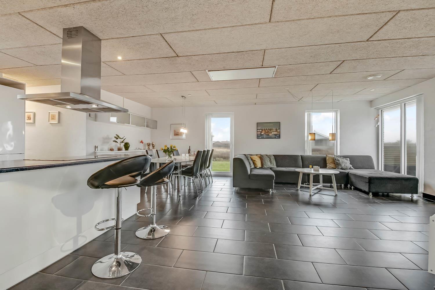Dette smagfulde og lyst indrettede stenhus med pool er beliggende tæt på Vesterhavet( kun 300 m) og meget velegnet til 2 familier. 2 hunde er velkomne i huset. Lader til el-bil og gratis internetadgang.Huset er opvarmet af jordvarme og på taget er der solceller, som hjælper til en billigere strøm.