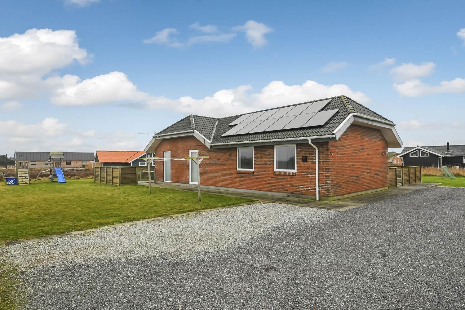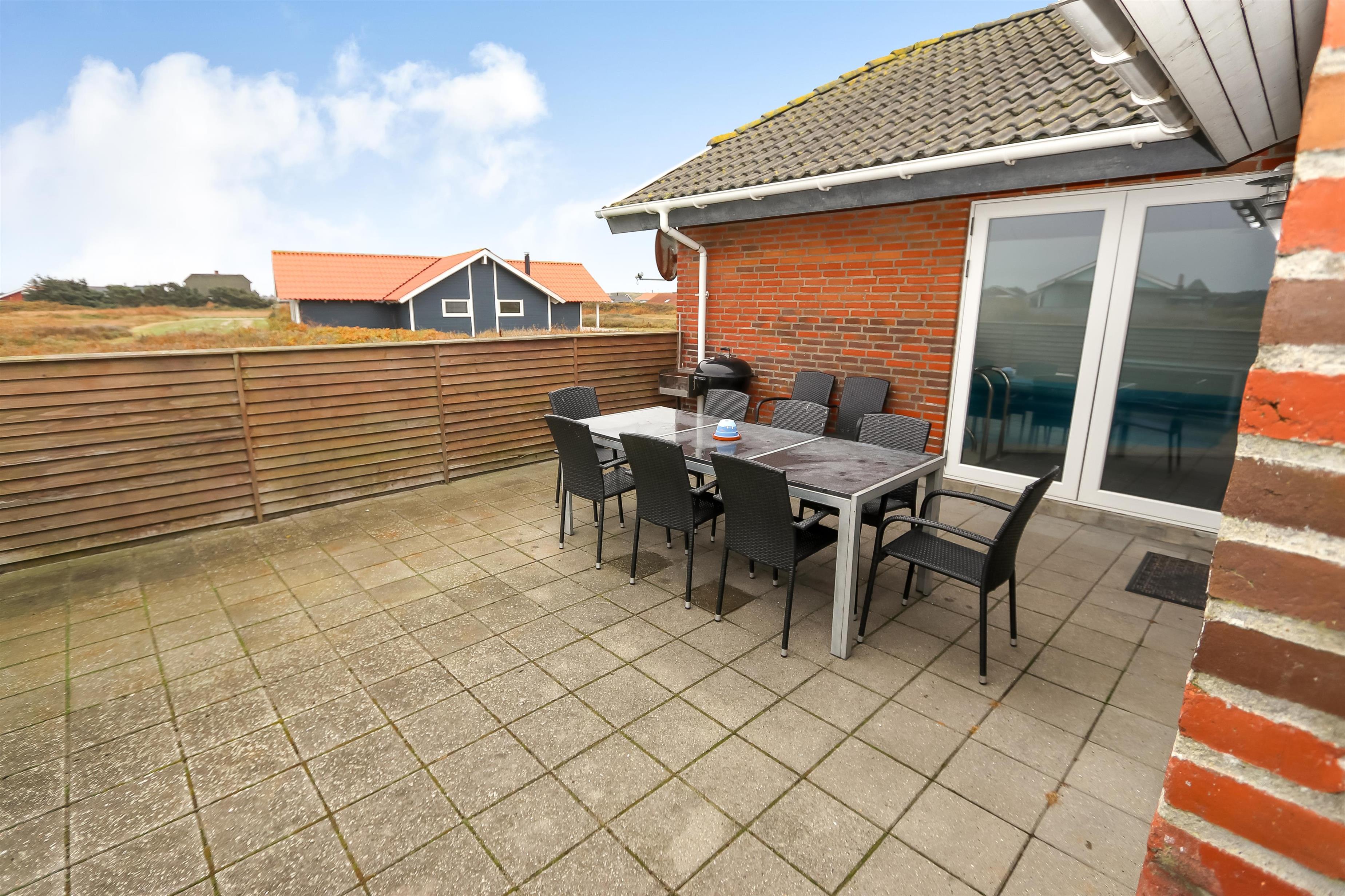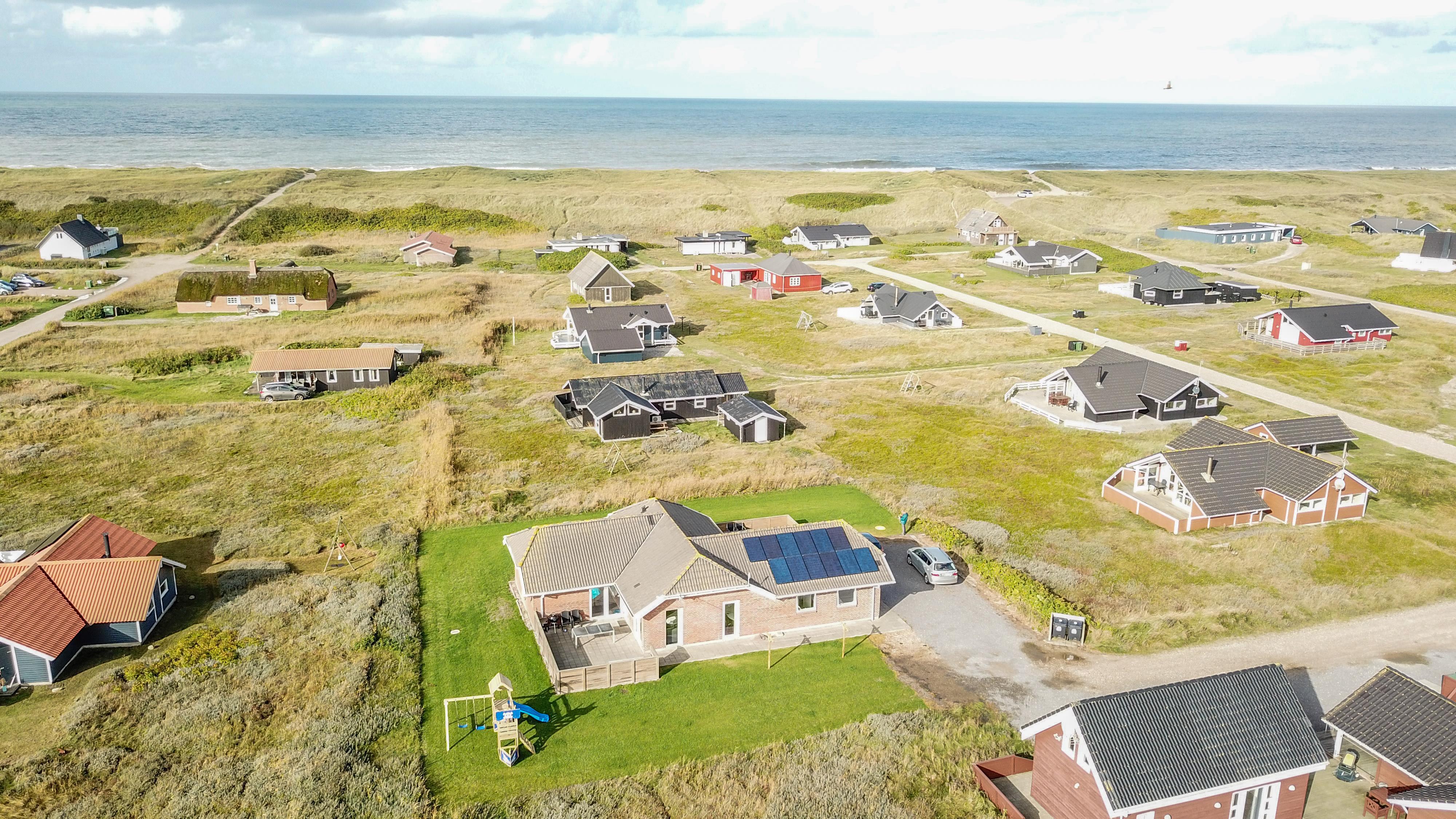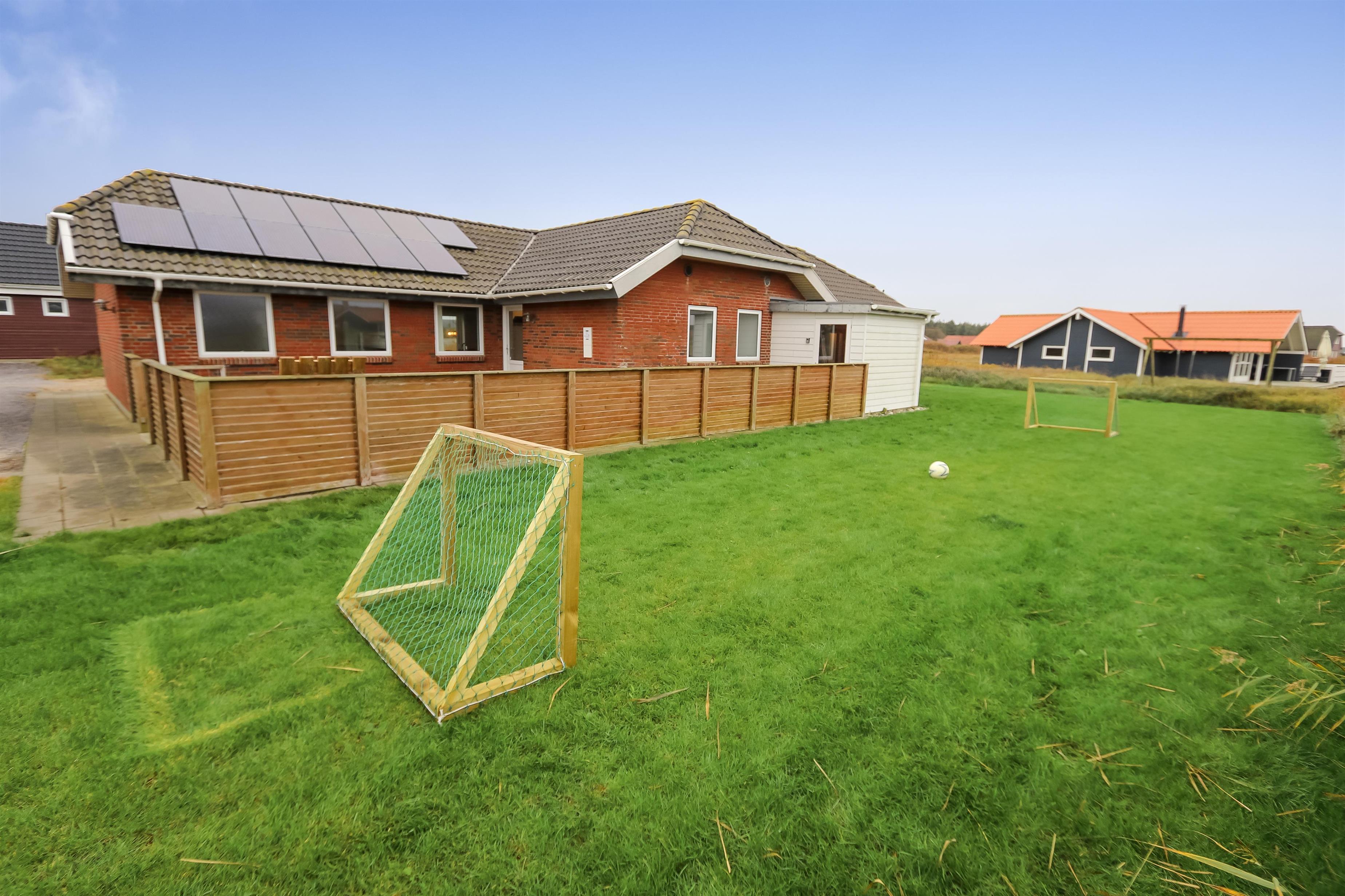 Huset er beliggende på en dejlig naturgrund med udgang til 2 terrasser hvor der selvfølgelig er havemøbler, solvogne og grill. Den ene terrasse er indhegnet. Til de små gæster er der legeborg med gynger, rutsjebane og en sandkasse. Fra huset er der ikke langt at gå for at komme op til den dejlige strand og Vesterhavet. Skulle man få lyst til at opleve noget af det, området ellers har at byde på, er der ikke langt at køre for at komme f.eks til Lemvig. En skøn og flot by med lidt af hvert at byde på, med bl.a. en dejlig havnepromenade, en gågade med gode butikker der indbyder til shopping, samt en skaterbane, som er gratis at benytte. Fra Lemvig har man også muligheden for at gå en tur på Planetstien, som starter ved Lemvig Museum og strækker sig over 12 km.