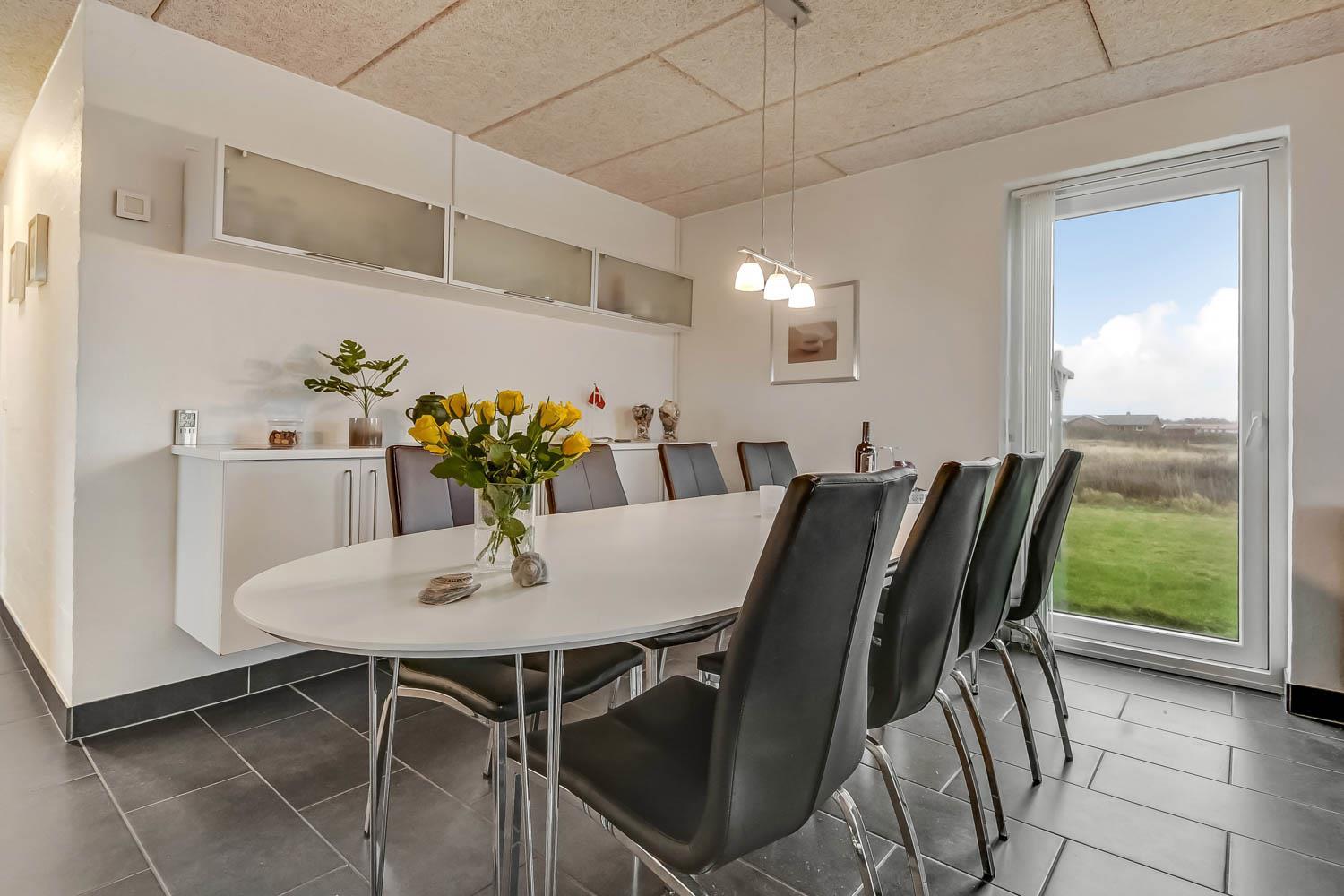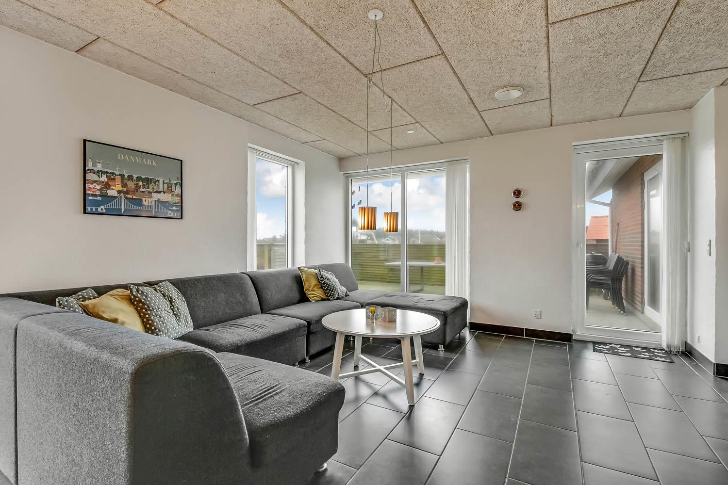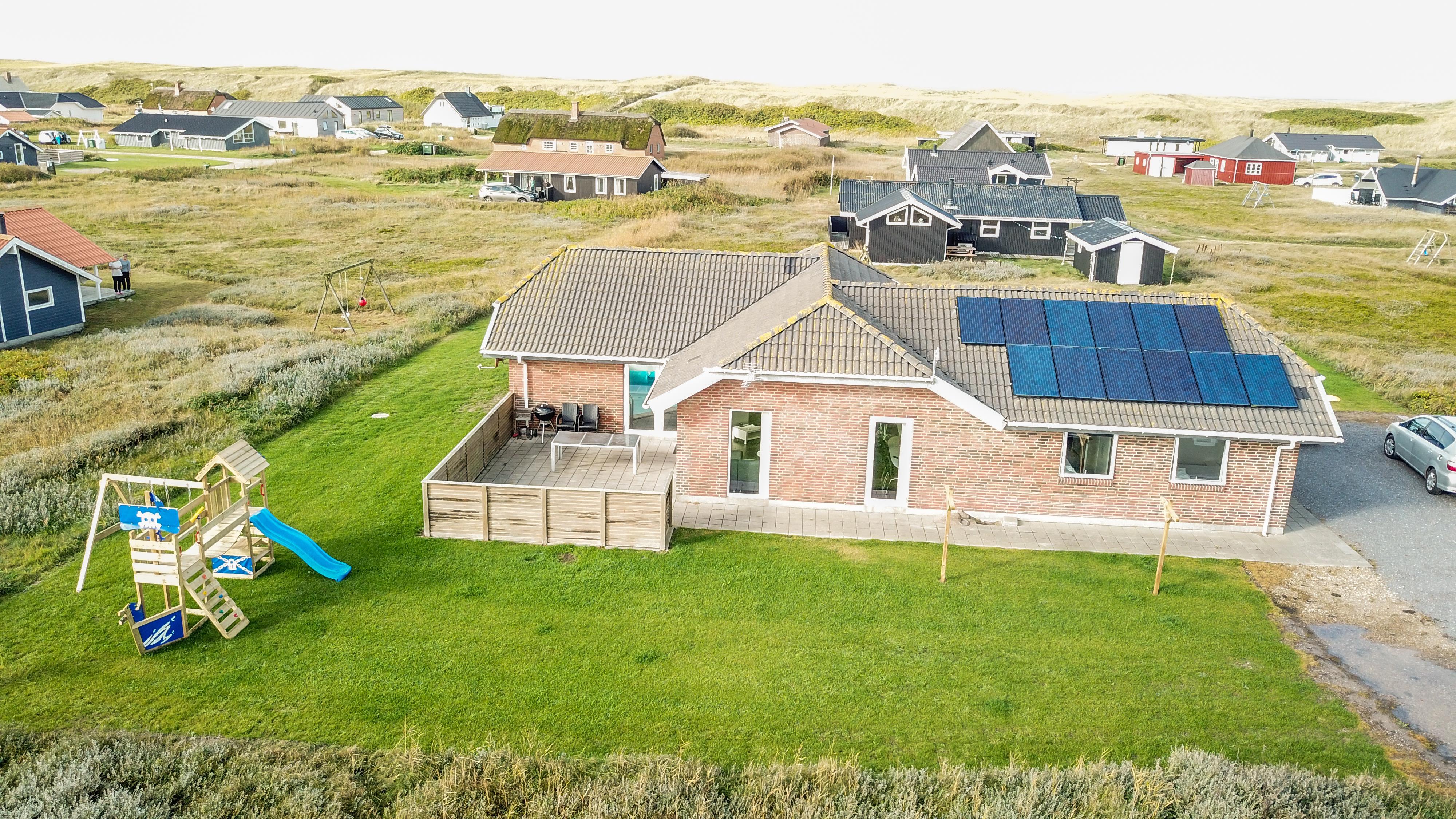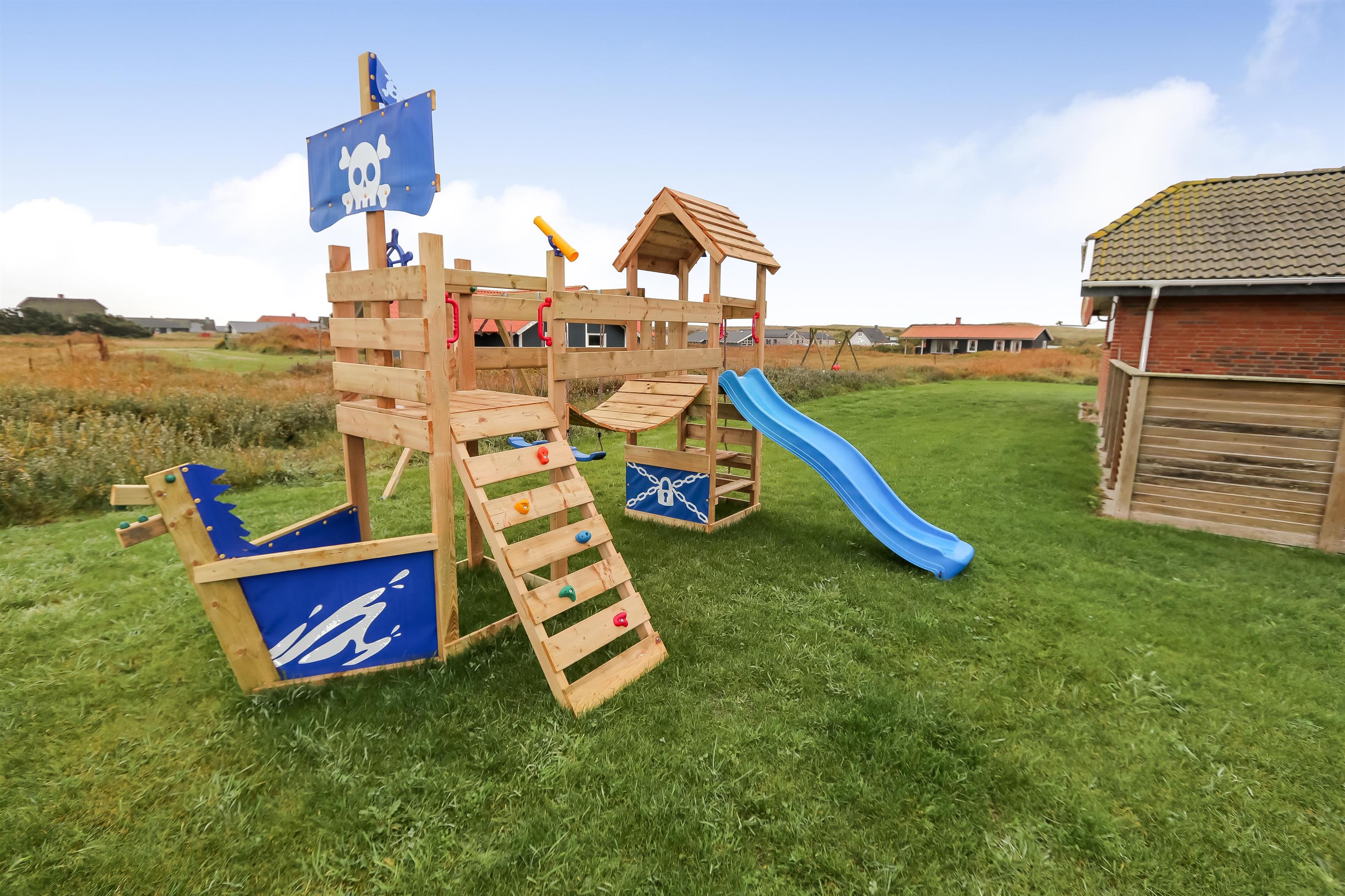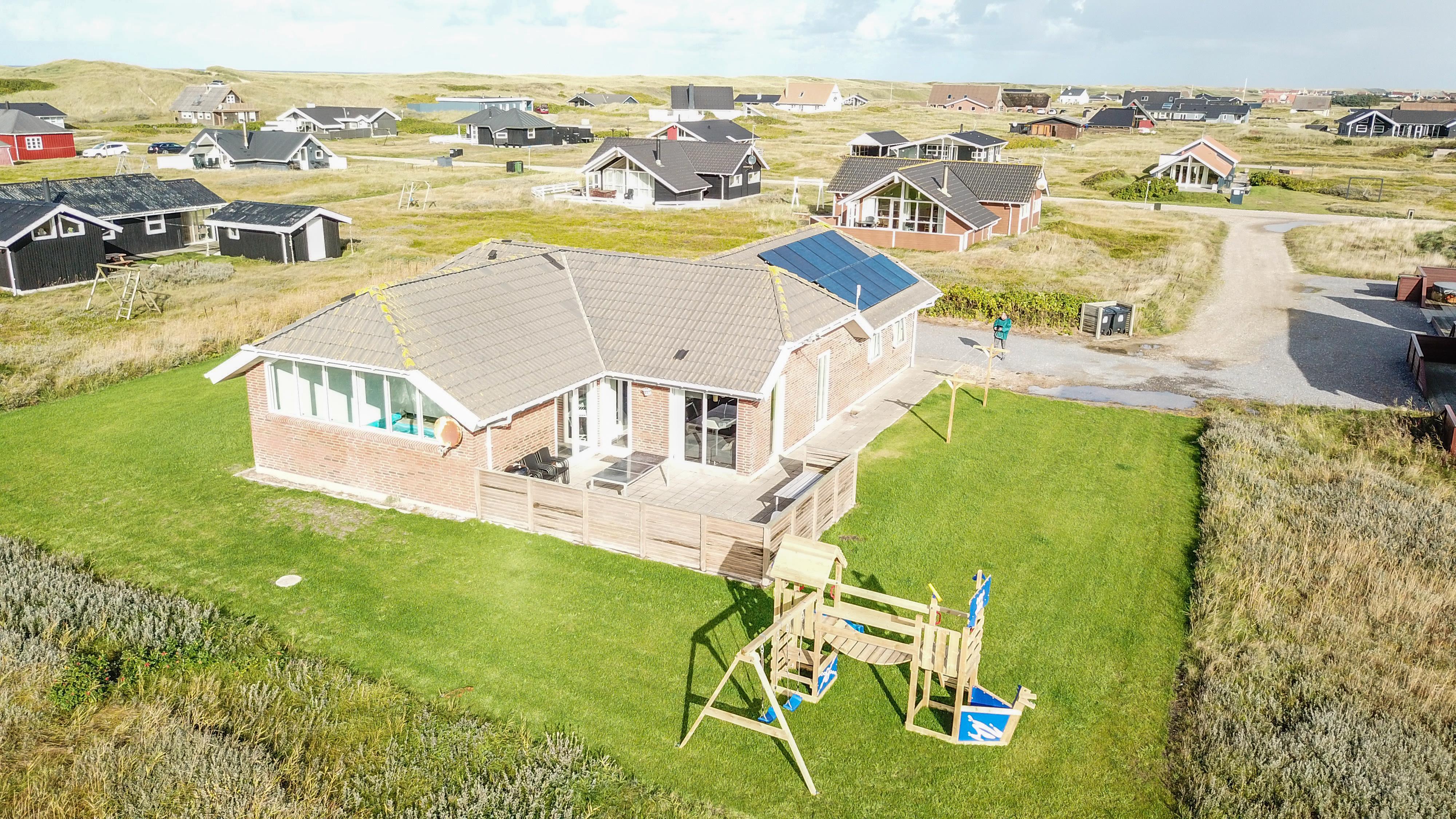 Huset er beliggende på en dejlig naturgrund med udgang til 2 terrasser hvor der selvfølgelig er havemøbler, solvogne og grill. Den ene terrasse er indhegnet. Til de små gæster er der legeborg med gynger, rutsjebane og en sandkasse. Fra huset er der ikke langt at gå for at komme op til den dejlige strand og Vesterhavet. Skulle man få lyst til at opleve noget af det, området ellers har at byde på, er der ikke langt at køre for at komme f.eks til Lemvig. En skøn og flot by med lidt af hvert at byde på, med bl.a. en dejlig havnepromenade, en gågade med gode butikker der indbyder til shopping, samt en skaterbane, som er gratis at benytte. Fra Lemvig har man også muligheden for at gå en tur på Planetstien, som starter ved Lemvig Museum og strækker sig over 12 km.