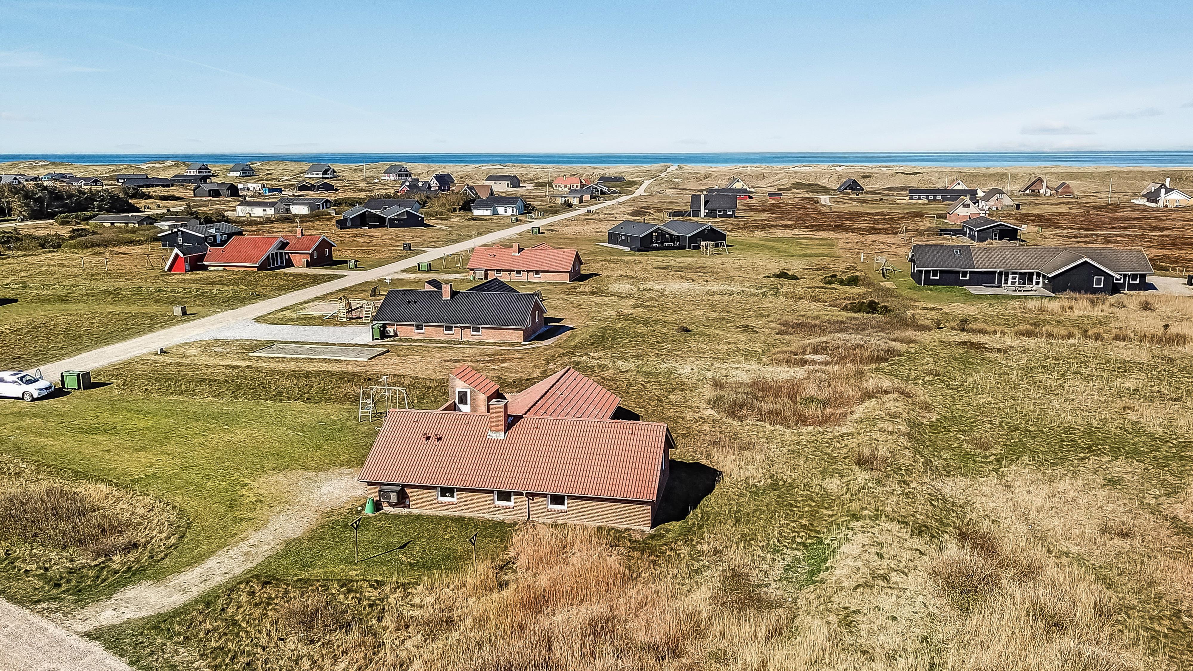 Huset terrasse har direkte adgang til poolen, så man kan køle ned i poolen eller omvendt kan man fra saunaen køle ned udenfor om vinteren på terrassen. Terrassen er hele 45 kvadratmeter og har havemøbler, solvogne og grill. Her kan man rigtig hygge sig. På grunden findes der ligeledes gynger og sandkasse til børnene. Kun 300 meter fra huset ligger den store sandkasse - stranden ved Vesterhavet - som er et alternativ til poolen om sommeren. En lille køretur væk ligger havnebyen Thyborøn med flere attraktioner, såsom Jyllandsakvariet, Sneglehuset og Kystcenteret samt naturligvis havnemiljøet. Ligeledes ligger den charmerende gamle by Lemvig med specialbutikker og bakket landskab også blot 15 km væk. Indkøbsmuligheder er der i den gamle fiskerby Harboøre med en Dagli'-Brugs.