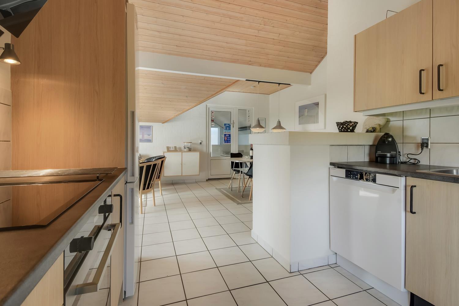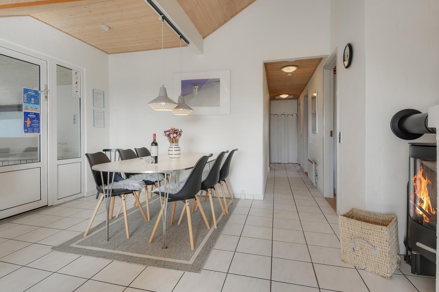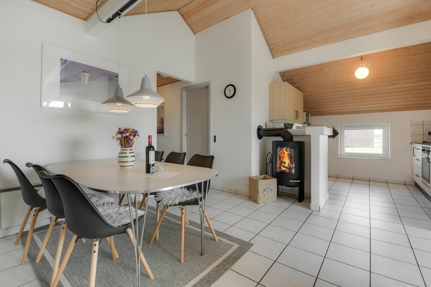 Det åbne køkken med opholds- og spiseplads er det naturlige samlingspunkt i dette feriehus. Her finder du spisebord, sofa, brændeovn, smart internet-tv med danske (DR1, TV2) og tyske programmer (satellitmodtagelse) samt dvd-afspiller. Med CD-afspilleren kan du lytte til musik i stuen eller gennem højttalerne i poolrummet. Gratis WiFi til streaming, hvis du medbringer en passende enhed. Køkkenet er udstyret med alle de bekvemmeligheder, du kan forvente hjemmefra: køleskab og fryser, keramisk kogeplade, mikroovn og opvaskemaskine. Der er også en separat 50 liters fryser. “Genvex” stueventilation sikrer et godt indeklima. Stuen fører til poolrummet med et behageligt opholdsområde og et 4-personers spabad. Poolen måler 5,50 x 3,00 x 1,40 meter. Herfra er der adgang til badeværelse med gulvvarme, toilet, håndvask, bruseniche og sauna. Der er 4 soveværelser, bestående af 2 værelser med hver 1 dobbeltseng (1 DB + 1 DB), 1 værelse med 2 enkeltsenge (2 EB) og 1 værelse med 2 køjesenge til 4 sovepladser. En høj stol er tilgængelig. I denne del af huset er der endnu et badeværelse med bruseniche, toilet og håndvask. Der er vaskemaskine og tørretumbler i indgangspartiet. Et kæledyr er tilladt. Ikke-ryger hus. Depositum DKK 2200 i sommersæsonen og i vintersæsonen kr. 3.000.