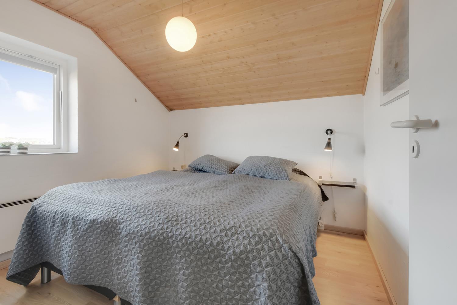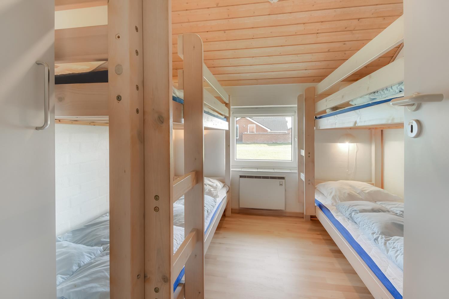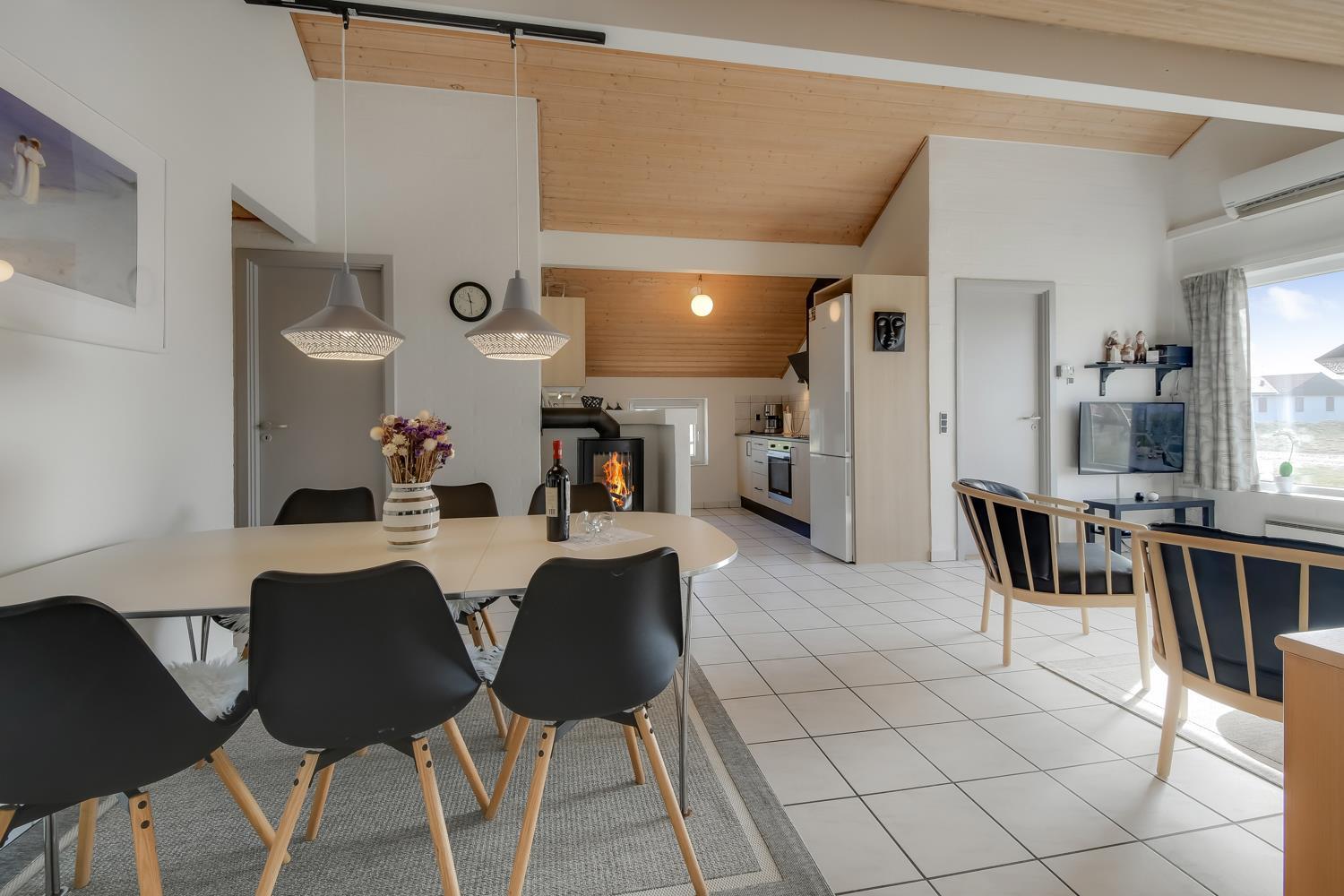 Det åbne køkken med opholds- og spiseplads er det naturlige samlingspunkt i dette feriehus. Her finder du spisebord, sofa, brændeovn, smart internet-tv med danske (DR1, TV2) og tyske programmer (satellitmodtagelse) samt dvd-afspiller. Med CD-afspilleren kan du lytte til musik i stuen eller gennem højttalerne i poolrummet. Gratis WiFi til streaming, hvis du medbringer en passende enhed. Køkkenet er udstyret med alle de bekvemmeligheder, du kan forvente hjemmefra: køleskab og fryser, keramisk kogeplade, mikroovn og opvaskemaskine. Der er også en separat 50 liters fryser. “Genvex” stueventilation sikrer et godt indeklima. Stuen fører til poolrummet med et behageligt opholdsområde og et 4-personers spabad. Poolen måler 5,50 x 3,00 x 1,40 meter. Herfra er der adgang til badeværelse med gulvvarme, toilet, håndvask, bruseniche og sauna. Der er 4 soveværelser, bestående af 2 værelser med hver 1 dobbeltseng (1 DB + 1 DB), 1 værelse med 2 enkeltsenge (2 EB) og 1 værelse med 2 køjesenge til 4 sovepladser. En høj stol er tilgængelig. I denne del af huset er der endnu et badeværelse med bruseniche, toilet og håndvask. Der er vaskemaskine og tørretumbler i indgangspartiet. Et kæledyr er tilladt. Ikke-ryger hus. Depositum DKK 2200 i sommersæsonen og i vintersæsonen kr. 3.000.
