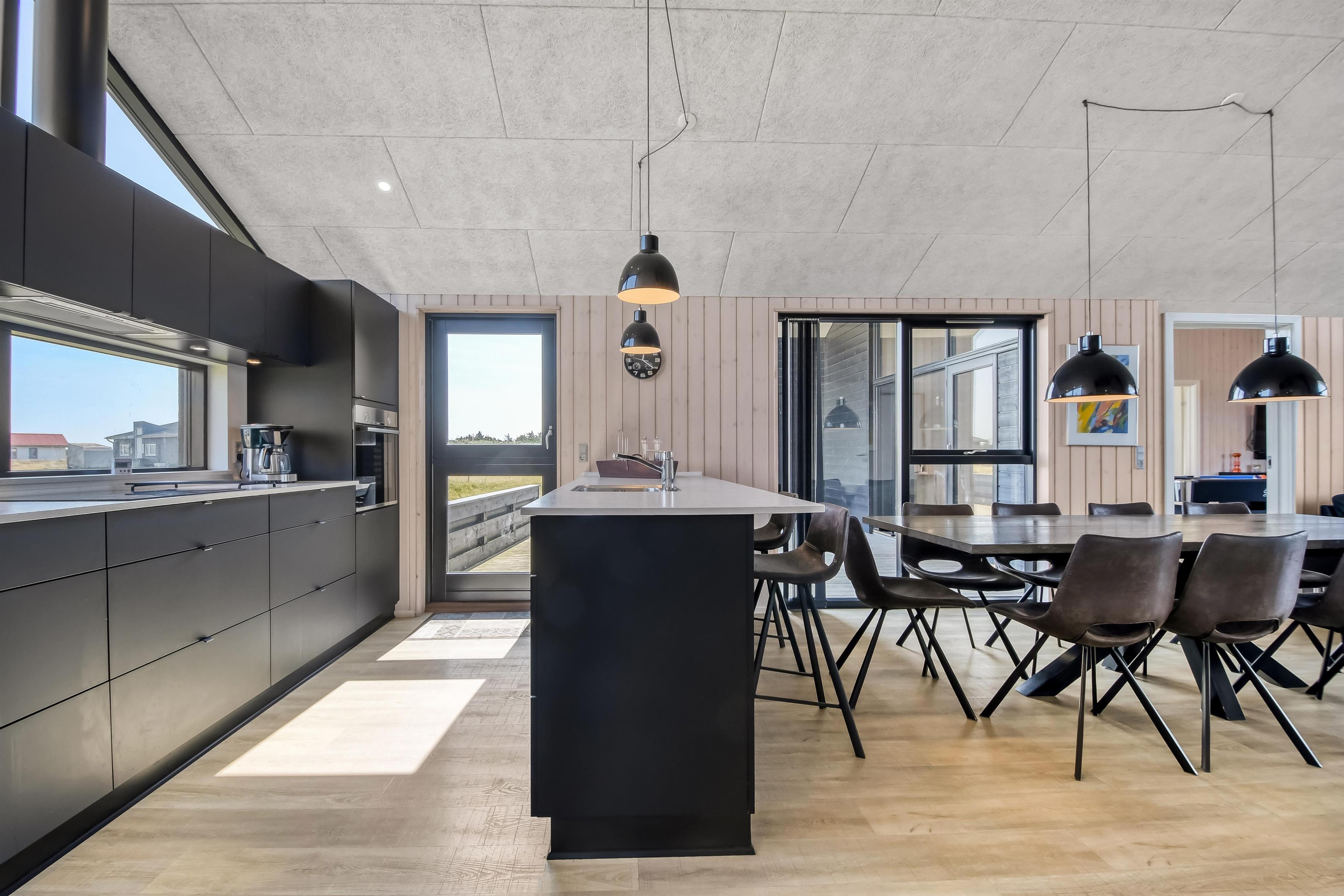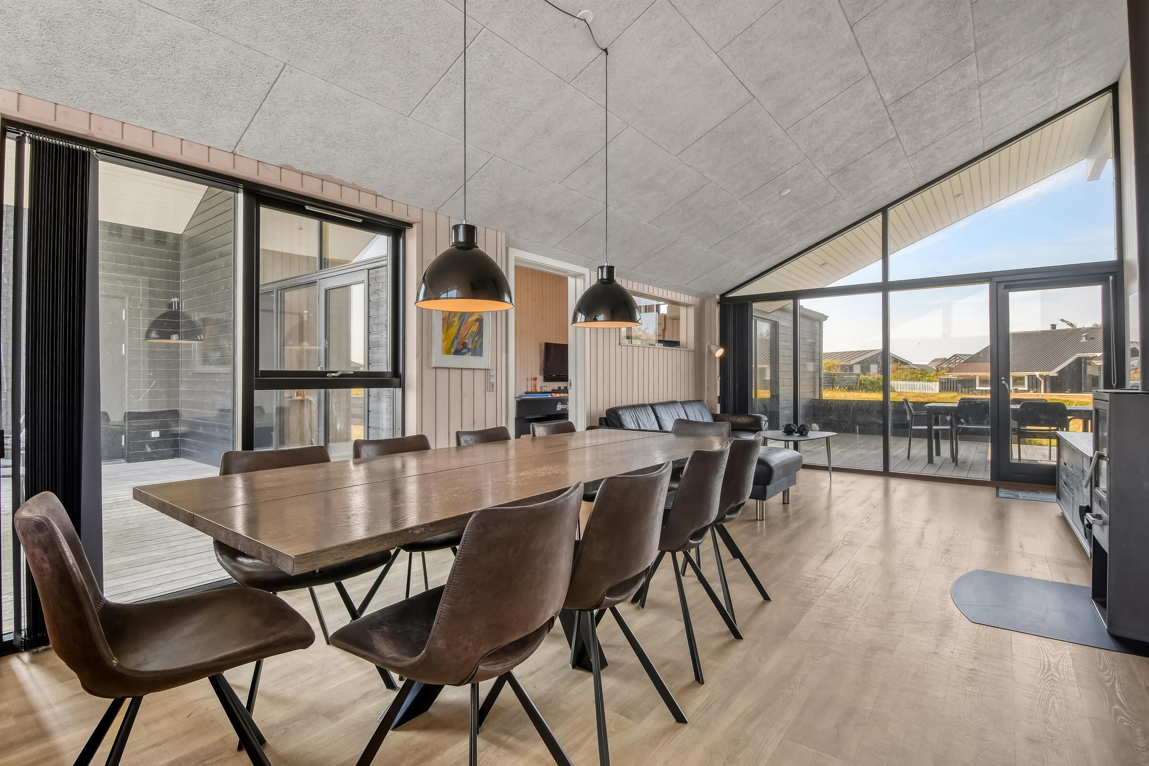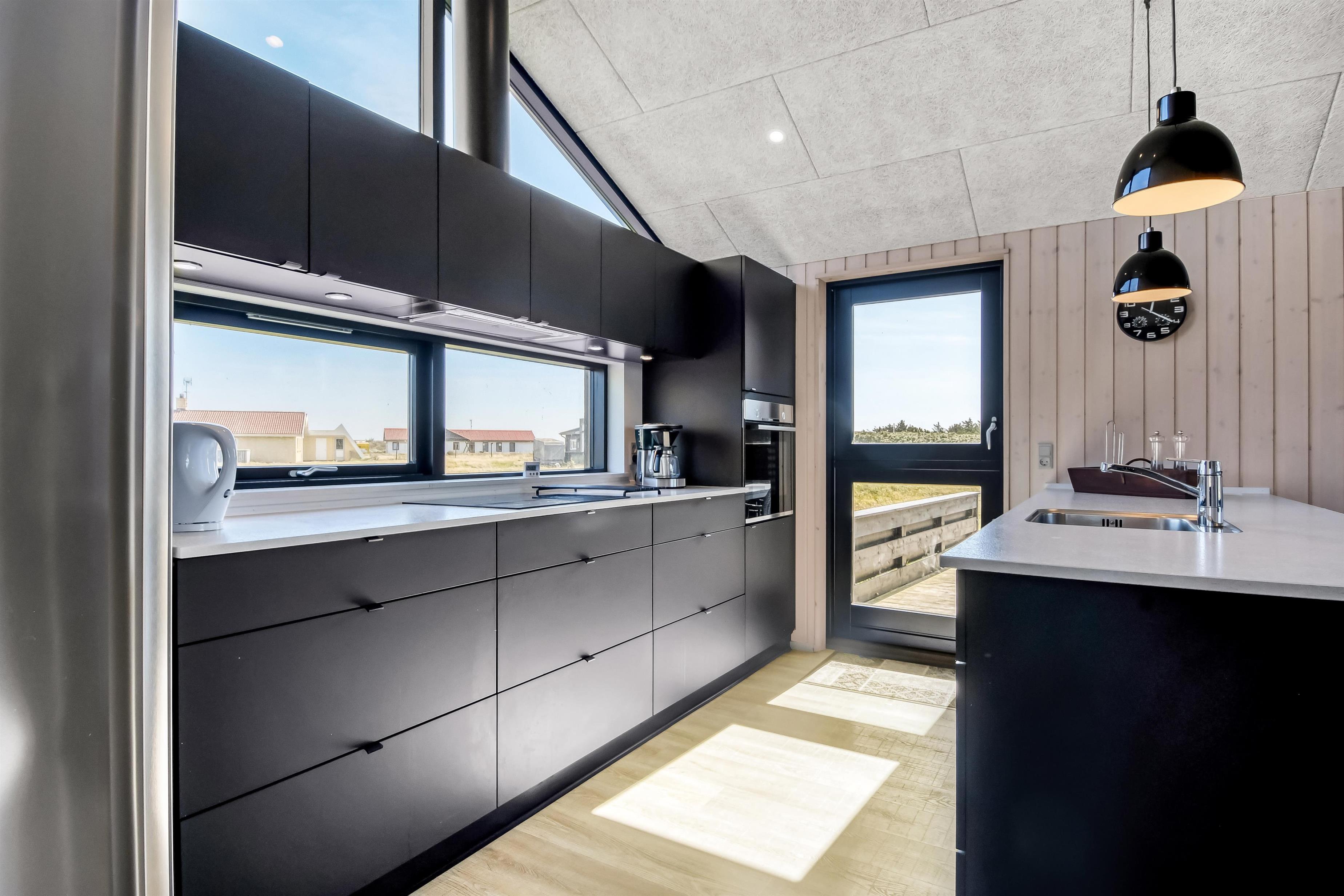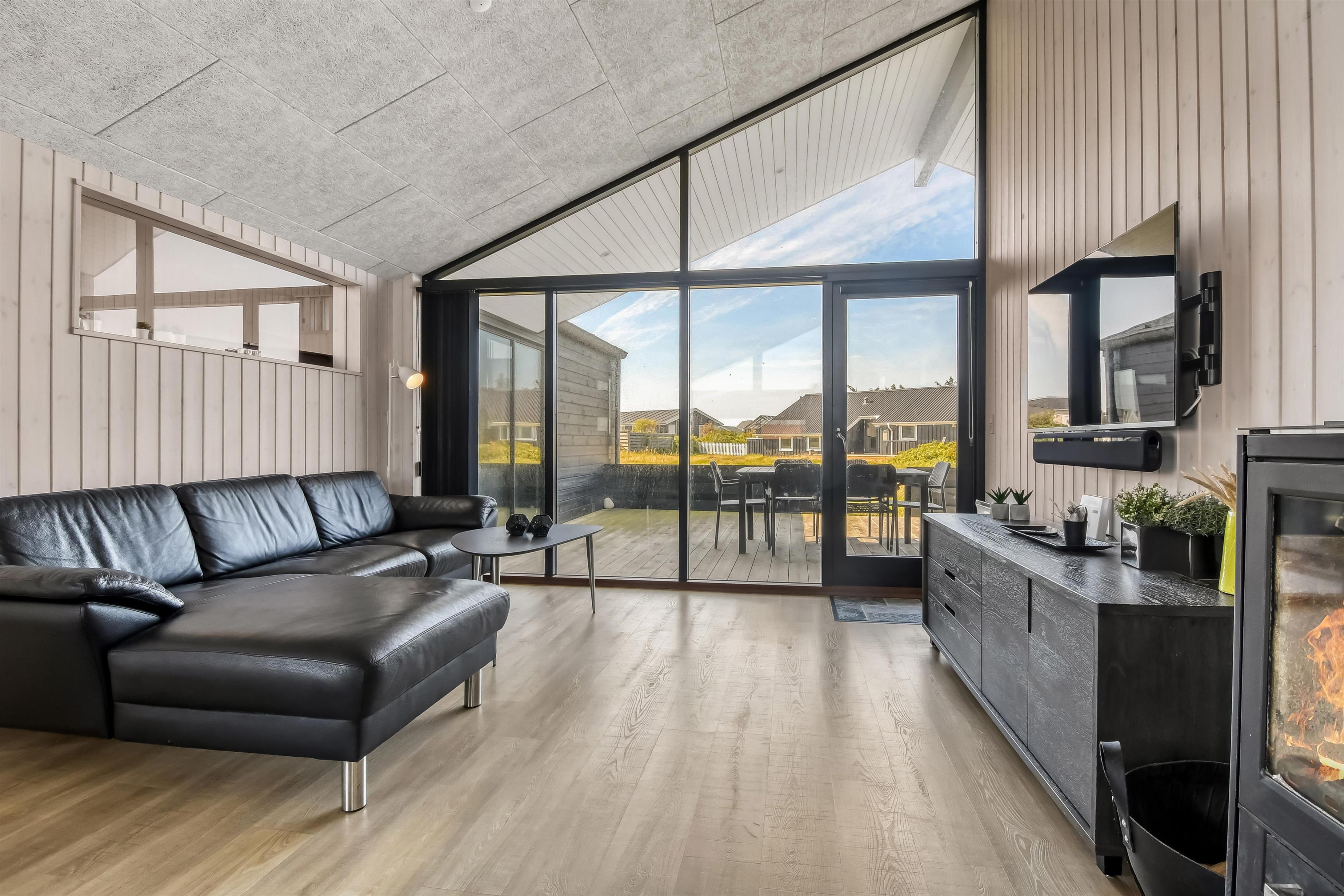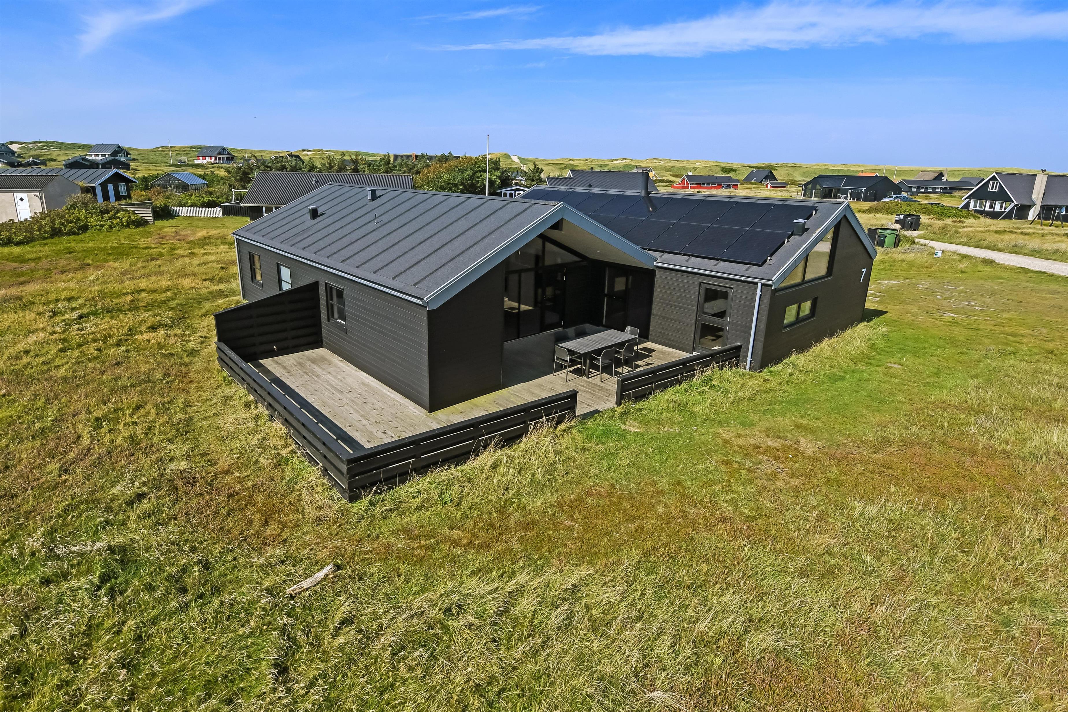 Kun 200 meter fra huset ligger det brusende Vesterhav og fra huset kan de høje klitter ses og nydes. 2 delvist overdækket terrasseanlæg giver unikke muligheder for en plads i solen hele dagen og begge terrasser har havemøbler. Der er grill og liggesole som kan flyttes efter behov. Ekstra opbevaringsrum med seperat fryser på ca. 100L. Hver dag byder Vesterhavet på nye maleriske oplevelse, der invitere til en frisk gå- eller løbetur. Eller hvad med en lille tur på ca. 10 - 15 min op til områdets lille købmand som i sæsonen har har åbent og byder på frisk morgenbrød og hvor de daglige indkøb også kan klares. Så hvad enten du er til aktiv ferie eller total afslapning danner dette flotte feriehus den perfekte ramme både hvad angår hus, beliggenhed og omgivelser.