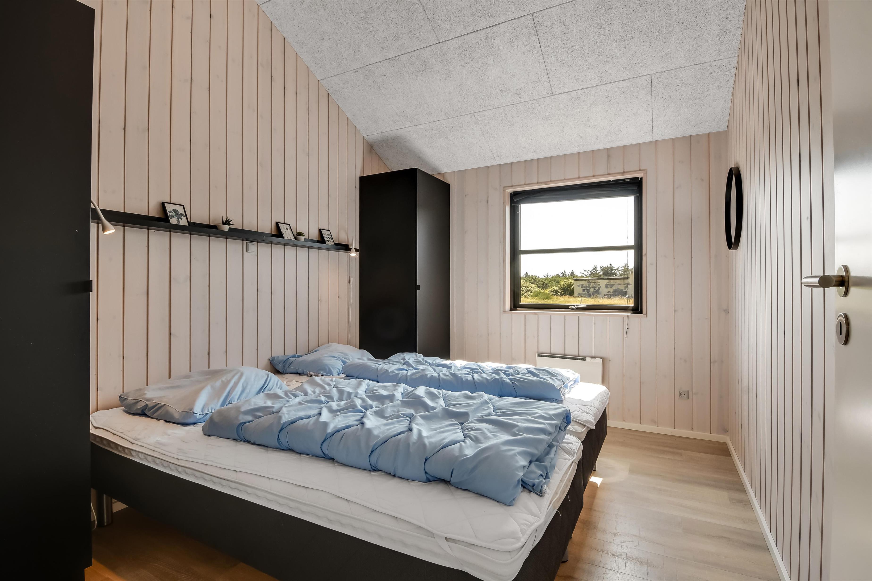 Hele huset er indrettet i varme farver og et materiale valg som skaber sammenhæng. Det samme trægulv går igen i alle opholds- og soverum. I alle rum er der god plads og masser af luft, da hele huset er bygget i kip, hvilket gør at der er hele 3 hemser som kan bruges til leg, opbevaring eller måske vil børn og barnlige sjæle finde det spændende med en overnatning under husets tag. Ikke-ryger hus. Husdyr ikke tilladt. Depositum vintersæson kr. 4500 og sommersæson kr. 2200
