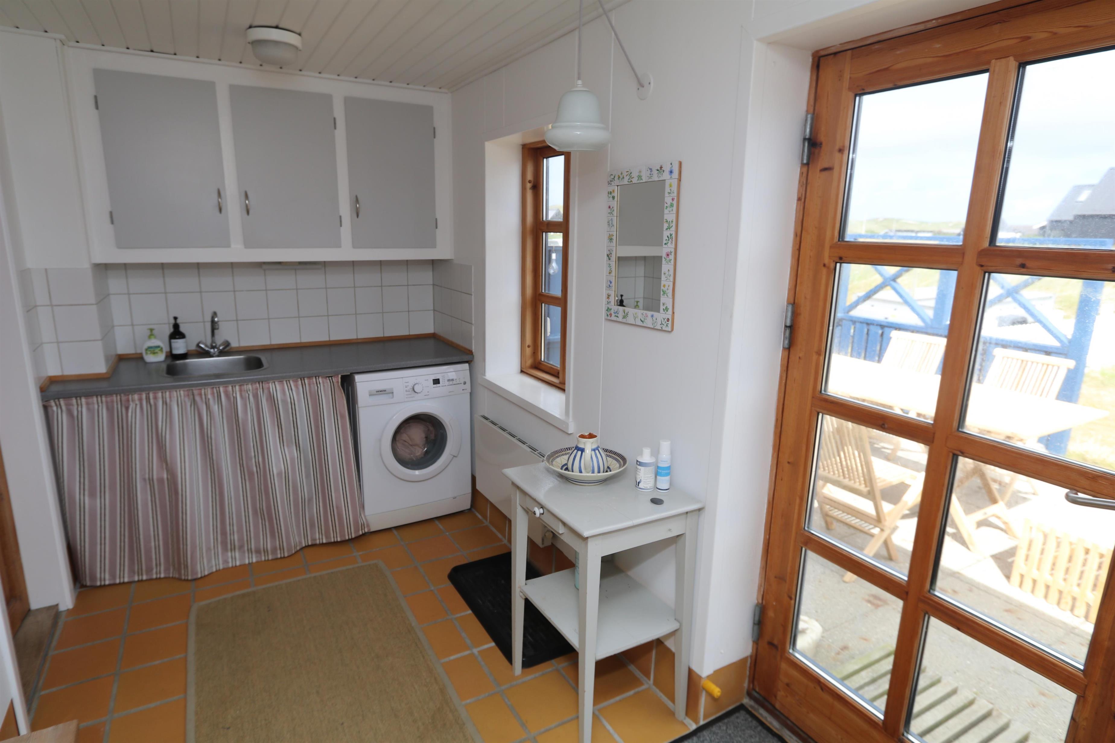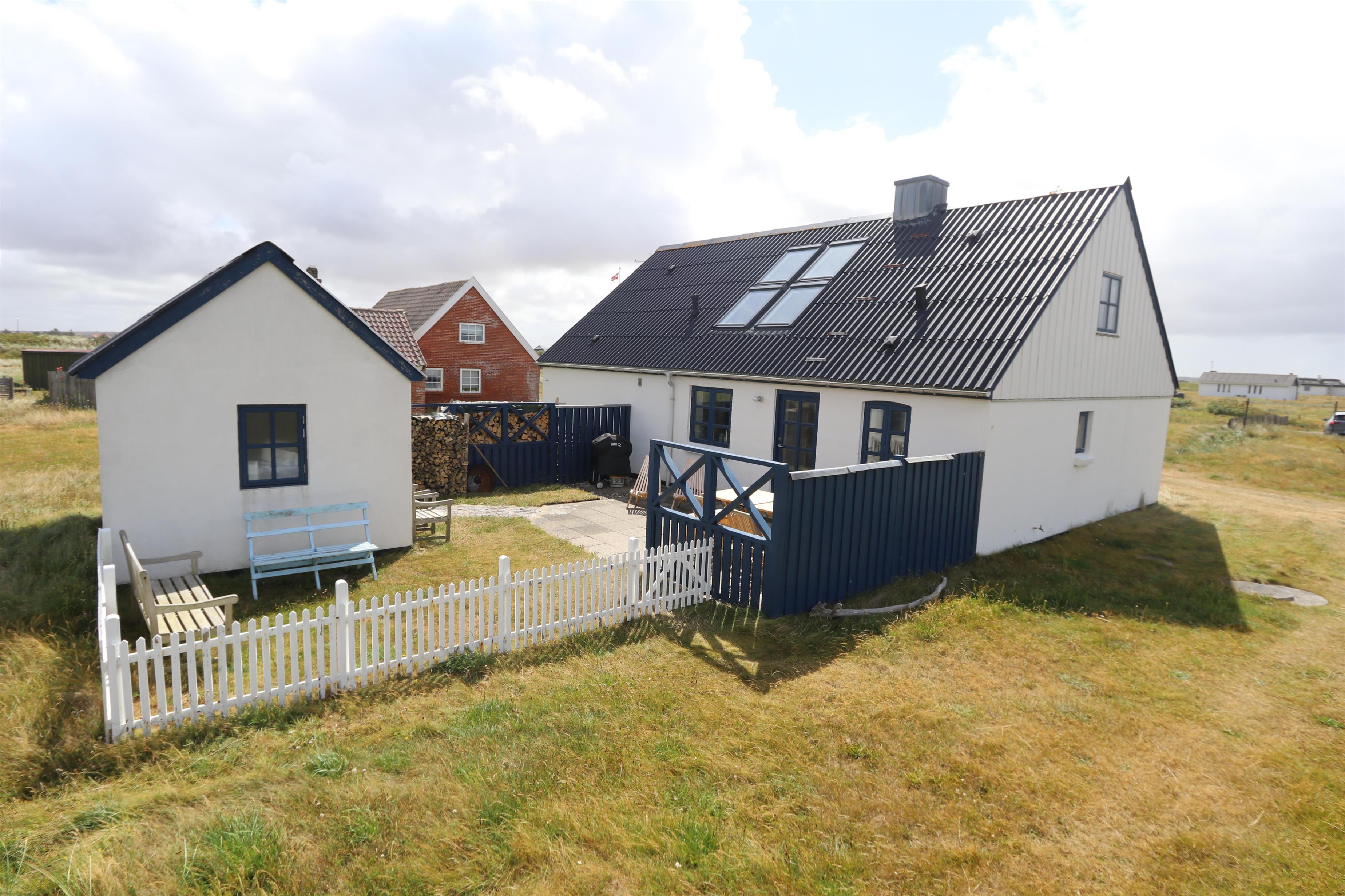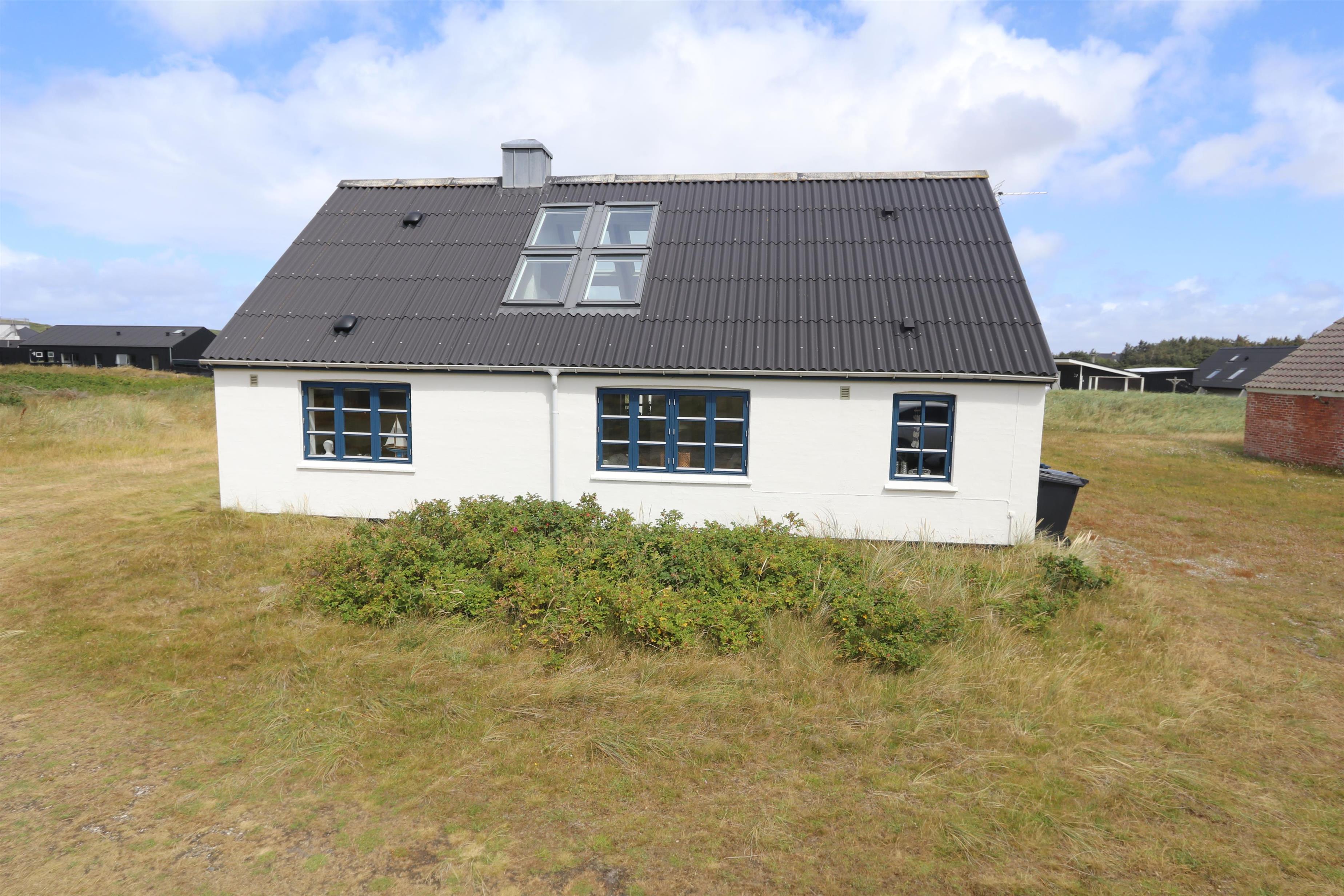Feriehuset er beliggende på en 1.387 m2 stor naturgrund kun 250 meter fra Vesterhavet. Dejligt indhegnet solgård med havemøbler og gas grill. Nyd den helt unikke mulighed det er at sidde og høre Vesterhavet lige på den anden side af klitterne, Der er også rig mulighed for at nyde solen, hinanden eller en god grillaften. Gå en tur i det rolige feriehusområde, henover de høje klitter og straks derefter åbenbarer Vesterhavet sig. Hver dag byder Vesterhavet på nye maleriske oplevelse, der invitere til en frisk gå- eller løbetur. Eller hvad med en lille tur på ca. 10 - 15 min op til områdets lille købmand, som i sæsonen har åbent og byder på frisk morgenbrød og hvor de daglige indkøb også kan klares. Så hvad enten du er til aktiv ferie eller total afslapning danner dette autentiske feriehus den perfekte ramme både hvad angår hus, beliggenhed og omgivelser. Indenfor kort køreafstand nås både den aktive handelsby i Lemvig med flere specialbutikker eller den unikke fiskerby Thyborøn, som udover den aktive fiskerihavn også byder på badestrand og op til flere aktivitetstilbud, som alle er et besøg værd.