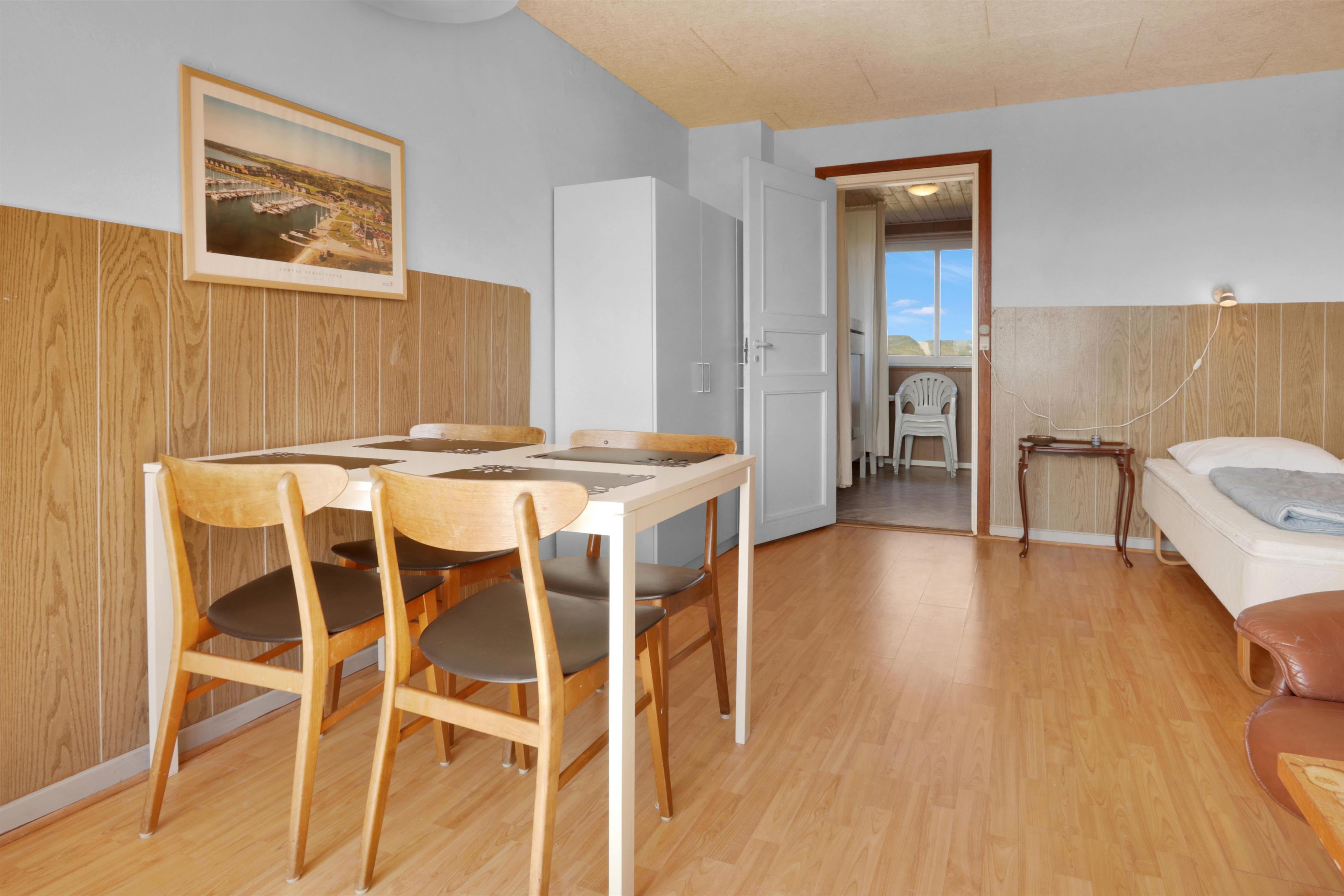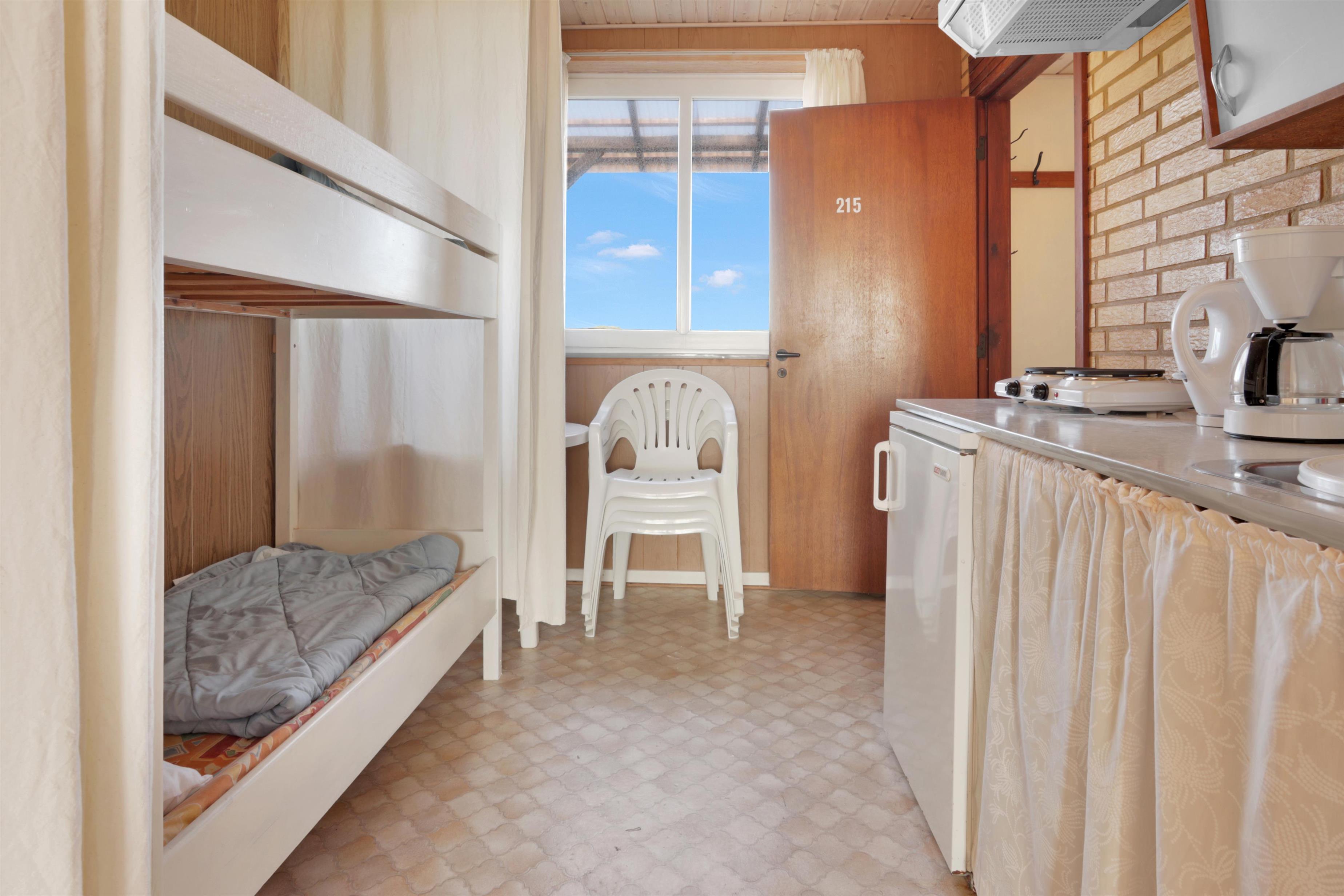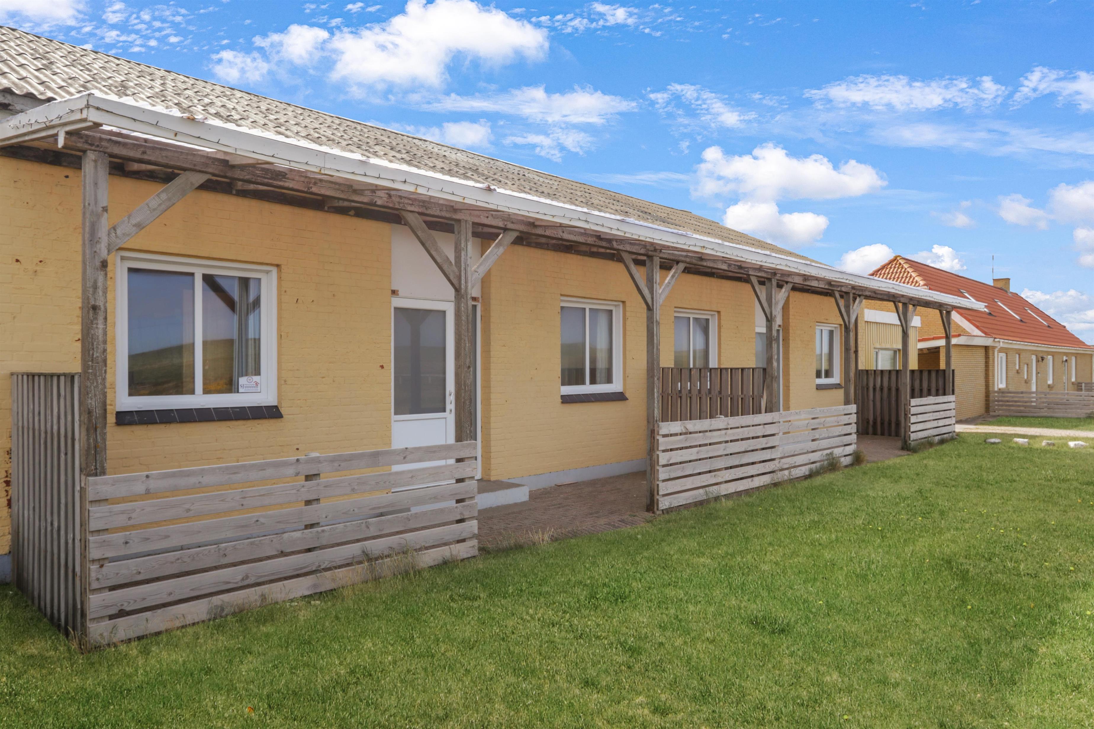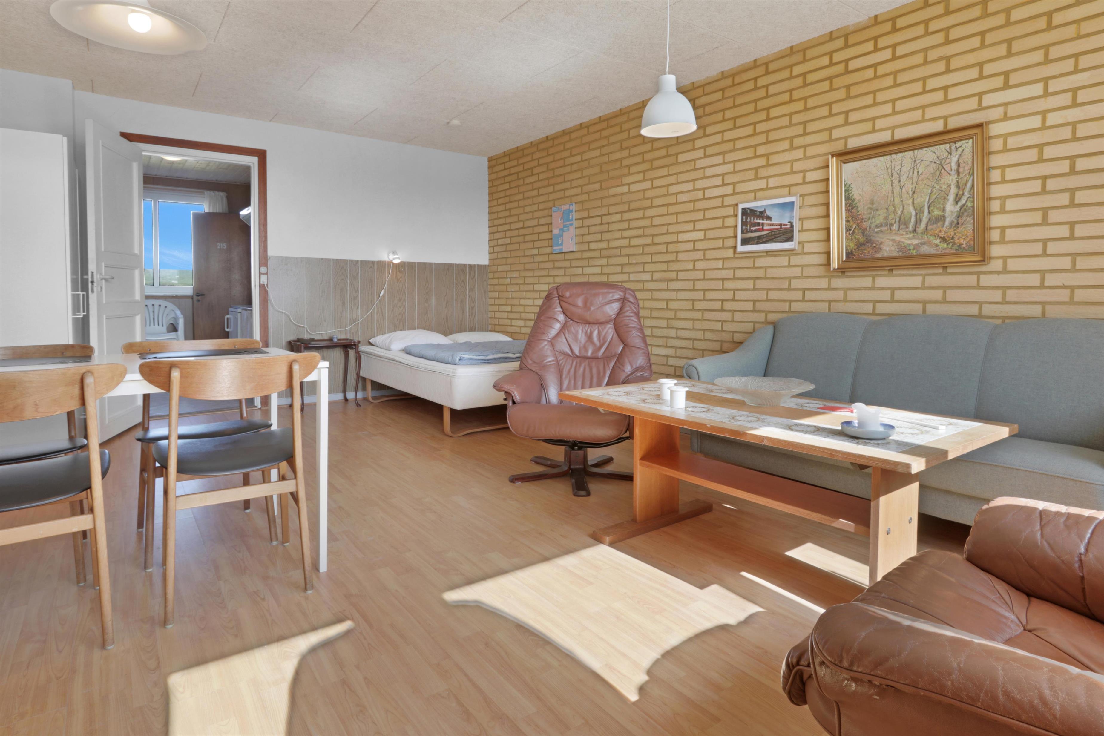 Praktisk og enkelt indrettet lejlighed på 43m2 til max. 4 personer med ældre møblering. Lejligheden har fælles forgang med nr. 214 men ellers er de fuldstændig adskilte. Beliggende i et kompleks med flere lejligheder på en 13000 m2 naturgrund kun ca. 300 m fra vesterhavet. Der er p-plads ved lejligheden.Lejligheden er enkelt og praktisk indrettet og et godt tilbud til de der vil bo primitivt og samtidig tæt ved havet Kombineret opholds-, spise - og soverum med 2 senge. 1 rum med køkkenafdeling med 2 el-kogeplader og 2 køjer. Soveafdelingen kan deles fra køkkenafdelingen med et forhæng. Nyt badeværelse. Delvis overdækket terrasse med havemøbler og liggestole. El, varme og vand koster 90- kr. pr. person pr. uge 1 husdyr er tilladt.