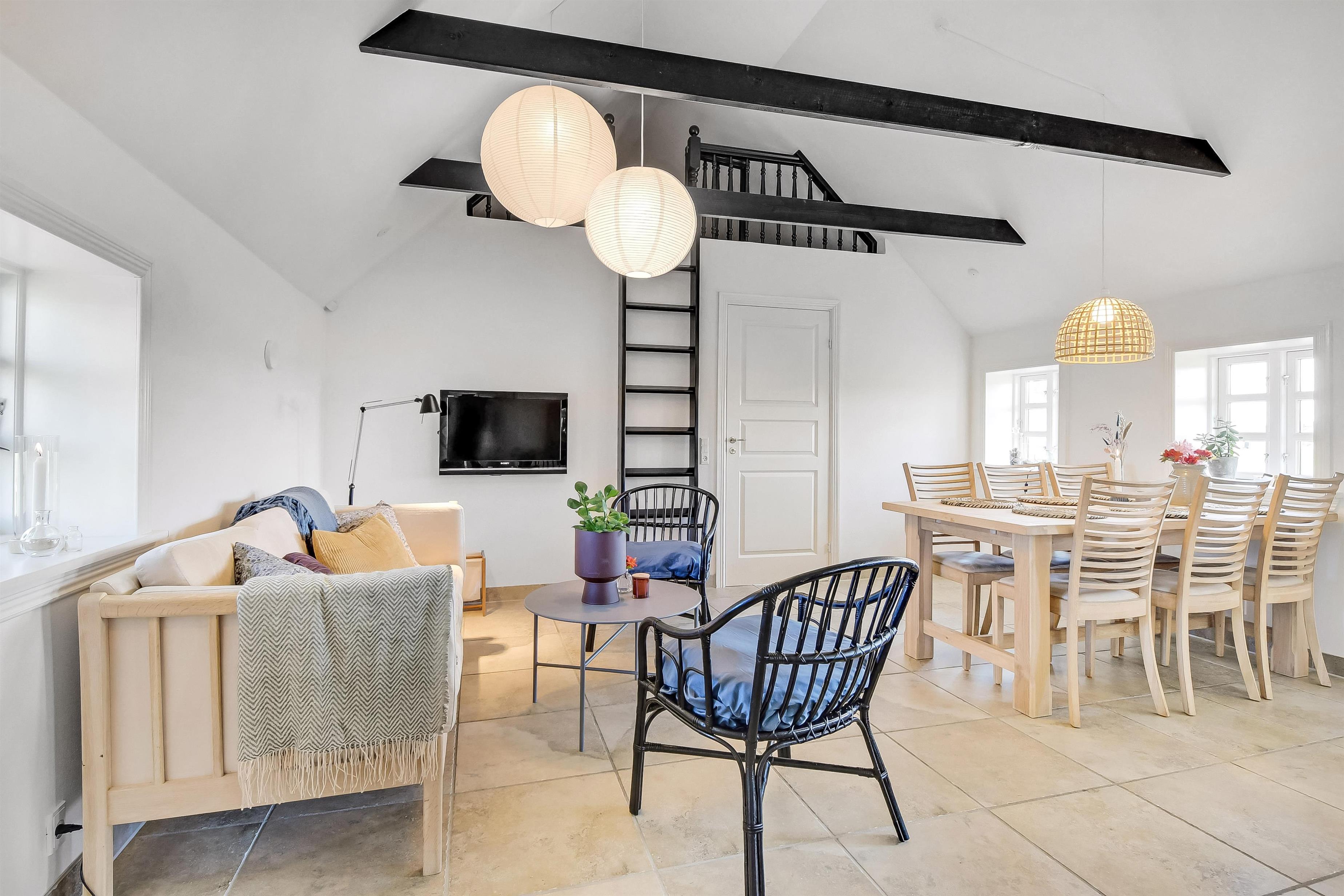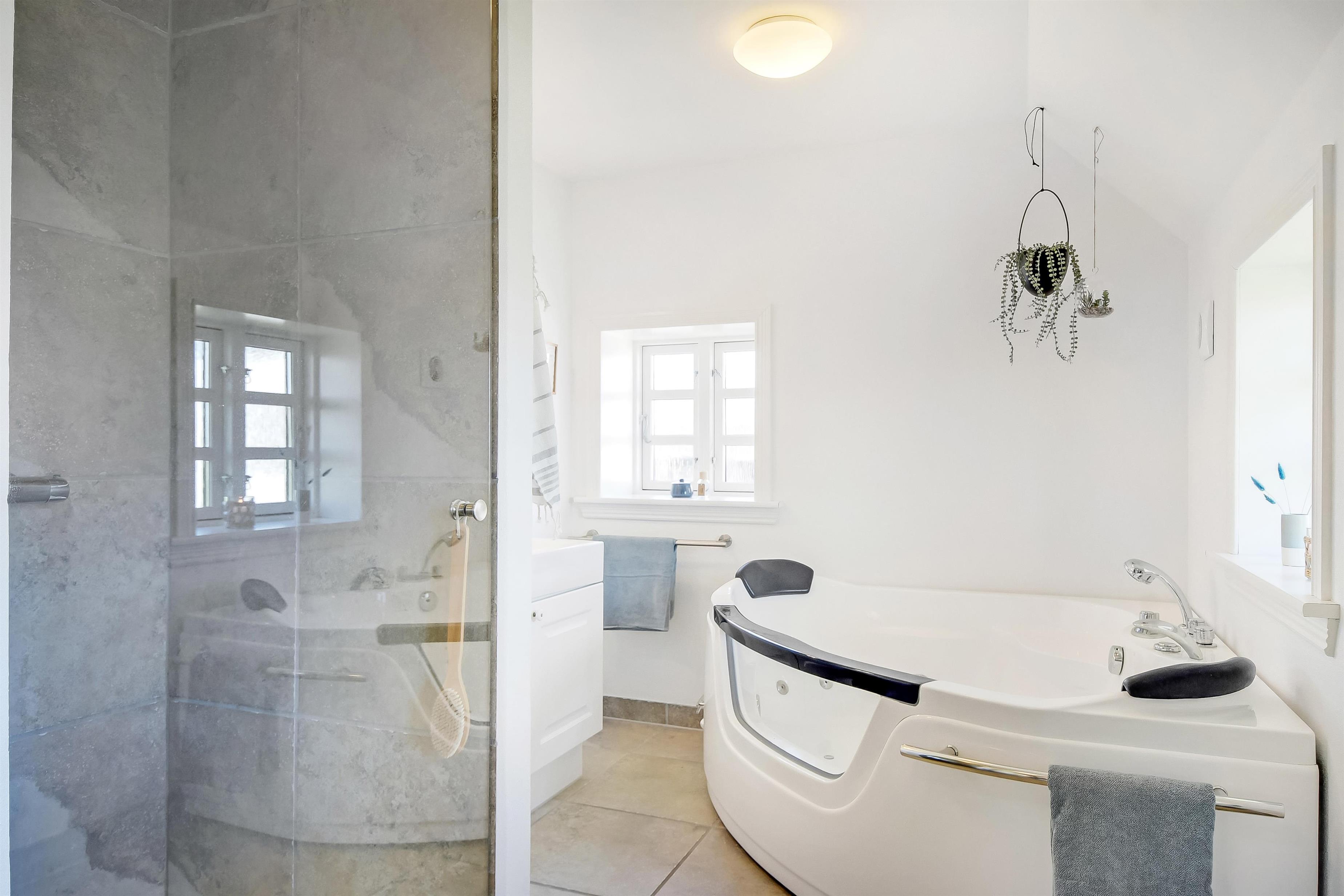Allerede når bilen rammer grusvejen, med få meter til huset, bliver det klart at belliggenhed og hus er noget ganske særligt. Når man drejer ind på grunden og parkerer bilen begynder ferien. En dejlig entre byder velkommen (men pas på – døren er lav). Dejlig opholdsstue kombineret med et flot køkkenhjørne byder jer velkommen. Køkkenet har alt i service og køkkengrej og er også udstyret med keramisk kogeplade, indbygningsovn, emhætte, køleskab med fryseboks og opvaskemaskine. Tæt ved køkkenet står spisebordet til 6 personer, som hele familien kan samles ved når sulten skal stilles. Opholdsstuen har en polstersofa, fibernet-TV som også har en Chromecast så der er mulighed for streaming af radio og TV programmer samt adgang via en stige til en hyggelig hems – som de små helt sikkert sætter stor pris på. En flot væghængt brændeovn kan opvarme huset, så man kan holde varmen på de kolde efterårsdage. 3 flotte værelser (1DS, 1DS, 1DS). Fantastisk badeværelse med muret bruseniche, vaskesøjle med vaskemaskine og tørretumbler, toilet, håndvask og klinkegulv med gulvvarme samt lækkert spabad. Hele huset har klinkegulv med gulvvarme, så du aldrig fryser om fødderne, ligesom det er meget rengøringsvenligt. Opholdsrummet er bygget i kip og det føles rummeligt og luftigt. Ikke ryger hus. Husdyr ikke tilladt.