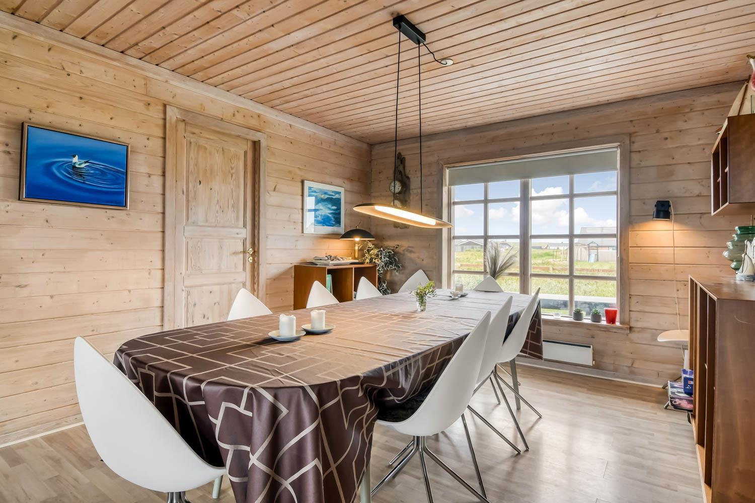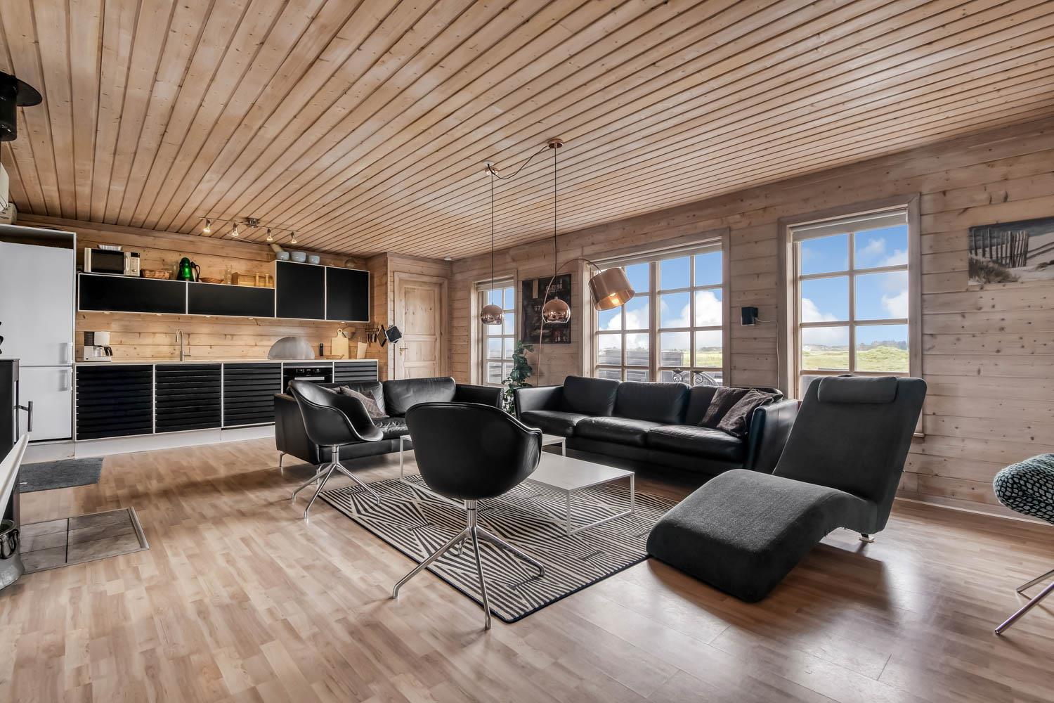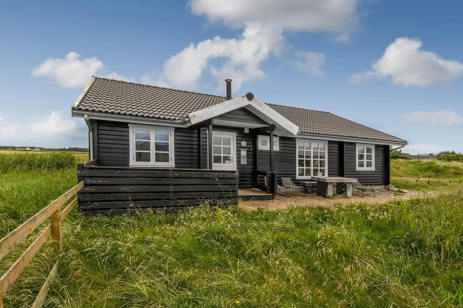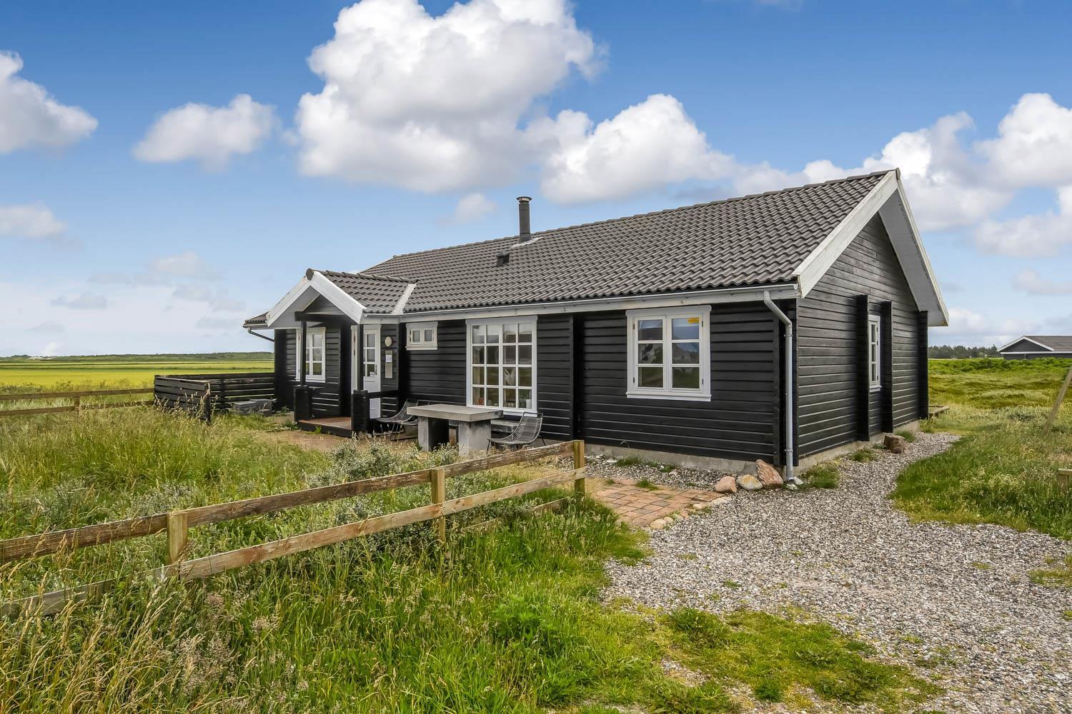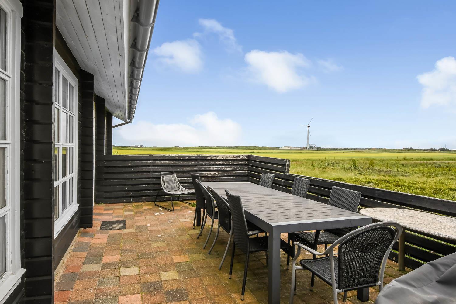 Huset er beliggende på en ca. 2.750 m2 stor naturgrund kun ca. 300 m fra Vesterhavet. Dejlig terrasse med havemøbler, liggestole og grill. Til børnene er der gynge og sandkasse. Dejligt feriehus med masser af muligheder. 5 - 10 min fra huset ligger Vesterhavet, der altid inviterer til en frisk gå- eller løbetur. Der er ca. 1.600 m til indkøbsmuligheder, der også byder på frisk morgenbrød. Her kan de daglige indkøb også klares. Inden for 25-30 minutter kan flere aktiviteter og shoppingmuligheder nås. Så hvad enten I er til aktiv ferie eller total afslapning, danner dette flotte feriehus en dejlig ramme både hvad angår hus, beliggenhed og omgivelser.