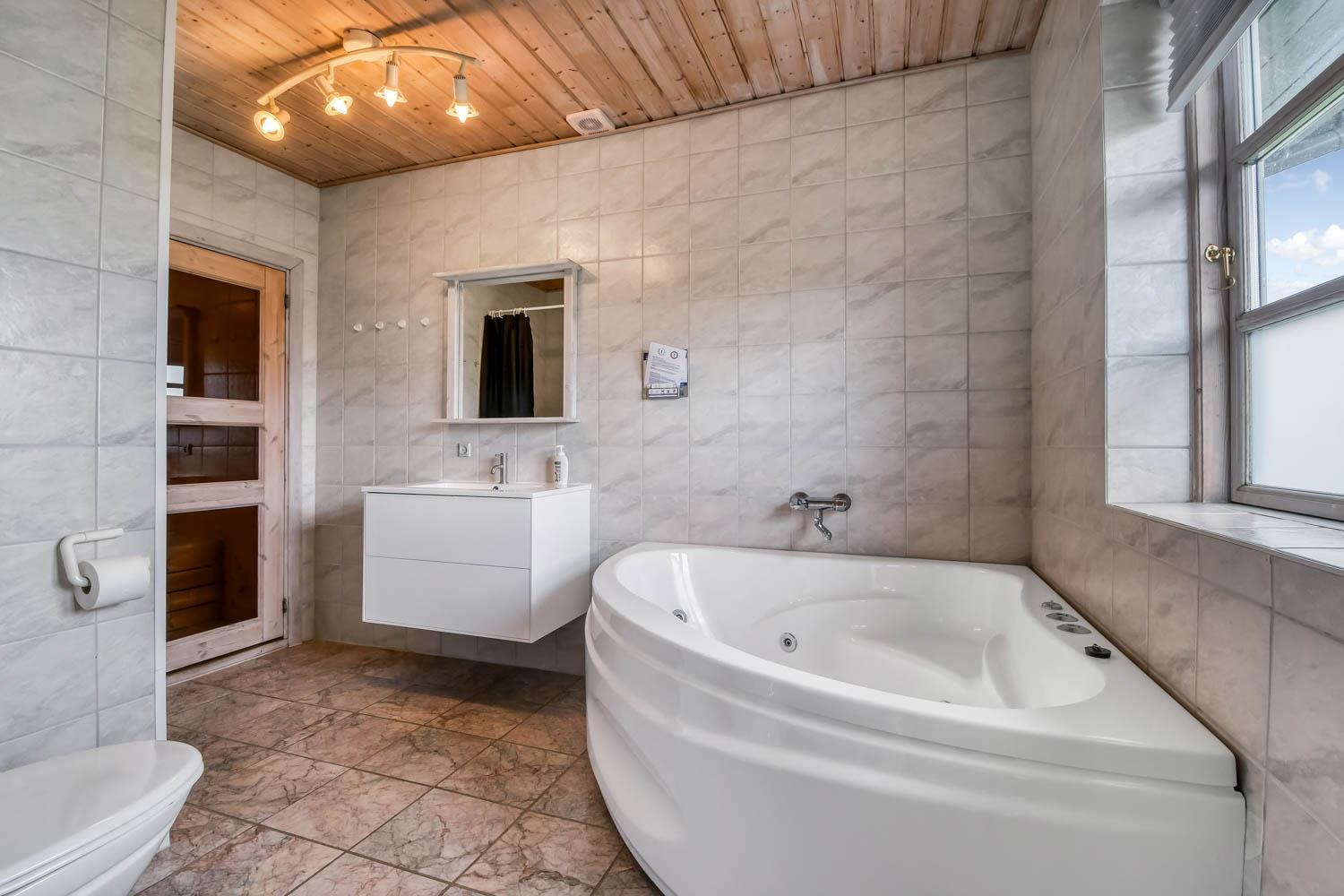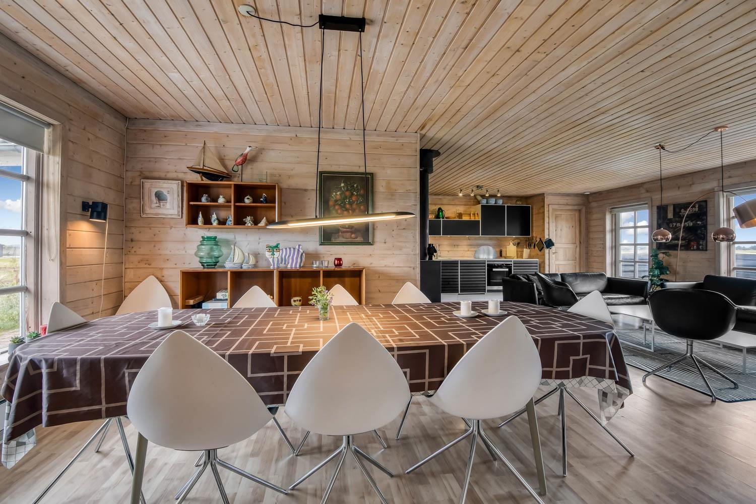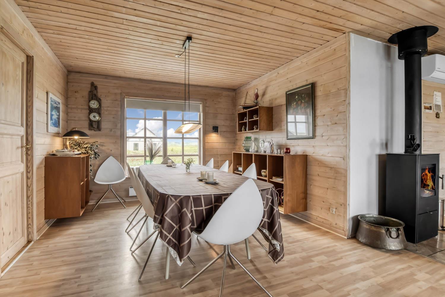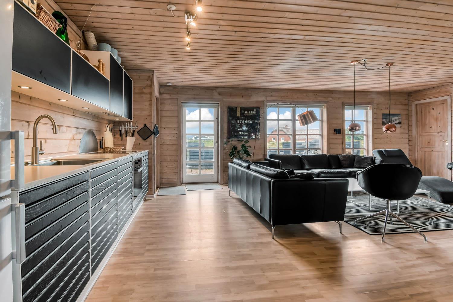110 m2 stort hus, fra 2004 og med 4 soveværelser (1DS, 1DS, 1DS, 2ES). Lys og venlig indrette opholdsstue med lædermøbler, TV med danske og tyske programmer, radio og CD-afspiller, mulighed for streaming af TV / radio / Apps via Chromecast. Så har du en mobiltelefon eller et andet device med, kan du streame, hvad du har abonnement til. En dejlig brændeovn som hjælper med opvarmningen i de kolde perioder sammen med den nye varmepumpe. Helt nyt køkkenhjørne med komfur med glaskeramiske kogeplader, emhætte, mikroovn, opvaskemaskine og køleskab med fryseboks. Lækkert badeværelse med klinkegulv med gulvvarme, toilet, håndvask, bruser, spabad og direkte adgang til saunaen. Ekstra badeværelse ligeledes med klinkegulv med gulvvarme, toilet, bruser og håndvask. Vaskemaskine og tørretumbler forefindes. Ikke ryger hus. Max. 1 husdyr tilladt.