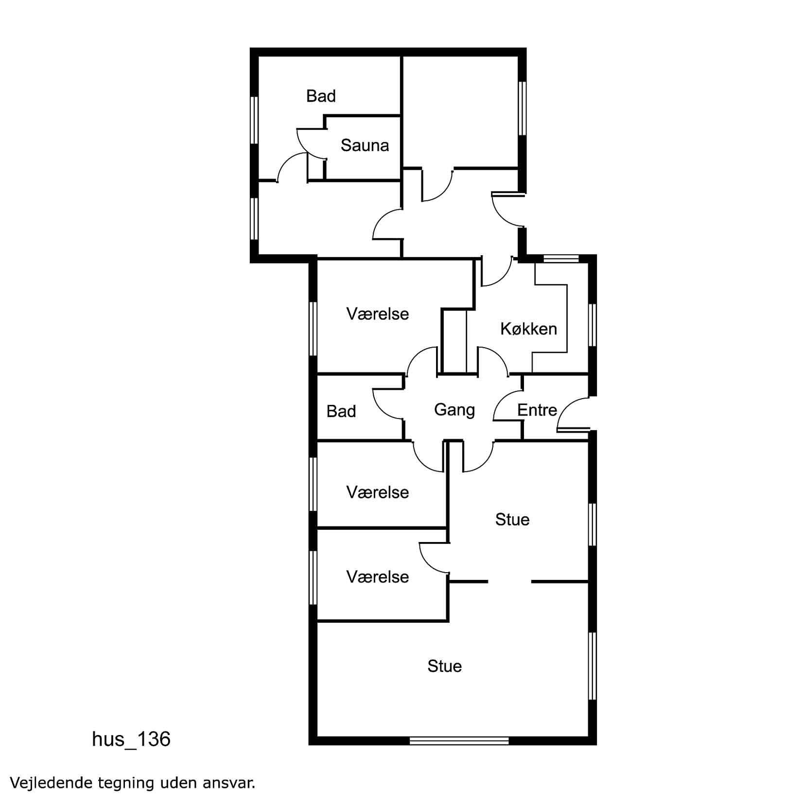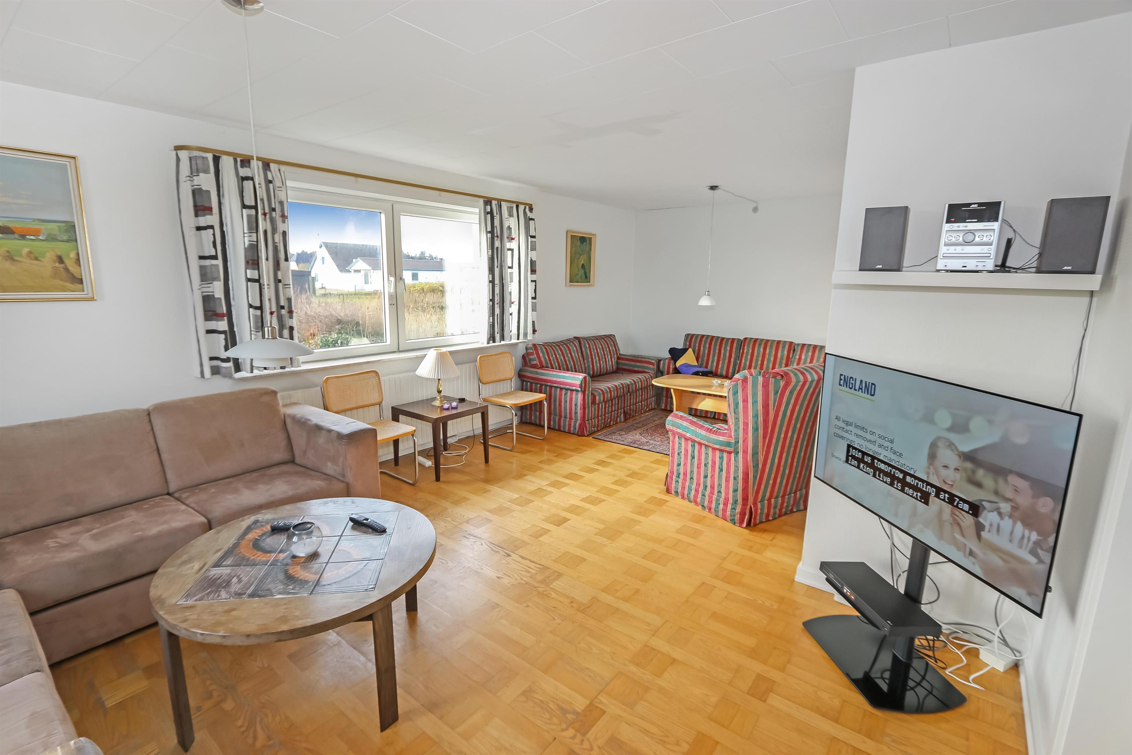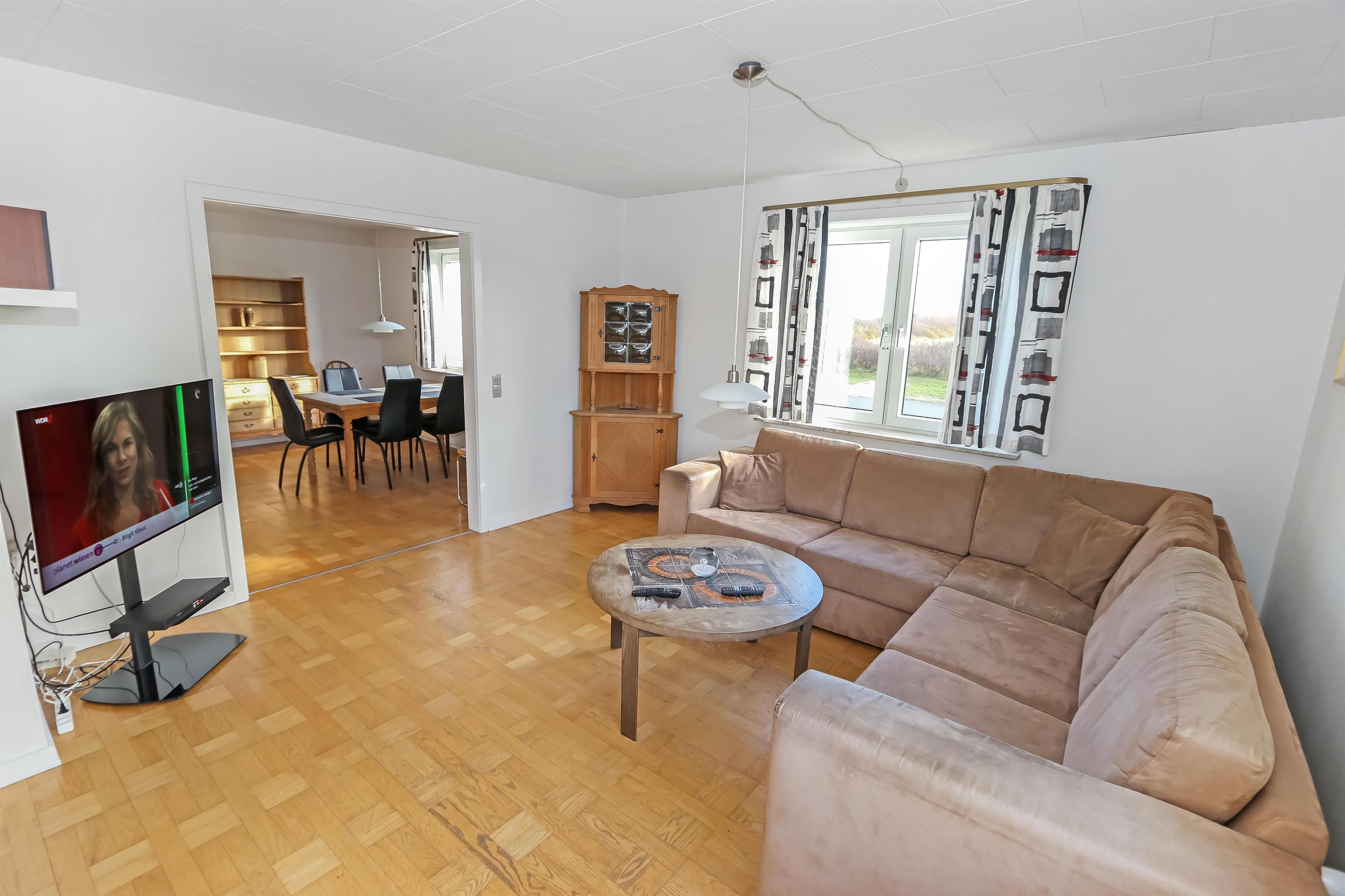 Huset er indrettet med 2 stuer, hvoraf den ene er som spisestue og den anden er indrettet med polstermøbler, TV med danske og tyske programmer, DVD og stereoanlæg. Begge stuer er med trægulv. Selvstændig køkken med El-komfur, køleskab med frostboks, opvaskemaskine og mikroovn. 3 soverum: 1 DS + 1DS + 2S. Værelserne er også med trægulv. Barneseng og barnestol til de små gæster. Toilet med håndvask, badekar med brus . Lækkert stort bryggers med flisegulv her findes der vaskemaskine og tørretumbler. Husets wellnessrum er indrettet med stor flot sauna, spa og bruser. Centralvarme. Ikke rygerhus. 2 husdyr er tilladt.