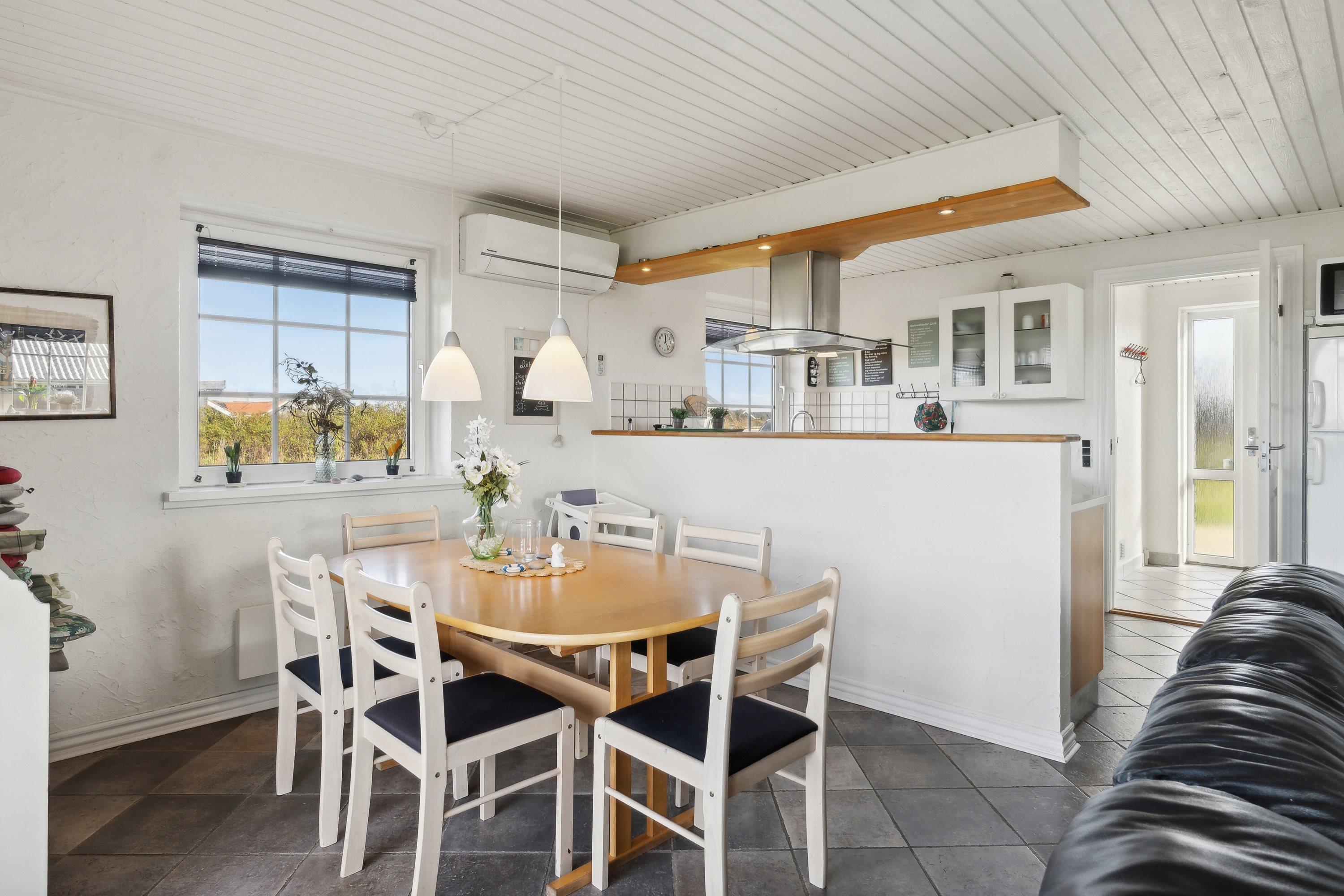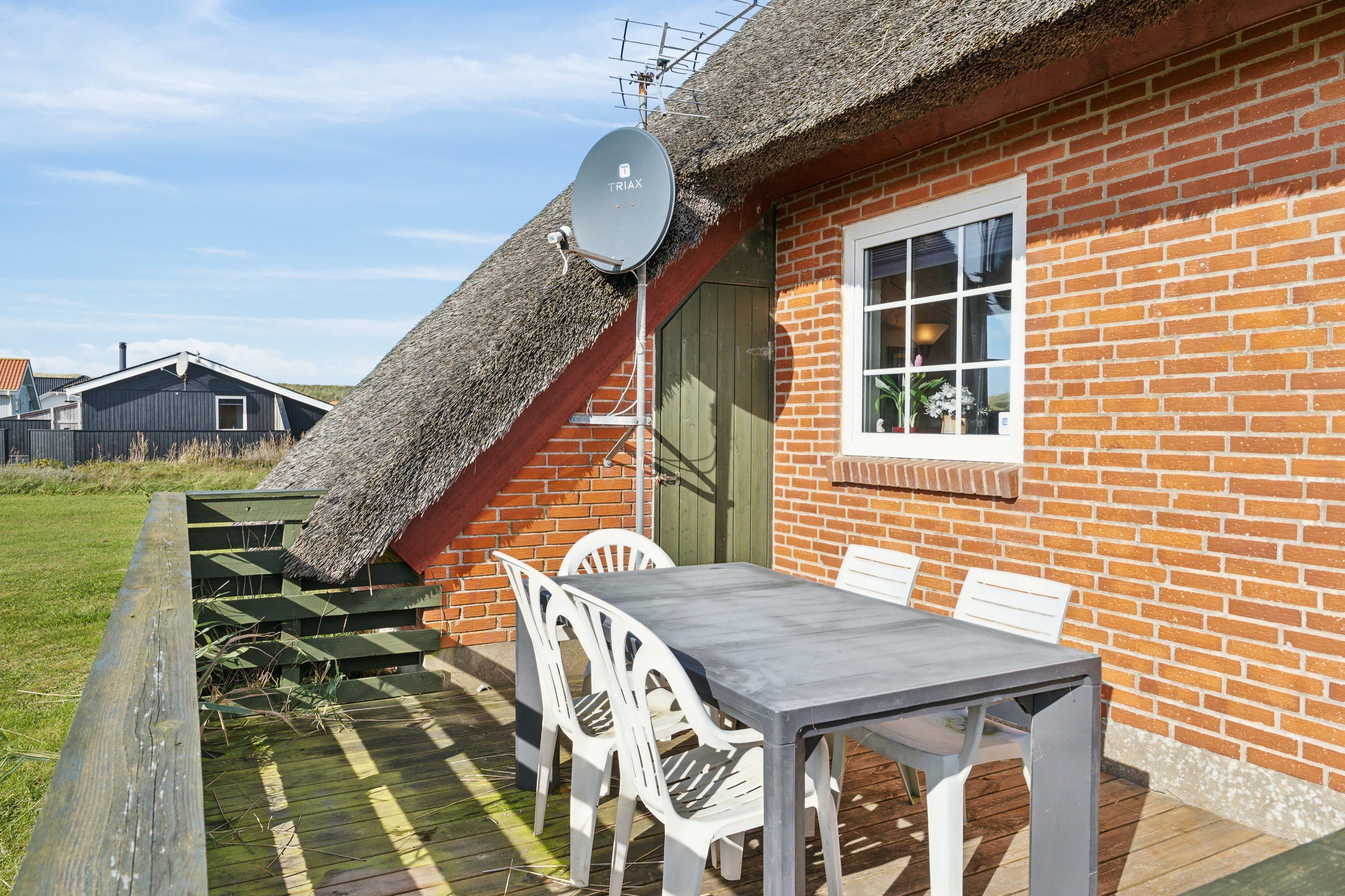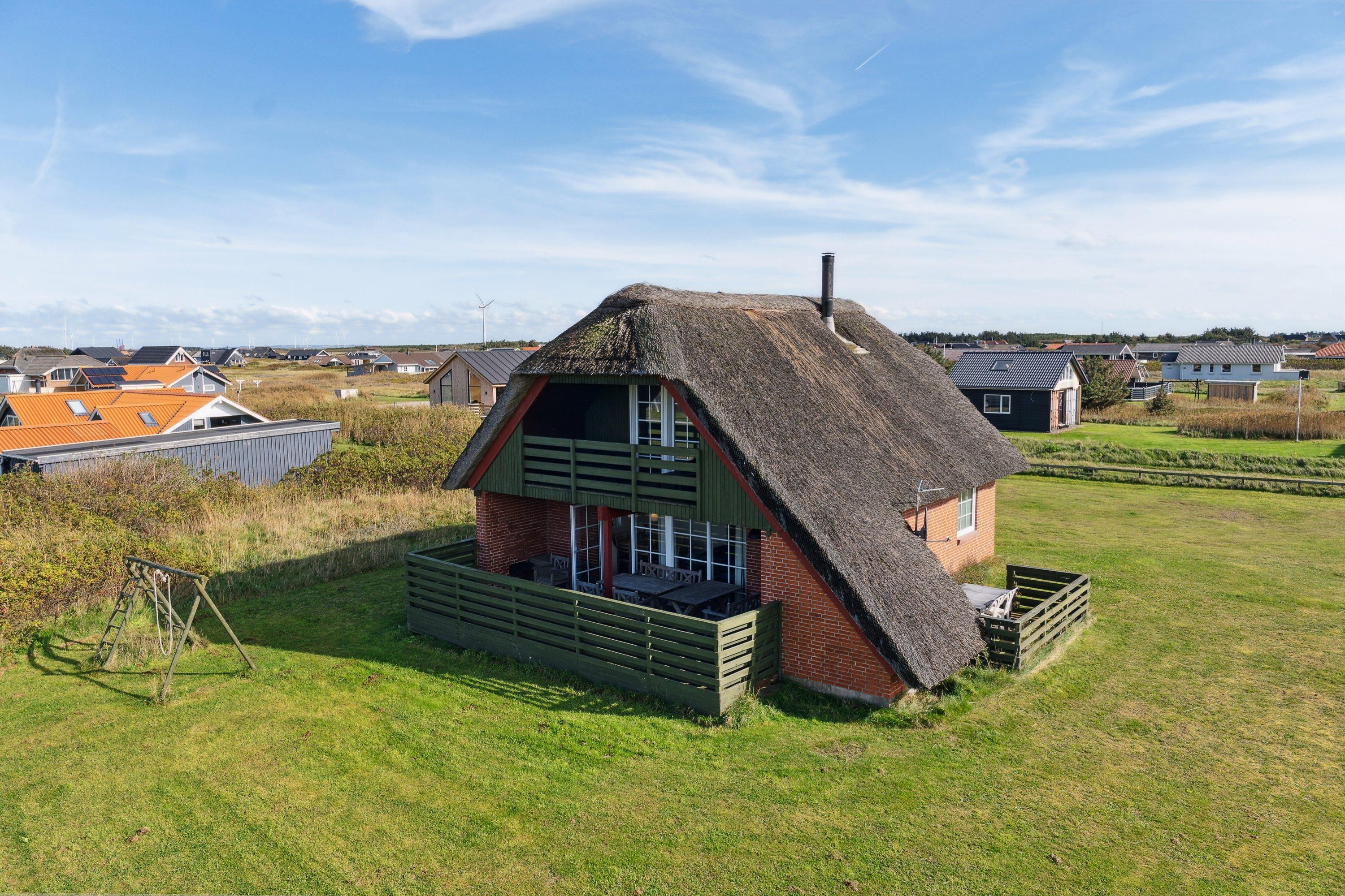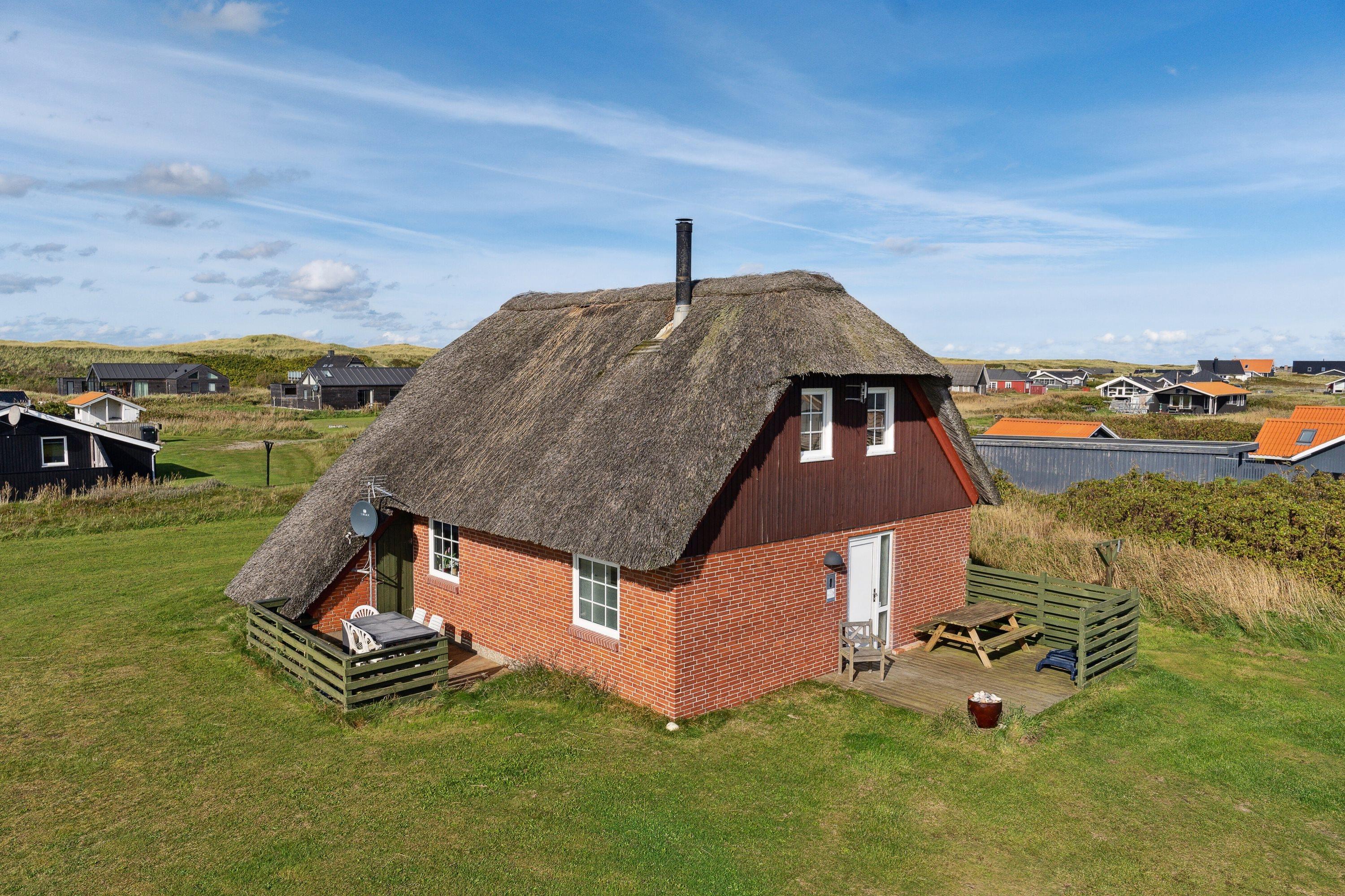 Velholdt, rummeligt feriehus med stråtag - beliggende i rolige omgivelser kun ca. 180 m fra Vesterhavet. Huset er til 6 personer og 2 husdyr er tilladt. Gratis internetadgang. Ikkeryger-hus.