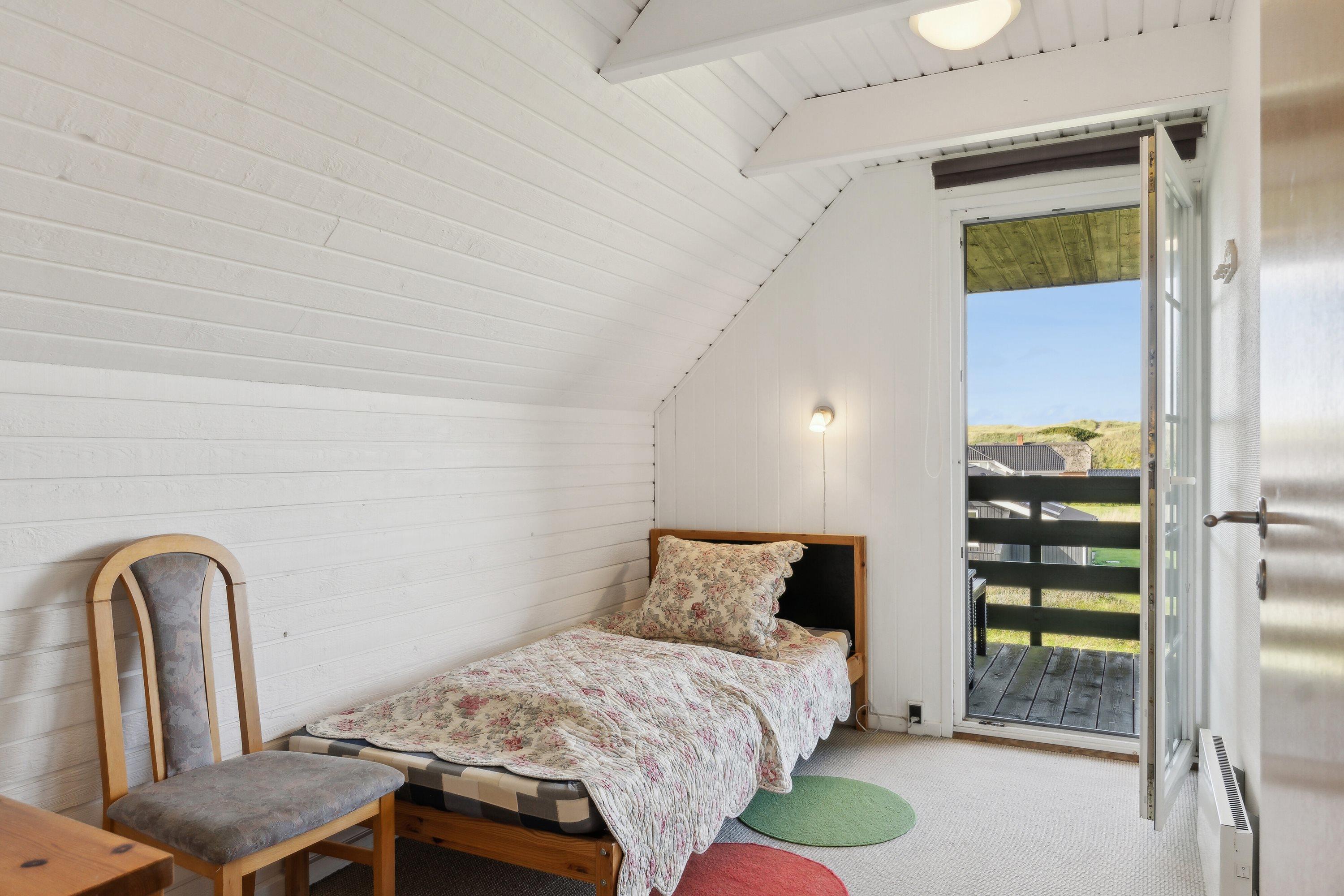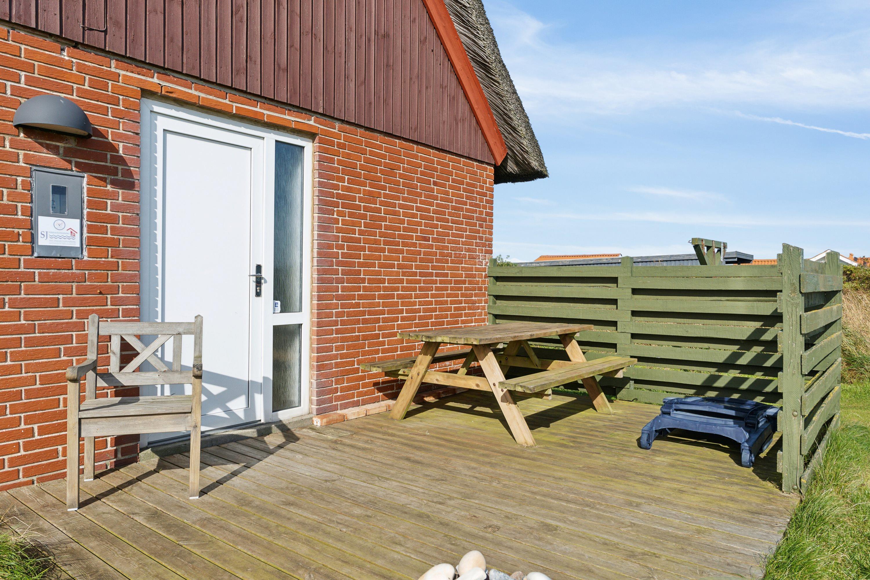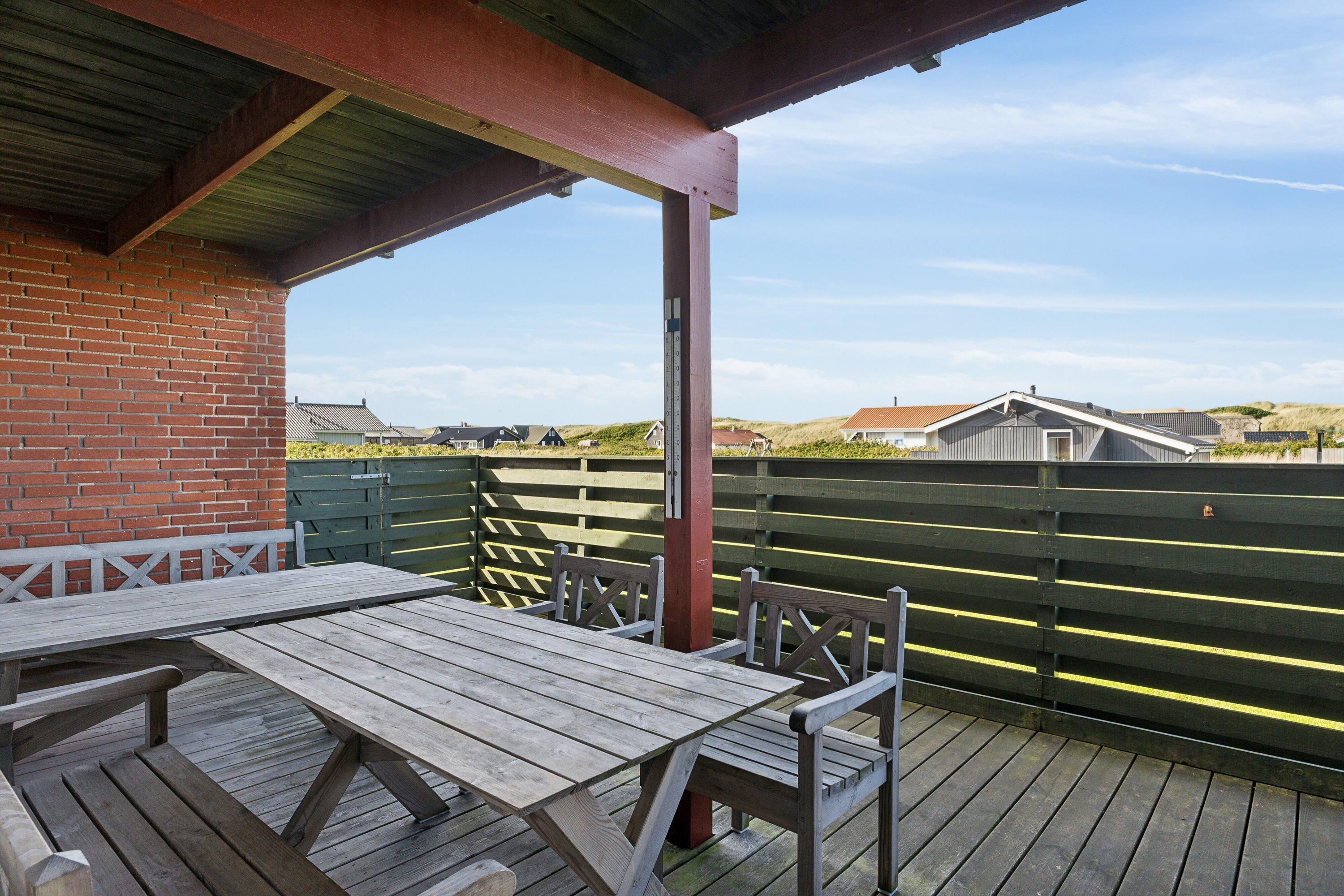 Huset er beliggende på en 1414 naturgrund blot 180 m fra det brusende Vesterhav. Til huset hører en delvis overdækket terrasse med havemøbler og liggestole samt grill. På 1. sal er der udgang til en lille balkon fra de 2 af værelserne. Vesterhavet byder hver dag på nye oplevelser og der er mange muligheder for aktiviteter ved stranden, her kan man bade, samle rav eller sten, bygge sandslotte eller blot slentre langs vandet og nyde havet og roen. Alt i alt et hyggeligt feriehus direkte ved Vesterhavet.