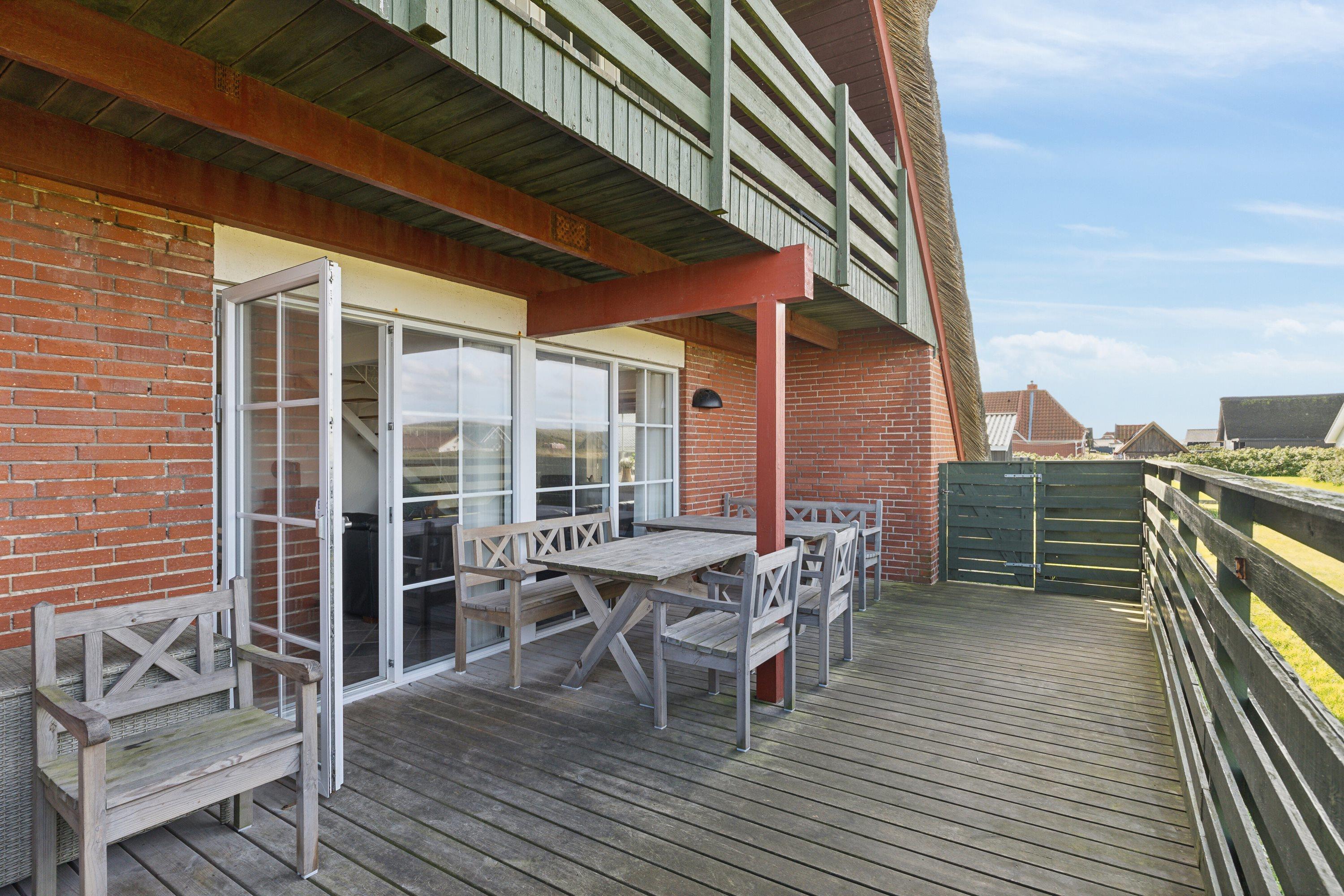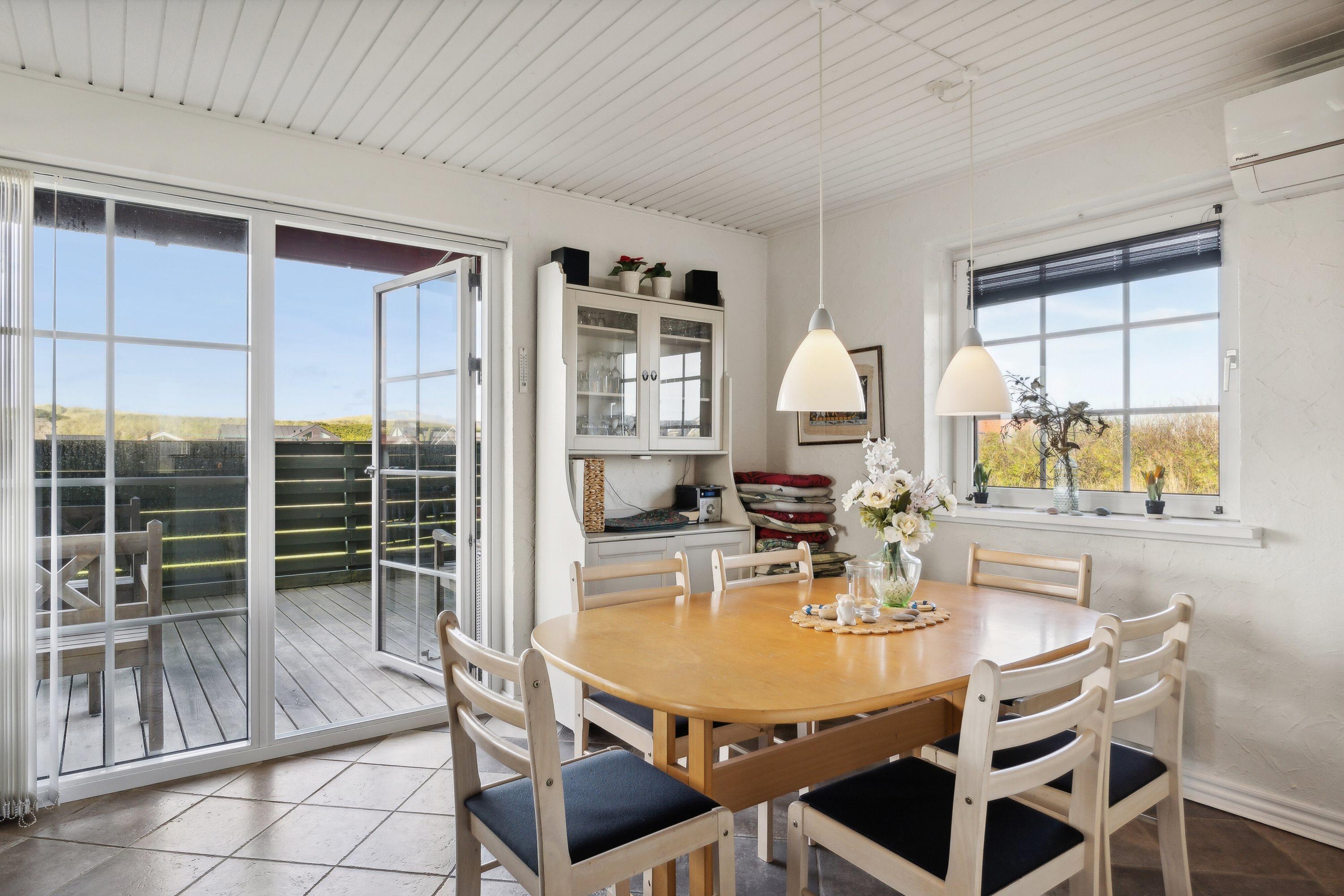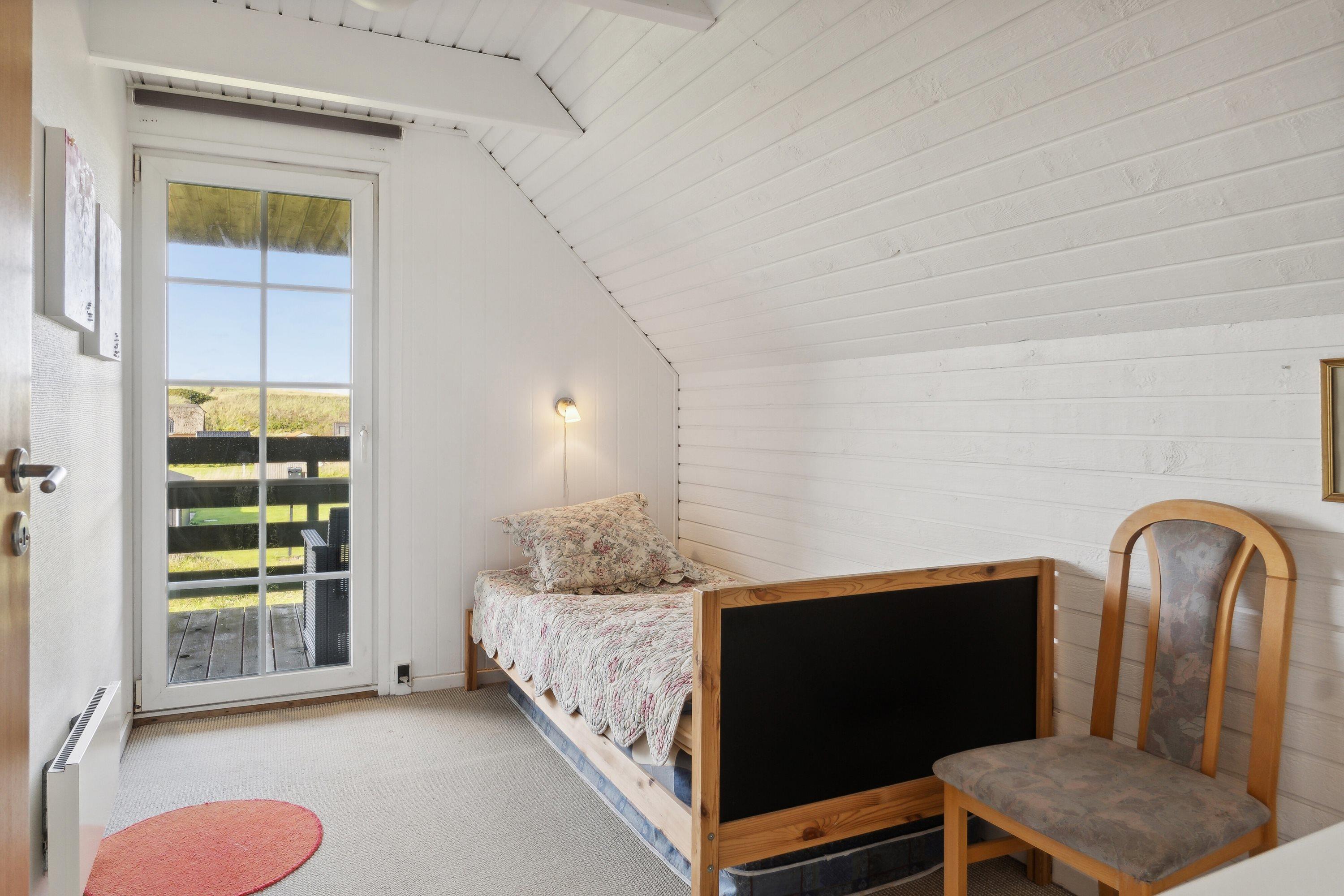 Huset er beliggende på en 1414 naturgrund blot 180 m fra det brusende Vesterhav. Til huset hører en delvis overdækket terrasse med havemøbler og liggestole samt grill. På 1. sal er der udgang til en lille balkon fra de 2 af værelserne. Vesterhavet byder hver dag på nye oplevelser og der er mange muligheder for aktiviteter ved stranden, her kan man bade, samle rav eller sten, bygge sandslotte eller blot slentre langs vandet og nyde havet og roen. Alt i alt et hyggeligt feriehus direkte ved Vesterhavet.