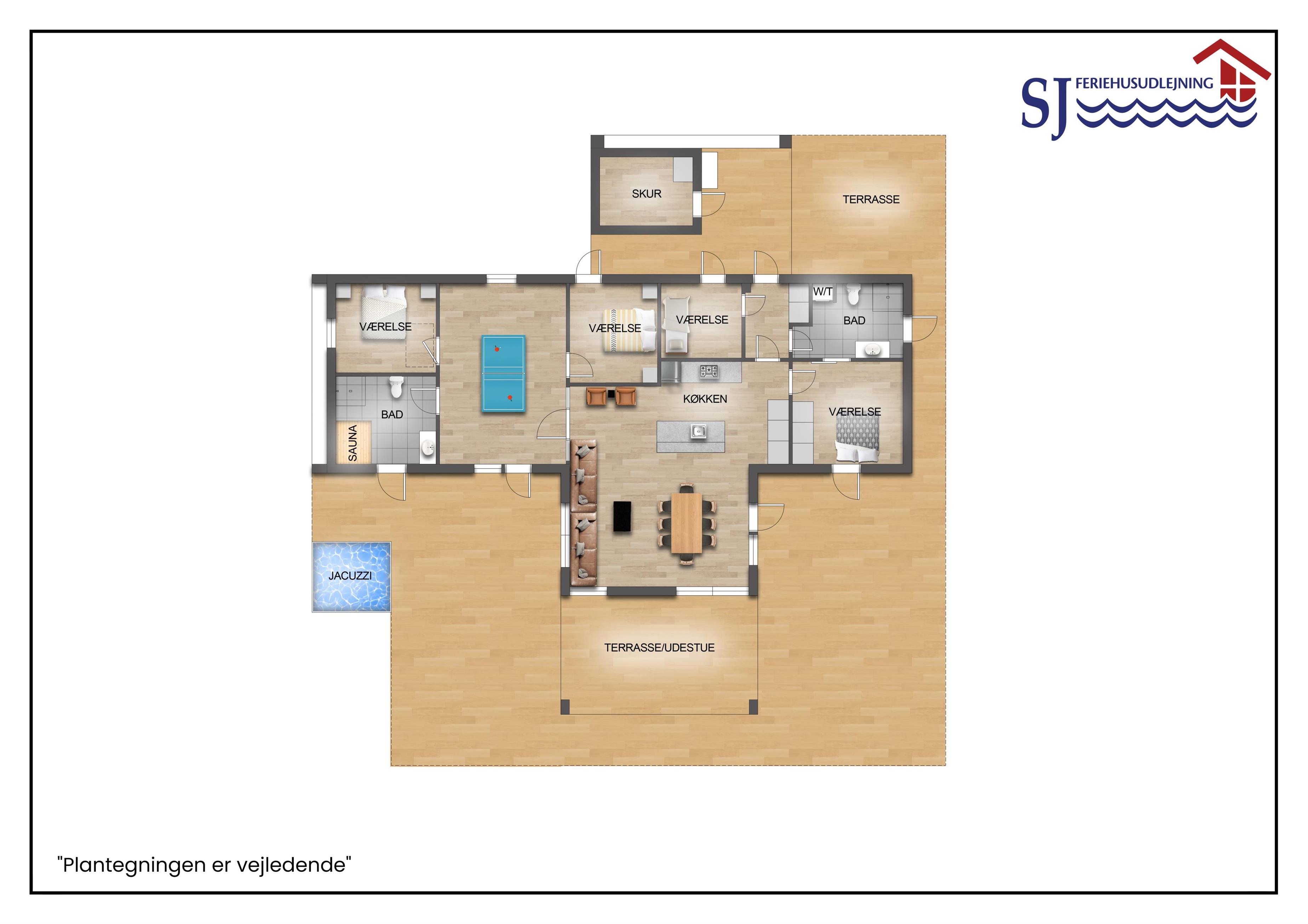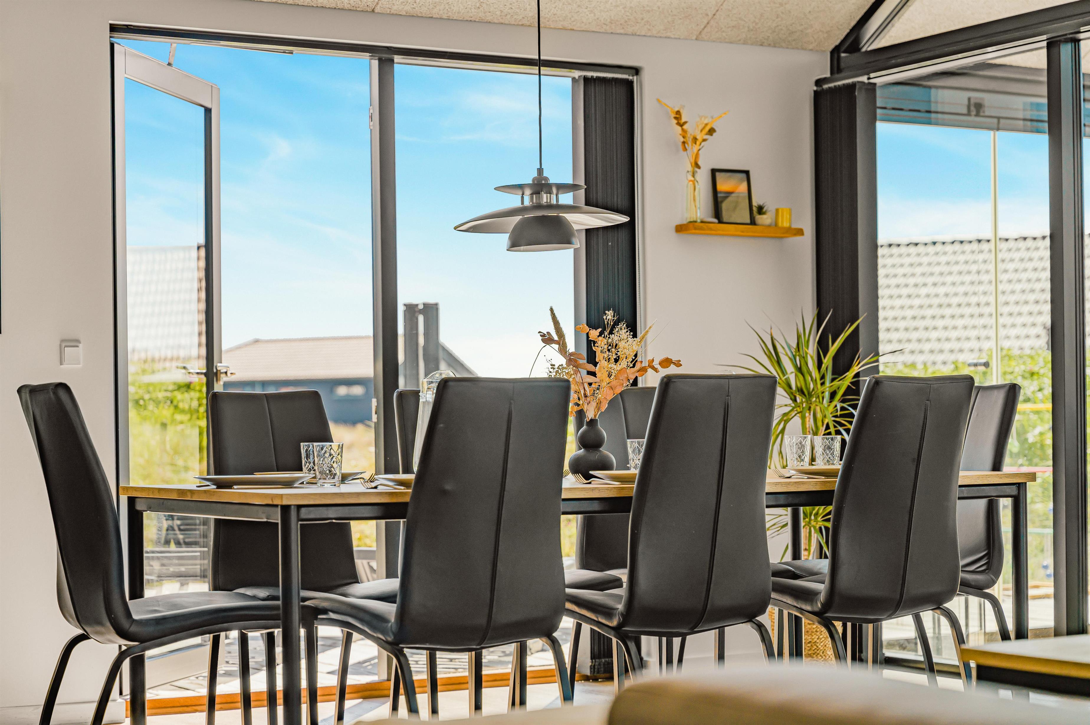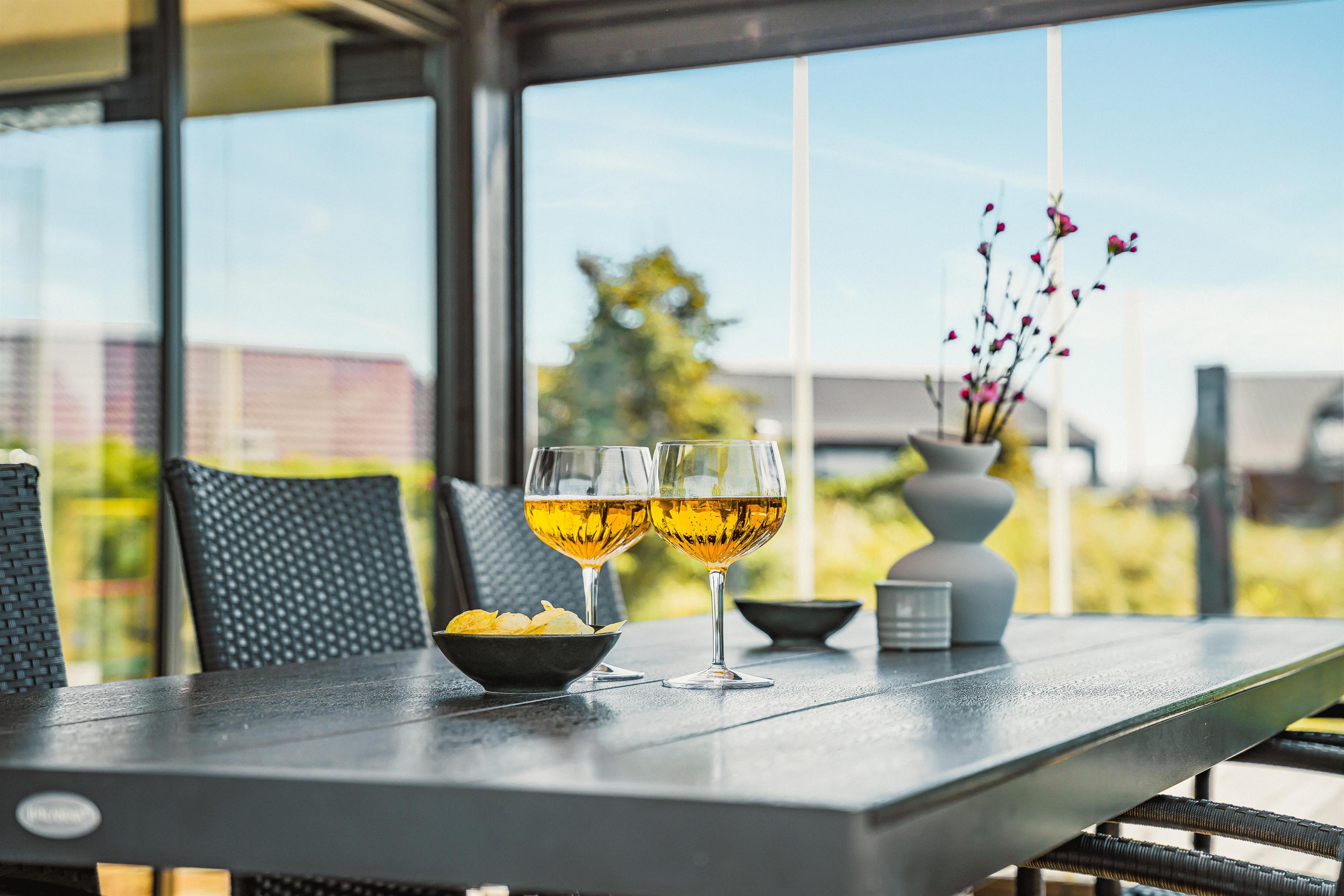 Når dagen går på hæld, eller vejret inviterer til indendørs hygge, kan man trække sig tilbage til den vidunderlige udestue – et af husets helt særlige højdepunkter. Denne lukkede havestue fungerer som et ekstra opholdsrum året rundt og giver følelsen af at være midt i naturen, men med komforten fra stuen. Store vinduespartier åbner op mod klitterne og landskabet, og herinde er der en stemning af fred og nærvær. Rummet er møbleret med et ekstra havebord og stole, perfekt til en stille morgenmad, en god kop kaffe i eftermiddagssolen eller en aften med kortspil og levende lys, mens mørket sænker sig over klitlandskabet udenfor. Det er et rum, hvor tiden står stille – et sted til samvær, fordybelse og udsigt, der tager pusten fra én. Uanset om solen bager eller vinden suser udenfor, er det et fantastisk sted at opholde sig – og for mange bliver det hurtigt husets foretrukne oase.
