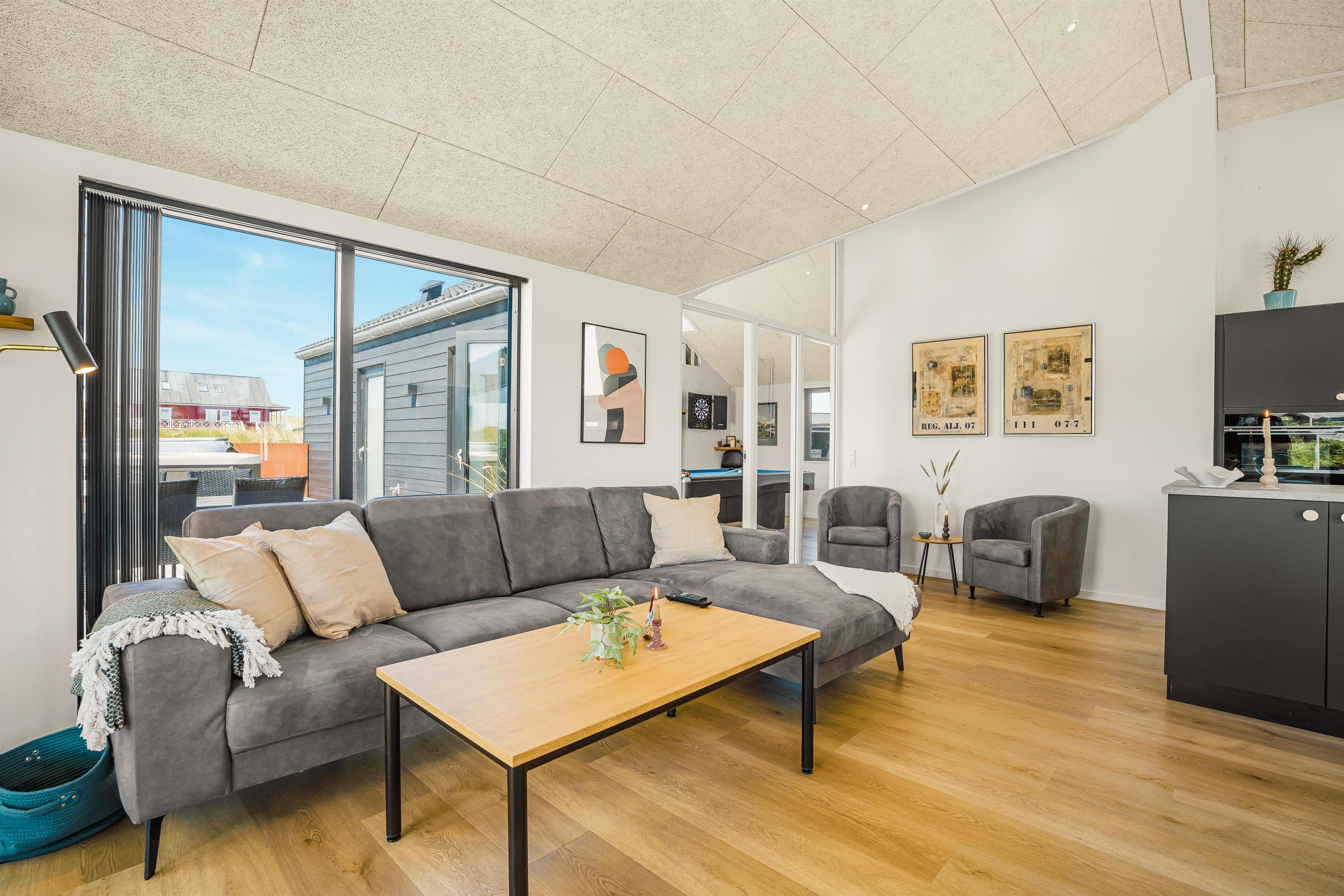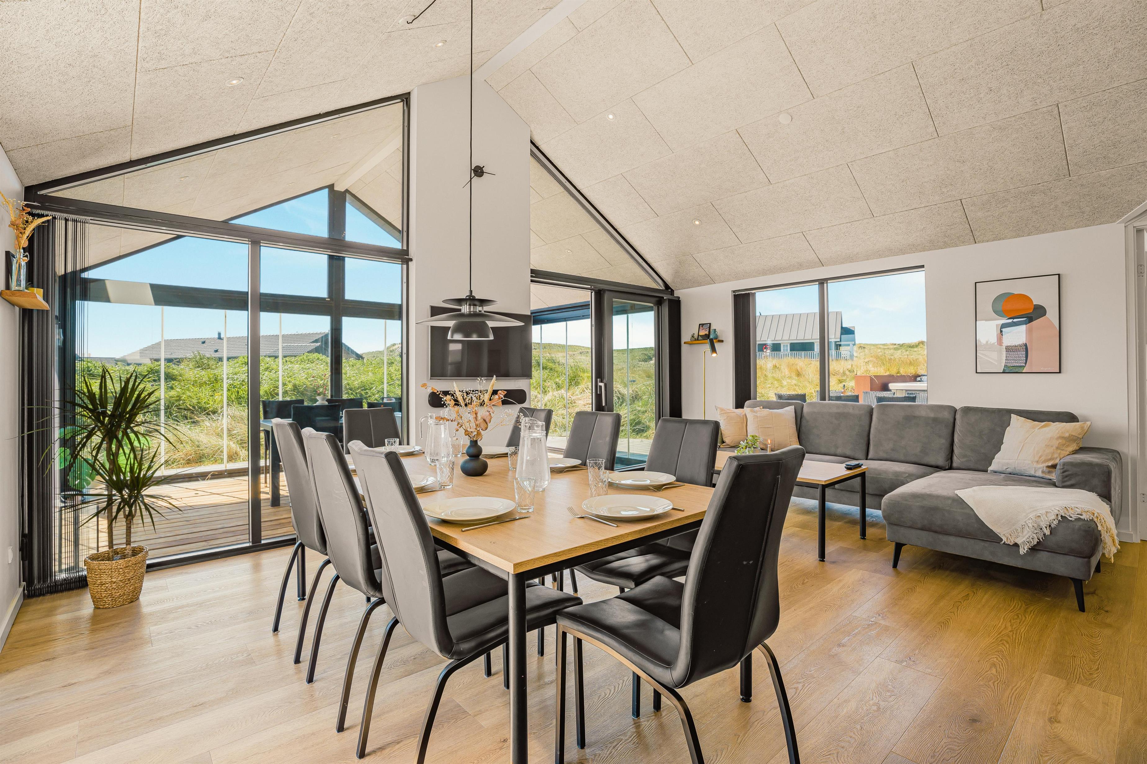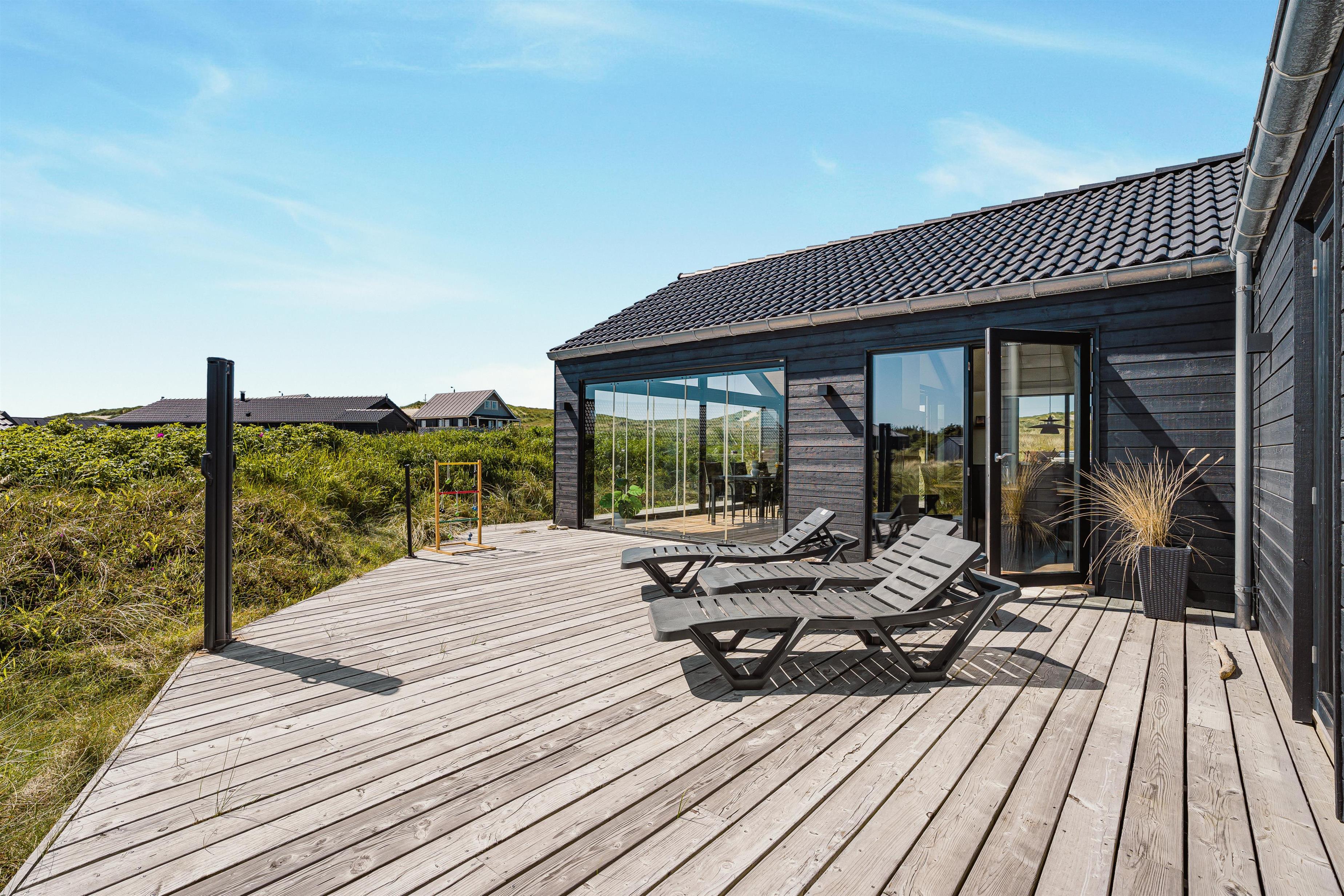 Velkommen til et skønt og moderne feriehus fra 2021, hvor der er tænkt på både komfort, stemning og beliggenhed. Med sine 120 m² og plads til hele familien er dette luksuriøse sommerhus det oplagte valg for både børnefamilier og par, som drømmer om en ferie i fredelige og naturskønne omgivelser – blot 100 meter fra det vilde og vidunderlige Vesterhav. Her får I udsigt til klitterne, det åbne landskab, og I kan nyde både morgenkaffen og aftensolen i total ro.