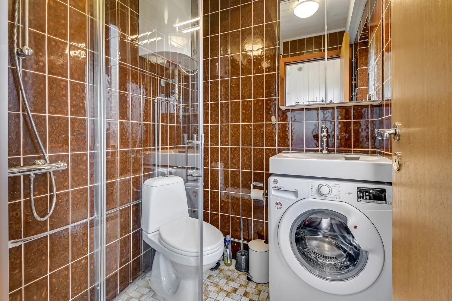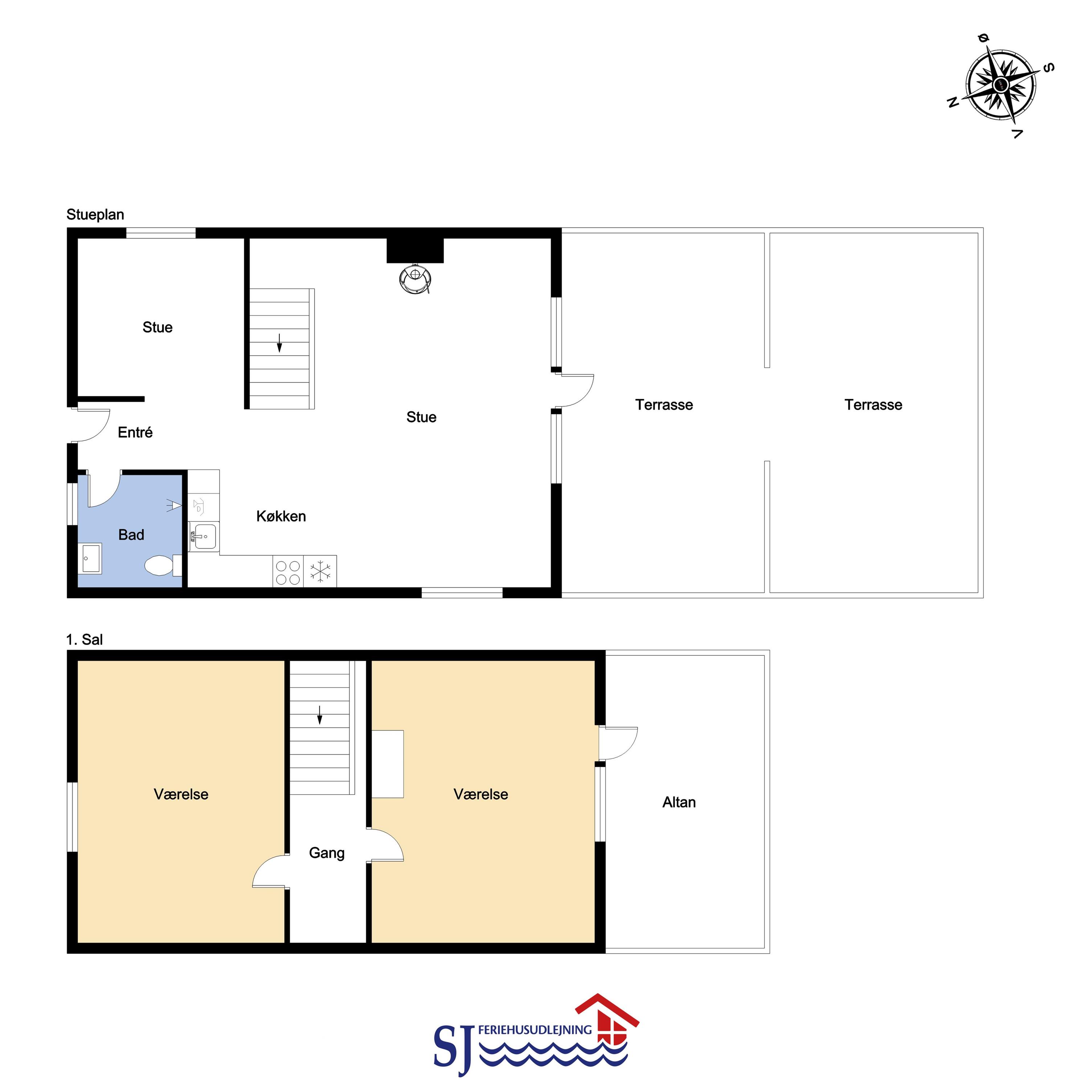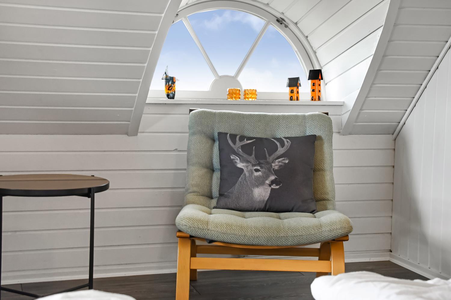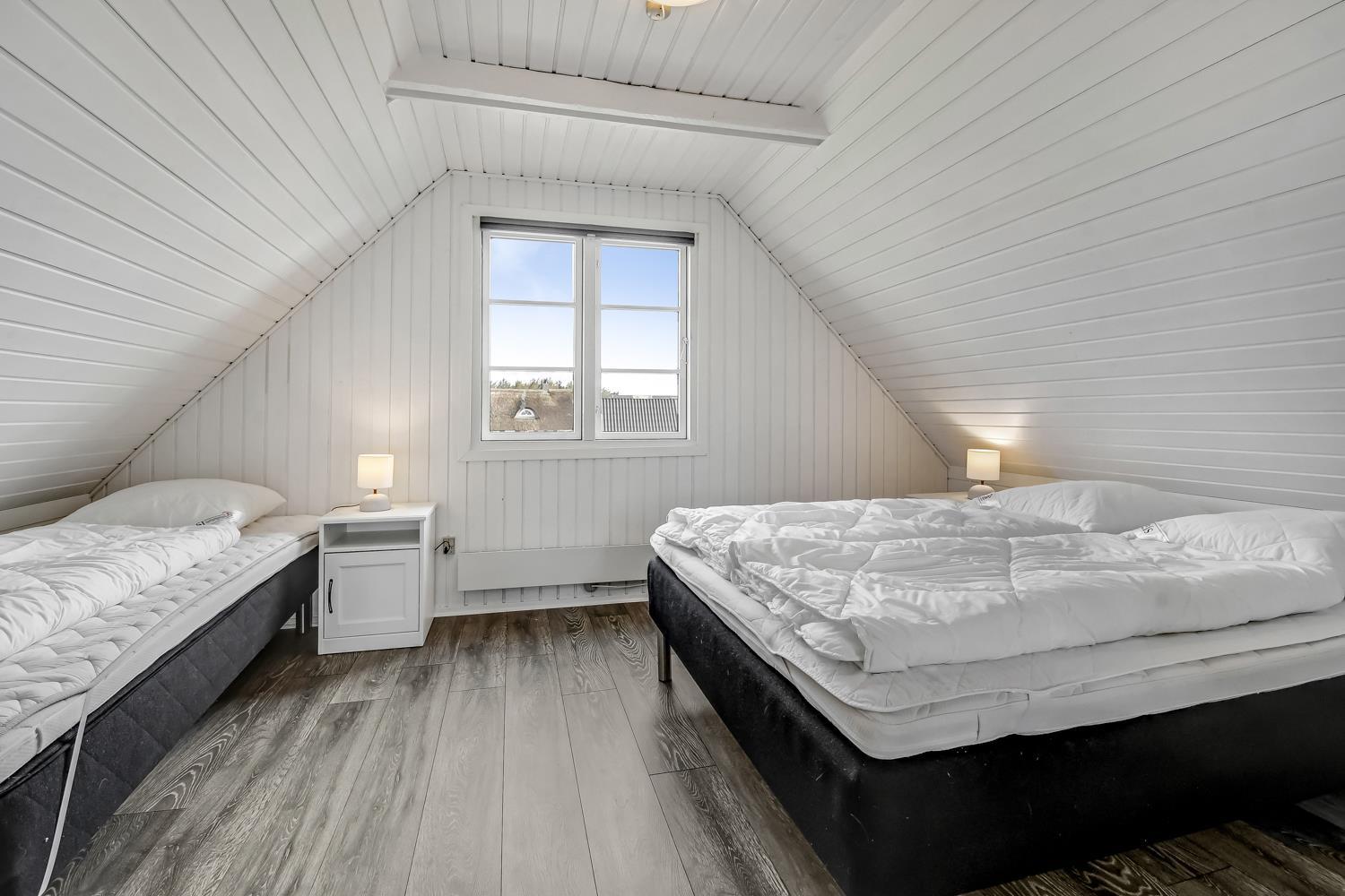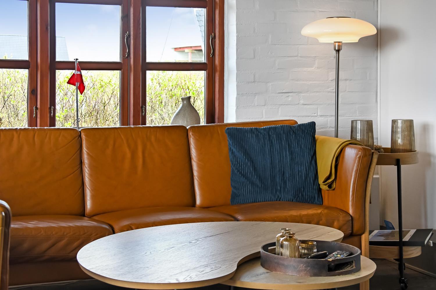 Huset er i to etager med samlingspunktet i huset i stuen, som hænger sammen med køkkenet i et rum. Herfra er der også adgang til overetagen, terrassen og den nordvendte entre. I stuen er der brændeovn, varmepumpe og sofagruppe og smart-TV med danske og tyske programmer samt mulighed for streaming af TV / radio / Apps, så har du en mobiltelefon eller et andet device med kan du streame hvad du nu har abonnement. Her er endvidere også et lille spisestue. Køkkenet byder på glaskeramisk komfur, køle/fryseskab samt opvaskemaskine og mikrobølgeovn. Det sidste rum i den nedre etage er badeværelset som har et toilet, håndvaskv vaskemaskine og og ny smart brusekabine. Tager man trappen op ovenpå er der op hver side et soveværelse. Der er "master-bedroom" mod syd med dobbeltseng, hyggeligt møblement og udgang til den sydvendte balkon. Det andet soveværelse har ligeledes dobbeltseng og hertil en enkeltseng, så her kan man sove 3. Der er opstillet tørretumbler i skuret. Har man el-bil eller en Plug-In hybrid, så er der ved Ladeboks til Type 2 ladestik, der kan lade op til 11 kWh. Ikke ryger hus. Max 1 husdyr tilladt.