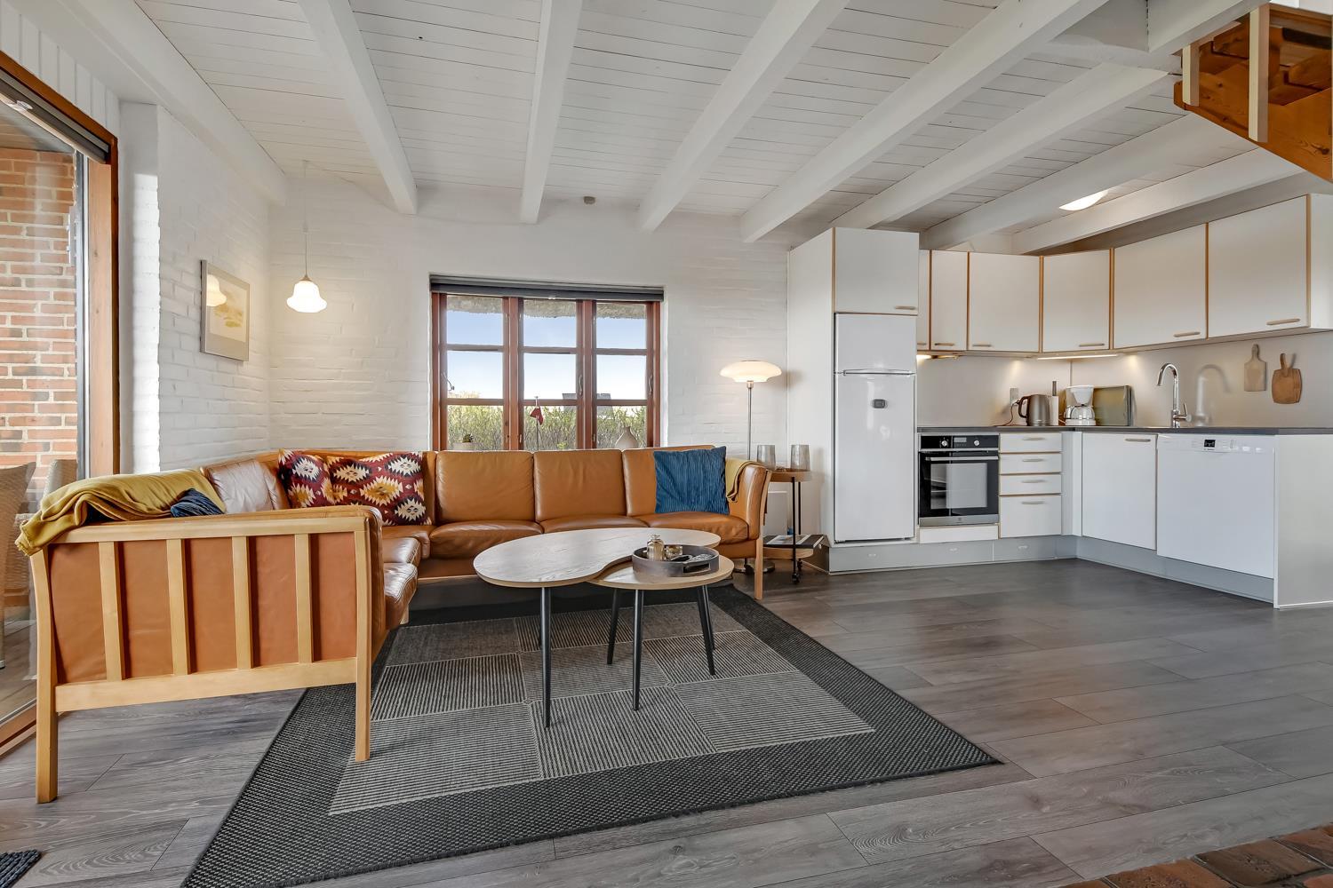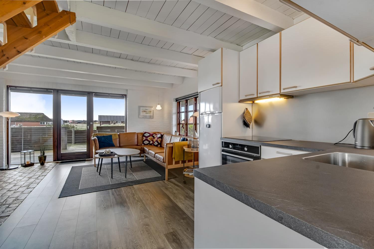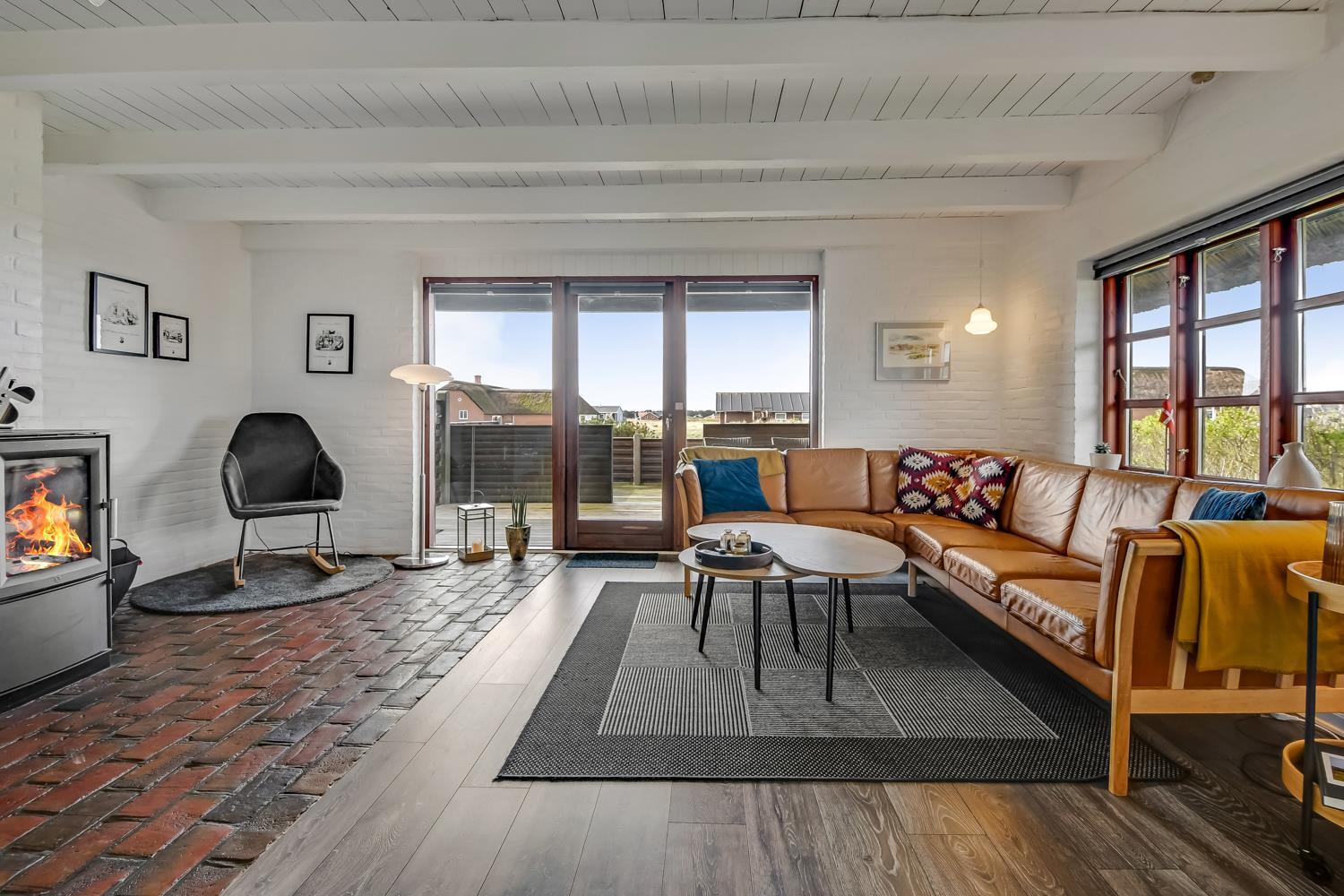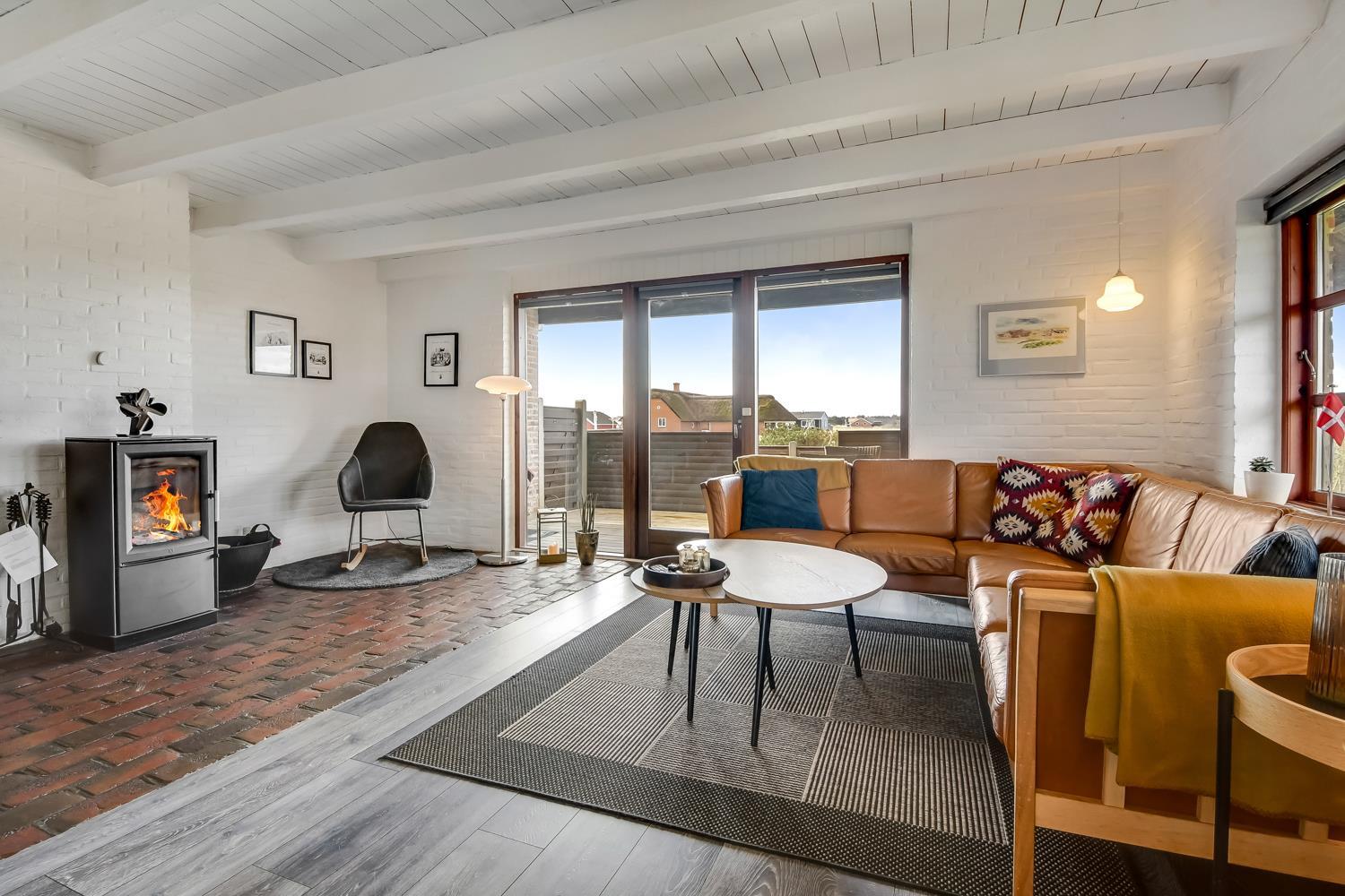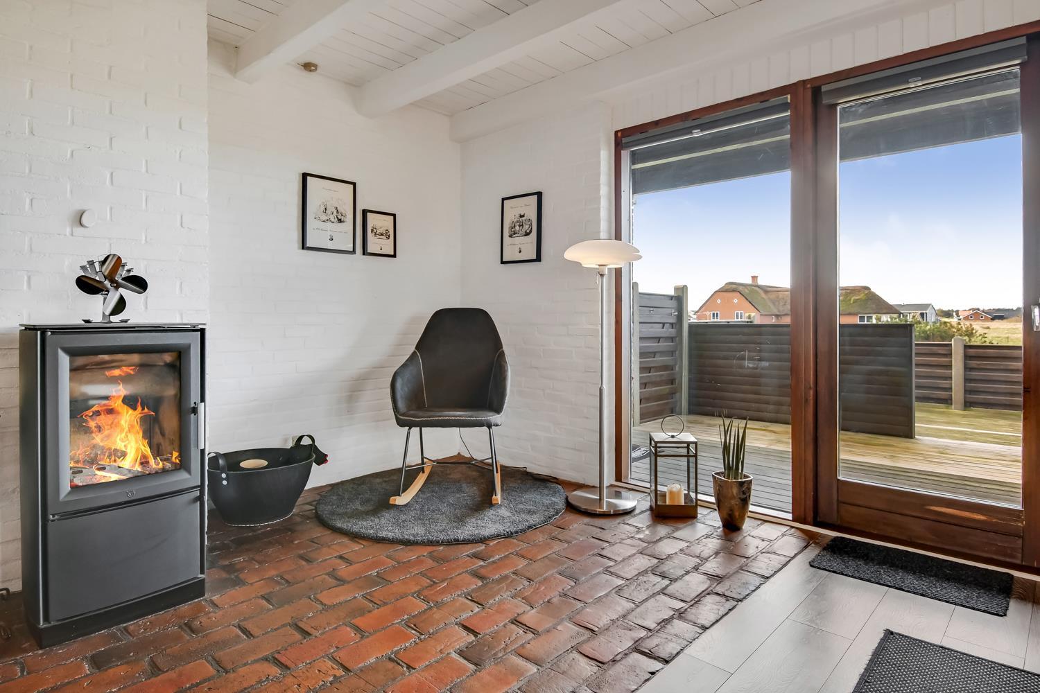 Huset har en forholdvis stor sydvendt terrasse som kan lukkes af. Her er også havemøbler til, så man kan straks benytte de gode dage til sol og frisk luft. Rundt om huset er der også lidt have og på østsiden kan man ofte finde læ på græsplænen, da der både er buske og hus i vejen for den dominerende sydvestvendte vindretning.Det er meget nemt at komme til stranden og man kan følge vejen direkte derop. Her er mange muligheder for rekreation da man kan bade, løbe, vandre, lystfiske, finde rav eller blot sjove sten. Kan man lide at flyve med drage er der absolut gode muligheder her. Vil man ud at se på egnens yderligere attraktioner er der kun 14 km til Thyborøn, som også markerer grænsen mod Nationalpark Thy og 13 km til 800 år gamle handelsby Lemvig.