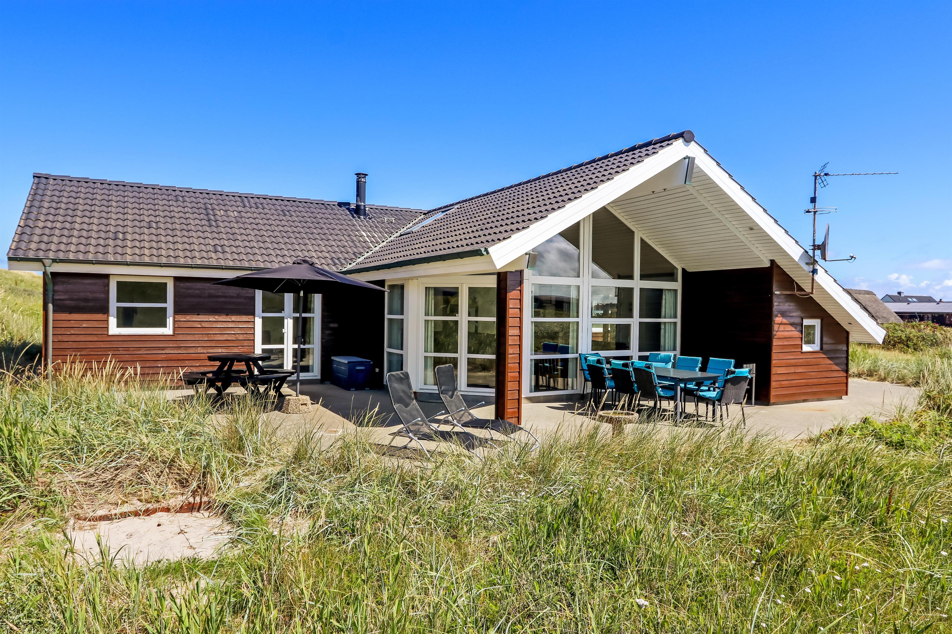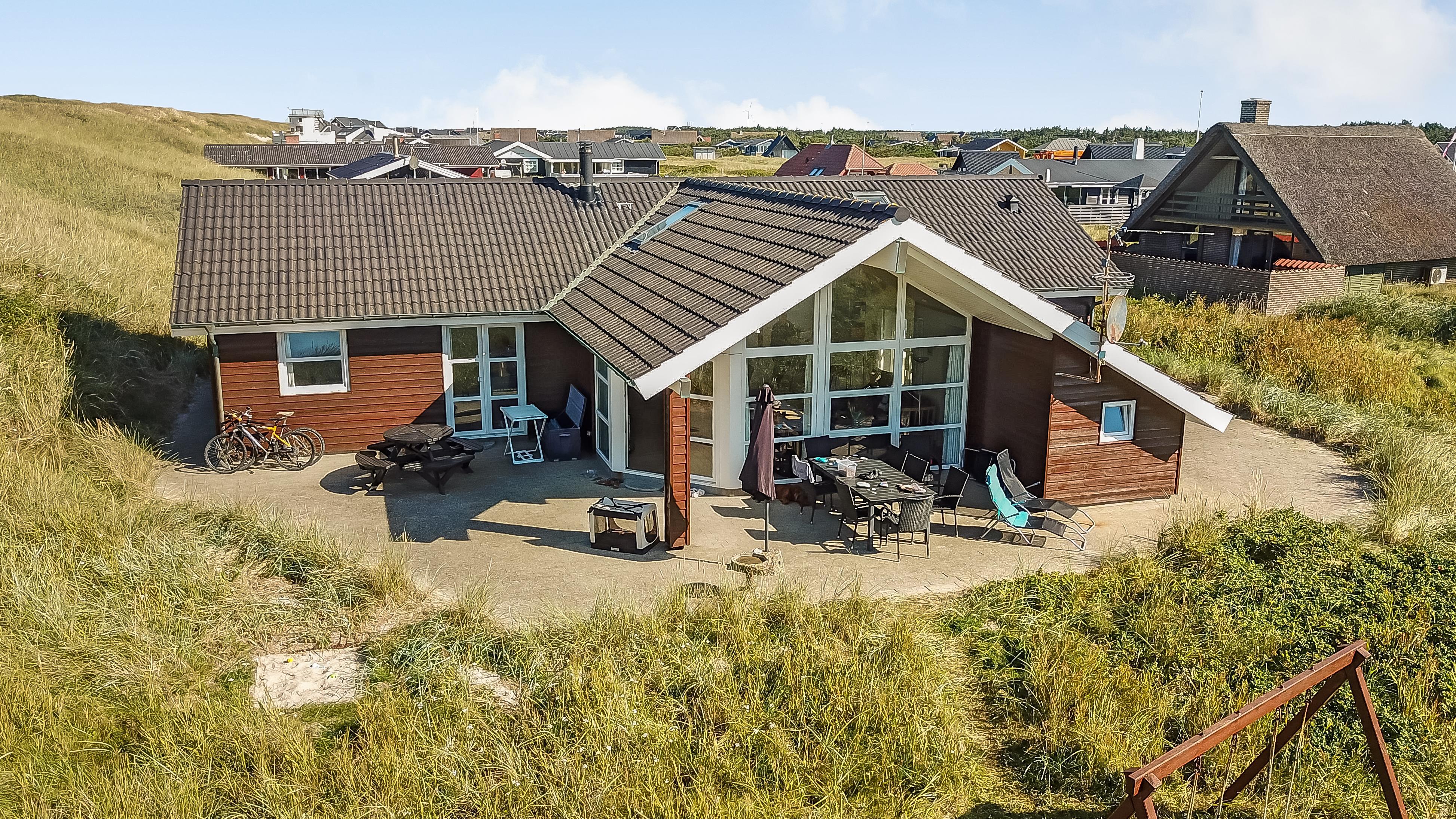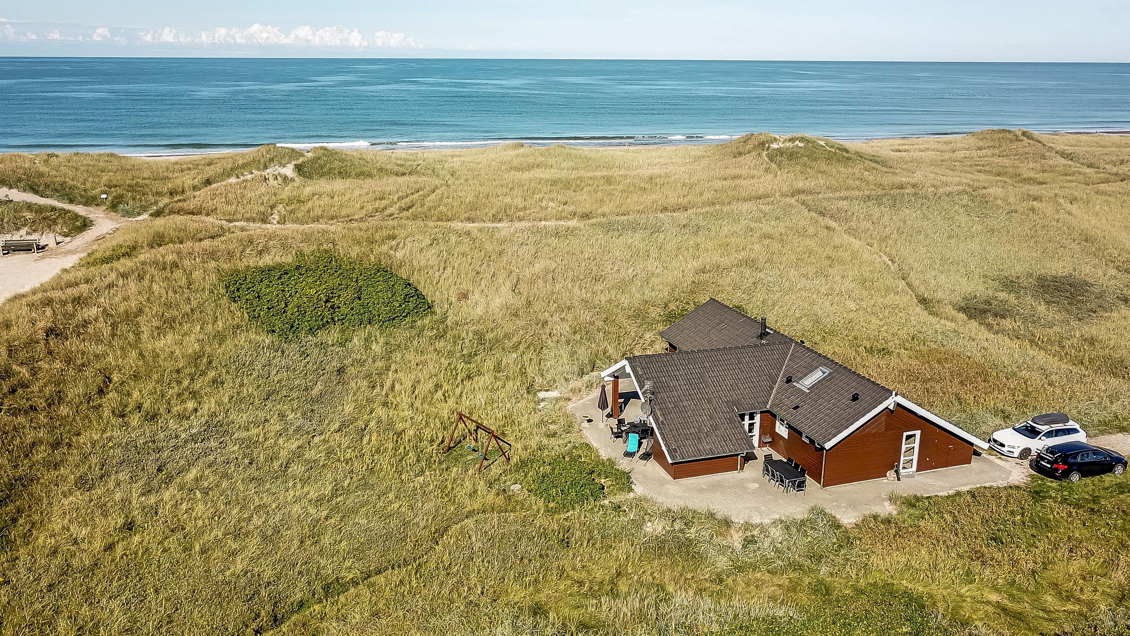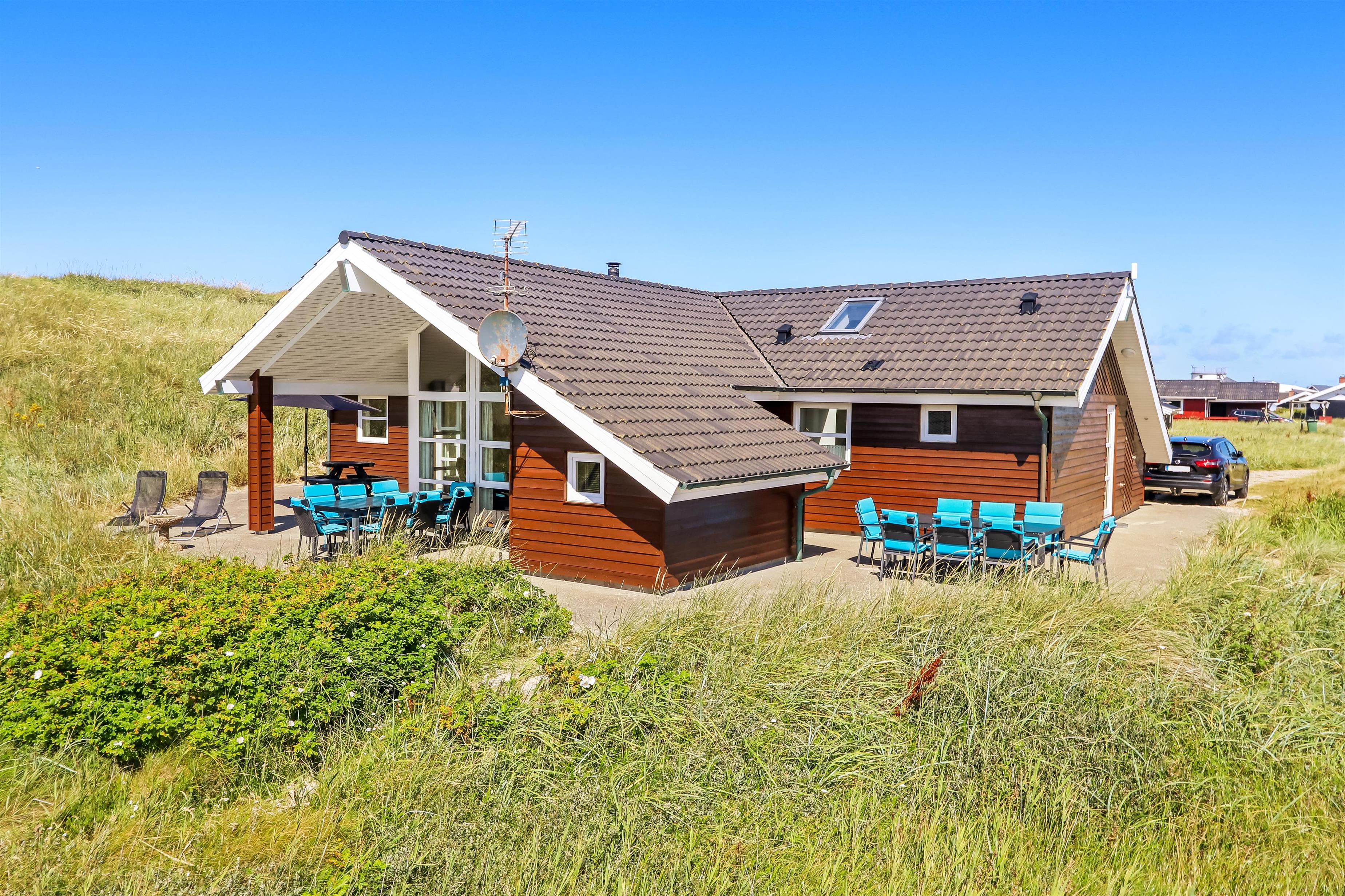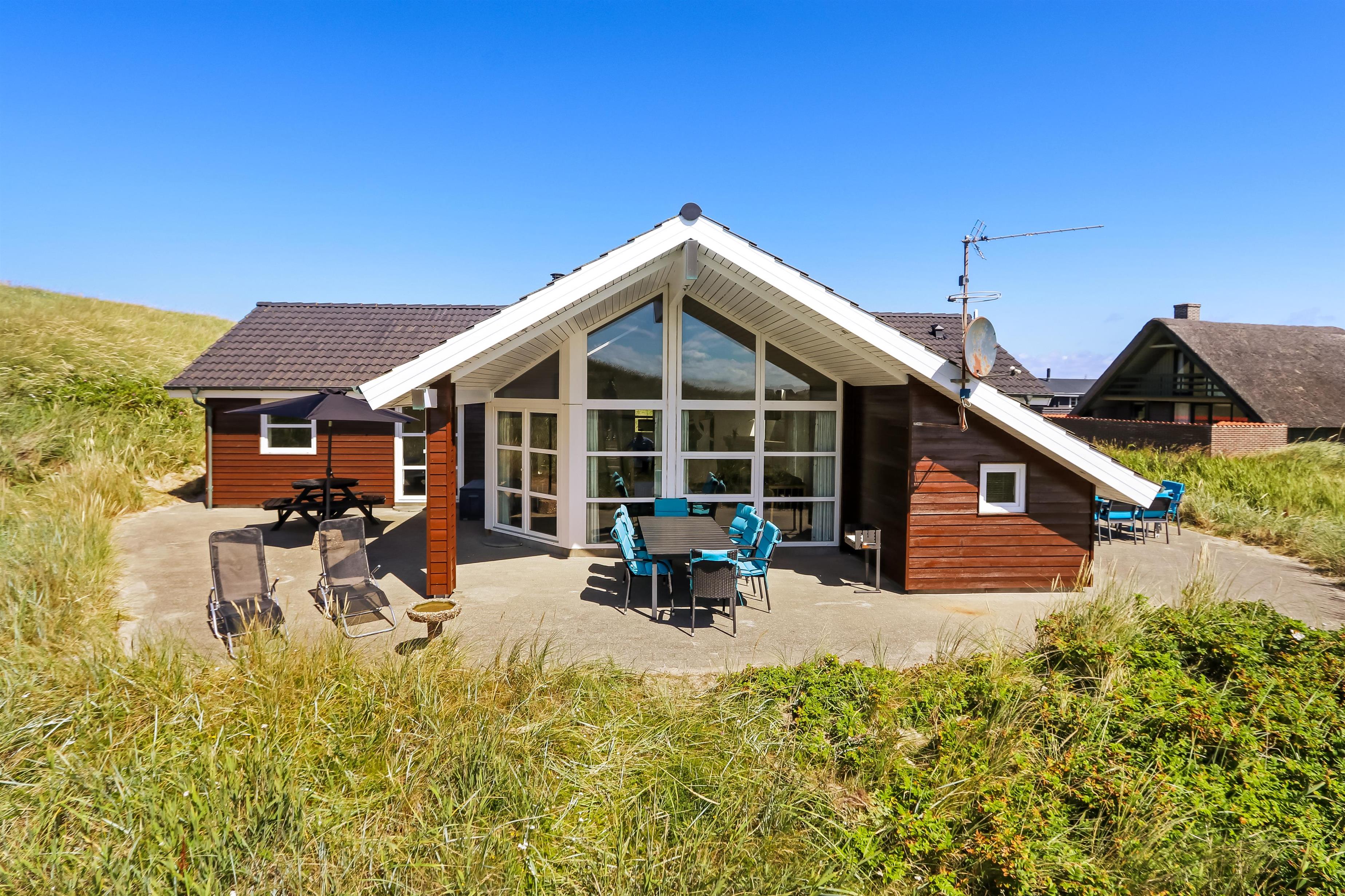 Pragtfuldt feriehus beliggende på en klitgrund ca 1985 m2, for enden af en lukket vej helt op af diget ved Vesterhavet, som blot ligger 50 m væk. Huset er bygget i 2007, Et hus som danner rammen om den perfekte ferie.