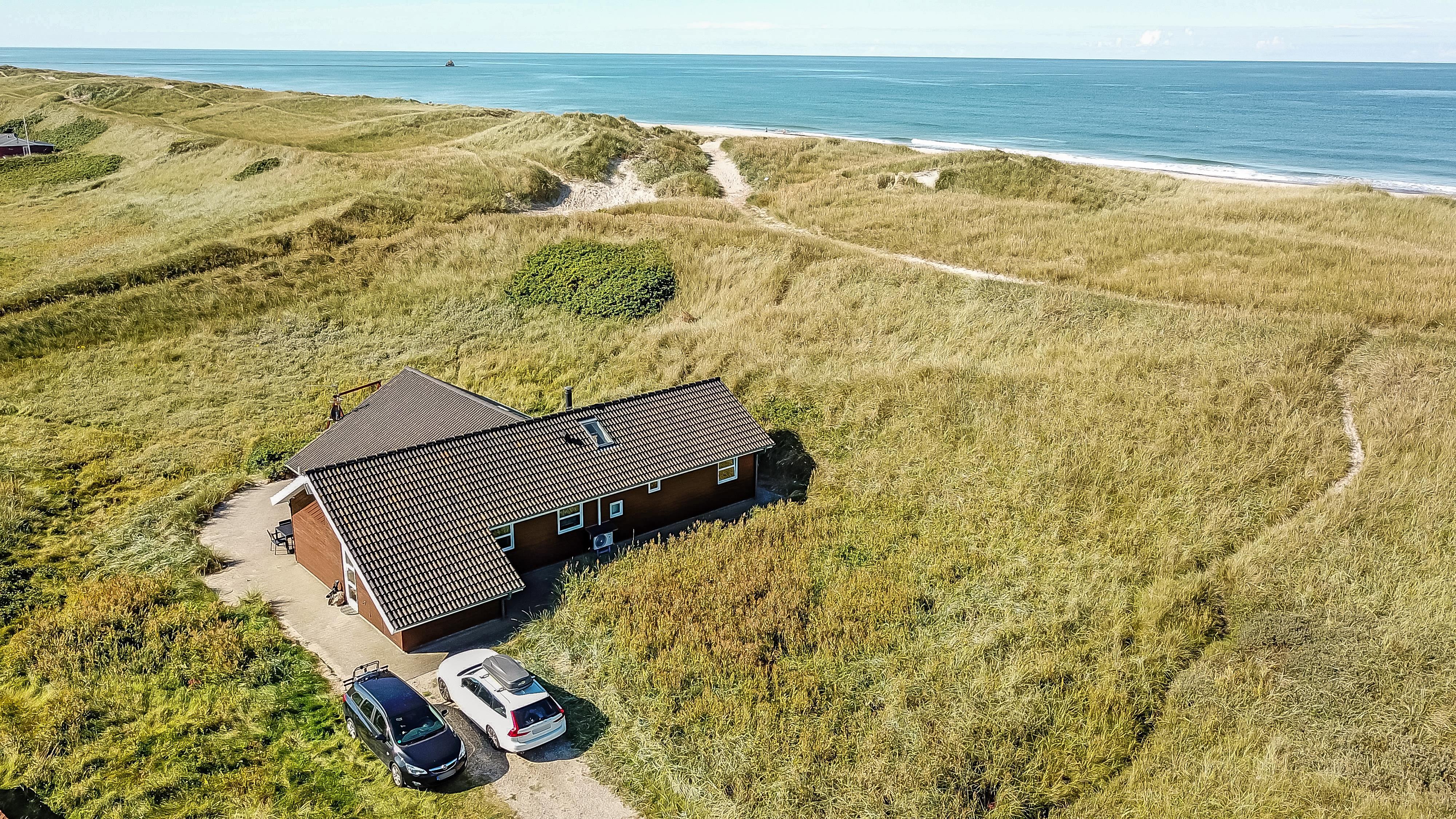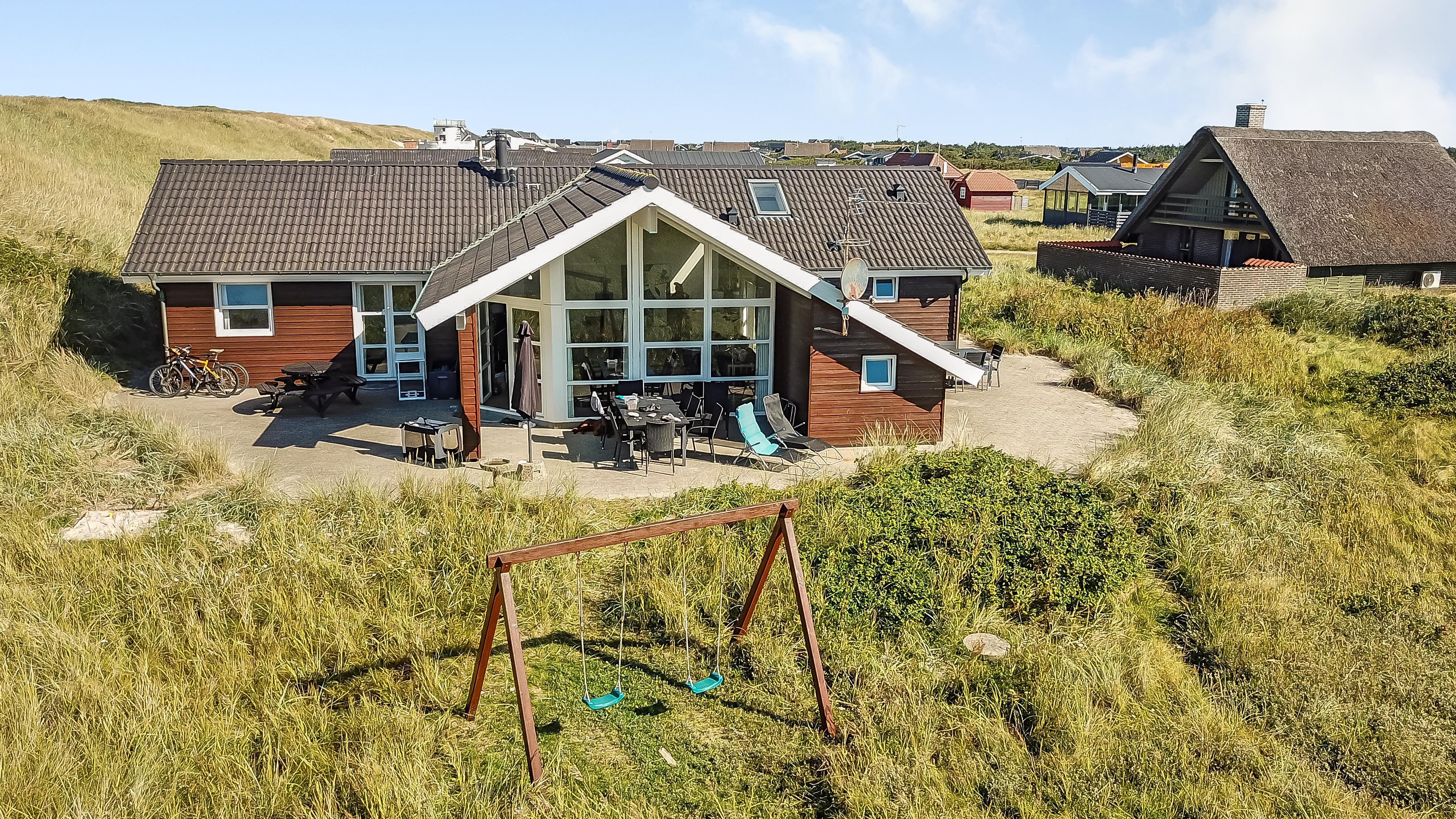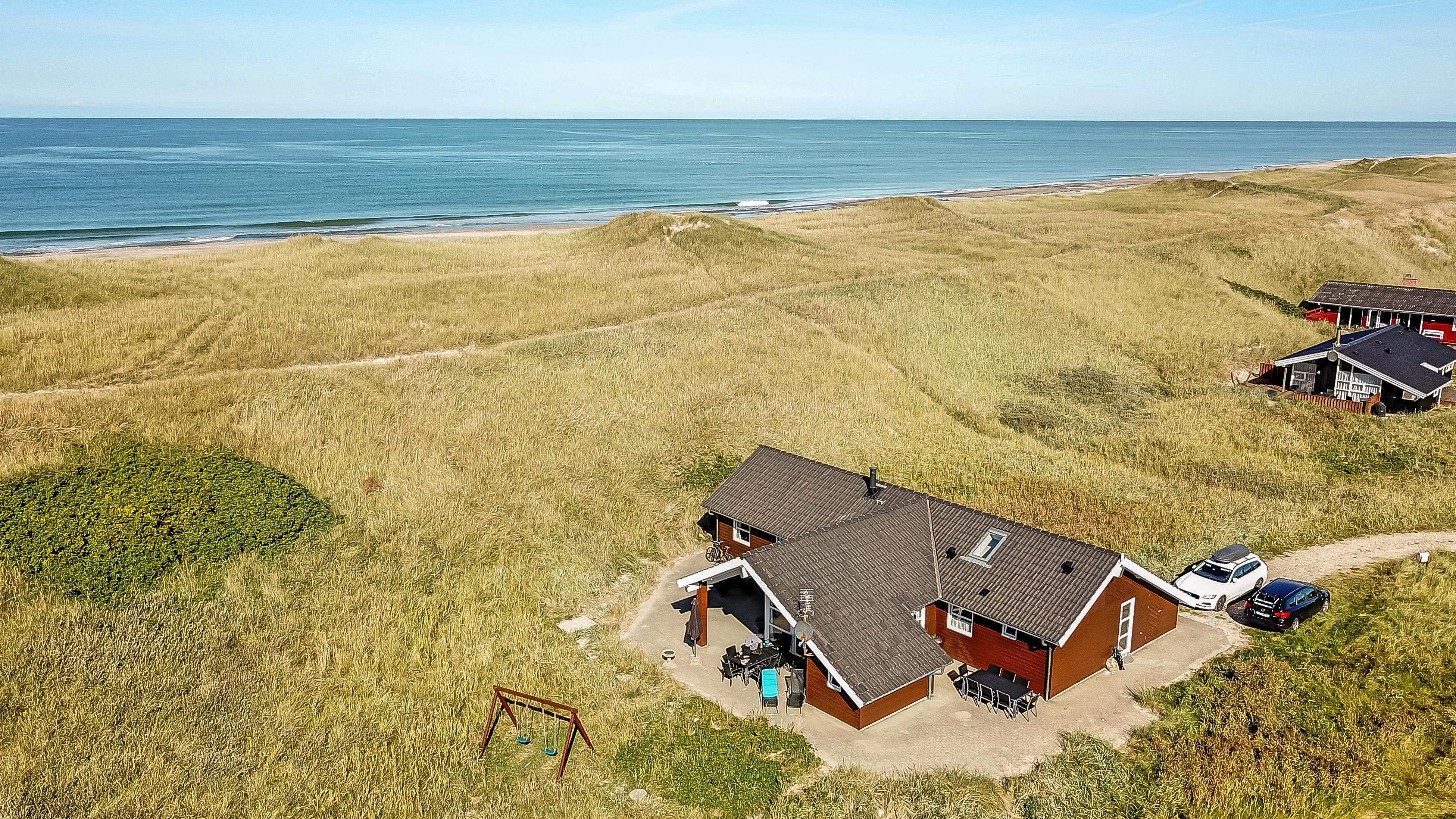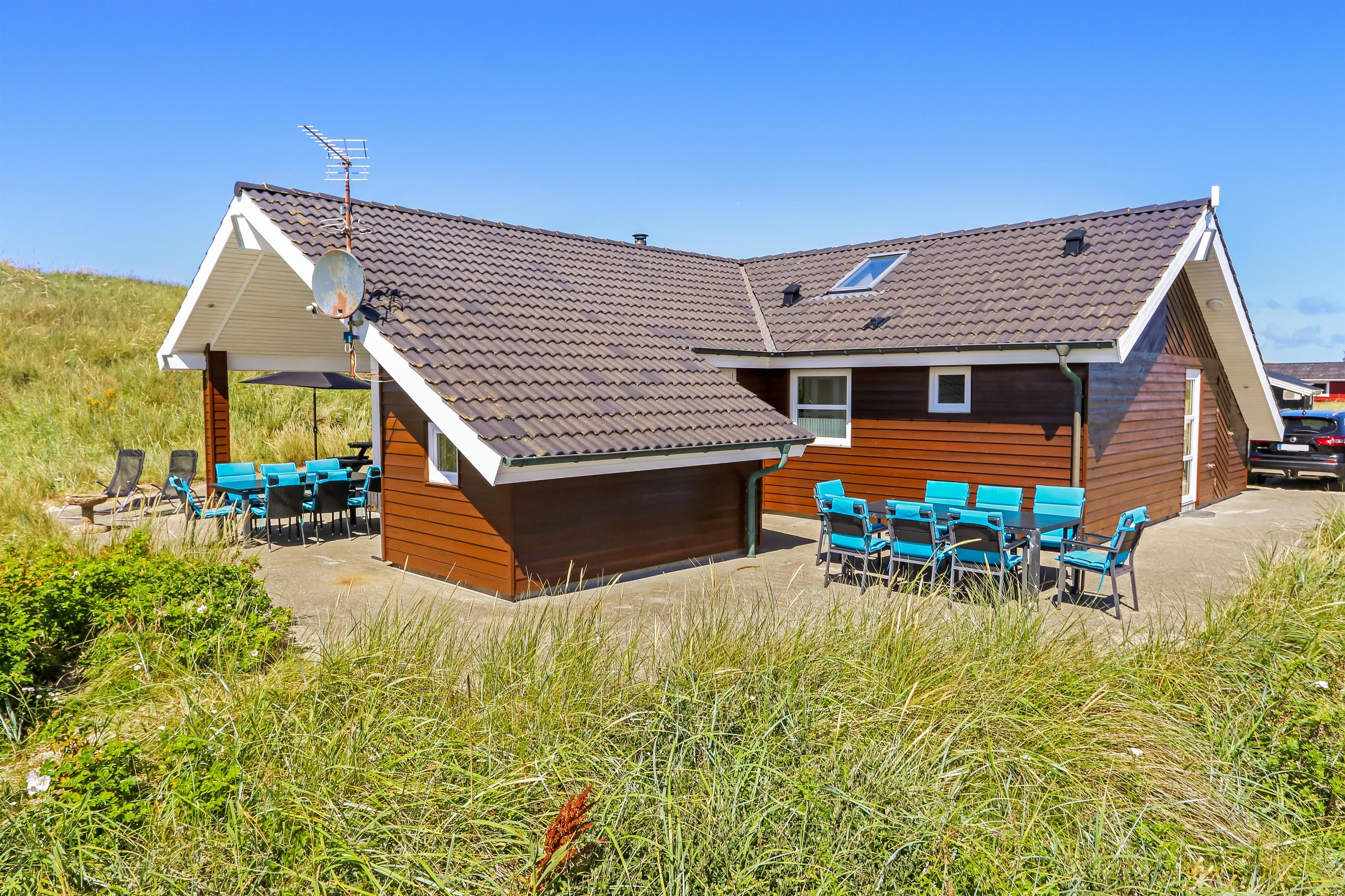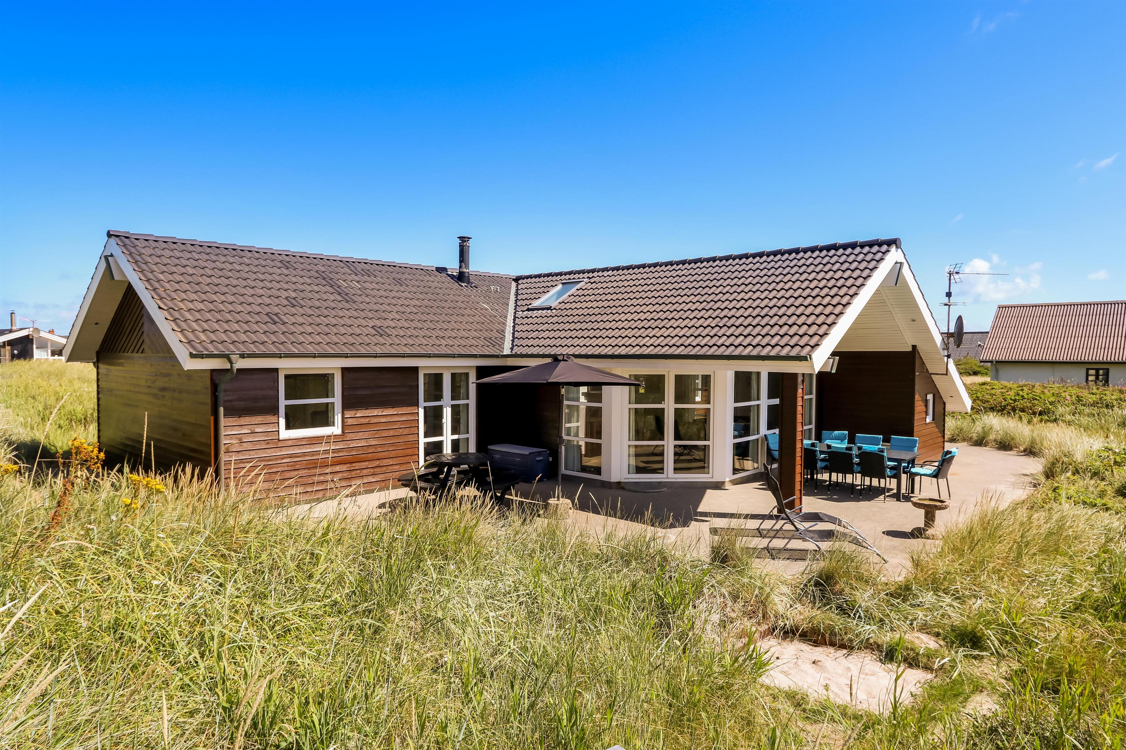 Pragtfuldt feriehus beliggende på en klitgrund ca 1985 m2, for enden af en lukket vej helt op af diget ved Vesterhavet, som blot ligger 50 m væk. Huset er bygget i 2007, Et hus som danner rammen om den perfekte ferie.