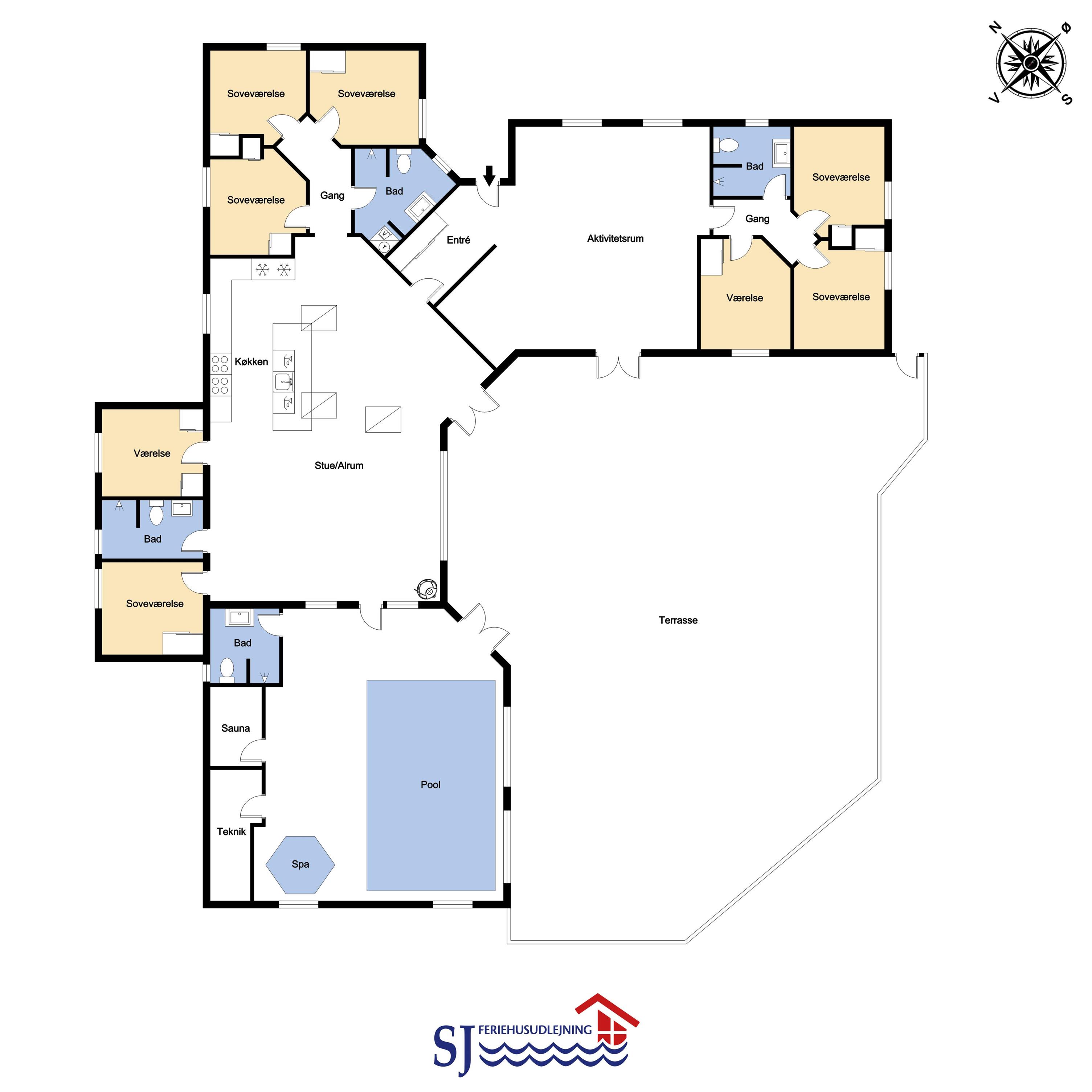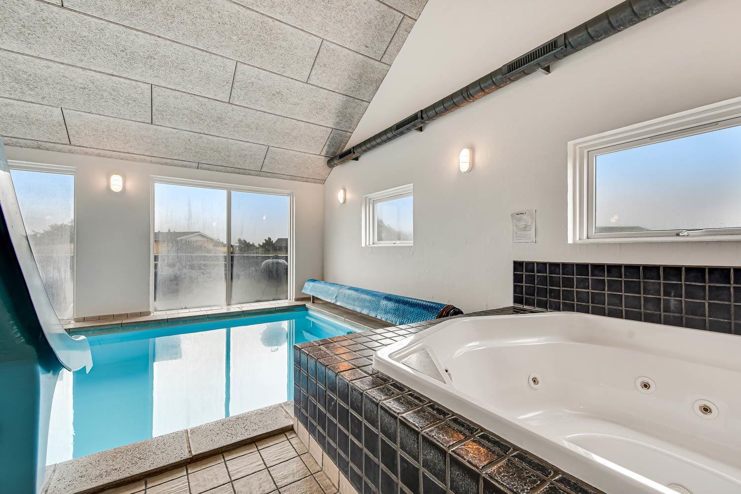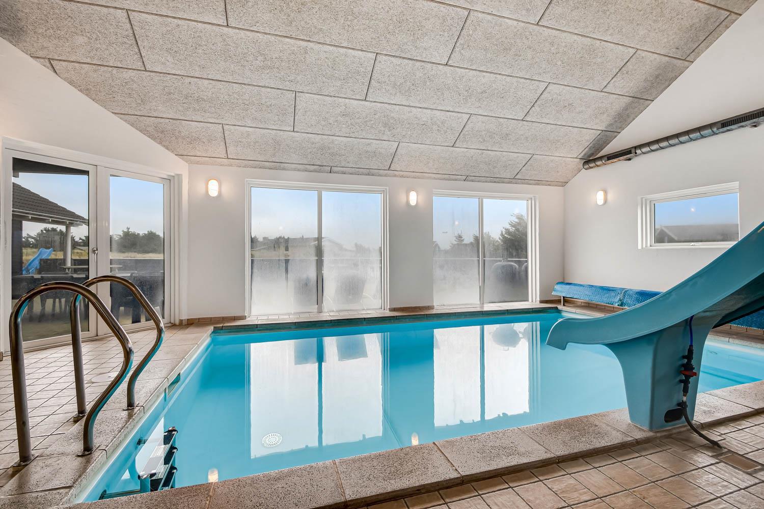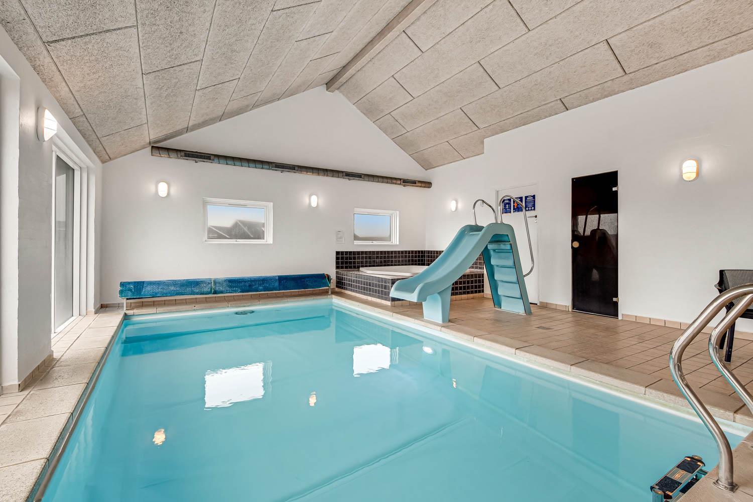 Aktivitetsferiehus med pool, spa, sauna og Wifi. Et moderne feriehus med alle tænkelige faciliteter. Et hus med god plads til hele familien og kun 150 m til Vesterhavet. Nyd husets mange muligheder eller gå en tur ved Vesterhavet.