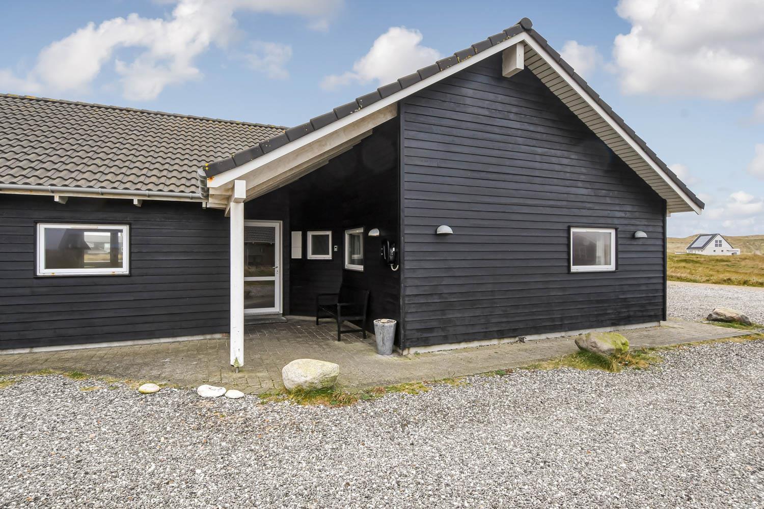 Feriehuset er beliggende på en 2.600 m2 stor klitgrund kun 150 meter fra Vesterhavet. Stor, indhegnet, delvis overdækket terrasse med gode havemøbler, solvogne og 2 x grill. Ideelt for både børn og husdyr. Nyd solen, hinanden eller en god grillaften. Gå en tur med hunden i det rolige feriehusområde, henover de høje klitter og straks derefter åbenbarer Vesterhavet sig. Et besøg værd på alle årstider. Har I været på fisketur eller blot købt fisk, med hjem tilbyder huset også fiskerenseplads. På den store grund er der gynger til børnene. Huset ligger 1000 meter fra dagligvarebutikker. Indenfor kort køre afstand nås både den aktive handelsby i Lemvi med flere specialbutikker eller den unikke fiskerby Thyborøn som udover den aktive fiskerihavn også byder på badestrand og op til flere aktivitetstilbud, som alle er et besøg værd.