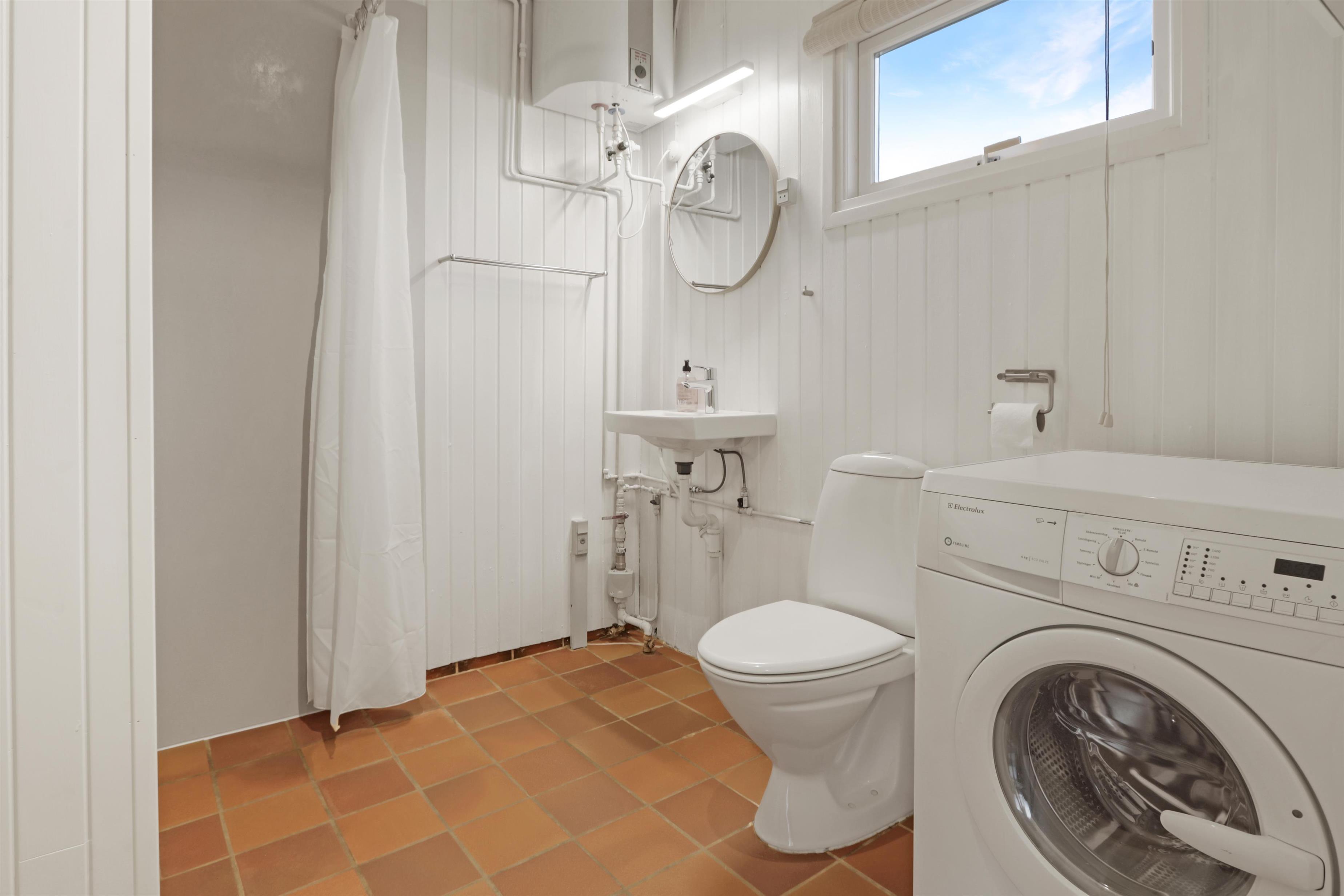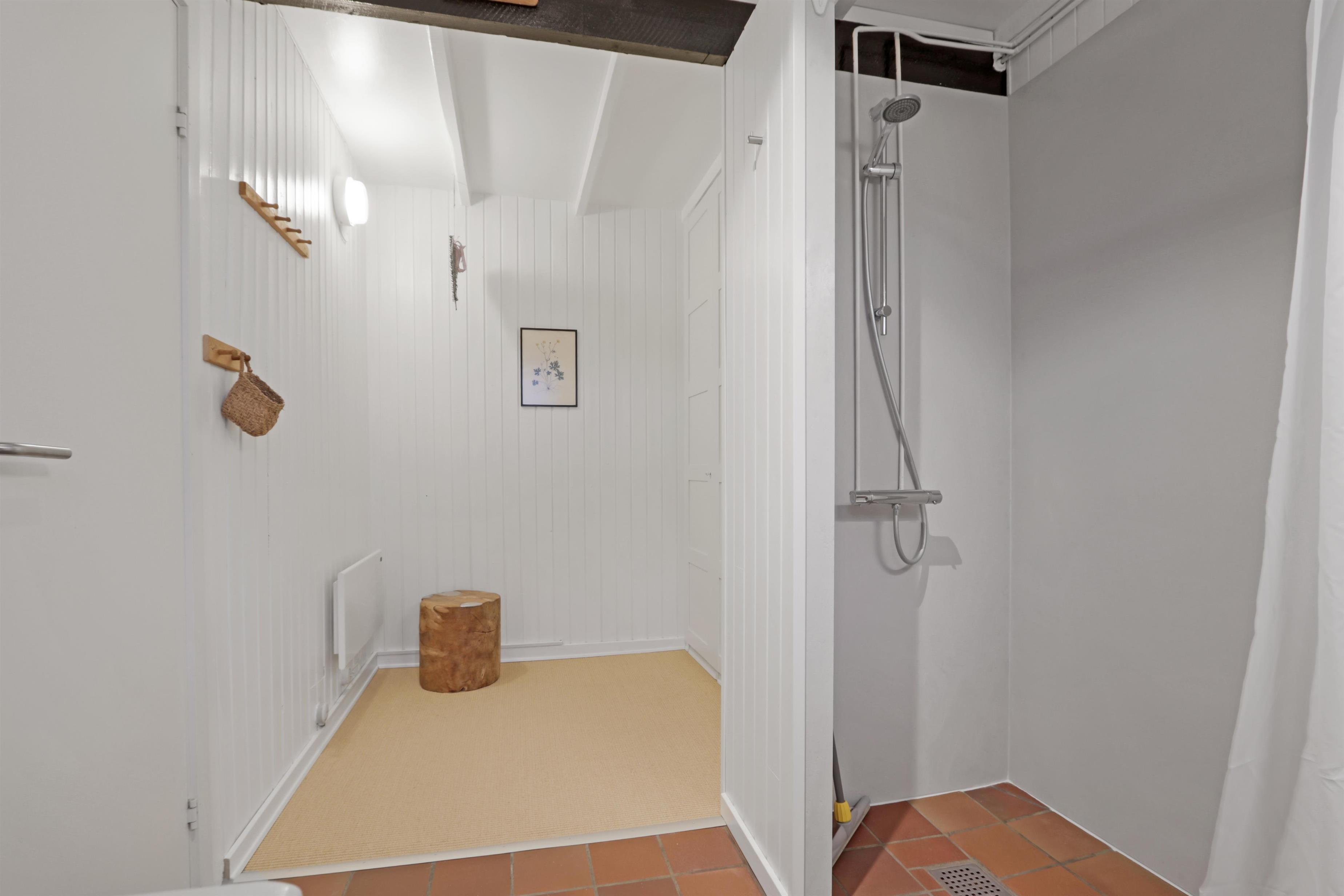 Badeværelse med toilet, bruser, håndvask, vaskemaskine og klinkegulv med gulvvarme. Max. 2 husdyr er tilladt. Ikke-ryger hus.