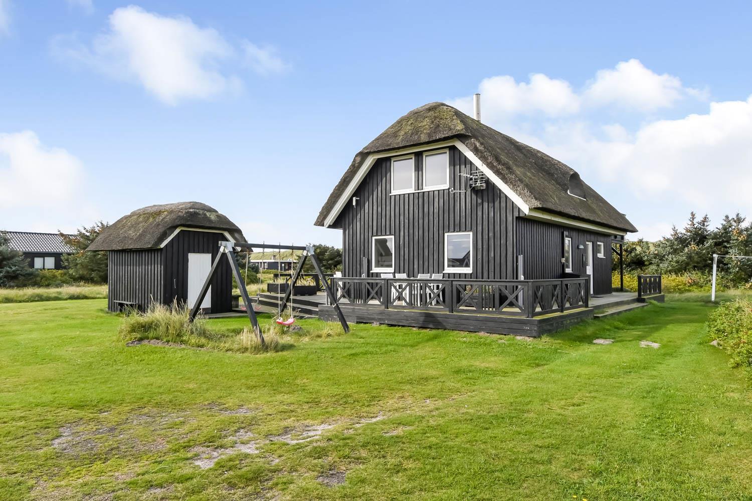 Romantisk, kvalitetshus med stråtag og gratis Internet. Flot og særdeles velholdt træhus med klitudsigt og kun et stenkast fra Vesterhavet. Et flot feriehus med god plads til hele familien eller til parret som ønsker en romantisk ferie. Nyd husets mange muligheder eller gå en dejlig tur ved Vesterhavet.