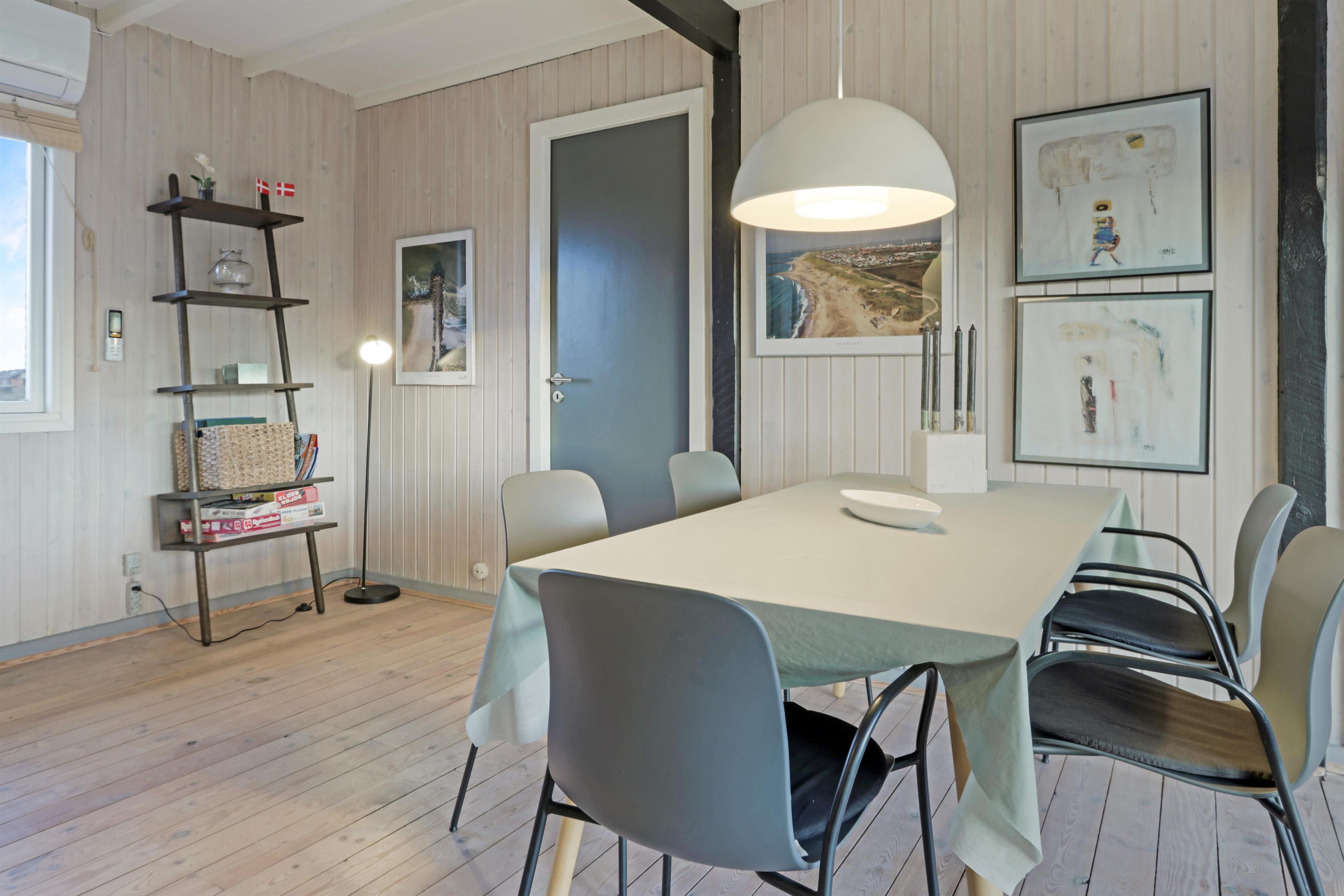 Feriehuset er beliggende på en 2.616 m2 stor klitgrund kun 100 meter fra Vesterhavet. Dejligt, romantisk terrasseanlæg med havemøbler, solvogne og grill. Nyd den helt unikke mulighed det er at sidde på terrassen samtidig med, at man kan høre Vesterhavet lige på den anden side af klitterne, Der er også rig mulighed for at nyde solen, hinanden eller en god grillaften. Gå en tur med hunden i det rolige feriehusområde, henover de høje klitter og straks derefter åbenbarer Vesterhavet sig. Hver dag byder Vesterhavet på nye maleriske oplevelse, der invitere til en frisk gå- eller løbetur. Eller hvad med en lille tur på ca. 10 - 15 min op til områdets lille købmand, som i sæsonen har åbent og byder på frisk morgenbrød og hvor de daglige indkøb også kan klares. Så hvad enten du er til aktiv ferie eller total afslapning danner dette flotte feriehus den perfekte ramme både hvad angår hus, beliggenhed og omgivelser. Indenfor kort køreafstand nås både den aktive handelsby i Lemvig med flere specialbutikker eller den unikke fiskerby Thyborøn, som udover den aktive fiskerihavn også byder på badestrand og op til flere aktivitetstilbud, som alle er et besøg værd.