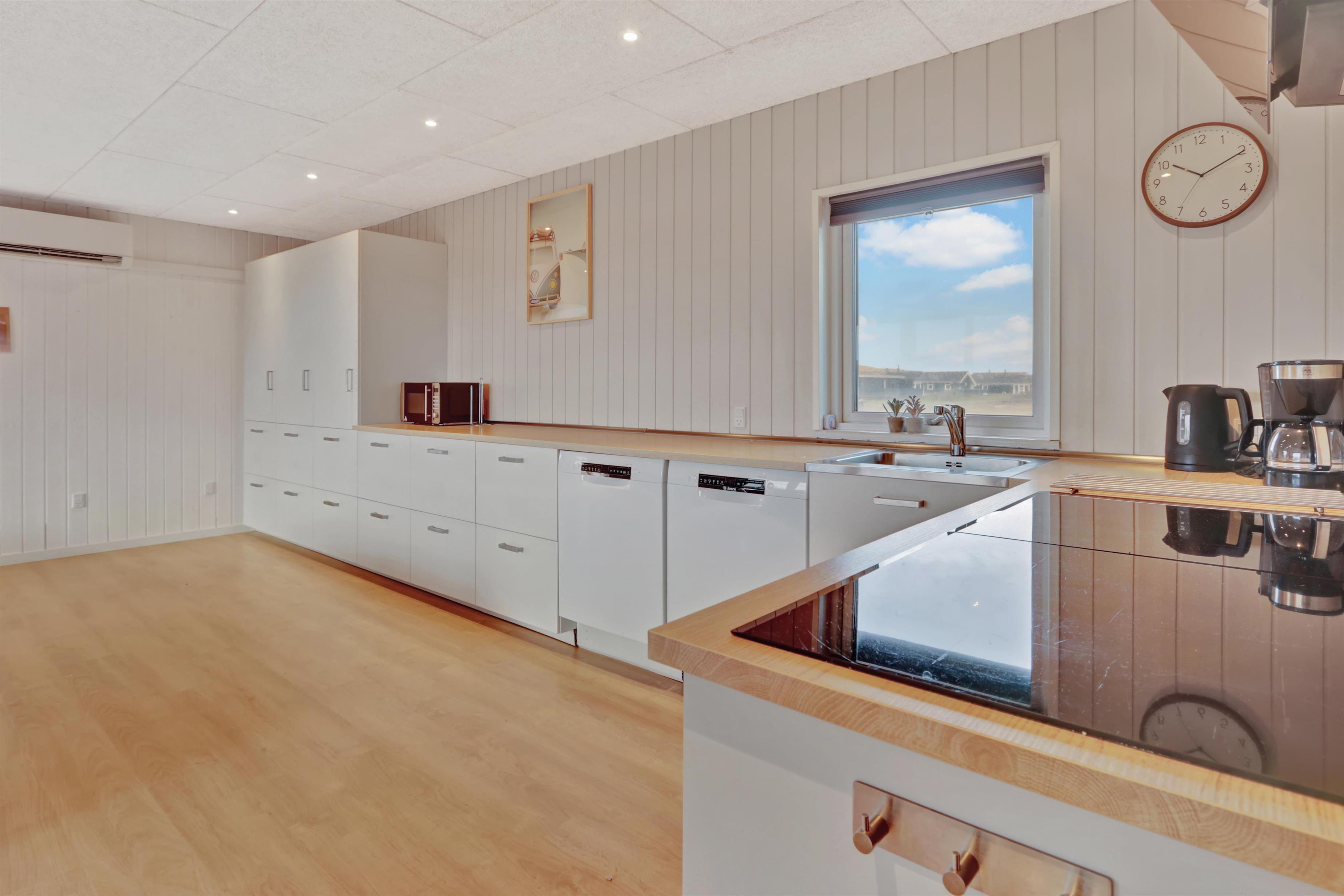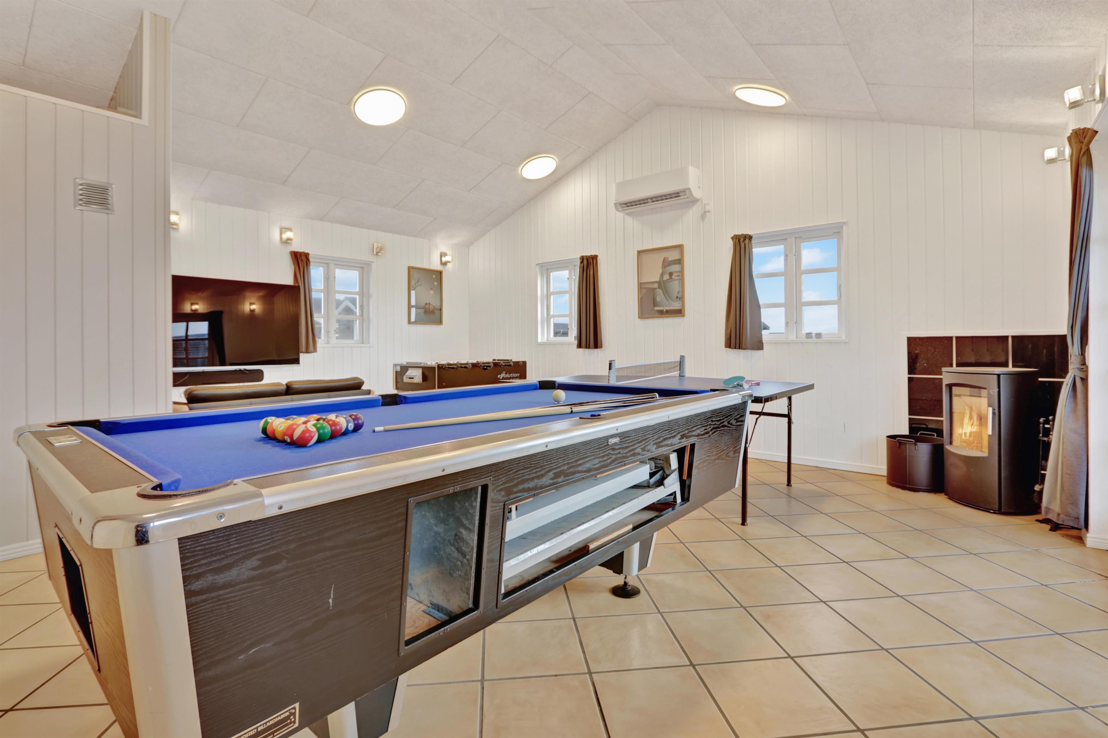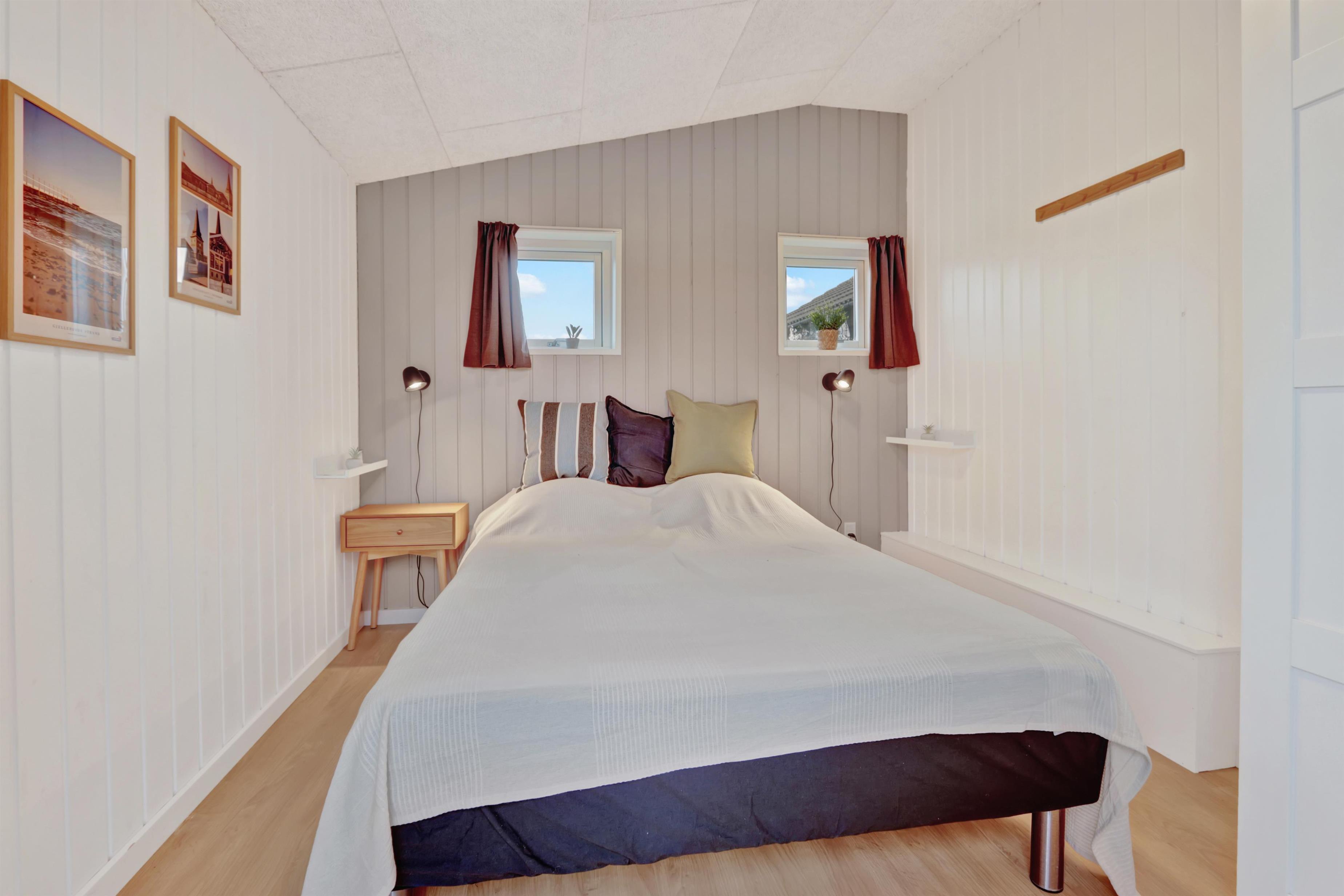 Huset er indrettet med 4 soverum i selve huset, derudover findes der et anneks med plads til to personer. Ligeledes forefindes der en hems i forbindelse med aktivitetsrummet til to personer. Huset indeholder 3 dobbeltsenge samt 4 enkeltsenge og to madrasser på hemsen. Sommerhuset er hele 182m2 stort, og der er derfor rigelig med plads til flere familier. Huset er indrettet med en lille entré med plads til overtøj, derefter går man ind i det store køkken fra 2022 hvor der er dobbelt op på samtlige hvidevarer, to ovne, to opvaskemaskiner, to kogeplader, stort køleskab og fryseskab mm. Køkkenet er kombineret med tv stue med sofagruppe samt 65t fjernsyn og brændeovn. Fra køkkenet er der direkte adgang til spisestuen hvor de store vinduer gør at man kigger direkte op mod klitterne. Huset er ligeledes indrettet med to gode badeværelser med gulvvarme i hver sin ende af huset. i badeværelset ved aktivitetsrummet er der direkte adgang til saunaen. I mellemgangen findes det lille bryggers hvor der findes vaskesøjle med vaskemaskine og tørretumbler. I enden af huset finder man det store aktivitetsrum hvor der er kombibord med poolbord/bordtennis, bordfodbold, sofagruppe med 55t fjernsyn, brændeovn mm. Det er ligeledes herfra der er direkte adgang til husets hems med 2 sovepladser. Huset fremstår lyst over det hele med hvide vægge og lyse laminatgulve samt hvide akustik lofter, så det ikke virker så højlydt når man sidder 12 rundt om spisebordet. Til børnene er der 1 barneseng og 2 barnestole. 2 stk husdyr er tilladt. Huset lejes ikke ud til ungdomsgrupper. Huset har ligeledes Fibernet installeret. Obligatorisk slutrengøring