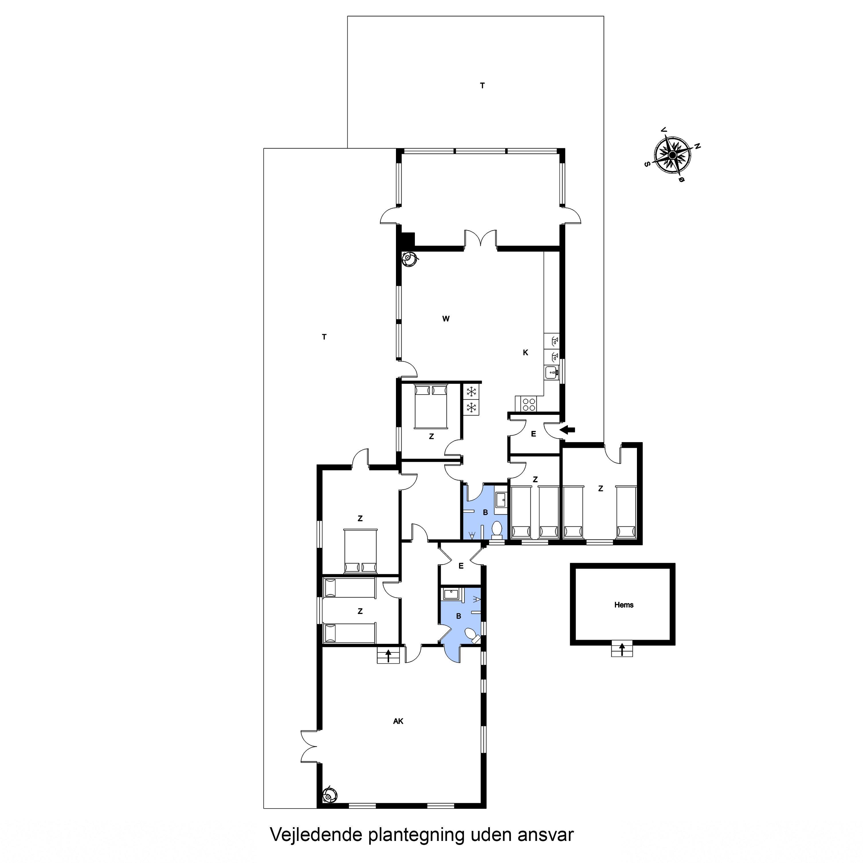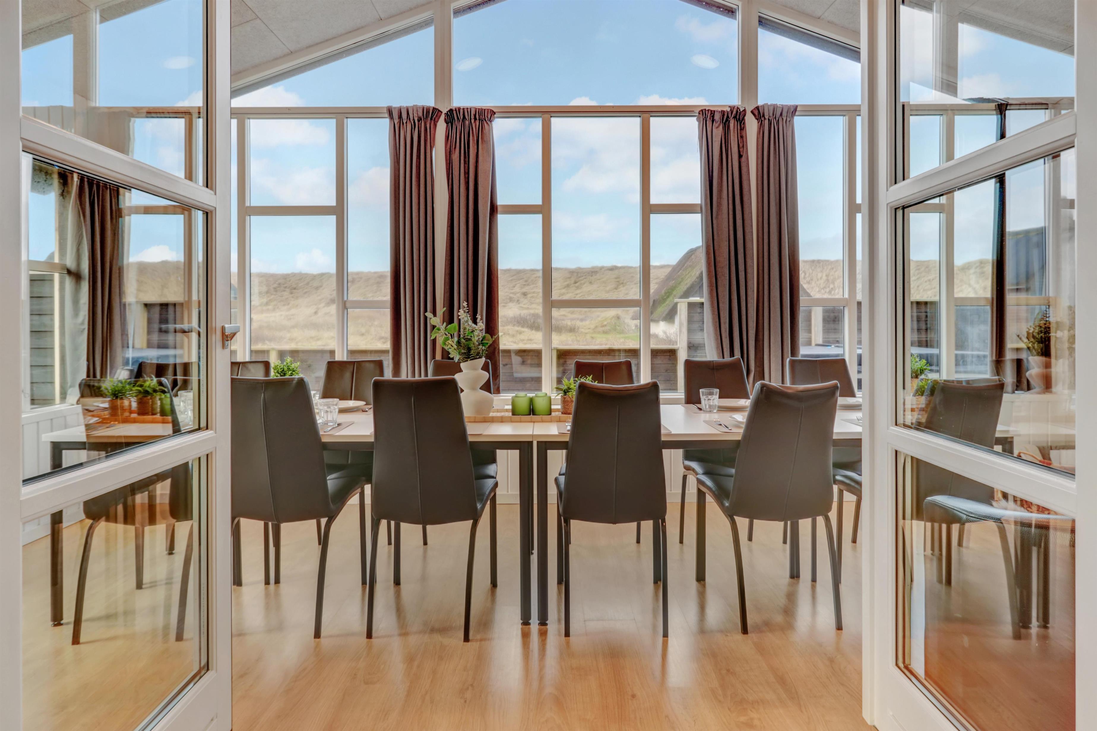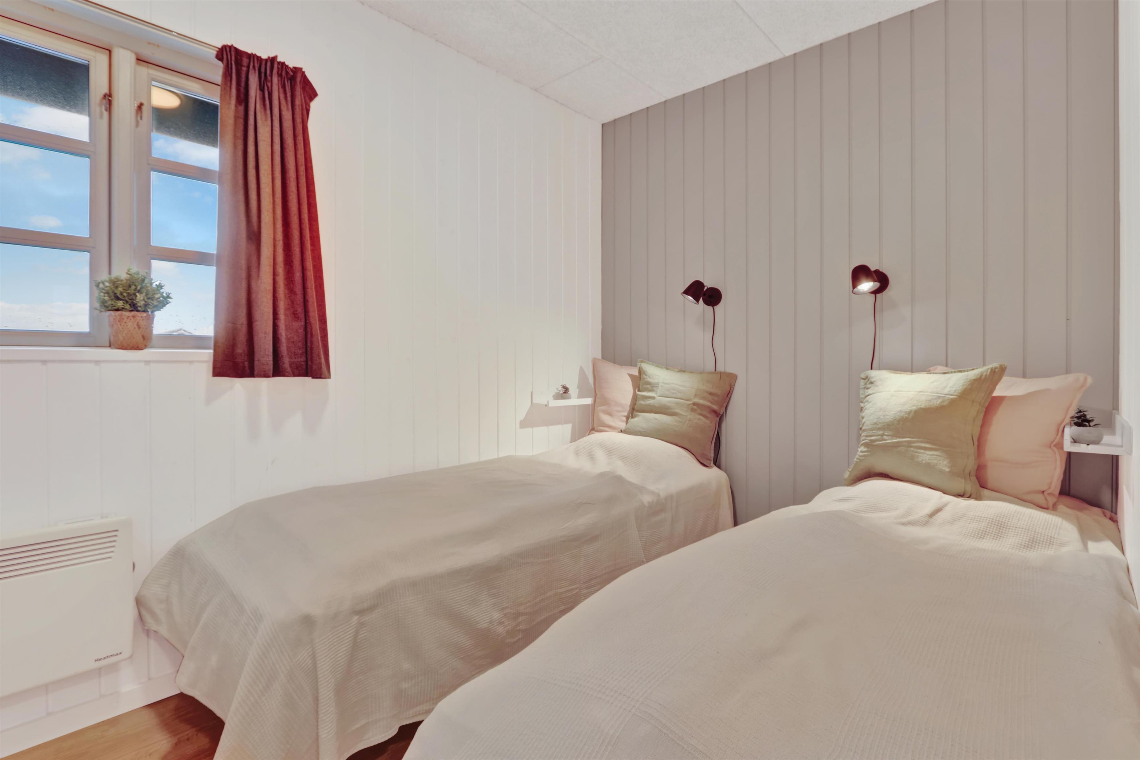 Huset er indrettet med 4 soverum i selve huset, derudover findes der et anneks med plads til to personer. Ligeledes forefindes der en hems i forbindelse med aktivitetsrummet til to personer. Huset indeholder 3 dobbeltsenge samt 4 enkeltsenge og to madrasser på hemsen. Sommerhuset er hele 182m2 stort, og der er derfor rigelig med plads til flere familier. Huset er indrettet med en lille entré med plads til overtøj, derefter går man ind i det store køkken fra 2022 hvor der er dobbelt op på samtlige hvidevarer, to ovne, to opvaskemaskiner, to kogeplader, stort køleskab og fryseskab mm. Køkkenet er kombineret med tv stue med sofagruppe samt 65t fjernsyn og brændeovn. Fra køkkenet er der direkte adgang til spisestuen hvor de store vinduer gør at man kigger direkte op mod klitterne. Huset er ligeledes indrettet med to gode badeværelser med gulvvarme i hver sin ende af huset. i badeværelset ved aktivitetsrummet er der direkte adgang til saunaen. I mellemgangen findes det lille bryggers hvor der findes vaskesøjle med vaskemaskine og tørretumbler. I enden af huset finder man det store aktivitetsrum hvor der er kombibord med poolbord/bordtennis, bordfodbold, sofagruppe med 55t fjernsyn, brændeovn mm. Det er ligeledes herfra der er direkte adgang til husets hems med 2 sovepladser. Huset fremstår lyst over det hele med hvide vægge og lyse laminatgulve samt hvide akustik lofter, så det ikke virker så højlydt når man sidder 12 rundt om spisebordet. Til børnene er der 1 barneseng og 2 barnestole. 2 stk husdyr er tilladt. Huset lejes ikke ud til ungdomsgrupper. Huset har ligeledes Fibernet installeret. Obligatorisk slutrengøring