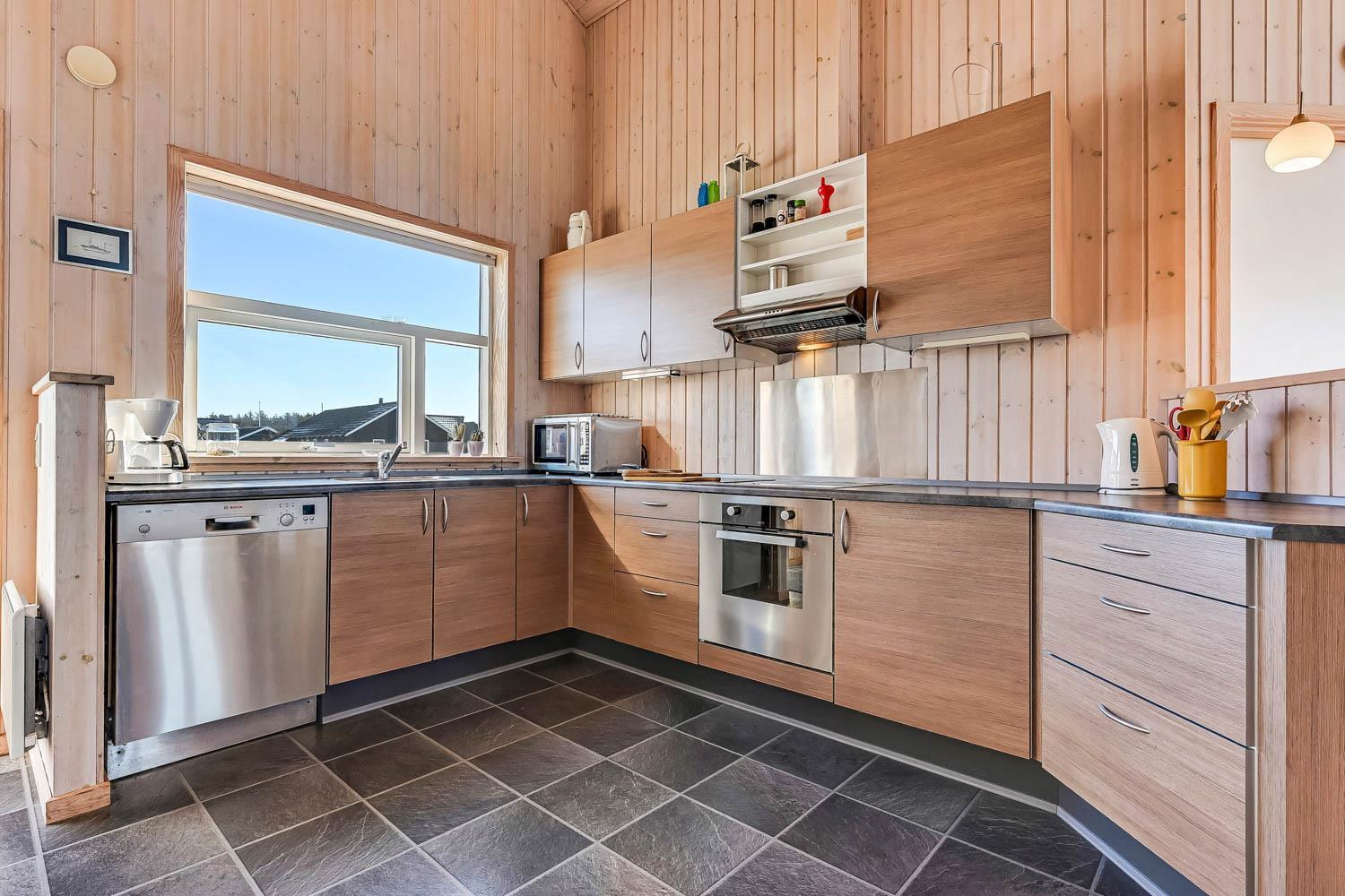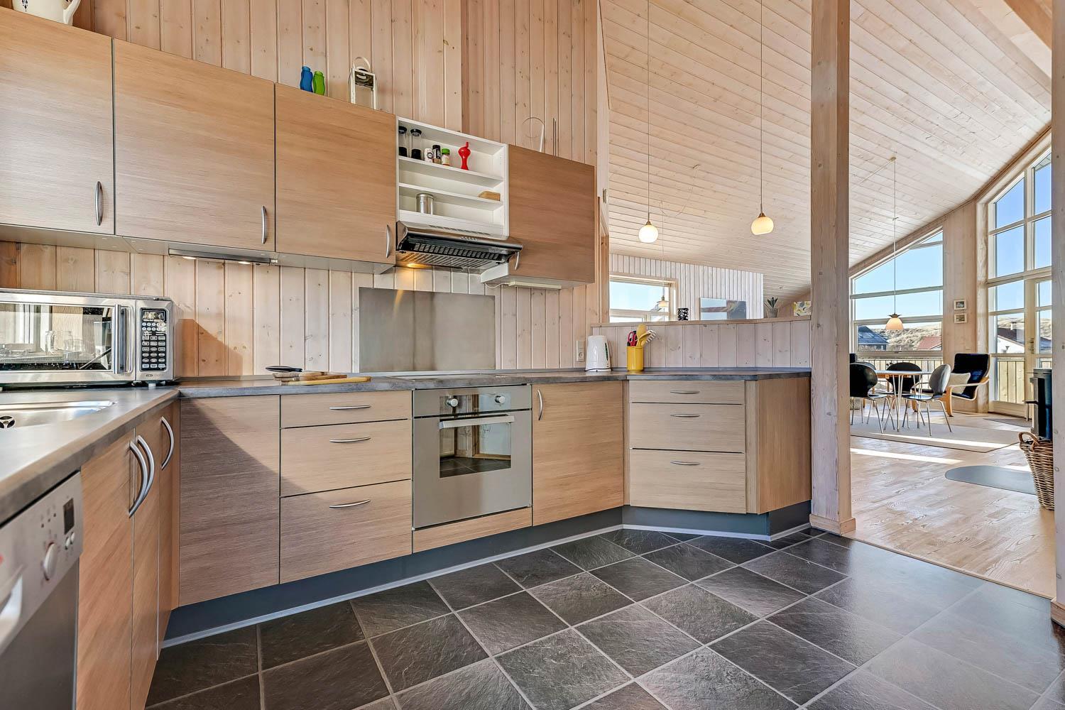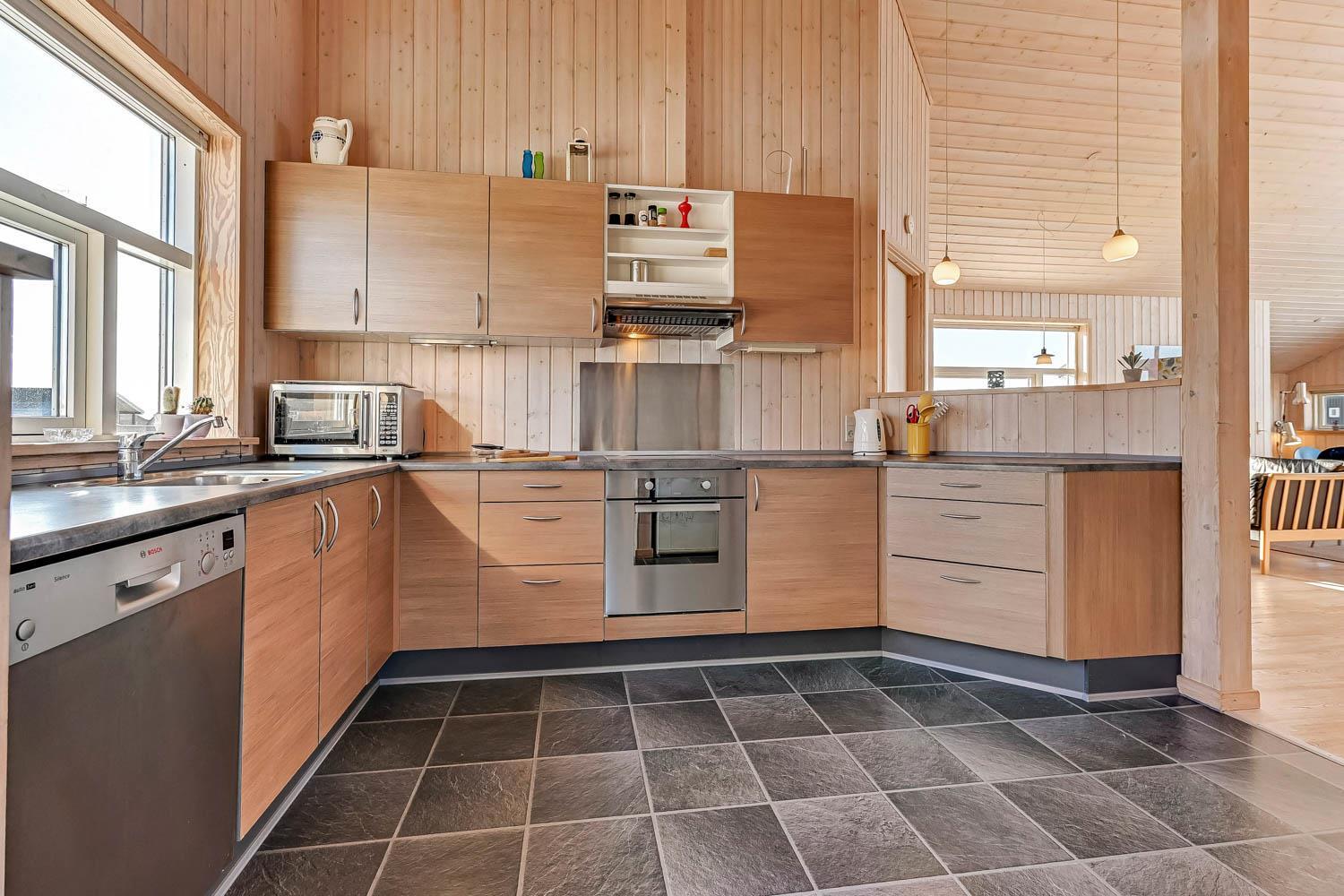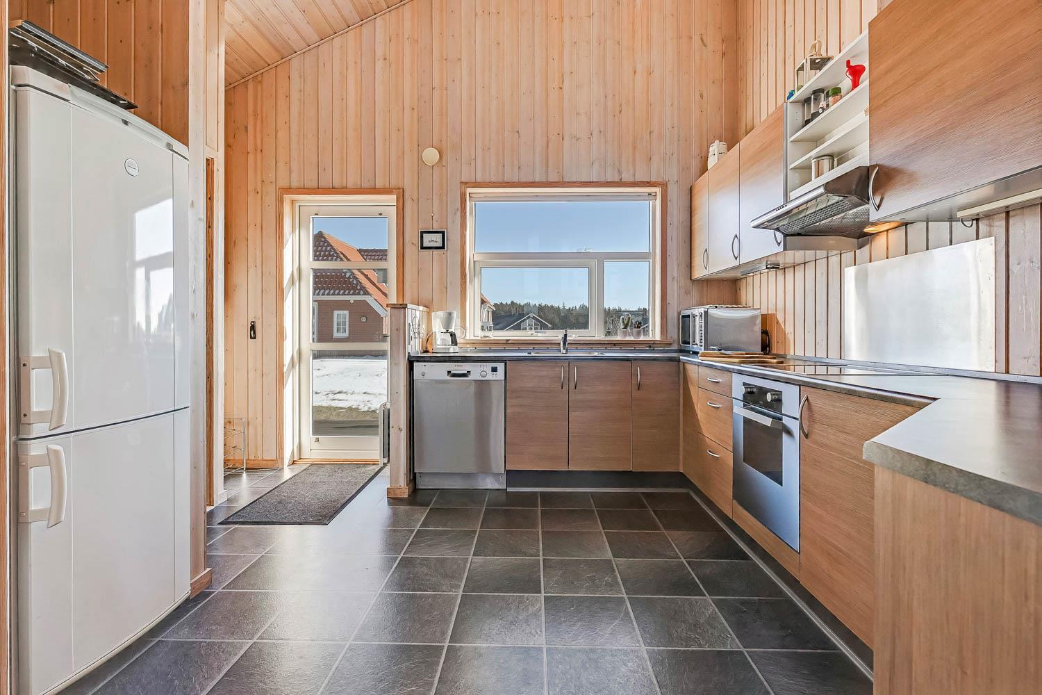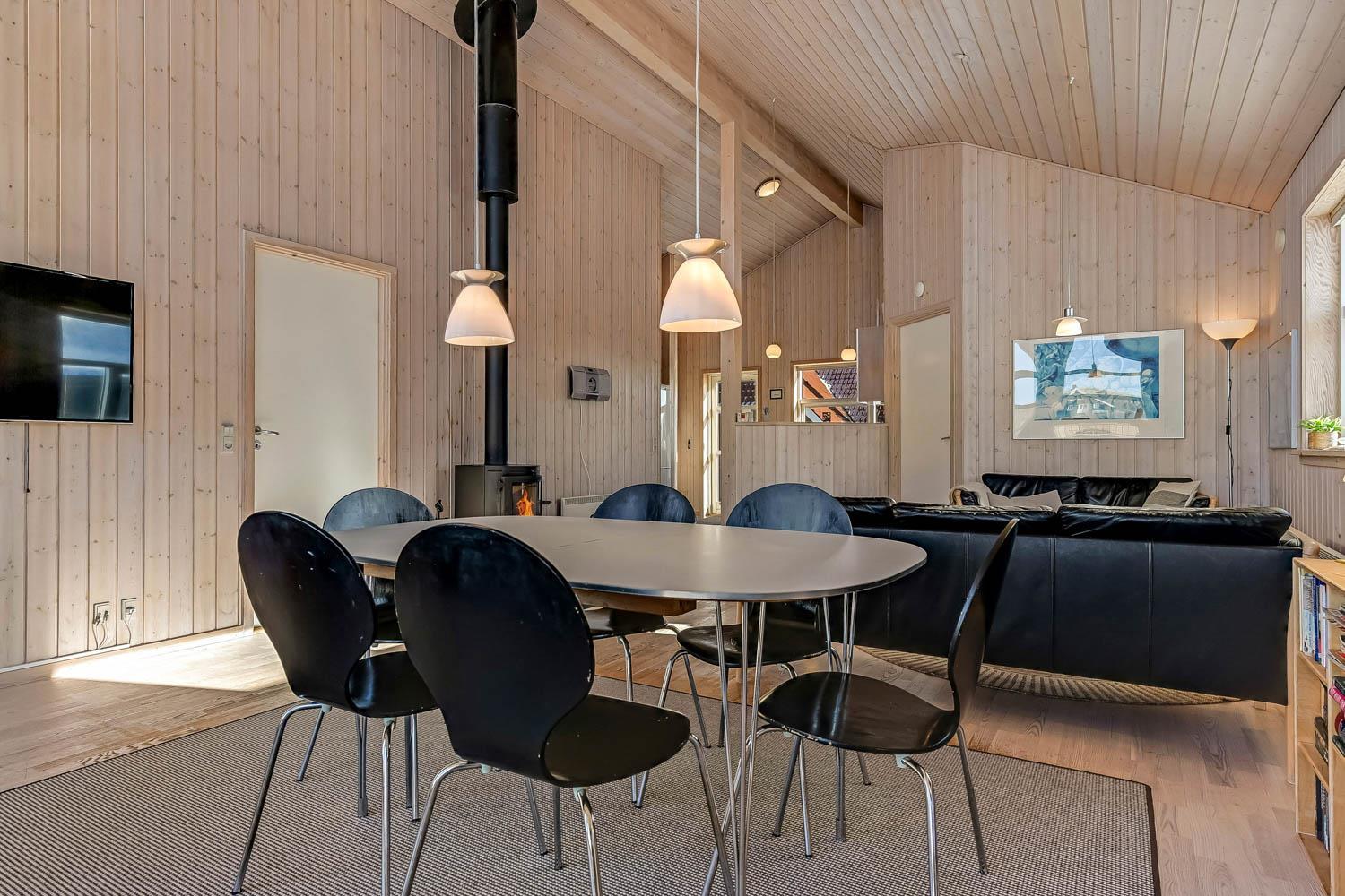Dette dejligt og pænt indrettede feriehus i træ er med god møblering. Stuen er kombineret med køkkenet og har udgang til en delvis overdækket terrasse. Stuen er med gode møbler og et spisebord, der er en skøn brændeovn som giver en dejlig varme uanset årstid. Der er TV med parabol (kun tyske programmer). Fra stuen er der indgang til 2 af soverummene som er indrettet med 1DS og 2S. Fra køkkenet er der indgang til det sidste værelse som er med 2S. Husets badeværelse indeholder toilet, håndvask, bruser, spabad og adgang til sauna. På badeværelset er der også en vaskemaskine og tørretumbler. På badeværelset er der klinker og gulvvarme. Veludstyret køkken med el keramisk komfur, opvaskemaskine, emhætte, mikroovn og køle-/fryseskab. Der er trægulve i alle rum på nær køkkenet som er med vinyl gulv. Husdyr er ikken tilladt. Ikke rygerhus.