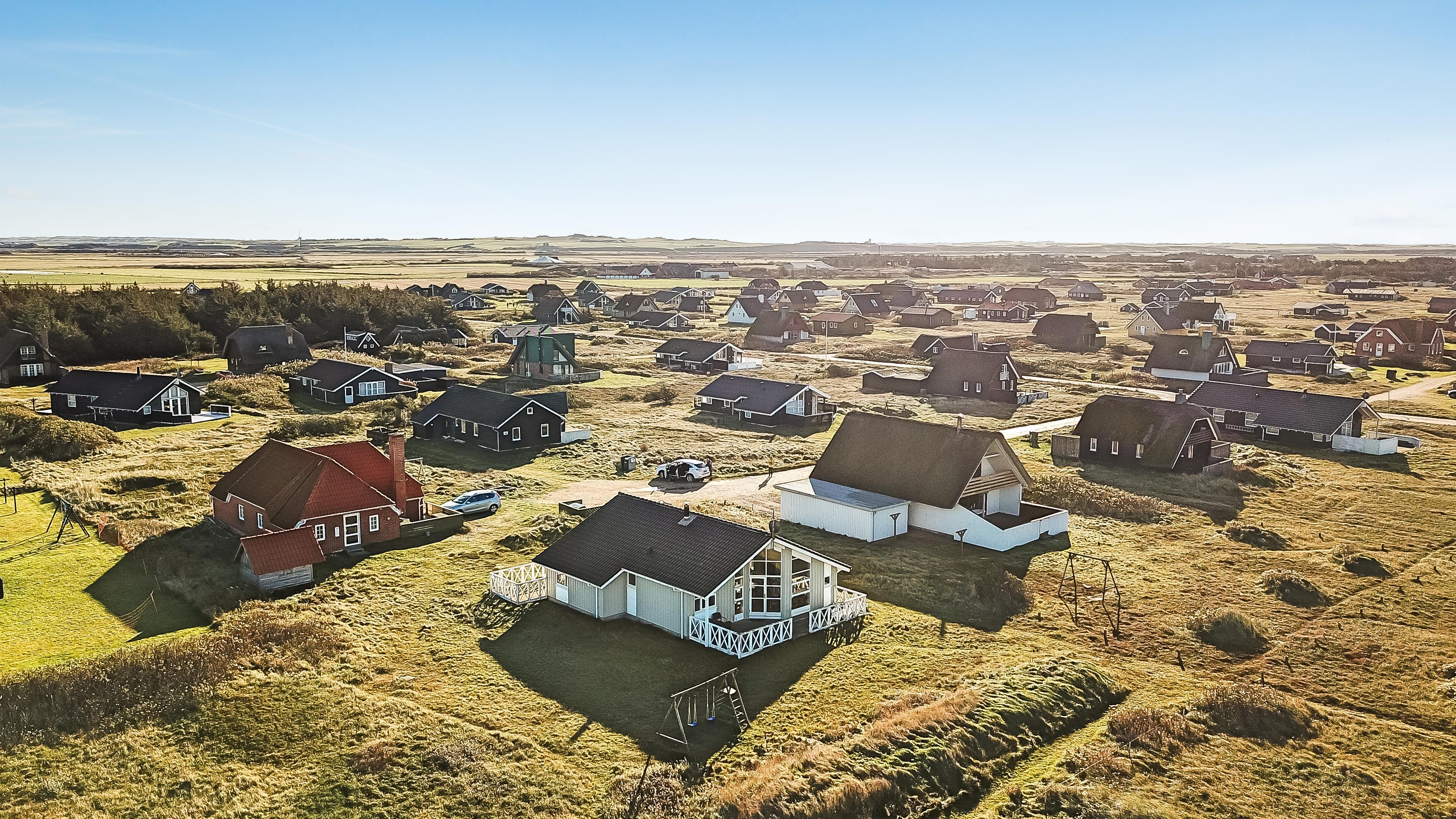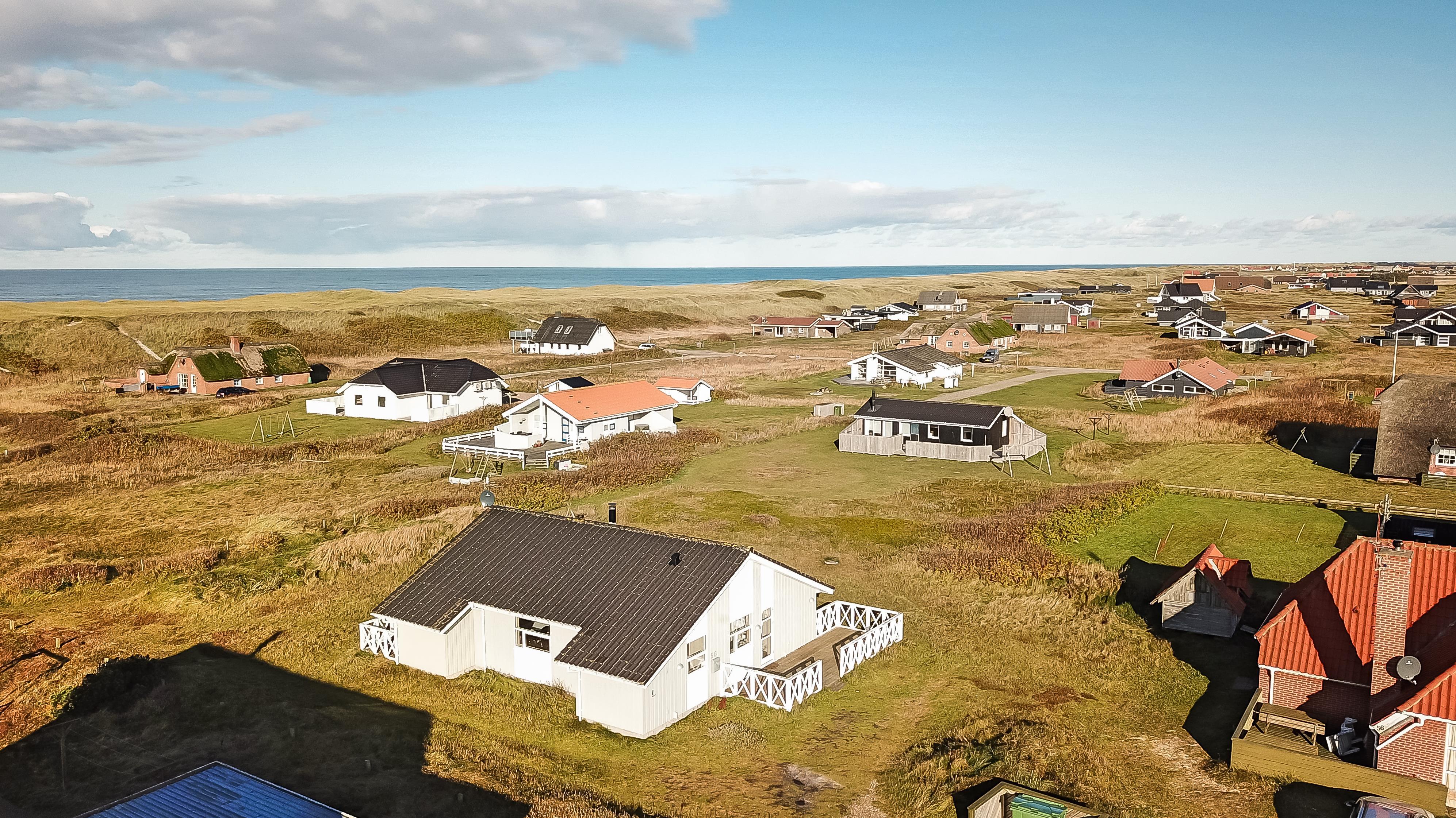 Huset er beliggende på en naturgrund tæt på Vesterhavet, der er 2 terrasser en lille morgenterrasse mod øst og en delvis overdækket terrasse mod vest. Der er havemøbler, solvogne og grill. Huset omgivelser indbyder både til vandre- og cykelture i området, der er flere gode cykelstier i området. Med blot 100 m fra huset ligger stranden så man nemt kan komme ned og nyde det dejlige Vesterhav. I omegnen ligger der fiskerbyen Thyborøn og handelsbyen Lemvig, begge byer byder på gode indkøbsmuligheder, restauranter og seværdigheder.