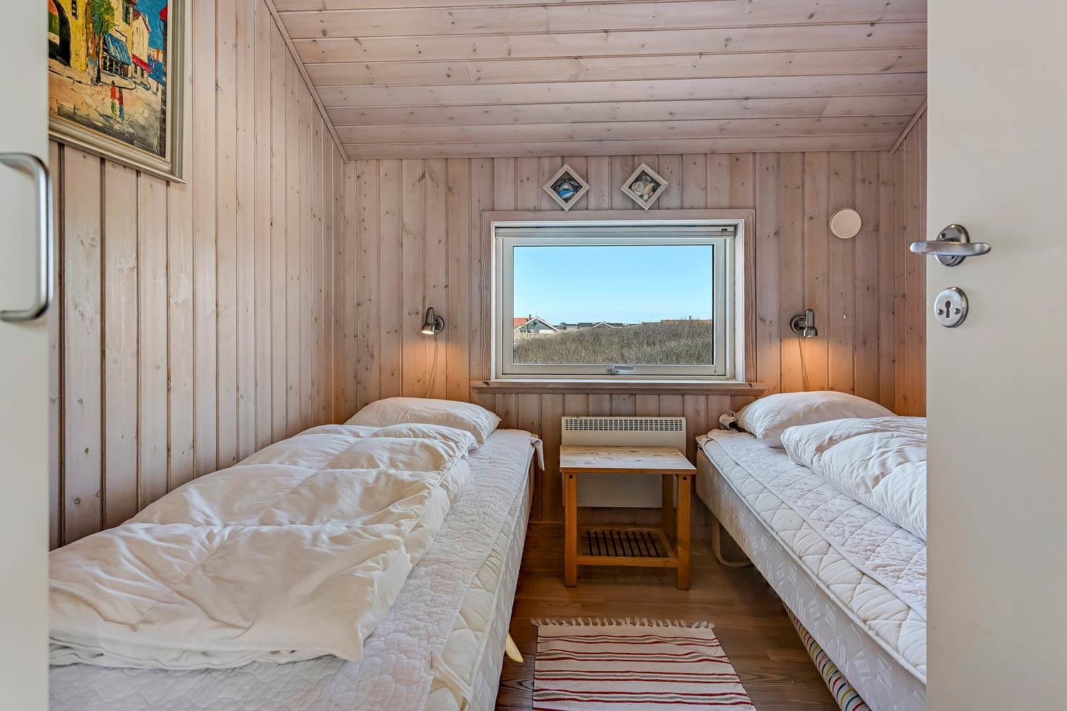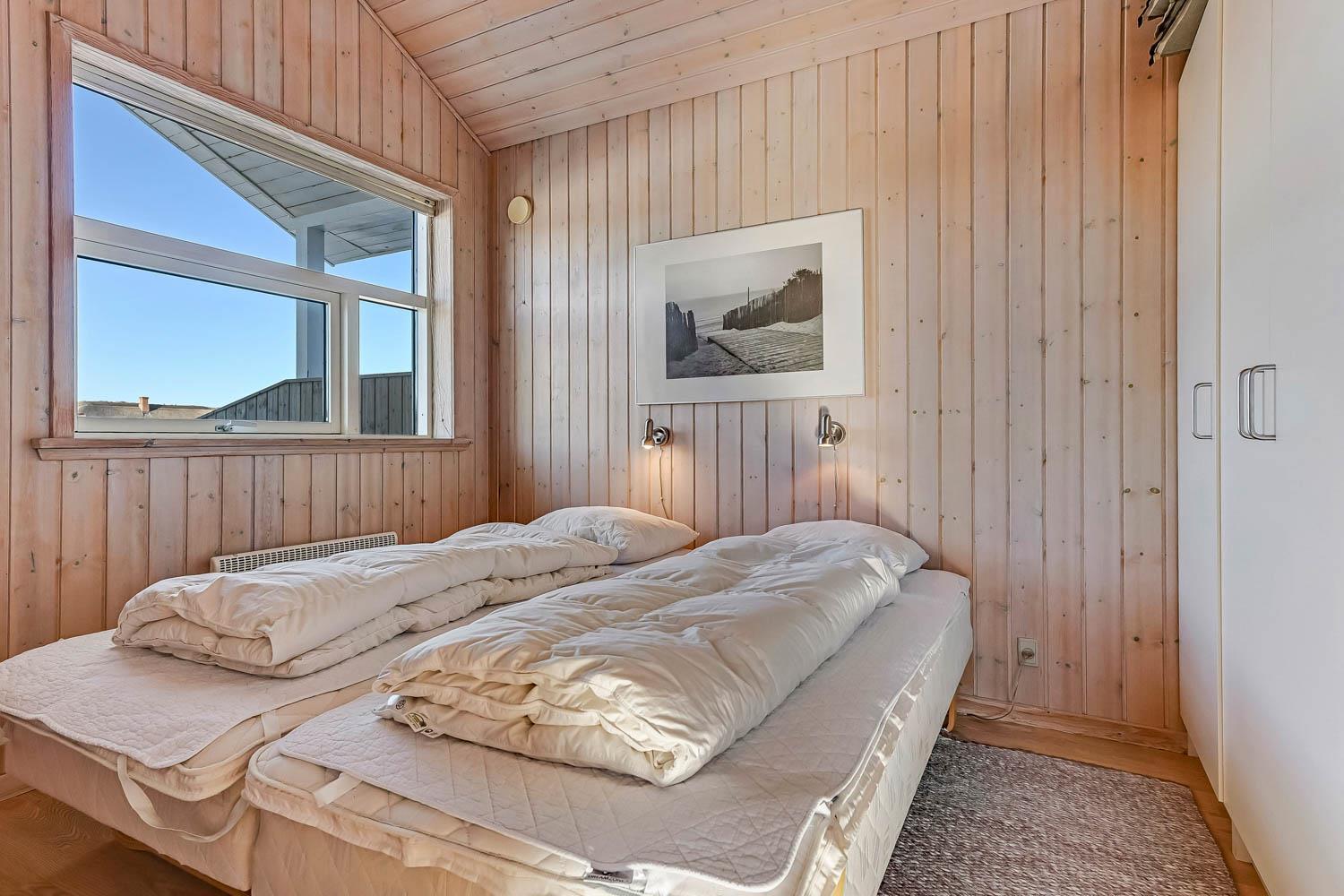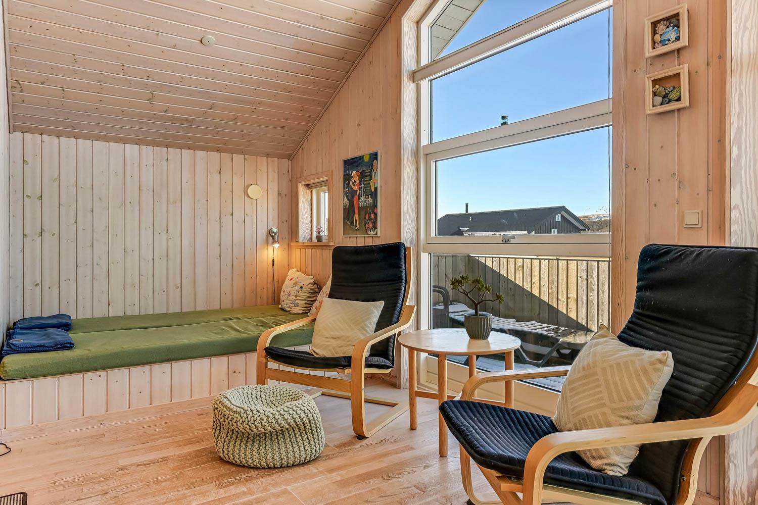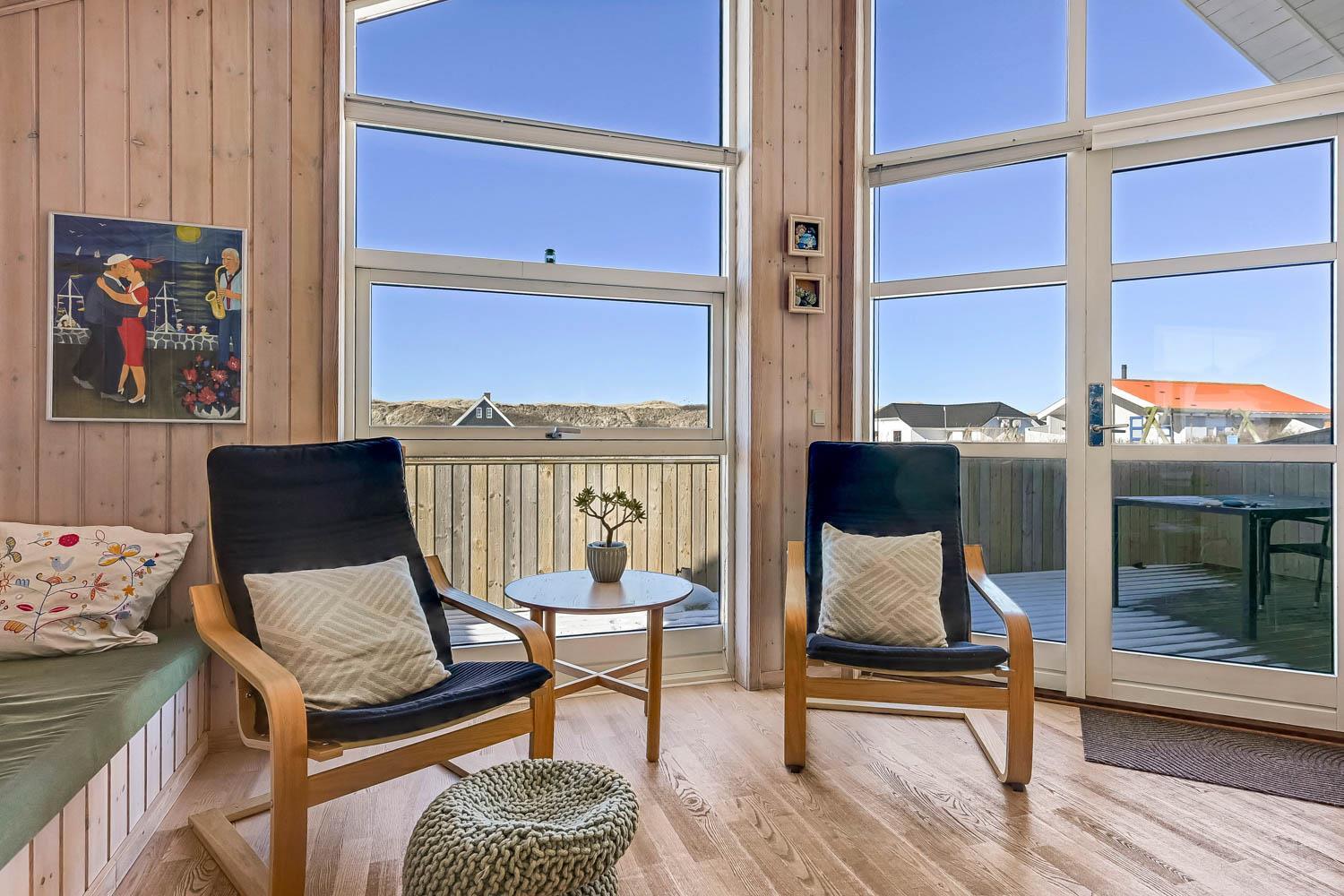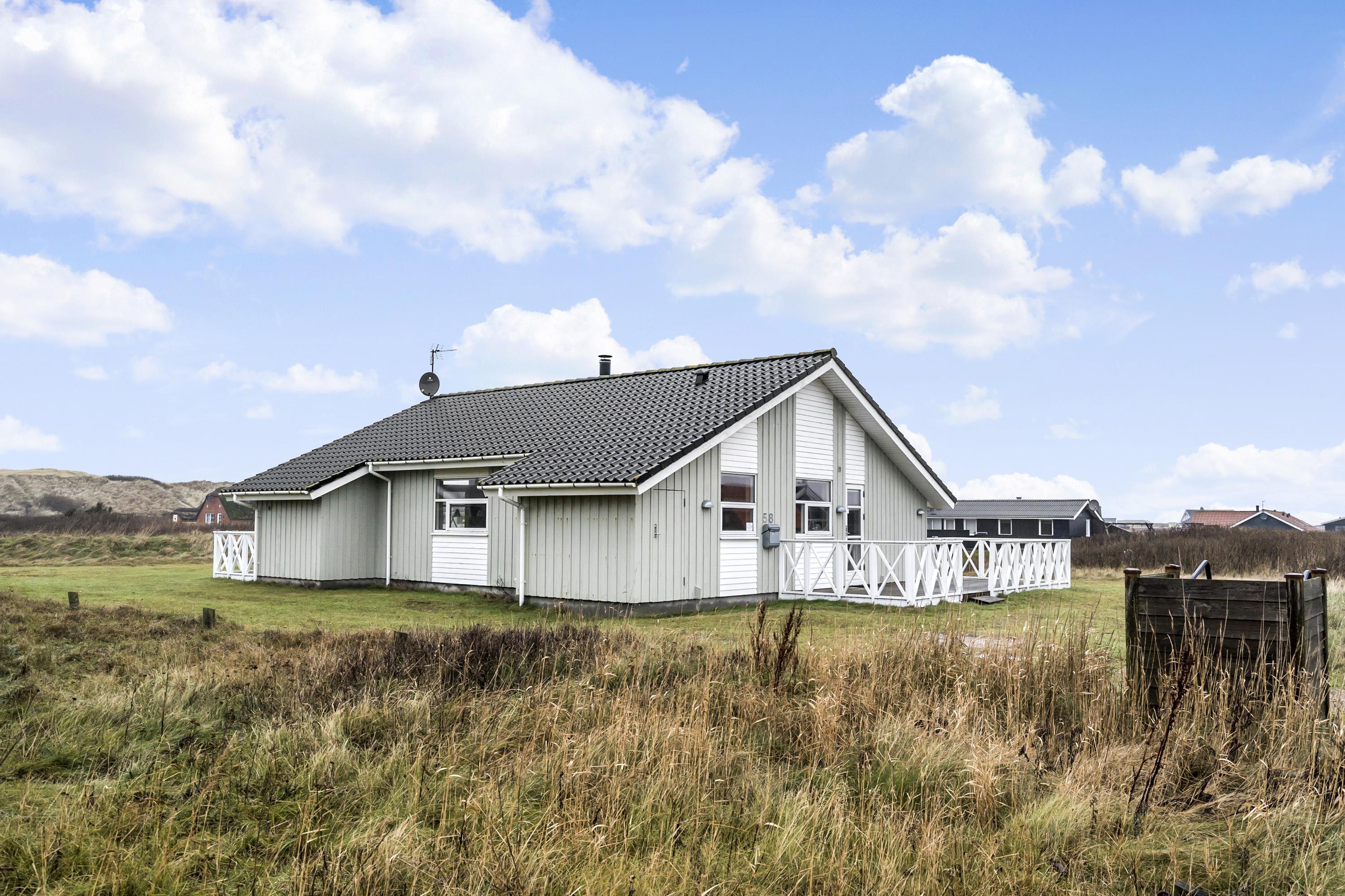 Dette dejlige træ feriehus er beliggende på en naturgrund tæt ved Vesterhavet. Huset har gratis internet og der er god plads til 6 personer. Husdyr er ikke tilladt.