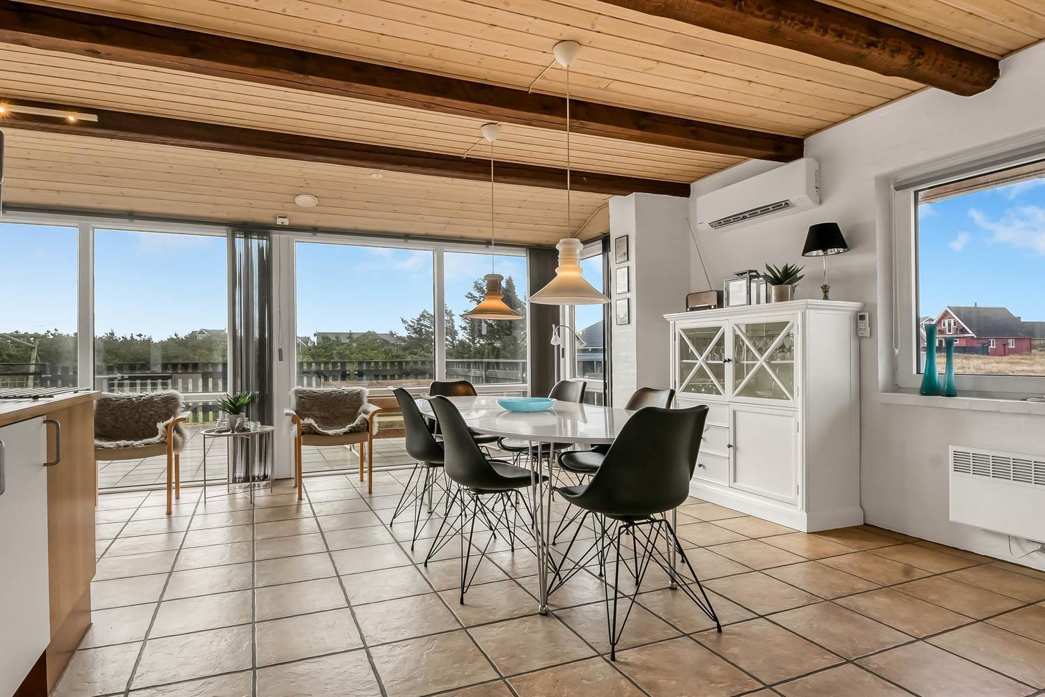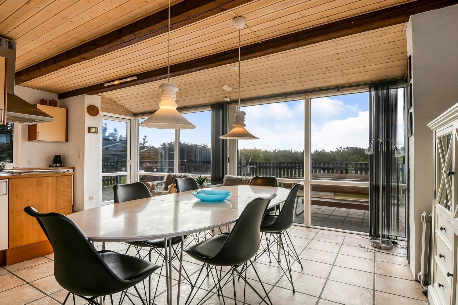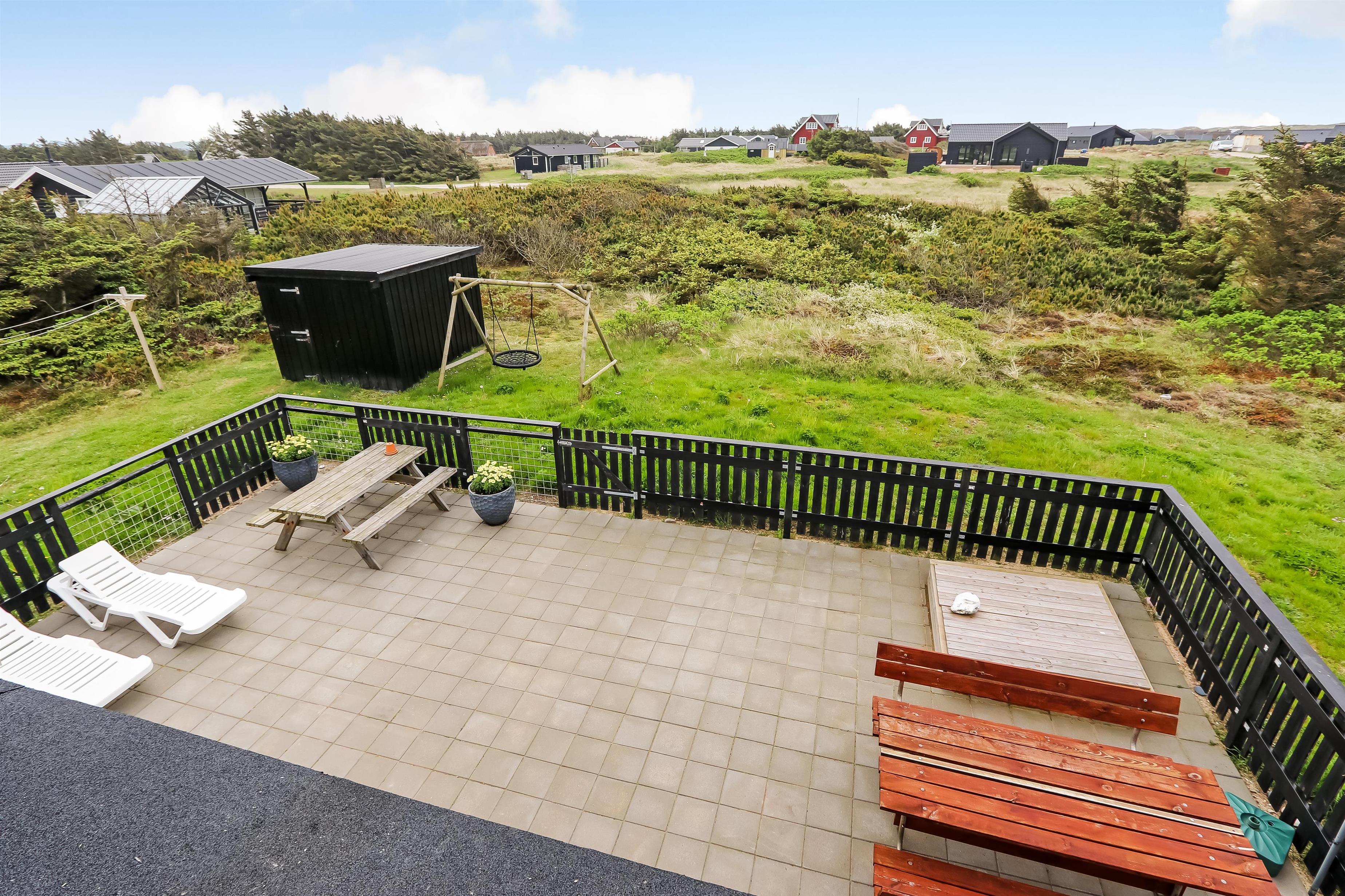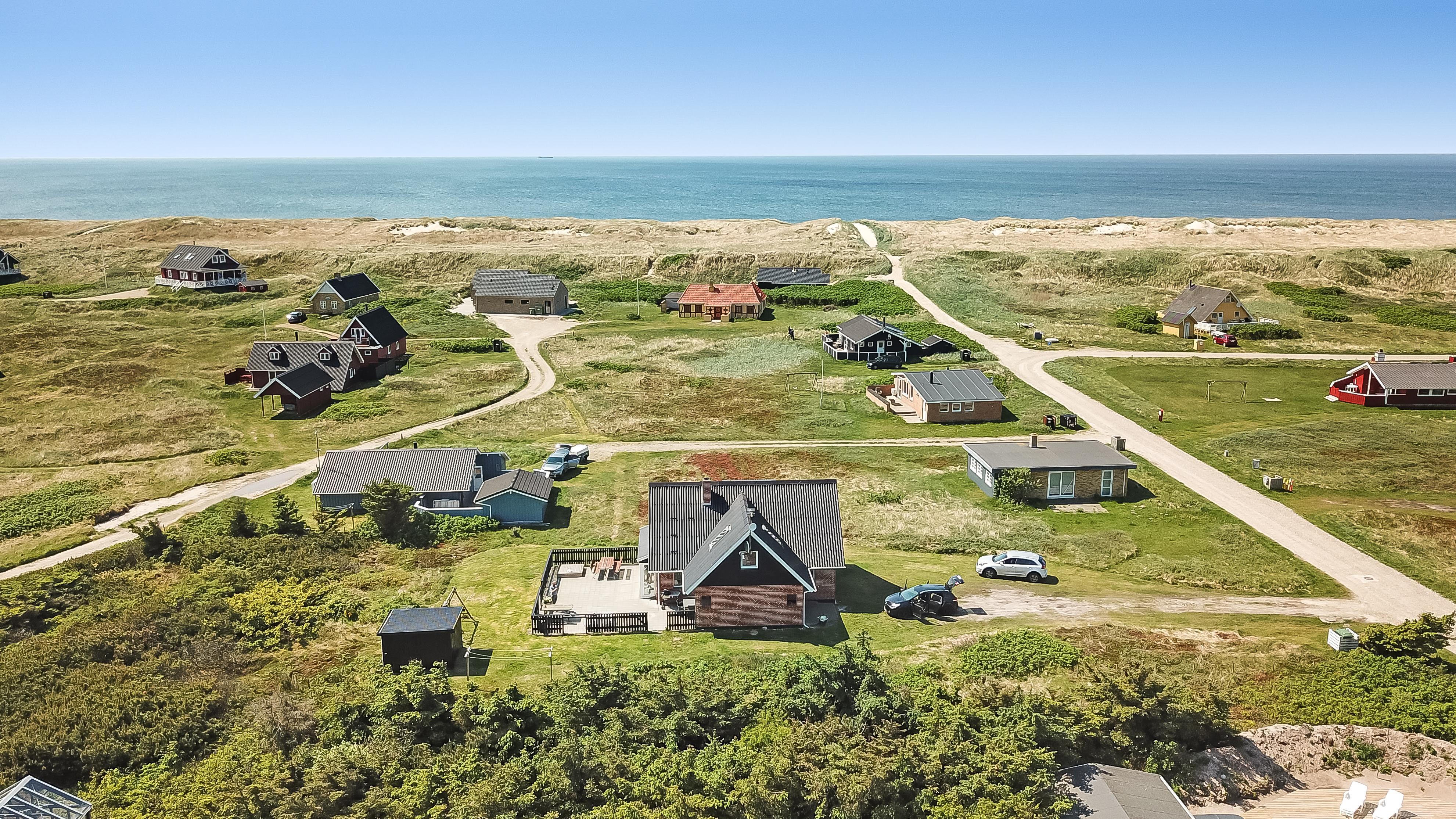 Dette skønne feriehus er beliggende på en naturgrund i skønne omgivelser med flot udsigt til område og klitterne. Der er blot 150 m til det brusende Vesterhav som byder på mange gode oplevelser. God, indhegnet terrasse med havemøbler og gasgrill. Ideel hvis dyr eller børn medbringes. Der forefindes gyngestativ med sansegynge og en sandkasse på terrassen til de små gæster. Ønsker man at opleve andet end strand og vand i ferien kan man køre en tur til Lemvig som blot ligger 15 min kørsel fra huset, her finder man en dejlig havnepromenade og en gågade med gode indkøbsmuligheder. Der findes en gratis skaterbane samt legeplads på havnen i Lemvig.