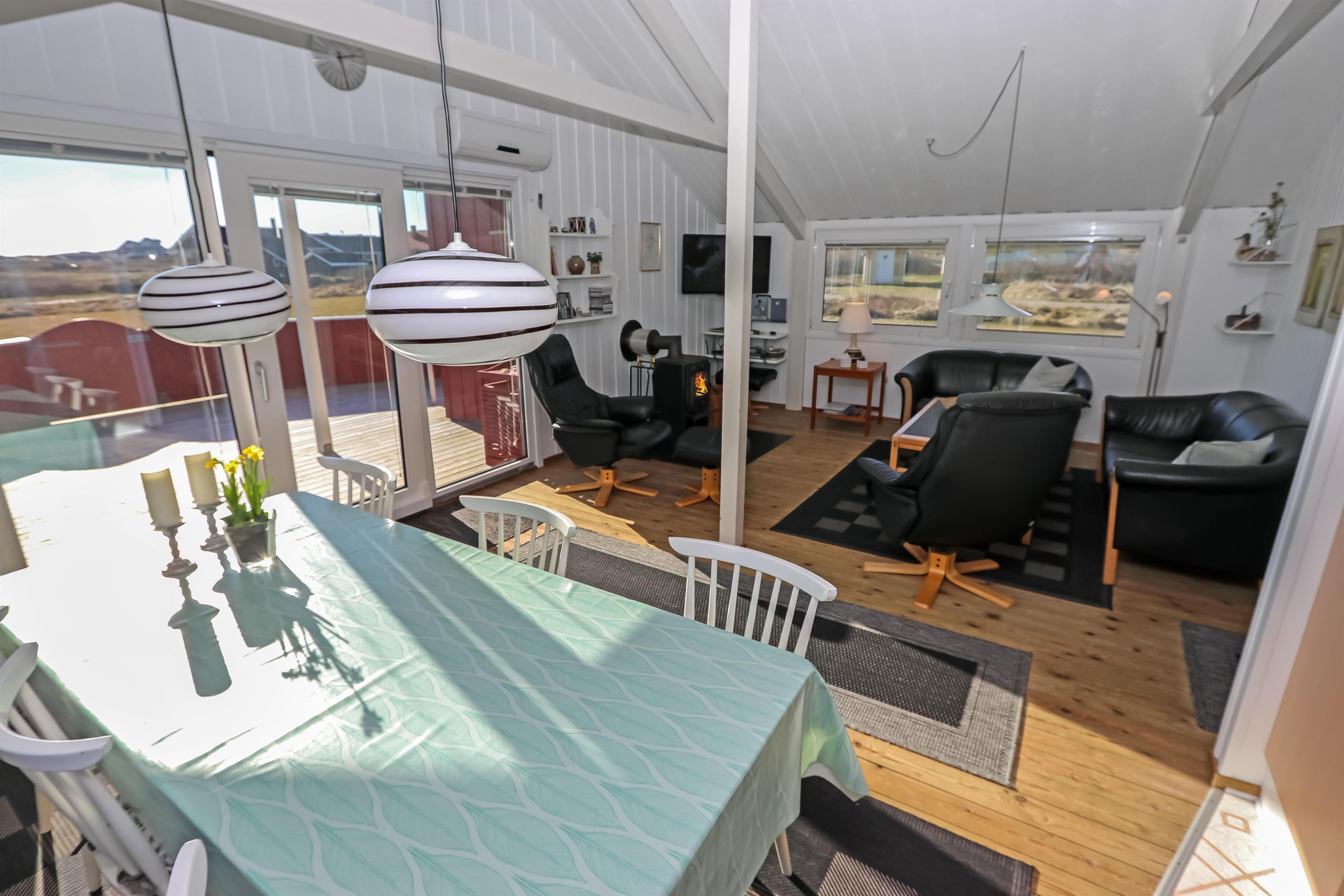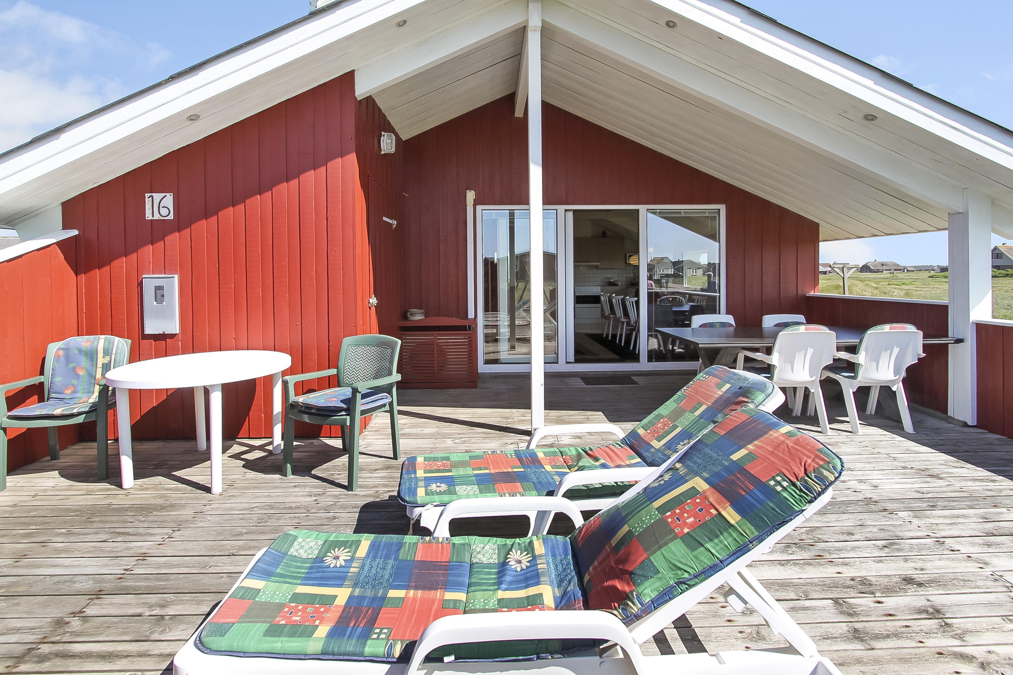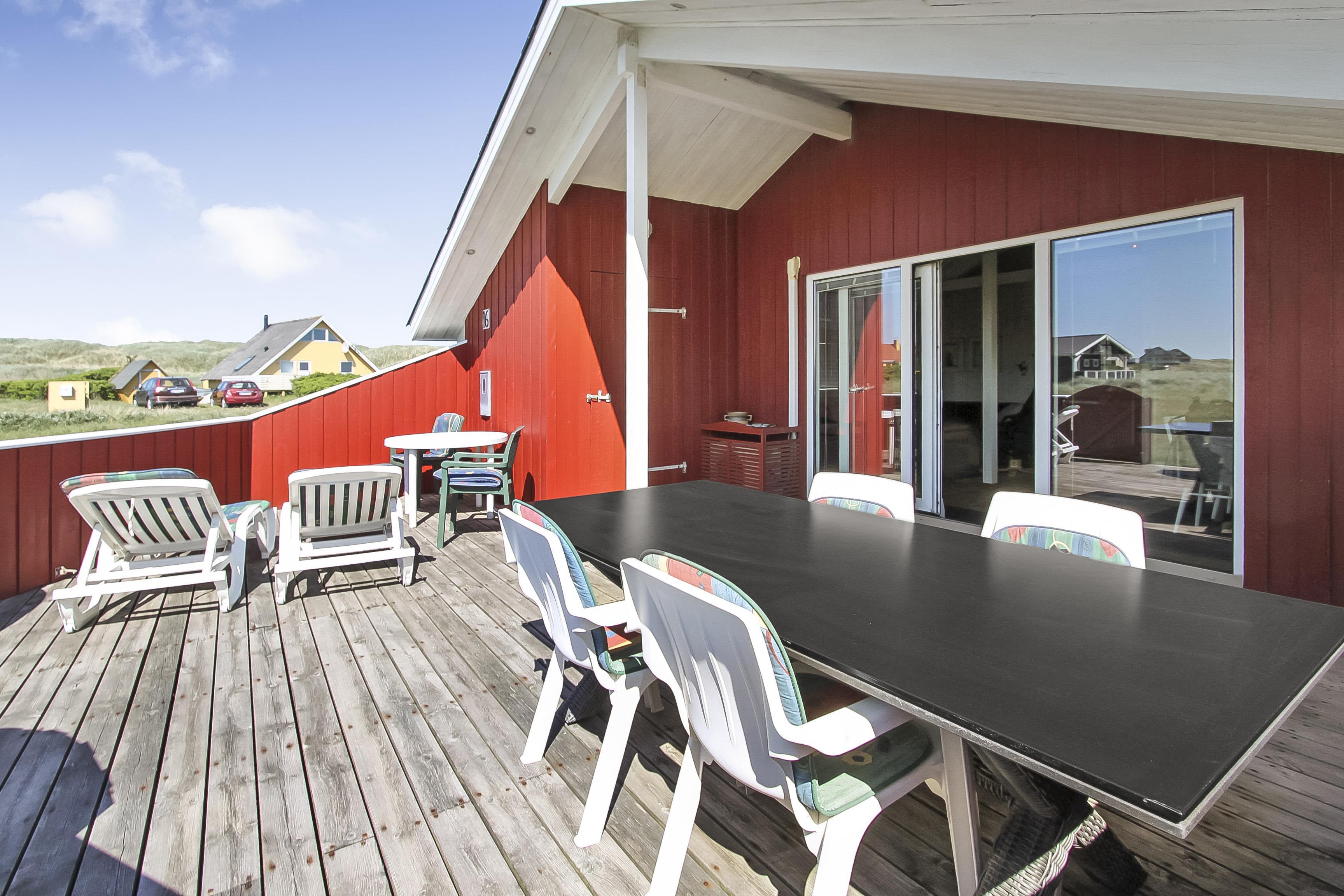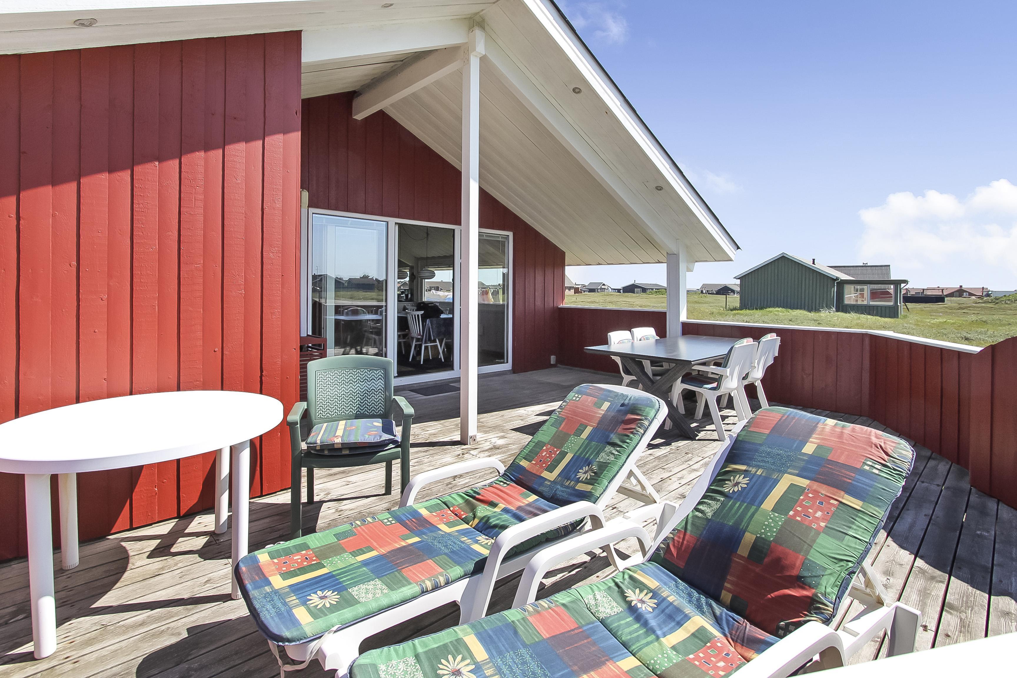 Huset er beliggende på en 2600 m2 stor naturgrund i gåafstand fra Vesterhavet. Fra stuen er der udgang til en delvis overdækket og lukket terrasse, som er udstyret med havemøbler, solvogne og grill. Til de små gæster er der gynger og sandkasse. I området er der gode muligheder for lange gåturer, cykelture eller løbeture. Ønsker man lidt andet i ferien kan man besøge Thyborøn eller Lemvig som ligger blot 10 min kørsel fra huset. Der er i begge byer gode indkøbsmuligheder, restauranter samt mulighed for at købe frisk fisk. Et skønt hus til både par og en familie.