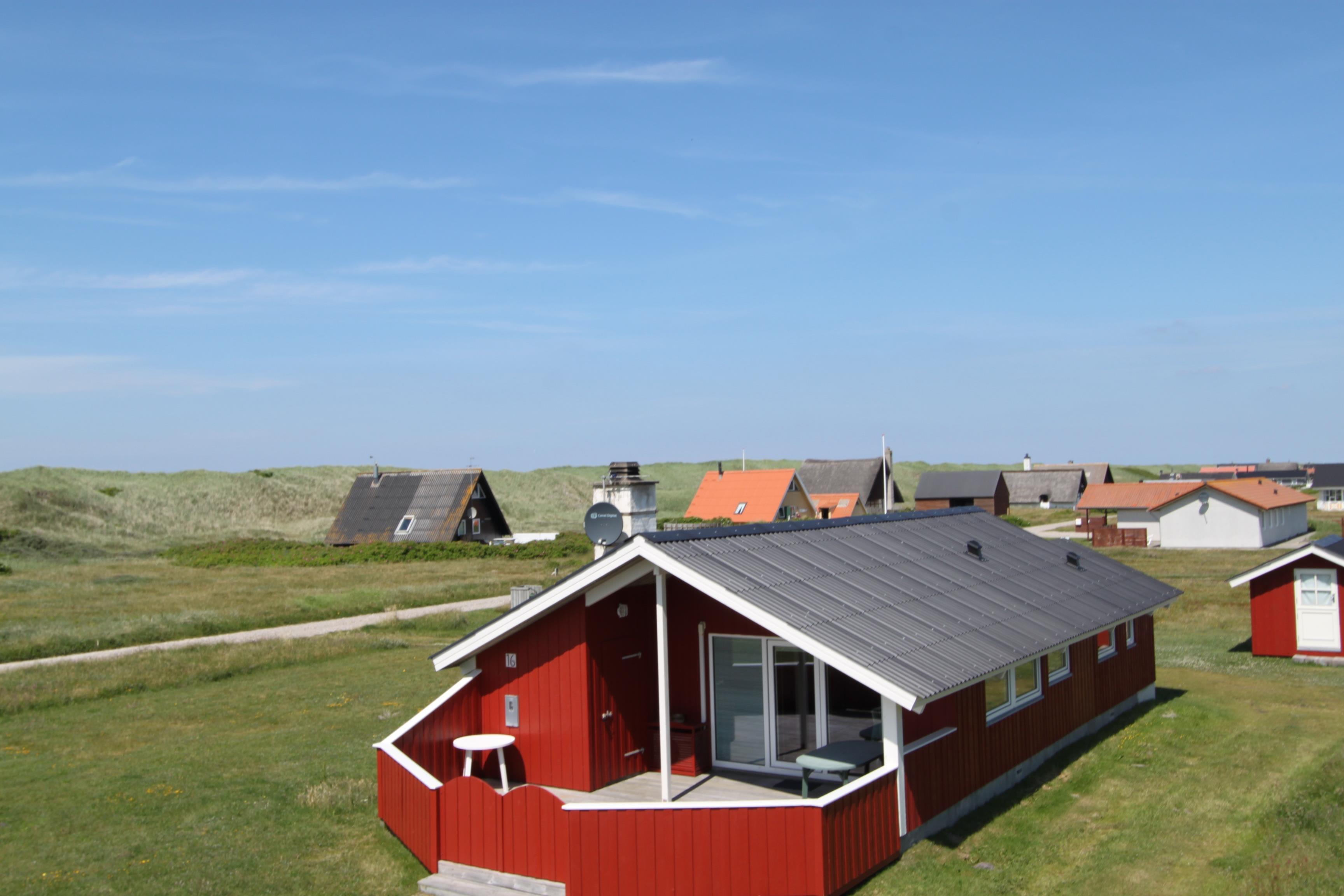 Hyggeligt feriehus til 6 personer beliggende tæt på Vesterhavet på en åben naturgrund.