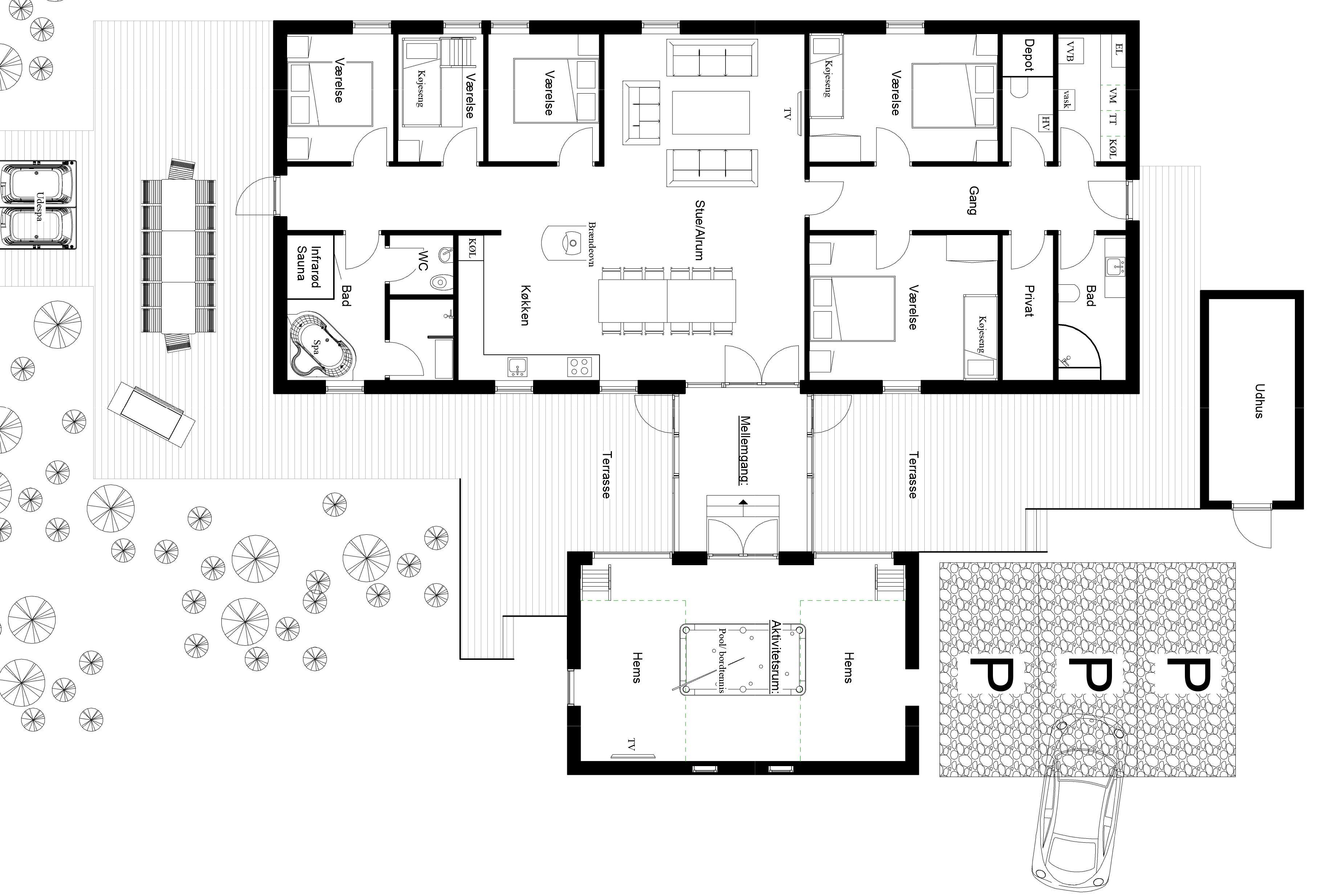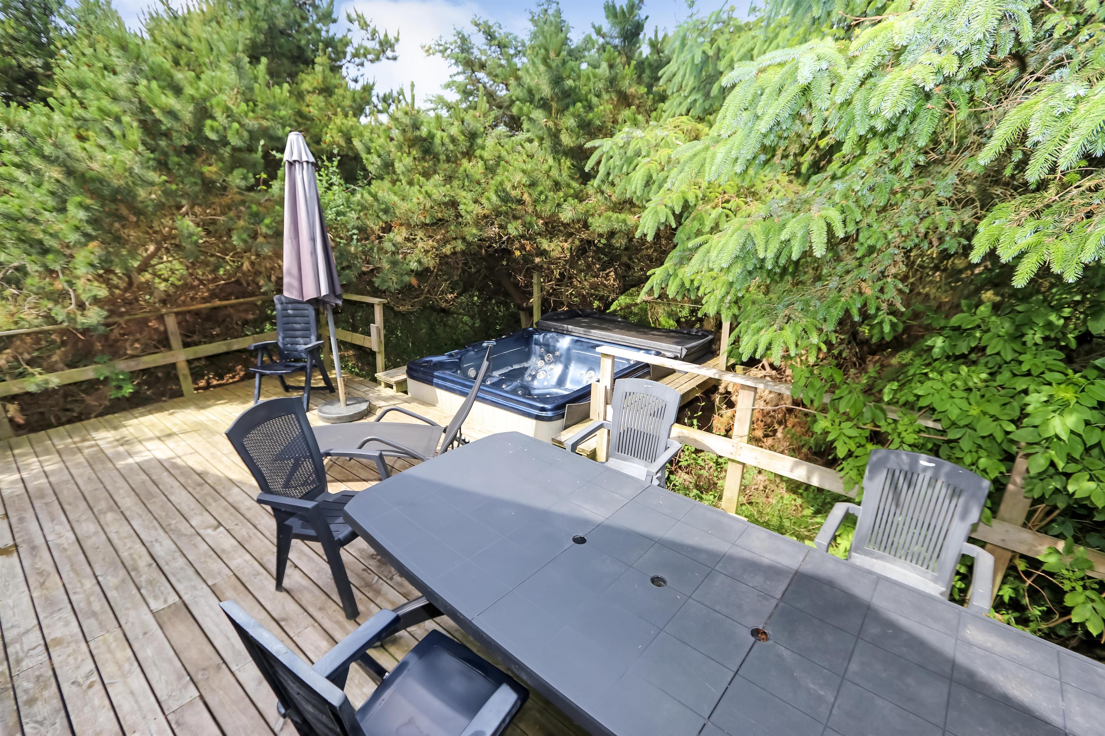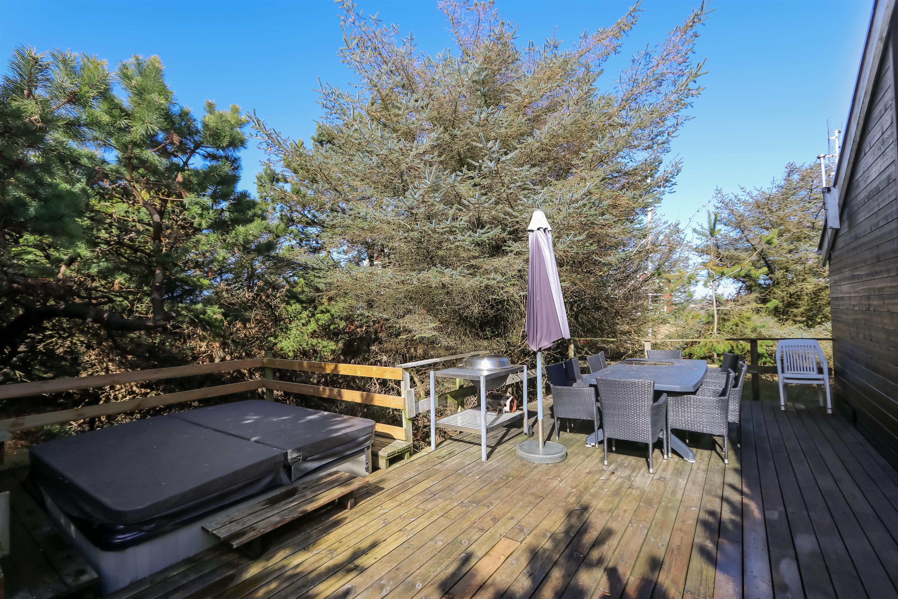 Der er masser af plads på 2100 m2 store afskrærmet og private grund. Pragtfulde terrasseanlæg som totalt har 3 Terrasser. Der er der masser af muligheder for en plads i solen eller i skyggen, da en del af terrassen er delvis overdækket. Der er naturligvis havemøbler, Loungemøbler, solvogne samt gasgrill og kulgrill. Der er altid mulighed for at finde læ eller sol på terrasseanlægget. Hvad med en tur i den udendørs spa som der også er adgang til fra huset private på terrassen. Helt speciel oplevelse at sidde i den udendørs spa på de mørke aftener med den klare stjernehimmel, ren terapi for sjæl og krop. Gyngestativ til børnene. Huset ligger ca. 2200 meter fra dagligvarebutikker. Indenfor kort køreafstand nåes både den aktive handelsby i Lemvig med flere specialbutikker eller den unikke fiskerby Thyborøn, som udover den aktive fiskerihavn også byder på badestrand og op til flere aktivitetstilbud, som alle er et besøg værd.