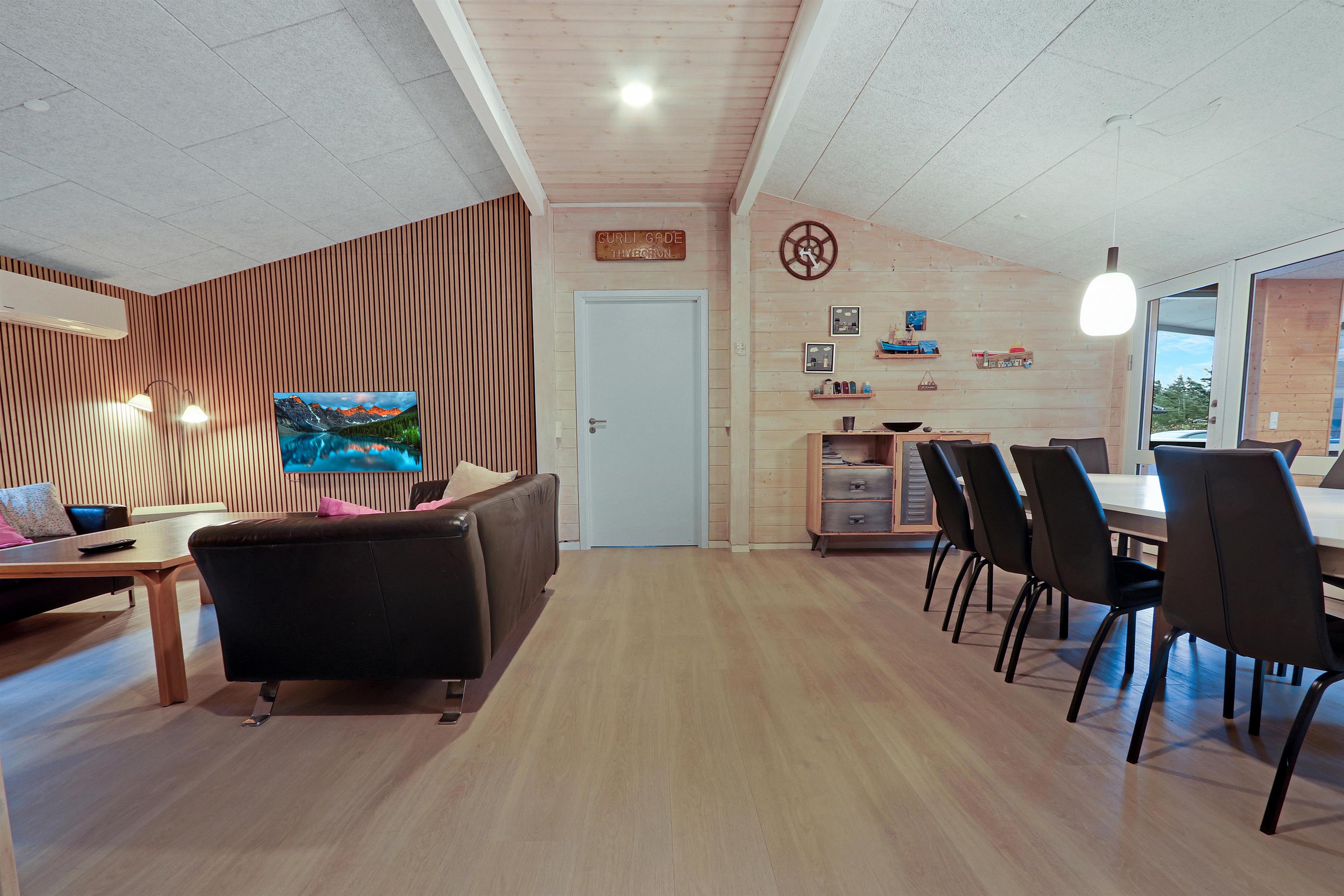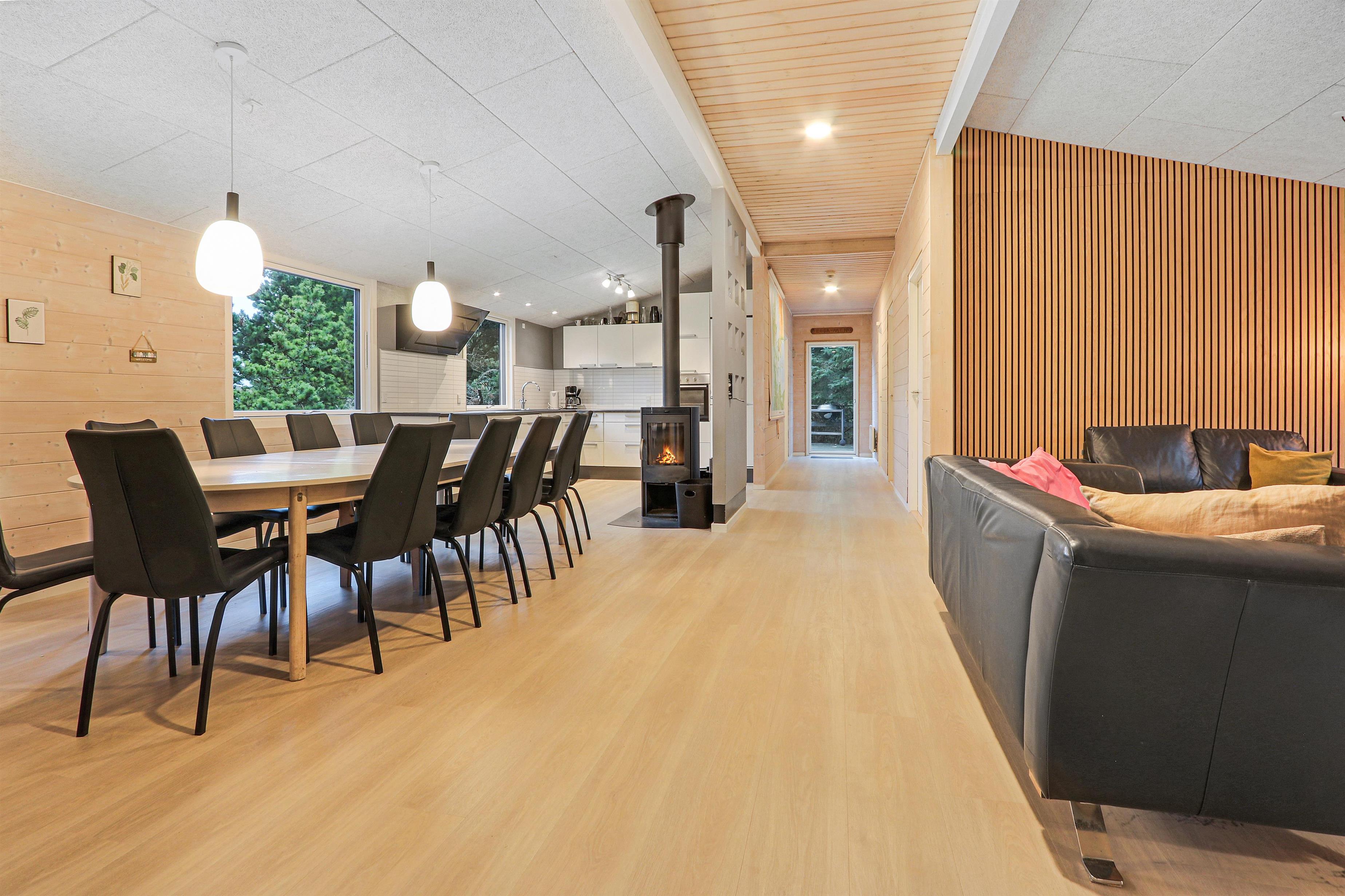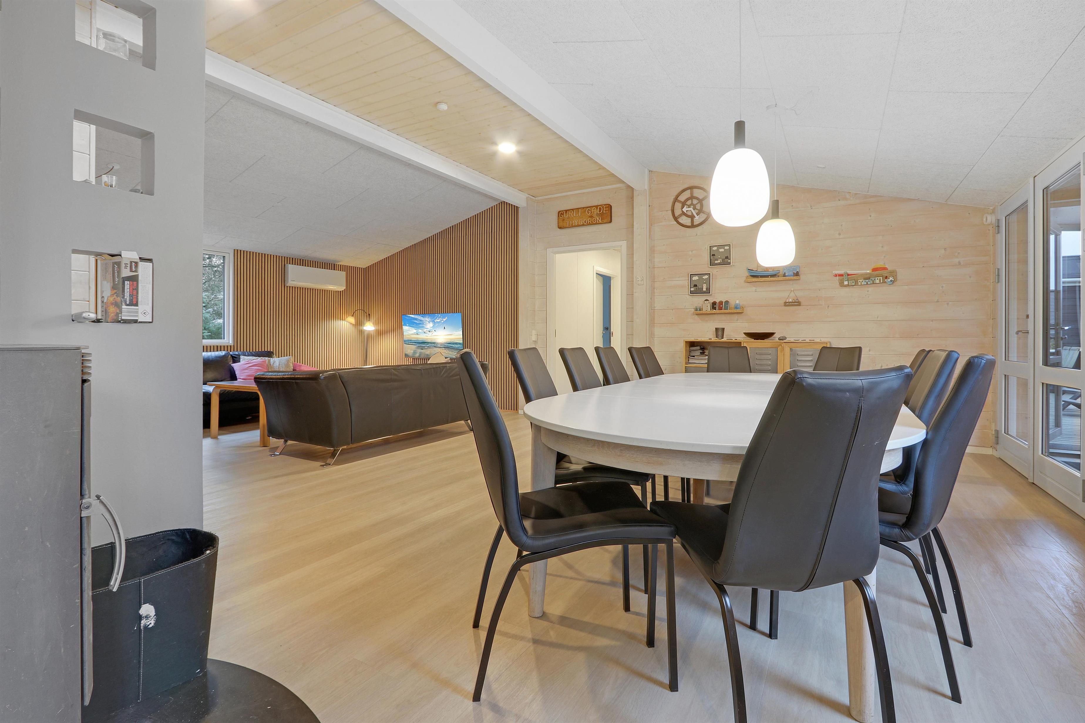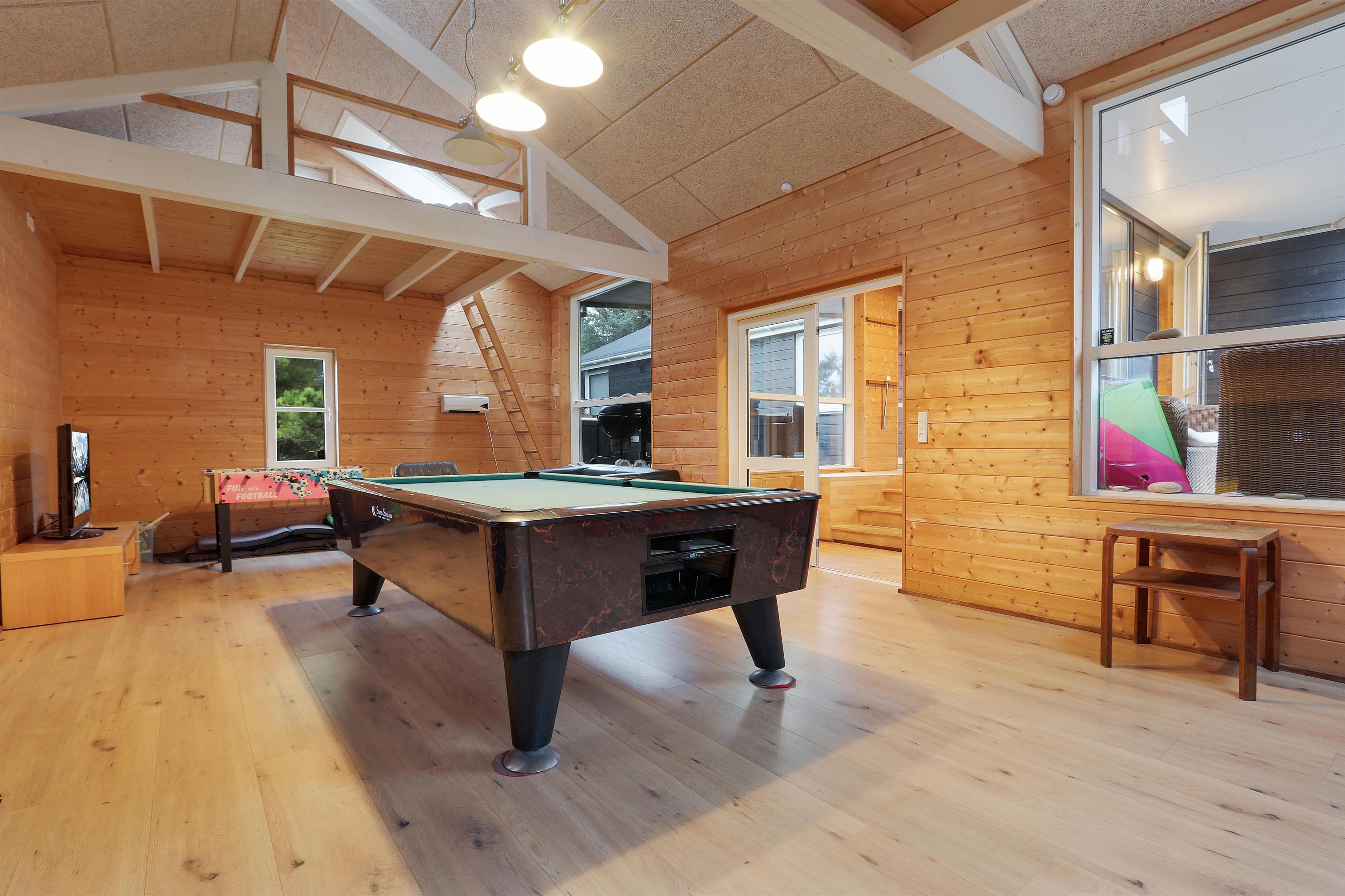 Velindrettet feriehus på 216 m2. 5 dejlige soverum med helt nye senge (1DS+1KS, 1DS+1KS, 1DS, 1DS, 2ES). Derudover forefindes 1 store hems med hver 2 sovepladser. Huset er med et veludstyret nyere køkken alrum med alt i hårde hvidevarer. Stor glaskeramisk plade, emhætte, indbygningsovn, opvaskemaskine, mikroovn, 2 køle / fryse skabe. Alle 12 beboere kan samles om husets store spisebord som også er perfekt til spil og hyggesnak. Slap af i de bløde lædermøbler. Se TV på dansk og tysk på husets Smart-TV med tyske og danske programmer samt mulighed for streaming af TV / radio / Apps, så har du en mobiltelefon eller et andet device med kan du streame hvad du nu har abonnement. Der er trægulve i opholdsrum og gulvtæpper i soveværelserne. Tænd op i brændeovnen som let hjælper med opvarmningen sammen med varmepumpen eller blot sørger for en hyggelig stemning. Fra fordelergangen er der udgang til en totalt privat terrasse med en stor udendørs spa. Aktivitetsrummet indeholder: dart bordfodbold og kombineret pool / billard. Vaskemaskine og tørretumbler er en selvfølge. 2 badeværelser. Det store badeværelse har toilet, bruser, håndvask, gulvvarme samt Wellness- / saunaafdeling med spabad med massagedyser samt dejlig infraød sauna et ekstra toilet med håndvask. Det andet badeværelse har ligeledes toilet, håndvask, gulvvarme og en dejlig bruser. Herudover er der endnu et toilet med håndvask. Til børnene er der barneseng og barnestol. Max. 2 husdyr er tilladt. Ikke ryger hus. Huset lejes ikke ud til ungdomsgrupper