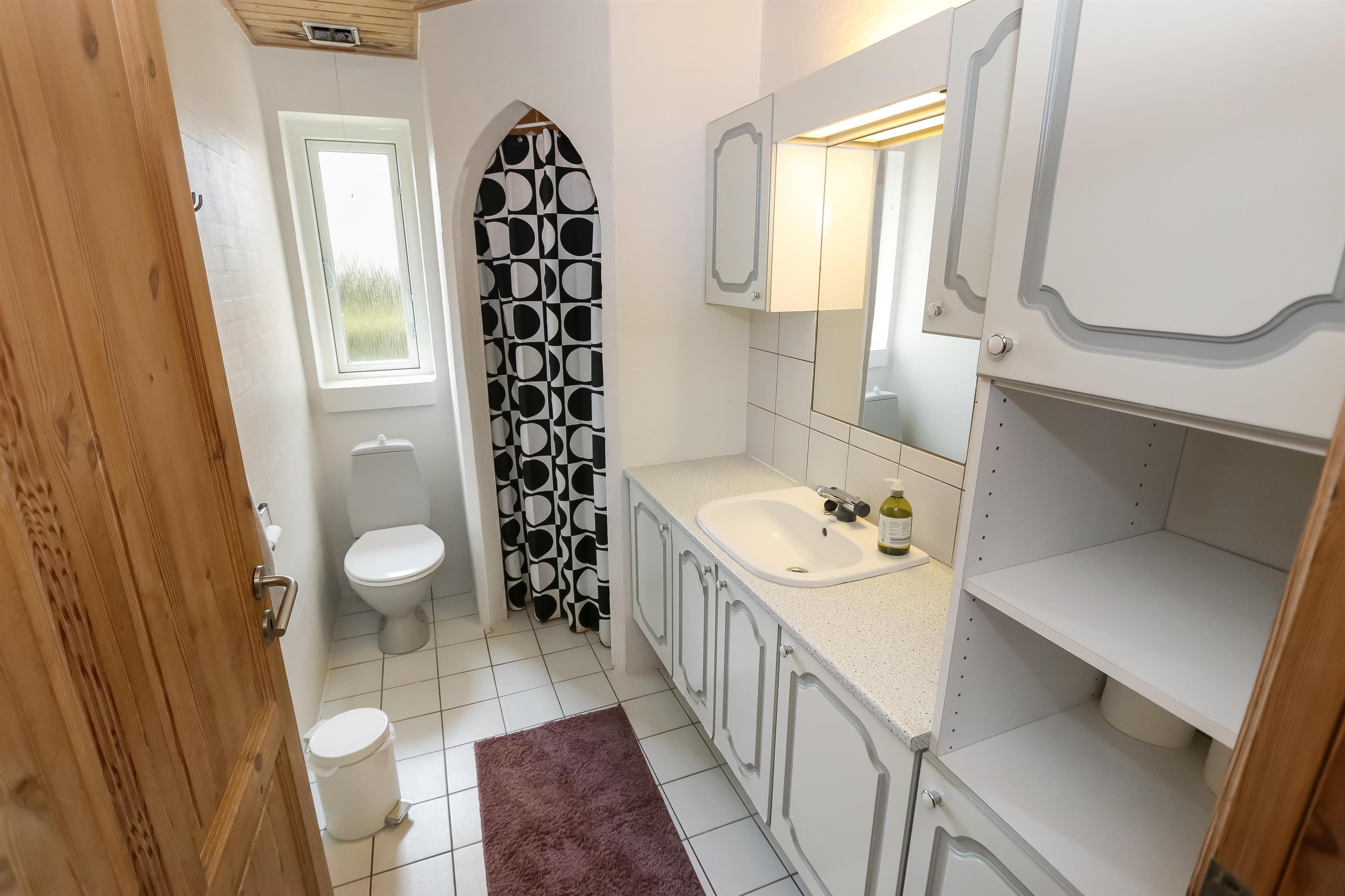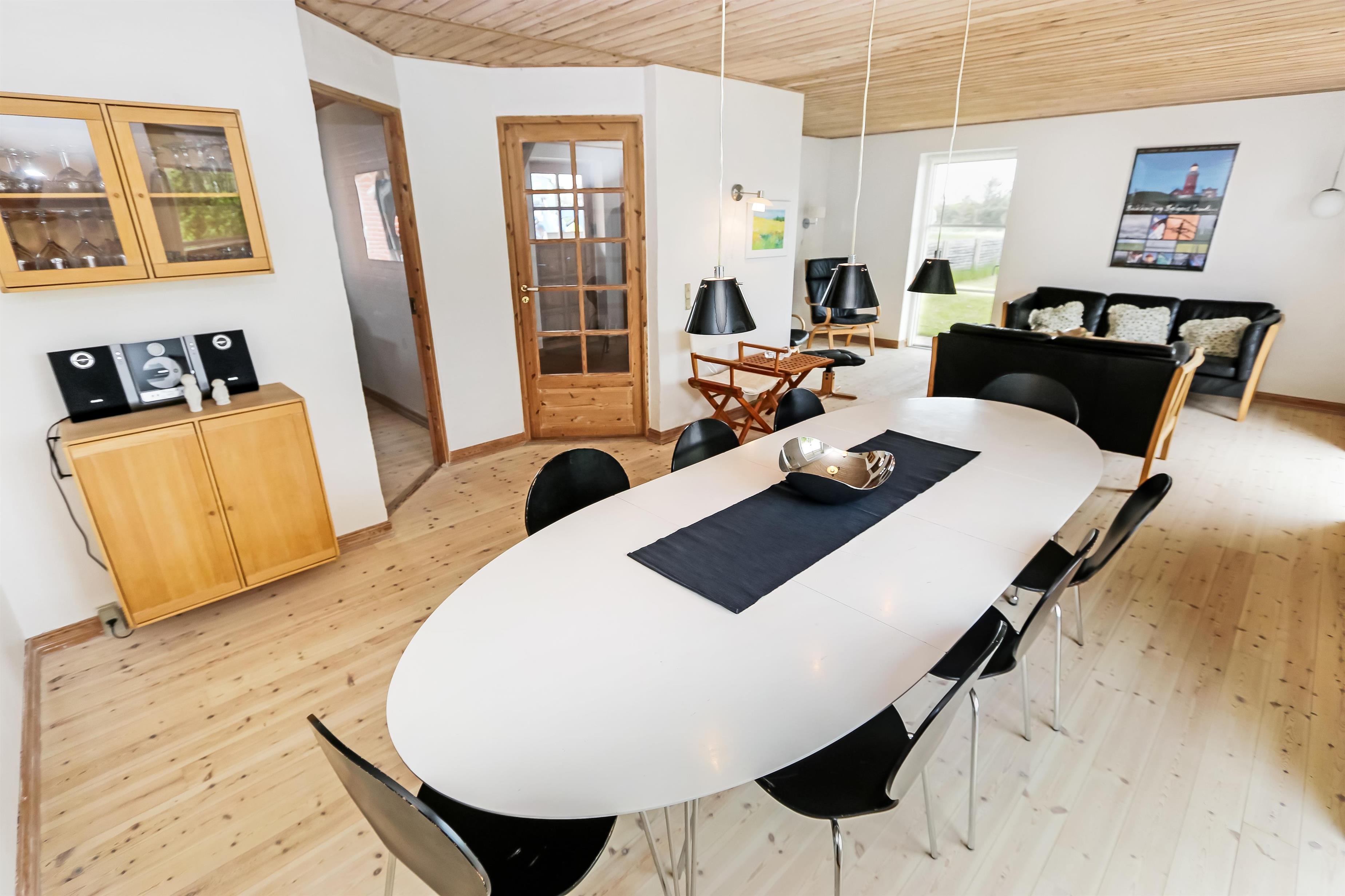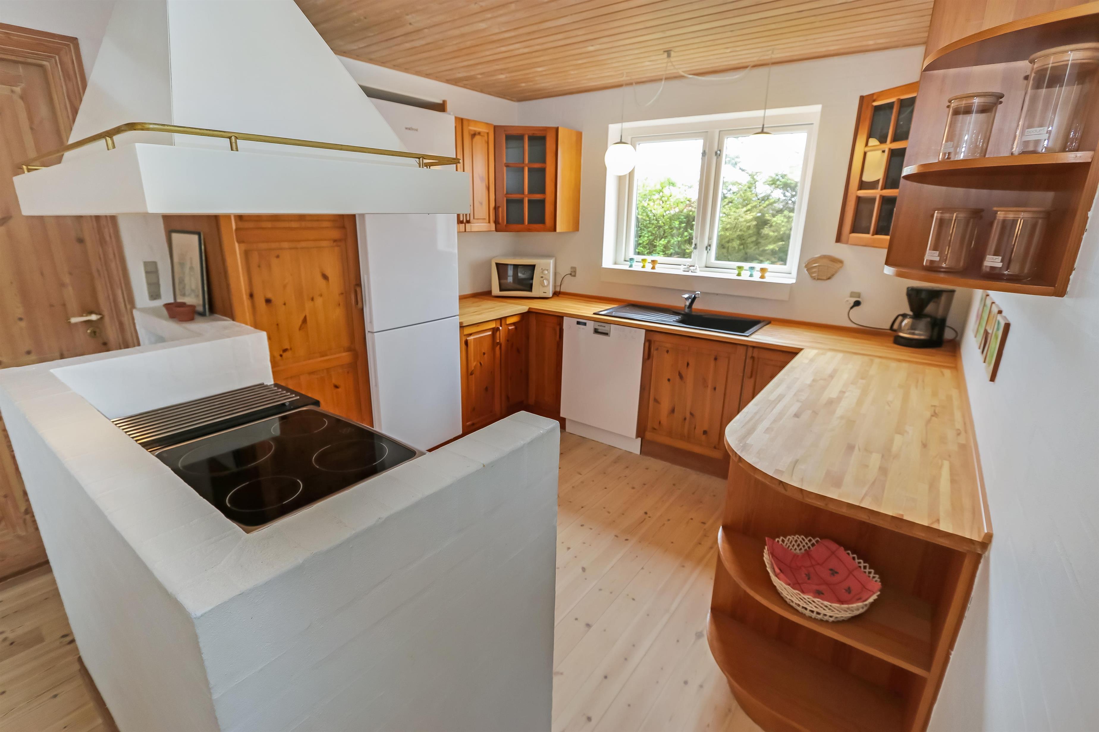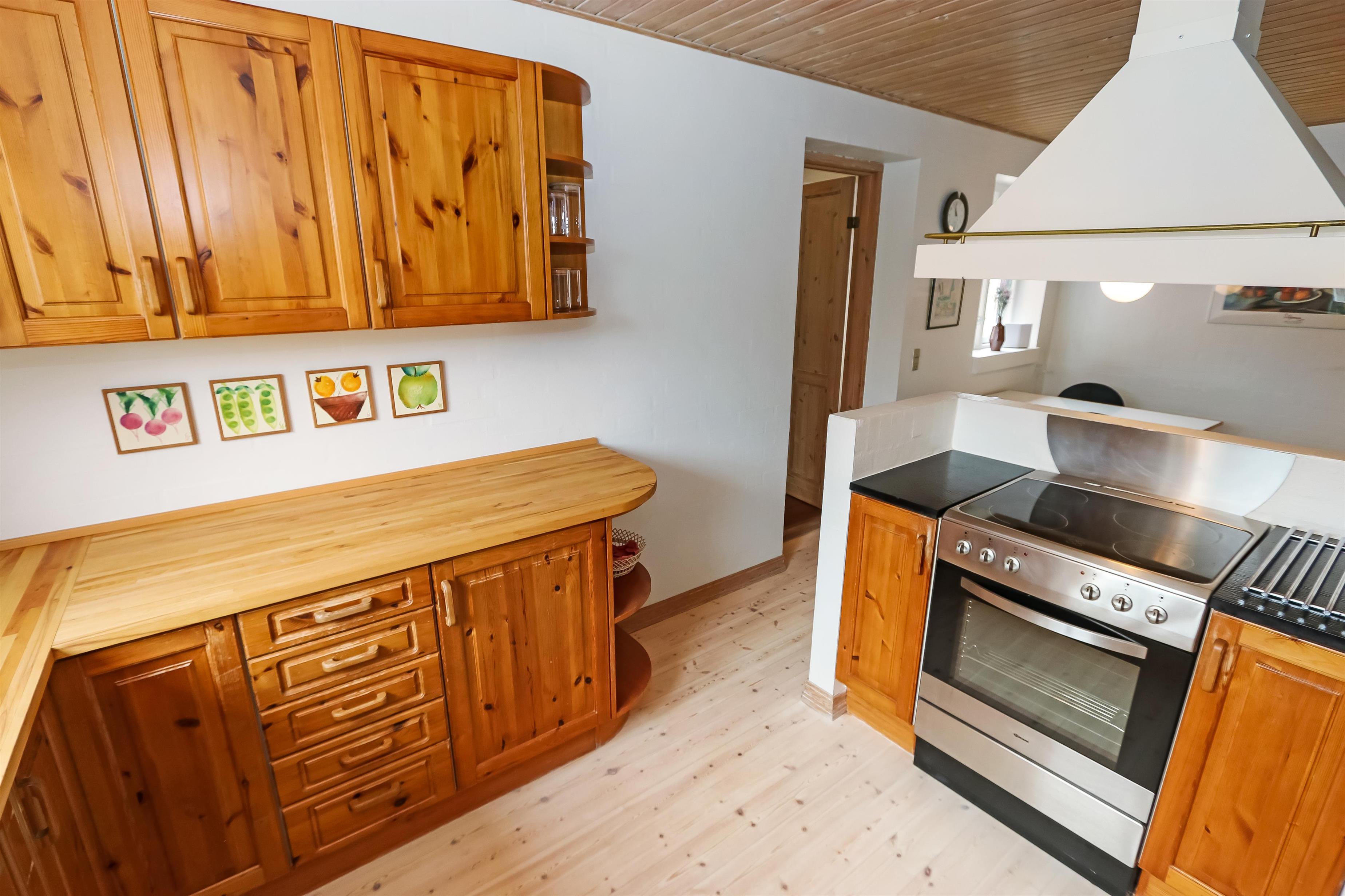 Huset er 180 m2 fordelt på 2 etager. Fra den store gårdsplads ved huset er der mulighed for 2 indgange via hver sin entré. Hyggeligt køkken med komfur, kogeø med keramiske kogeplader, emhætte og indbygningsovn. Masser af service / køkkengrej, opvaskemaskine, køle / svaleskab, mikroovn og bord med siddepladser. Fra stuen er der via en fransk glasdør adgang til en dejlig opholdsstue med spisebord med siddepladser til alle, lædermøbler, radio, Smart-TV med danske og tyske programmer samt mulighed for streaming af TV / radio / Apps. Den opsatte varmepumpe i stueetagen sørger for et minimalt forbrug til opvarmning. I stueetagen er der 1 soverum (1DS). Der er 2 badeværelser med toilet, håndvask, bruser og gulvvarme. Bryggers med Vaskemaskine, tørretumbler og stir separat fryser. Barneseng og højstol til de små medrejsende. Der er ny slebne trægulve i køkken og i opholdsstuen. Ikke ryger hus. 2 husdyr tilladt.