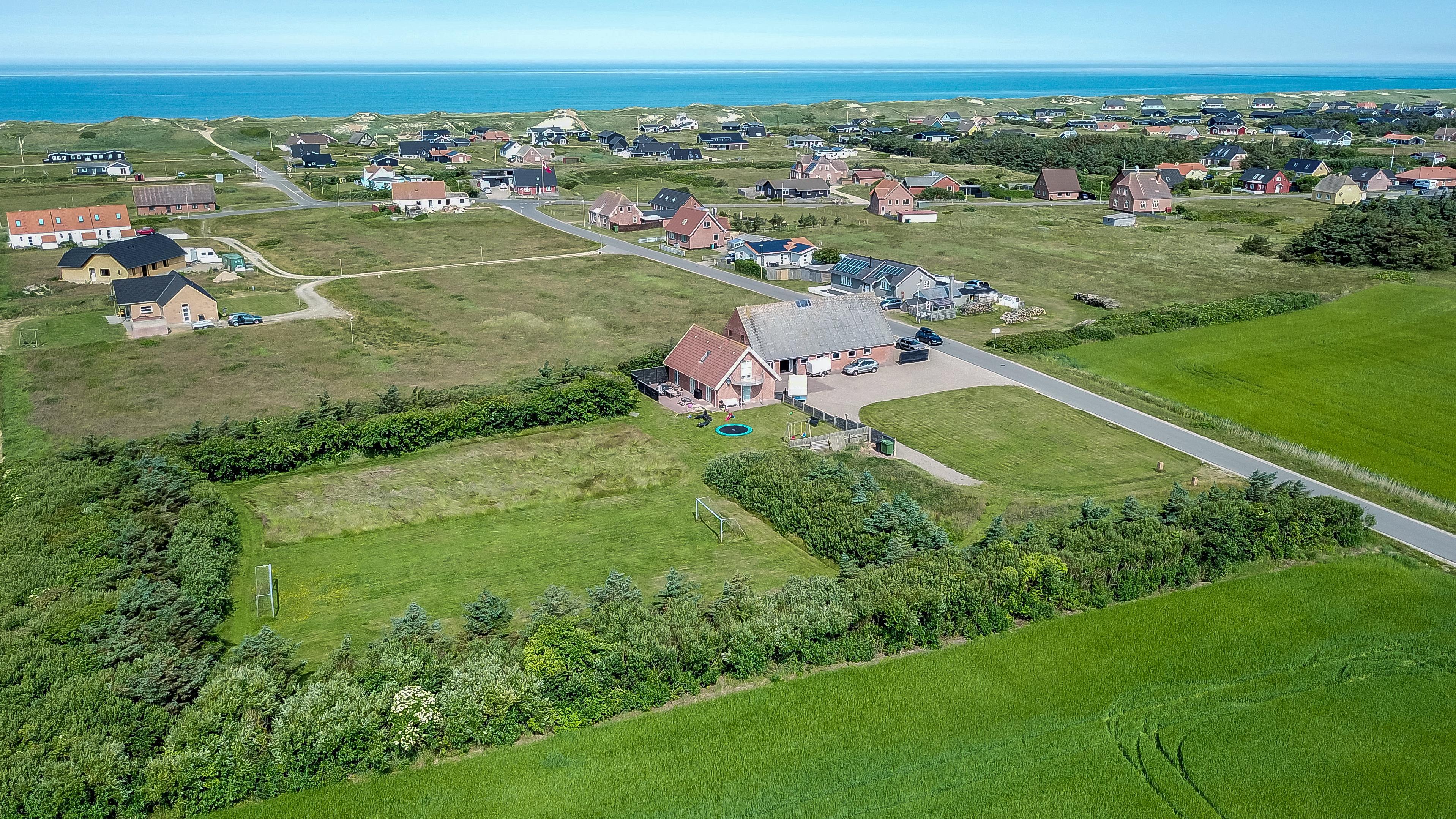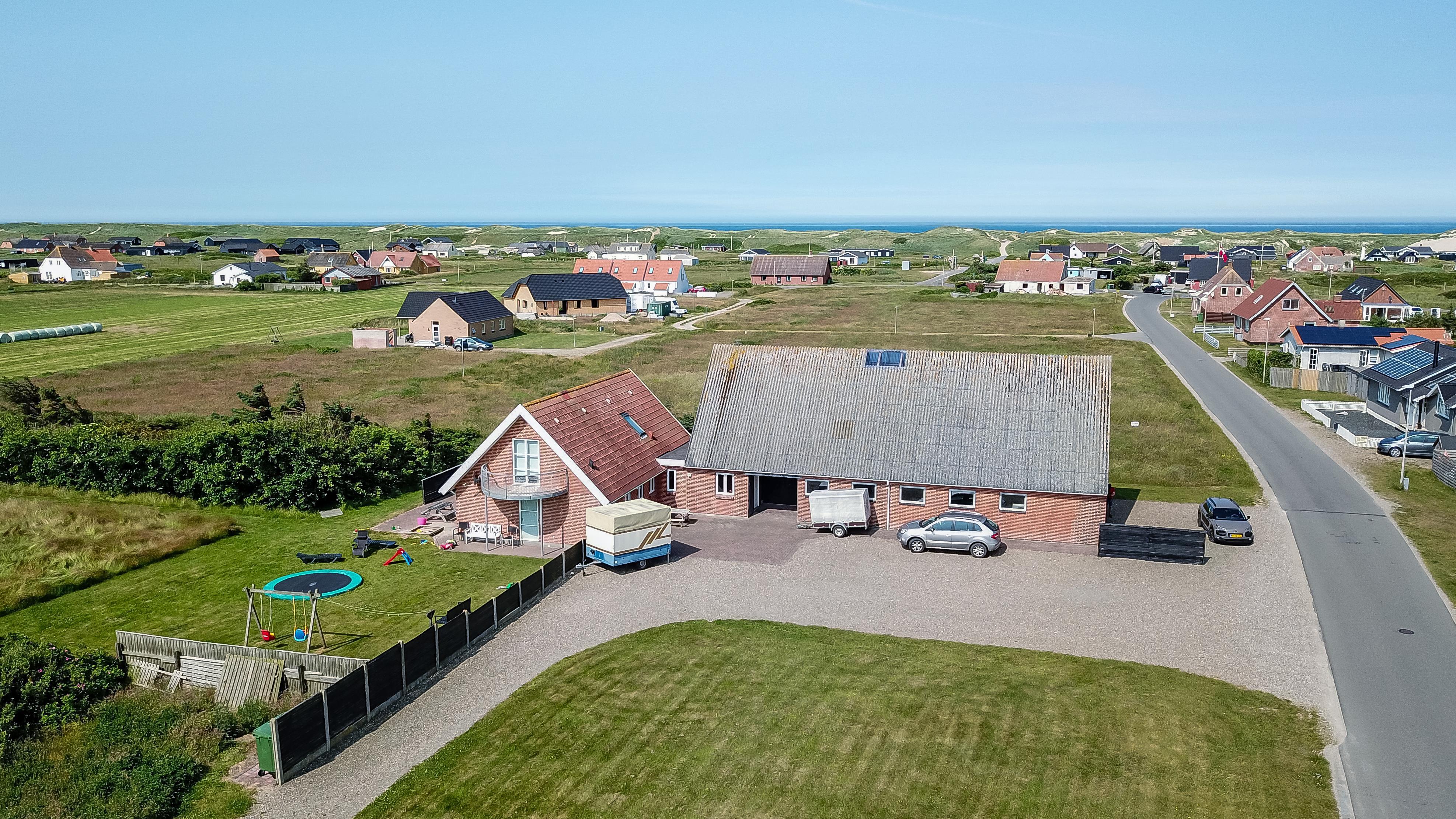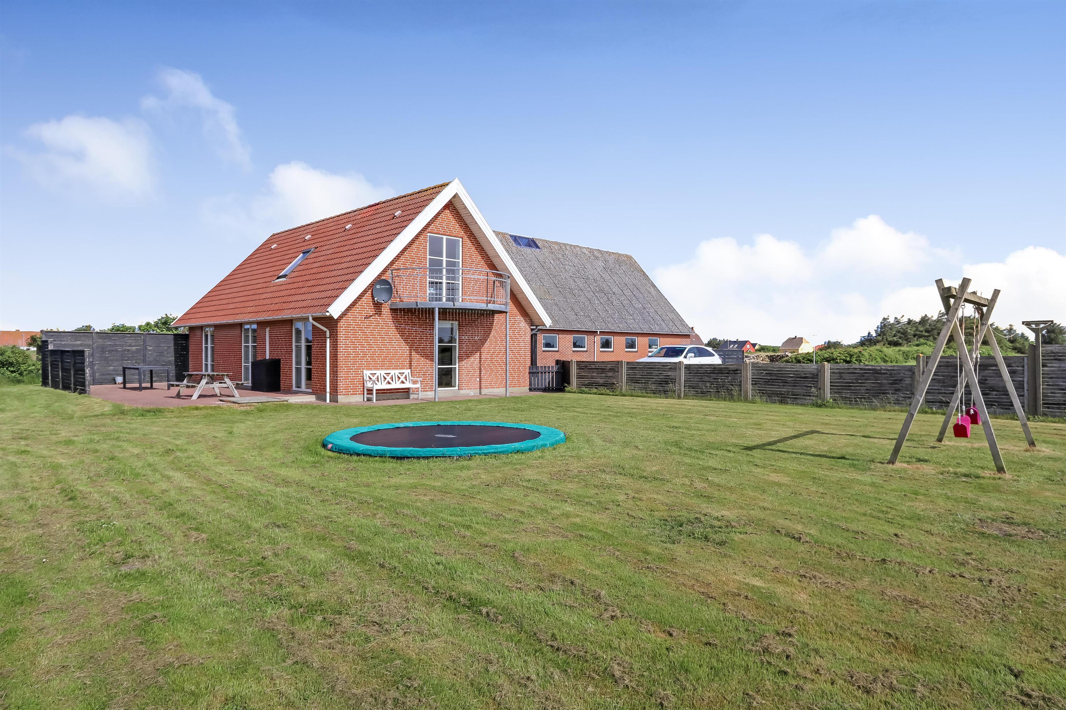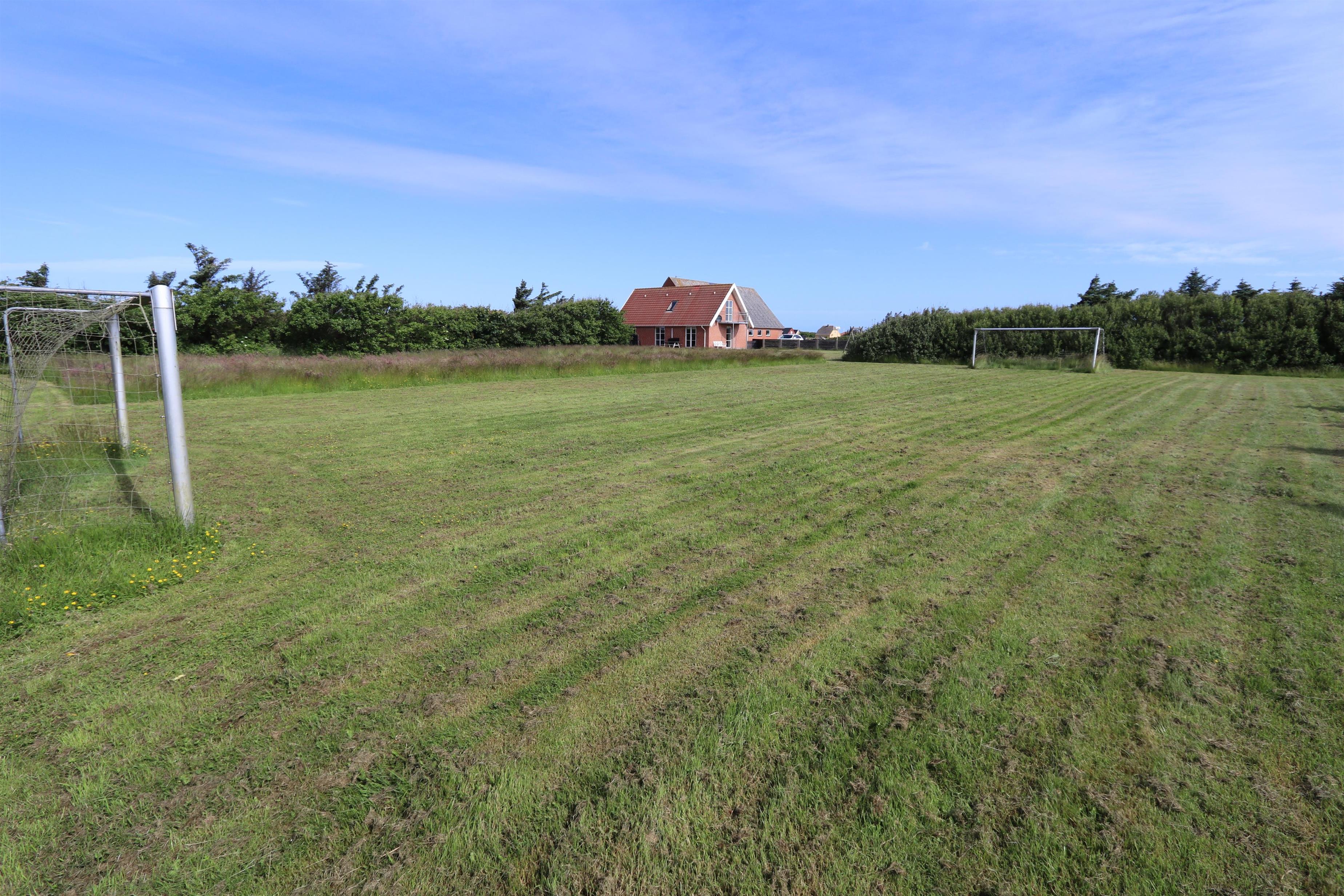 Feriehuset er beliggende på en 4.000 m2 stor velplejet grund. Der er anlagt boldbane med 2 fodboldmål, bålplads, legeplads med gynger, sandkasse og trampolin. 2 store solterrasser med havemøbler, solvogne. Grill forefindes selvfølgelig. Kun ca. 250 m. fra huset ligger det sæsonåbne minimarked, som byder på frisk morgenbrød og hvor de daglige indkøb også kan klares. Gå en kort tur i område, hen over de høje klitter og straks derefter åbenbarer Vesterhavet sig. Hver dag byder Vesterhavet på nye maleriske oplevelse, der inviterer til en frisk gå- eller løbetur. Indenfor kort køreafstand nås både den aktive handelsby i Lemvig med flere specialbutikker eller den unikke fiskerby Thyborøn, som udover den aktive fiskerihavn også byder på badestrand og op til flere aktivitetstilbud, som alle er et besøg værd.