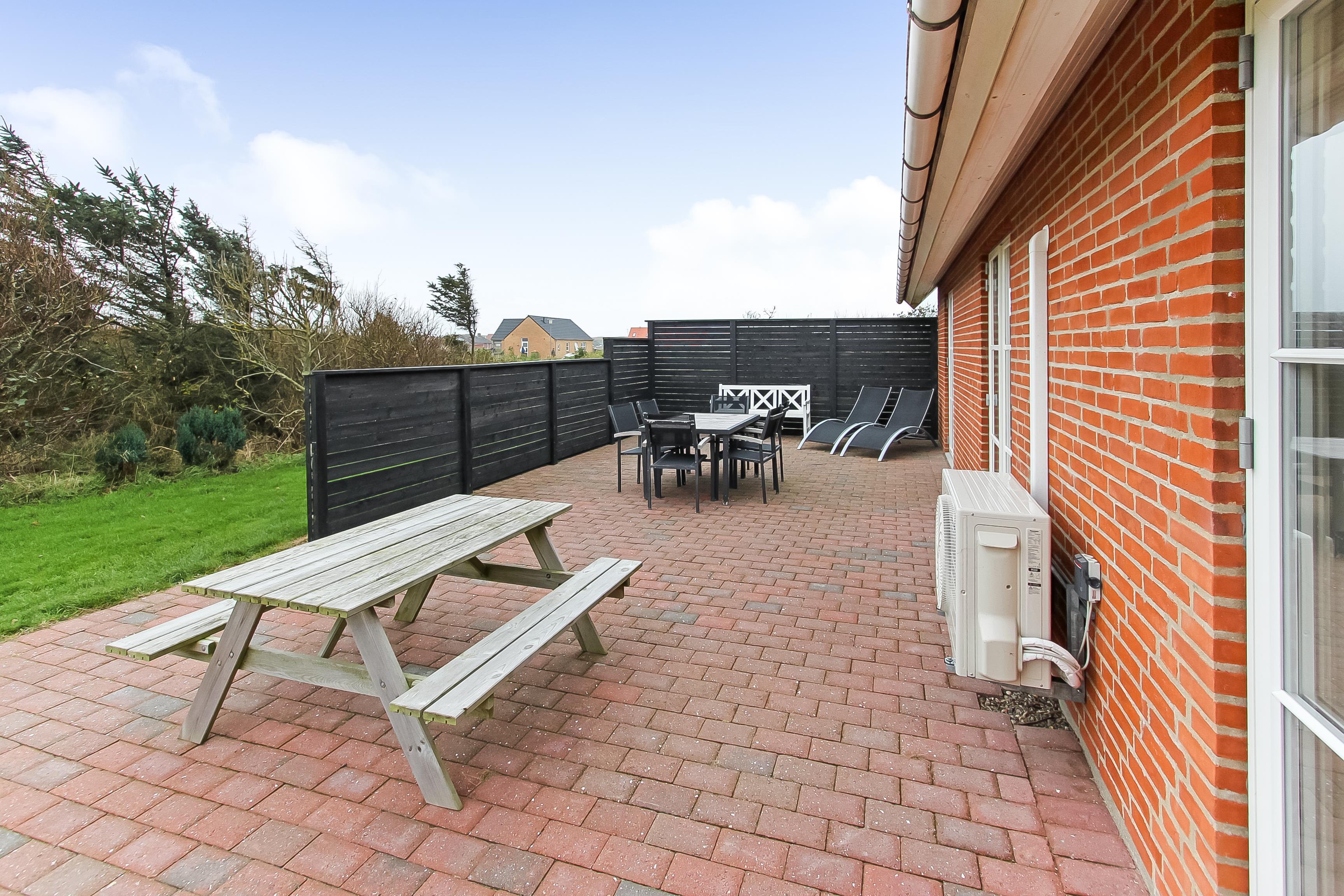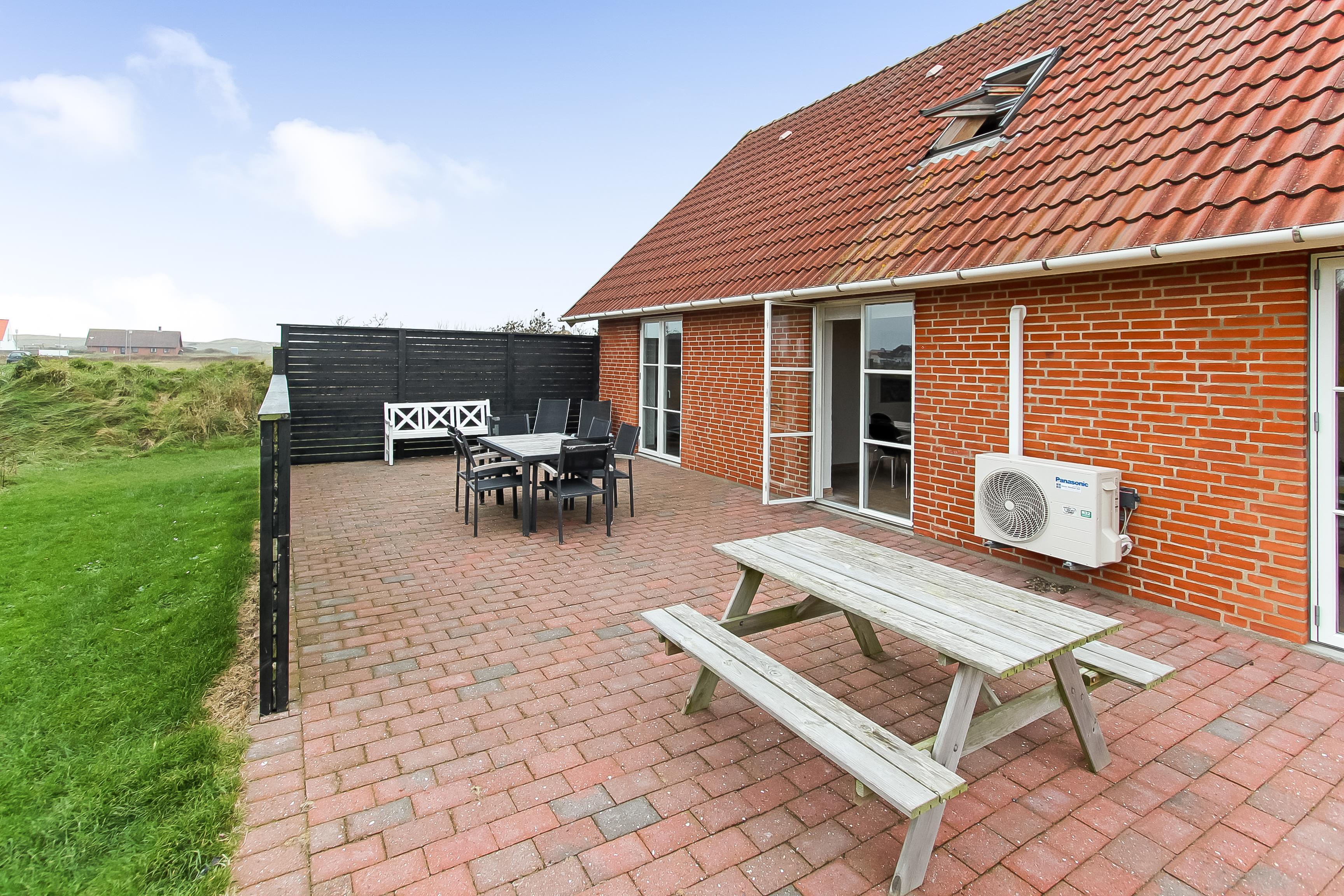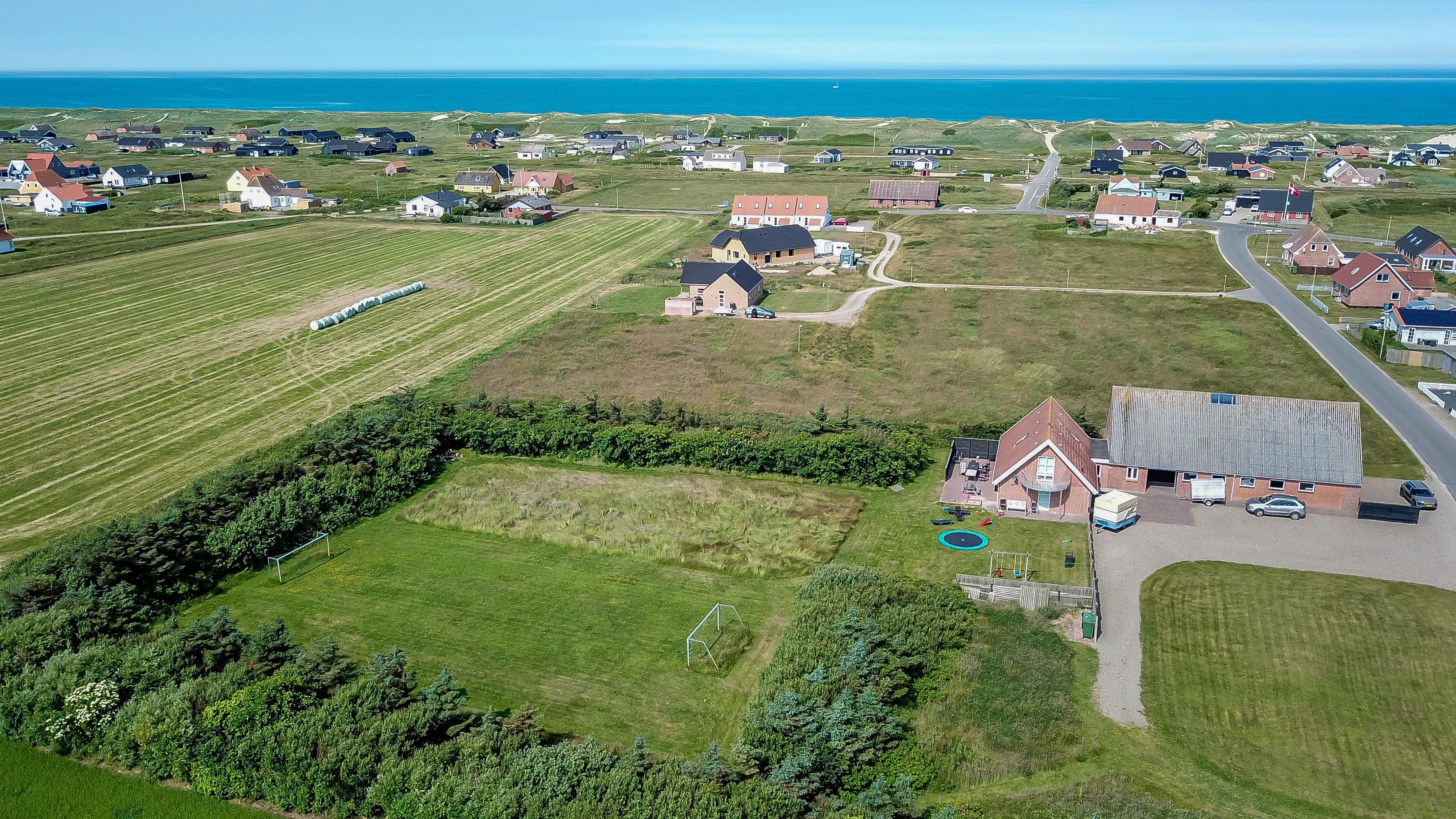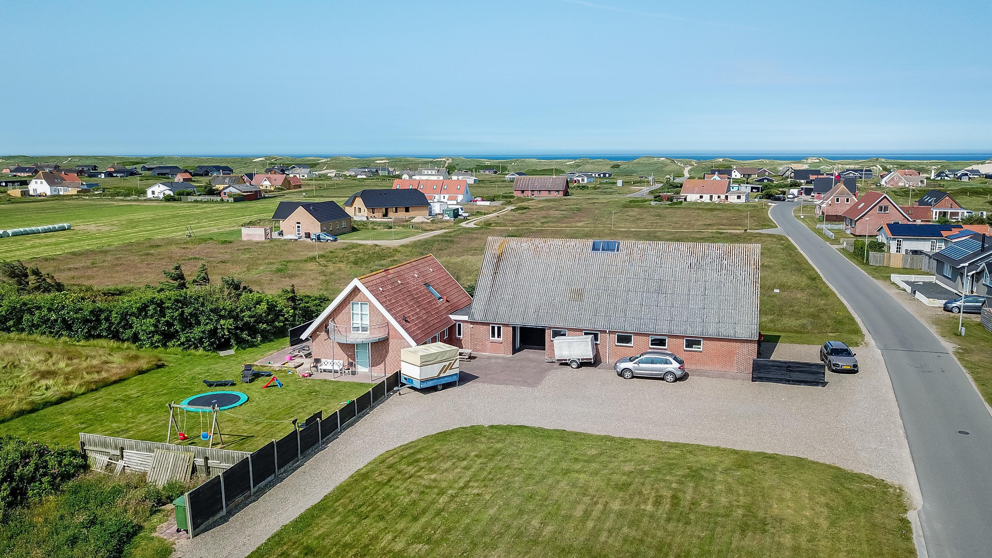 Feriehuset er beliggende på en 4.000 m2 stor velplejet grund. Der er anlagt boldbane med 2 fodboldmål, bålplads, legeplads med gynger, sandkasse og trampolin. 2 store solterrasser med havemøbler, solvogne. Grill forefindes selvfølgelig. Kun ca. 250 m. fra huset ligger det sæsonåbne minimarked, som byder på frisk morgenbrød og hvor de daglige indkøb også kan klares. Gå en kort tur i område, hen over de høje klitter og straks derefter åbenbarer Vesterhavet sig. Hver dag byder Vesterhavet på nye maleriske oplevelse, der inviterer til en frisk gå- eller løbetur. Indenfor kort køreafstand nås både den aktive handelsby i Lemvig med flere specialbutikker eller den unikke fiskerby Thyborøn, som udover den aktive fiskerihavn også byder på badestrand og op til flere aktivitetstilbud, som alle er et besøg værd.