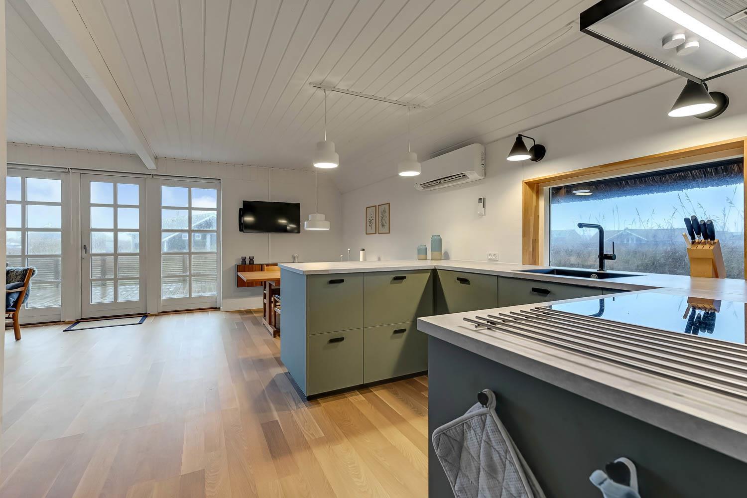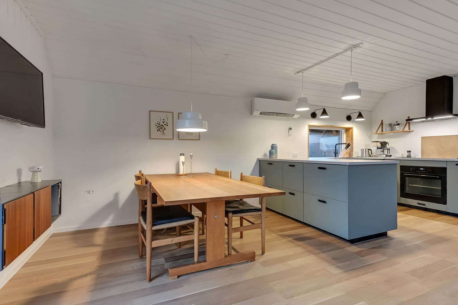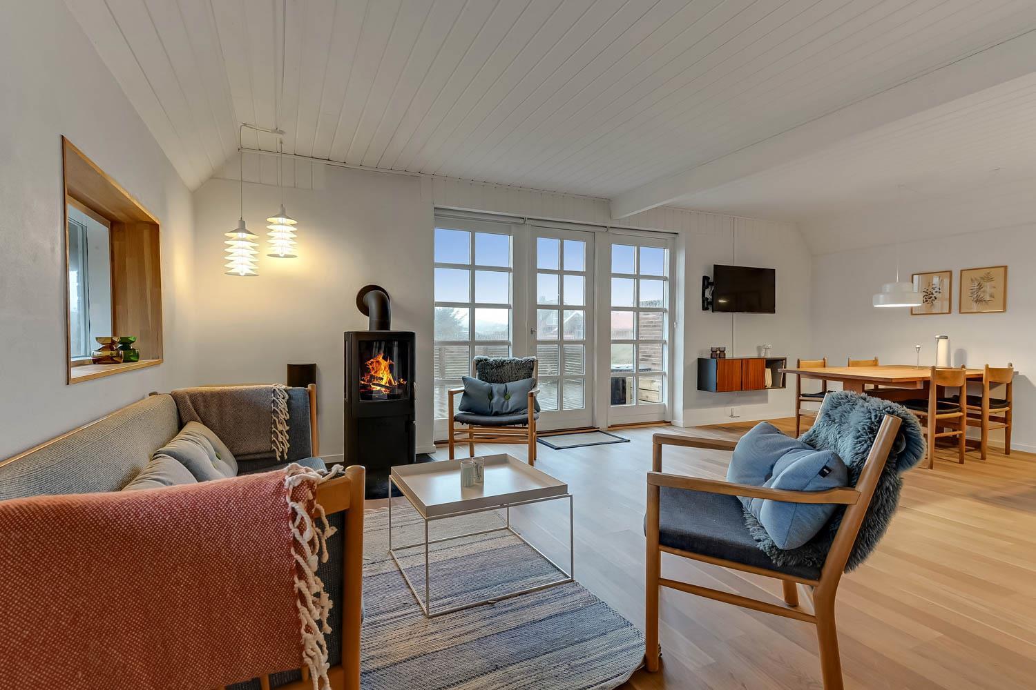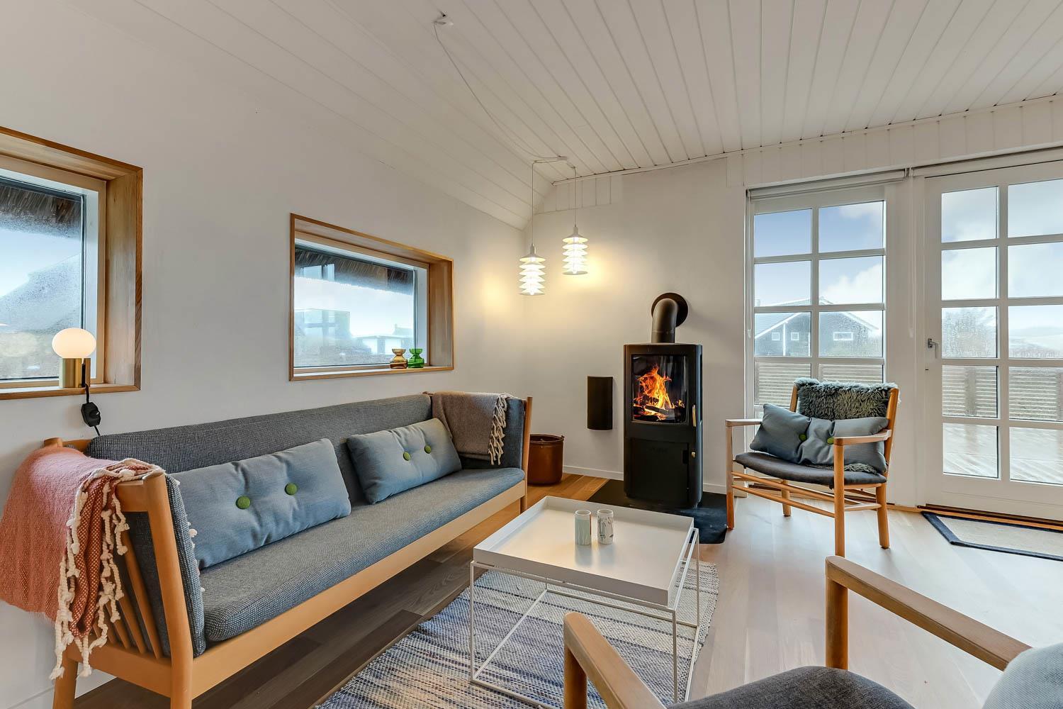 Huset som er 100 m2 fordelt på 2 etager er renoveret i 2020. Veludstyret køkken / alrum med alt i service / køkkengrej og alt i hårde hvidevarer. Køkkenhjørnet har bl.a. komfur med glaskeramiske kogeplader, emhætte, opvaskemaskine og køleskab med fryseboks. Nyd maden ved spisebordet, kig ud af vinduet og se de store høje klitter ved Vesterhavet eller slap af i de pæne møbler eller afspil musik fra bluetooth højtaleren. Nyd flammerne ved den hyggelige brændeovn som sammen med den opsatte varmepumpe i stueetagen sørger for et minimalt forbrug til opvarmning. 3 dejlige soverum (1DS, 1DS, 1DS). Badeværelse med toilet, håndvask, bruser, vaskemaskine og klinkegulv. Der er praktiske hårde gulve i alle opholds- og soverum. Ikke ryger hus. Husdyr må ikke medbringes.
