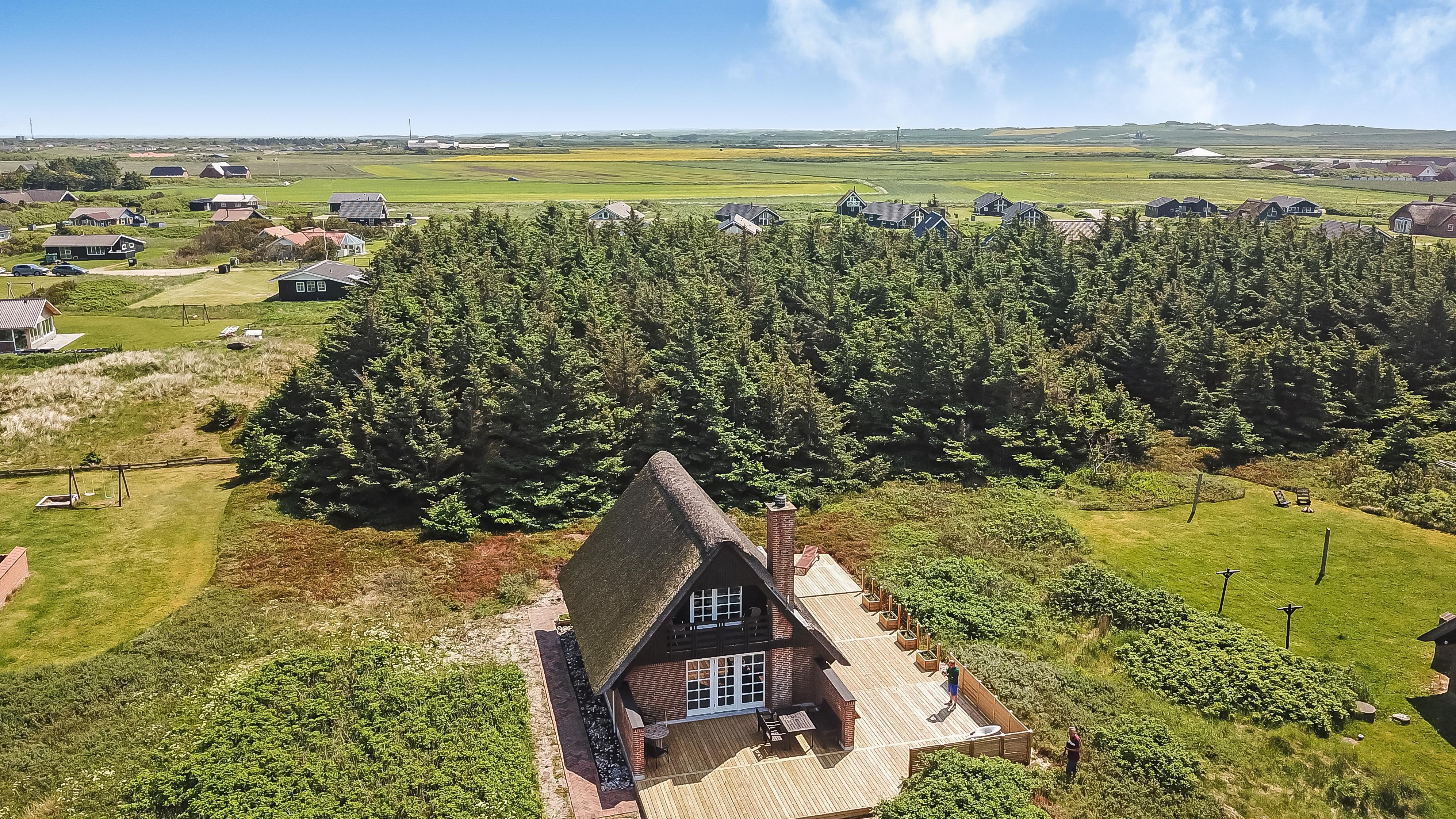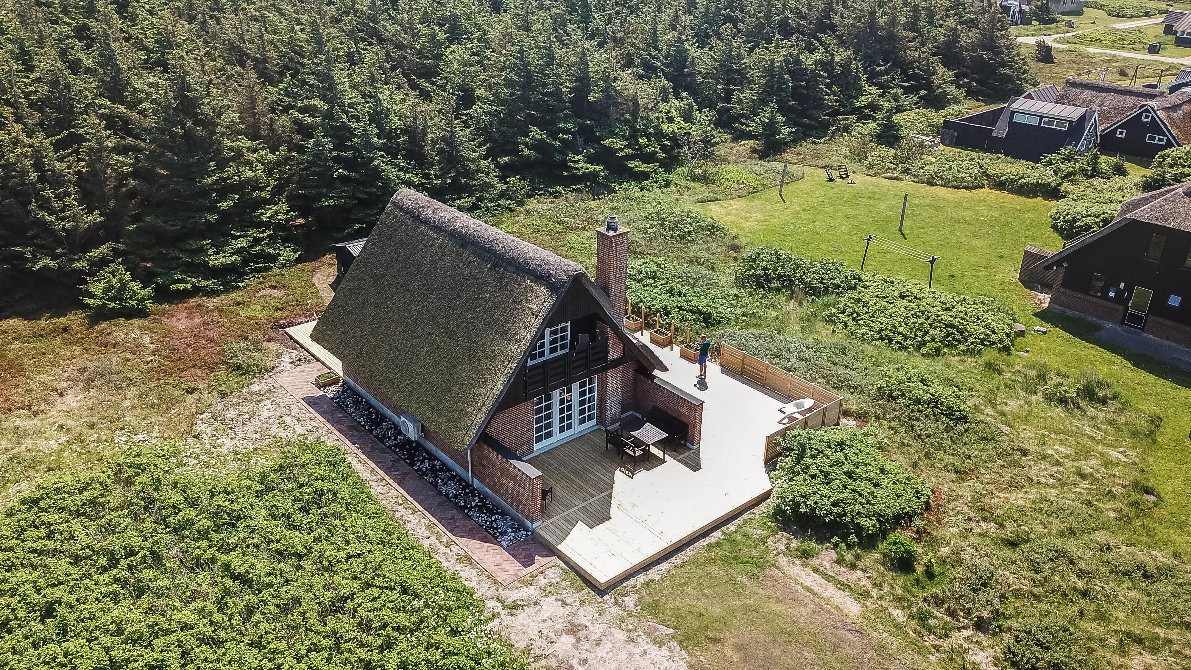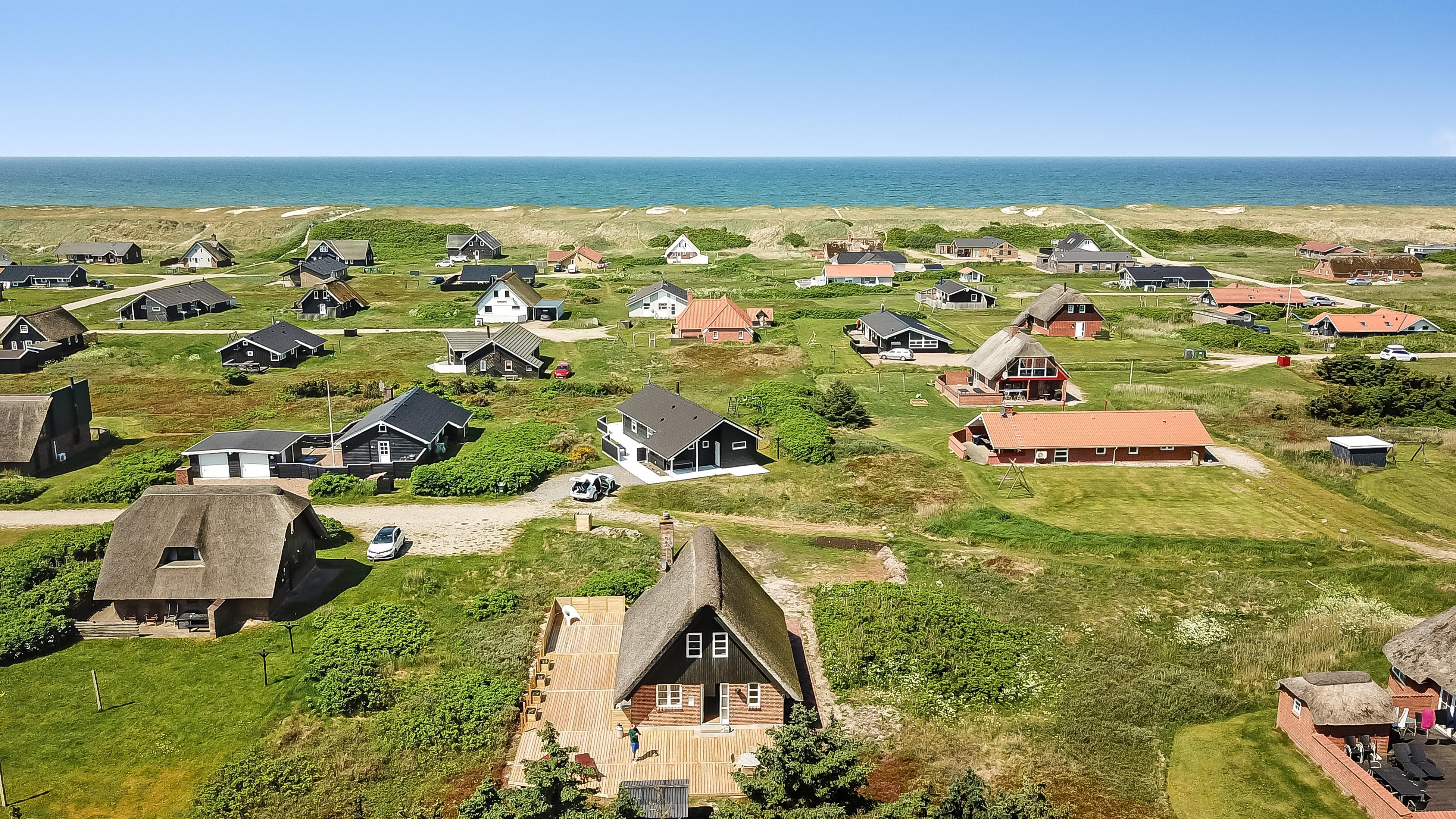Romantisk, feriehus med stråtag og gratis Internet. Særdeles velholdt stenhus i 2 etager med klitudsigt. Et flot feriehus med god plads til hele familien eller til parret som ønsker en romantisk ferie. Nyd husets mange muligheder eller gå en dejlig tur ved Vesterhavet.