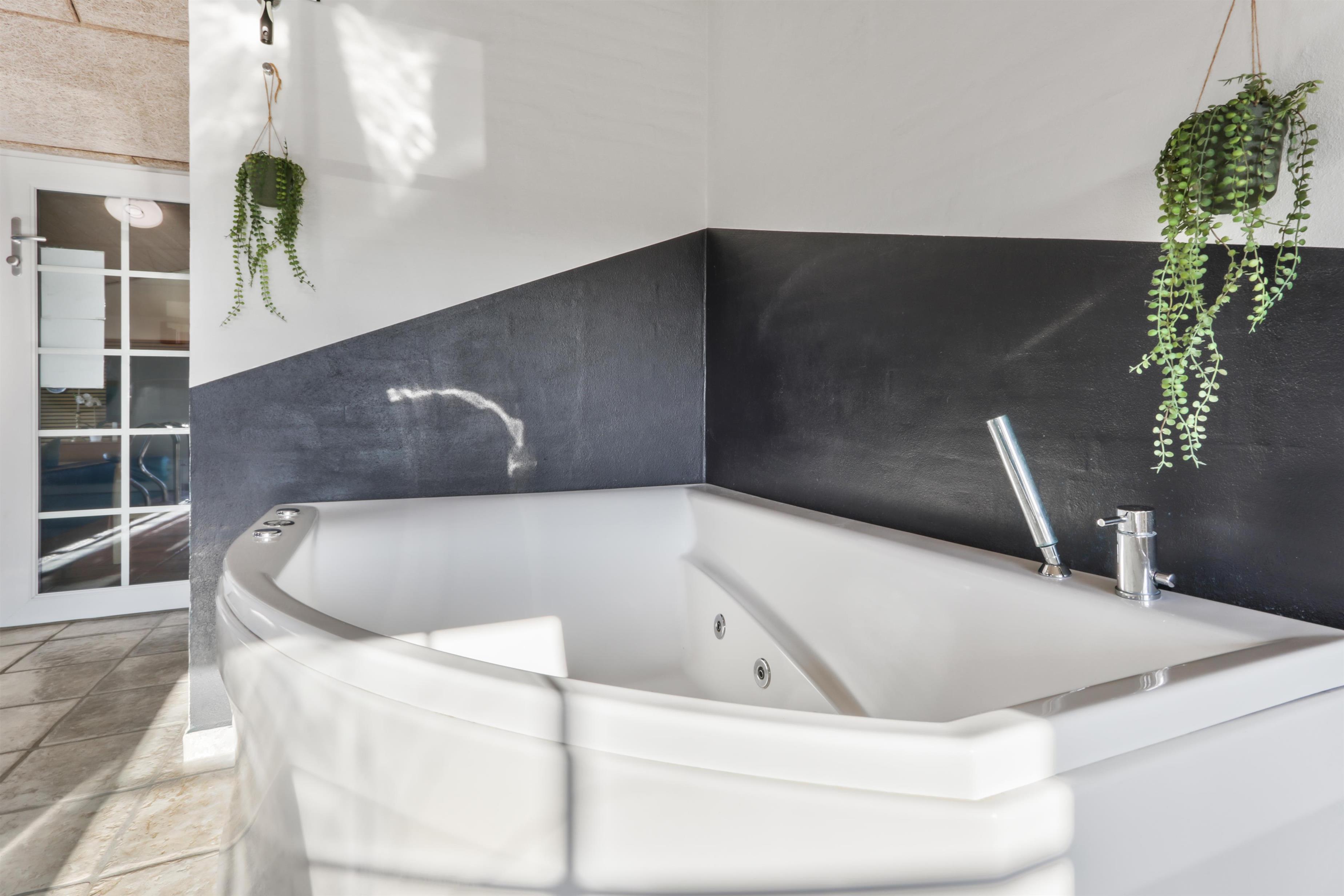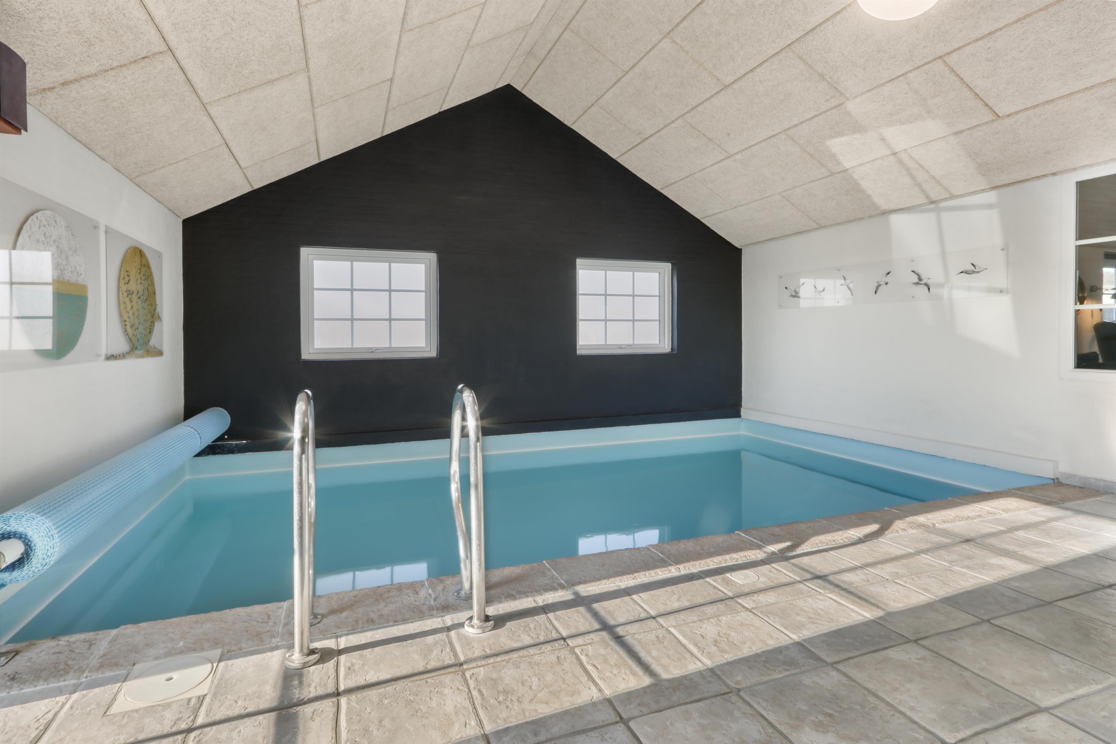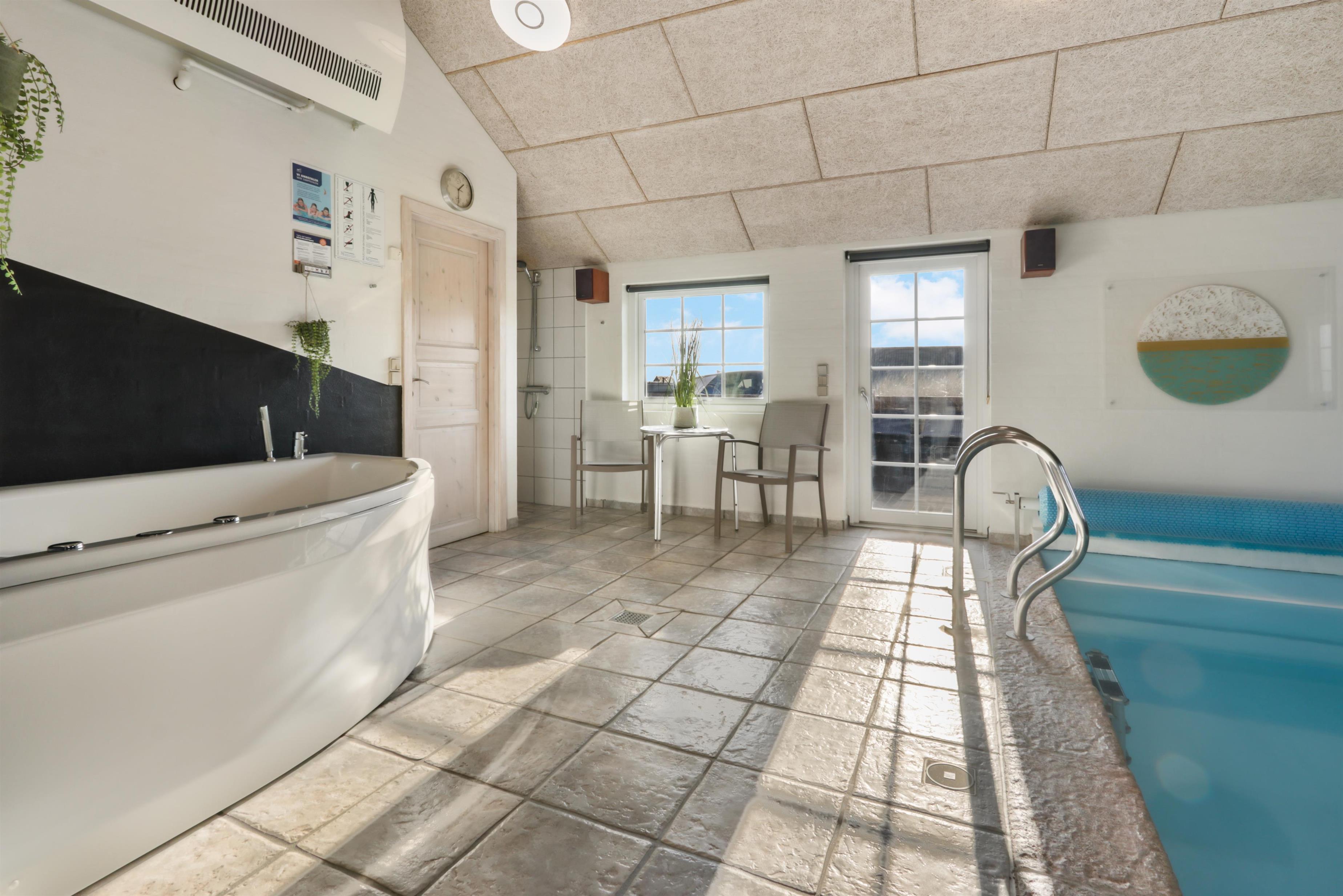 Komb. køkken og opholdsstue med god spiseplads og komfortabel stue med brændeovn, fladskærms-TV med DR1 og TV2 samt modtagelse af tyske programmer. Køkkenet er velindrettet og udstyret med bl.a. mikroovn, køle-fryseskab samt opvaskemaskine. Husets 4 soveværelser består af 1DS + 1DS + 2S + 2S. Der er gulvvarme i hele huset. Fra stuen er der god udsigt til poolrummet, så man kan sidde og kigge ind til de gæster som svømmer. Poolrummet indeholder swimmingpool som er 3 m x 6 m og 1,50 m dyb og med undervandsbelysning. Her er der også en dejlig spa, som er beregnet til 2 personer. Fra poolafdelingen har man direkte adgang til et af husets badeværelser som er med toilet, håndvask, bruser samt sauna. Det andet badeværelse som ligger ved soveafdelingen er også med bruser og toilet. Entrè med vaskemaskine og tørretumbler. Al opvarmning af vand til pool og spa er med varmepumpe. 2 hunde er tilladt. Depositum vintersæson kr. 4500 og sommersæson kr. 2200. Obligatorisk slutrengøring